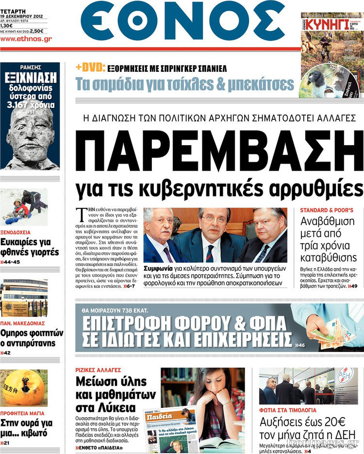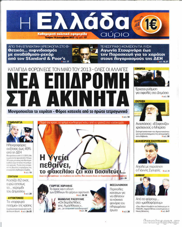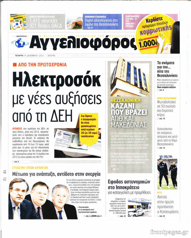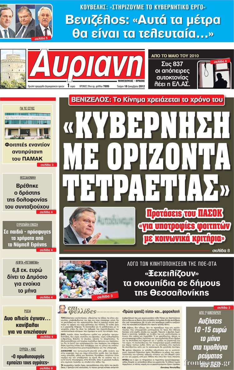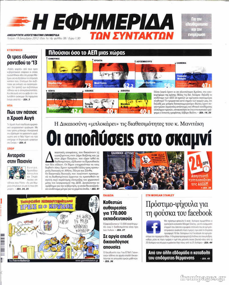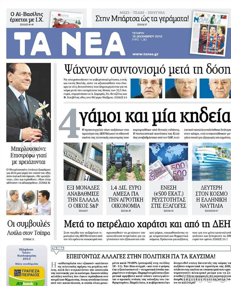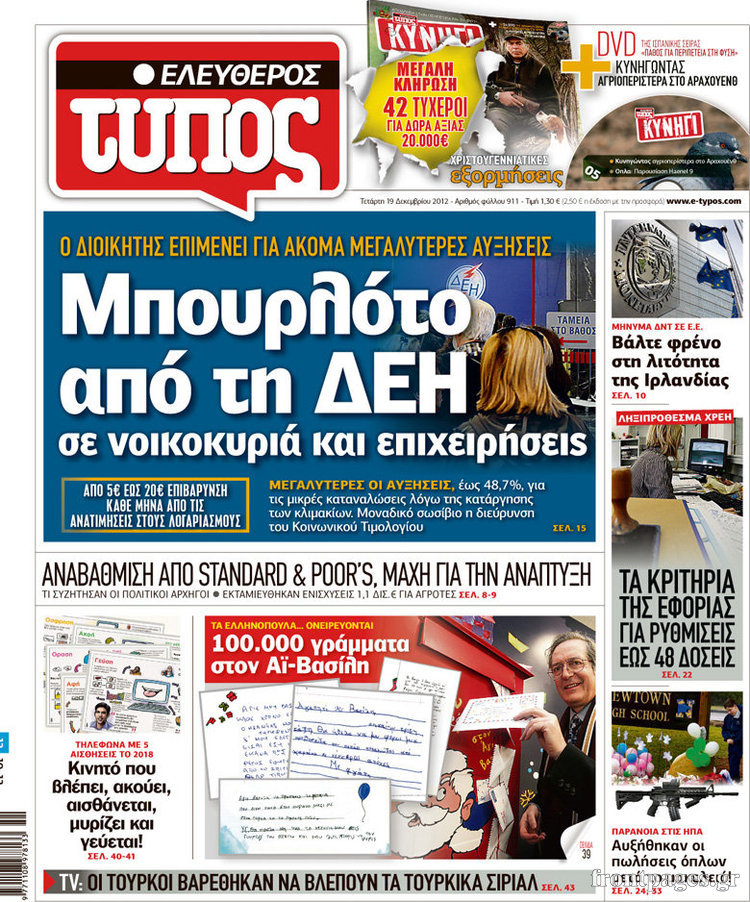 Οι πολιτικές εφημερίδες Enikos Newsroom 09:24, Τετάρτη 19 Δεκεμβρίου 2012 Media Οι πολιτικές εφημερίδες Τα πρωτοσέλιδα των πολιτικών εφημερίδων. ΑΘΛΗΤΙΚΕΣ ΕΦΗΜΕΡΙΔΕΣ ΕΦΗΜΕΡΙΔΕΣ ΠΡΩΤΟΣΕΛΙΔΑ ΠΟΛΙΤΙΚΕΣ ΕΦΗΜΕΡΙΔΕΣ Μοιράσου το: σχολίασε κι εσύ (0 σχόλια) Ακολουθήστε το enikos.gr στο Google News και μάθετε πρώτοι όλες τις ειδήσεις Δείτε όλες τις τελευταίες ειδήσεις από την Ελλάδα και τον Κόσμο στο enikos.gr Ειδήσεις Ροή Ειδήσεων 3 ώρες πριν ΑΑΔΕ: Στον Εισαγγελέα οι πρώτες 50 μαζικές διαγραφές αγρών στο Ε9 – Εξετάζονται συνολικά 3.000 περιπτώσεις 1 ώρα πριν Τουρκία: Σε ουδέτερη χώρα θα αναλυθεί το μαύρο κουτί του αεροσκάφους που συνετρίβη 34 λεπτά πριν Αττική: Προβλήματα σε κεντρικούς δρόμους από την ισχυρή βροχόπτωση και το χαλάζι – ΒΙΝΤΕΟ 2 ώρες πριν Αττική: Έπεσε από πατίνι η 14χρονη που εντοπίστηκε τραυματισμένη – Νοσηλεύεται στη νευροχειρουργική κλινική 3 ώρες πριν Ζελένσκι: Πέρασε στην αντεπίθεση με το σχέδιο ειρήνης – Ζητεί συνάντηση με Τραμπ για το εδαφικό 3 ώρες πριν Τα 5 ζώδια που έχουν μεγάλες πιθανότητες να πλουτίσουν το 2026 – «Οι οικονομικές δυσκολίες ανήκουν στο παρελθόν» 4 ώρες πριν Επιστήμονες ανακάλυψαν κάτι συγκλονιστικό – Η μάζα μπορεί να προέρχεται από αόρατες διαστάσεις 8 ώρες πριν Γυναίκα που έχασε 30 κιλά αποκαλύπτει τα μυστικά της επιτυχίας της – «Οι υδατάνθρακες είναι καύσιμο του οργανισμού, όχι εχθρός» 7 ώρες πριν Οι άνθρωποι που αποφεύγουν να γιορτάσουν τα Χριστούγεννα με την οικογένειά τους, συνήθως είχαν αυτές τις 8 εμπειρίες στην παιδική ηλικία 5 λεπτά πριν Χριστούγεννα στη Βηθλεέμ: Επανήλθαν οι εορτασμοί έπειτα από 2 χρόνια πολέμου – Παρέλαση προσκόπων στην Πλατεία της Φάτνης 13 λεπτά πριν Ηλεία: 16χρονος έπεσε θύμα ξυλοδαρμού από συνομήλικό του – Μεταφέρθηκε στο νοσοκομείο 20 λεπτά πριν Ρωσία: Οι μυστικές υπηρεσίες ανακοίνωσαν ότι απέτρεψαν «τρομοκρατική επίθεση» σε εγκατάσταση αγωγού πετρελαίου 26 λεπτά πριν Ομοβροντία πυρών από τους Ευρωπαίους για τις αμερικανικές κυρώσεις – «Θα συνεχίσουμε να προστατεύουμε την ελευθερία της έκφρασης» 31 λεπτά πριν Χριστούγεννα σημαίνουν… Ευχοστολίδια! Μαζί με τον ΟΠΑΠ διπλασιάζουμε την προφορά στα παιδιά και κάνουμε τις ευχές τους πραγματικότητα ENIKOS NETWORK ΕΟΔΥ: Οι «χρυσές» συμβουλές για να απολαύσουμε το Χριστουγεννιάτικο τραπέζι χωρίς υπερβολές New Year’s Resolutions: Μικρές αποφάσεις για μια καλή χρονιά «Κινούμαι Ηλεκτρικά ΙΙΙ»: Έρχεται νέα ΚΥΑ για το πρόγραμμα – Τι θα αναφέρει ΕΒΕA: Ποιοι μπορούν να υποβάλουν αίτηση για τη Θερμοκοιτίδα Νεοφυών Επιχειρήσεων Αθήνας και μέχρι πότε Ο Google Assistant θα παραμείνει λίγο περισσότερο για ορισμένους χρήστες Android Τεστ προσωπικότητας: Το βάζο που θα επιλέξετε αποκαλύπτει πώς λύνετε προβλήματα στη ζωή σας περισσότερα 16:12 , Τετάρτη 24 Δεκεμβρίου 2025 ALPHA: Παραμονή Χριστουγέννων με τον Κωνσταντίνο Αργυρό Ο Alpha παρουσιάζει απόψε σε πρώτη τηλεοπτική μετάδοση τη συναρπαστική και sold out εμφάνιση ... 15:51 , Τετάρτη 24 Δεκεμβρίου 2025 ‘Αγιος Έρωτας: Ο σεισμός που έκοψε την ανάσα – Δείτε τις συγκλονιστικές σκηνές Με έναν συγκλονιστικό τρόπο έκλεισε χθες βράδυ το τελευταίο επεισόδιο του 2025 της σειράς R... 13:27 , Τετάρτη 24 Δεκεμβρίου 2025 Ο Χριστουγεννιάτικος Τηλεμαραθώνιος του ΑΝΤ1 ένωσε τους πολιτικούς αρχηγούς – Τα εγκωμιαστικά σχόλια για τον Θοδωρή Κυριακού Σπάνια ομοφωνία: Όλοι οι πολιτικοί αρχηγοί αποθεώνουν τον Θοδωρή Κυριακού Ο Χριστουγεννιάτικος... 12:05 , Τετάρτη 24 Δεκεμβρίου 2025 Έξοδος 