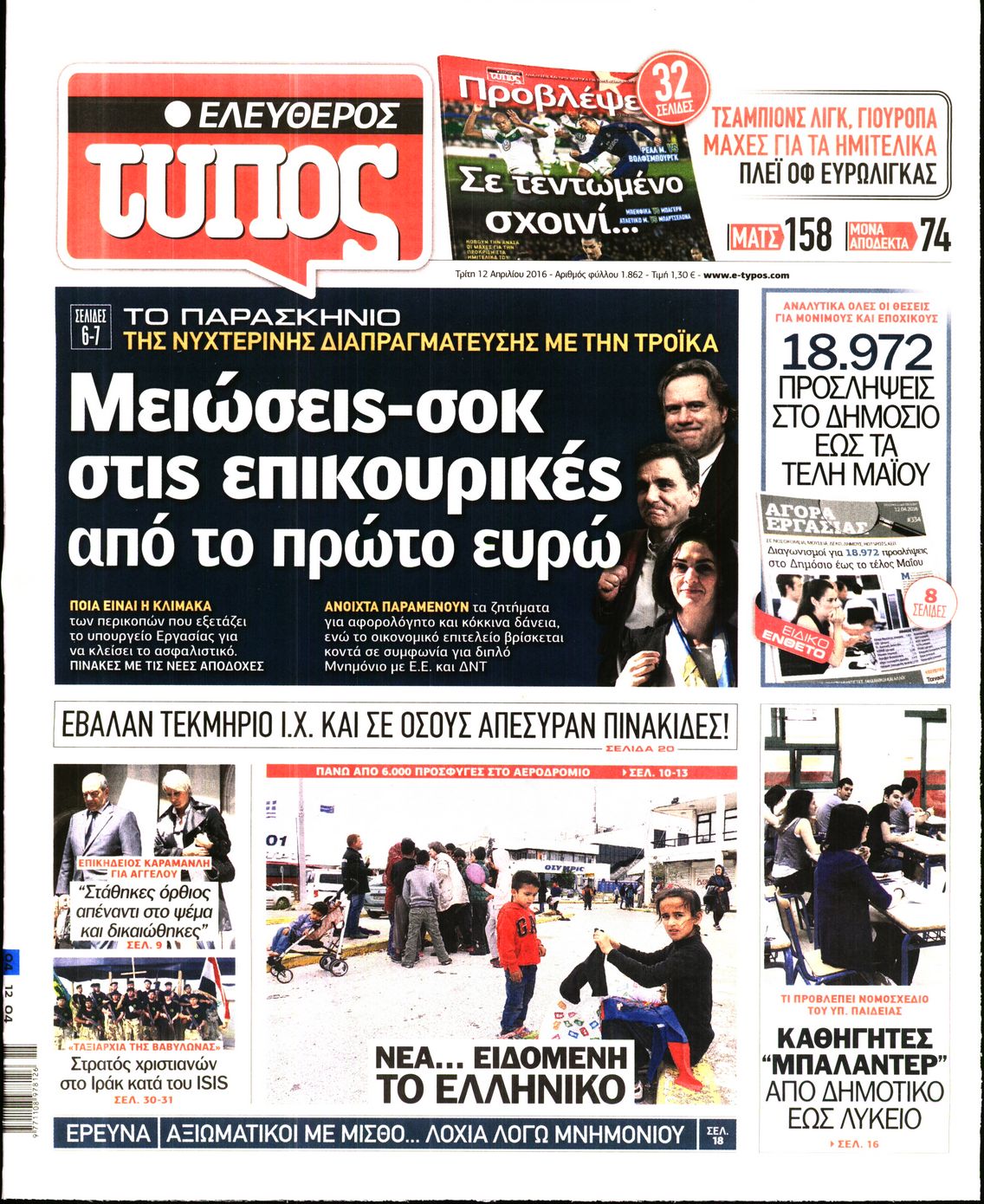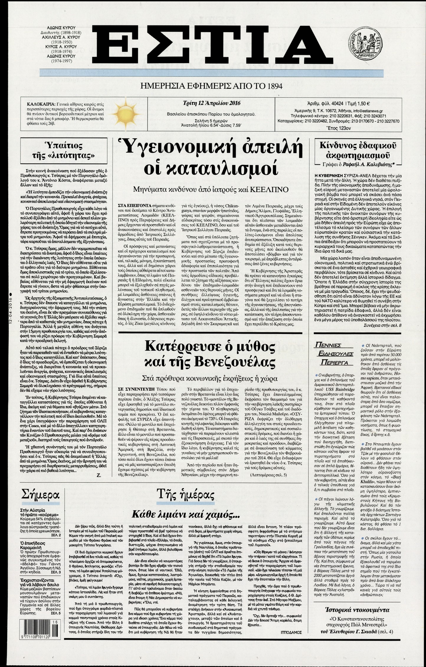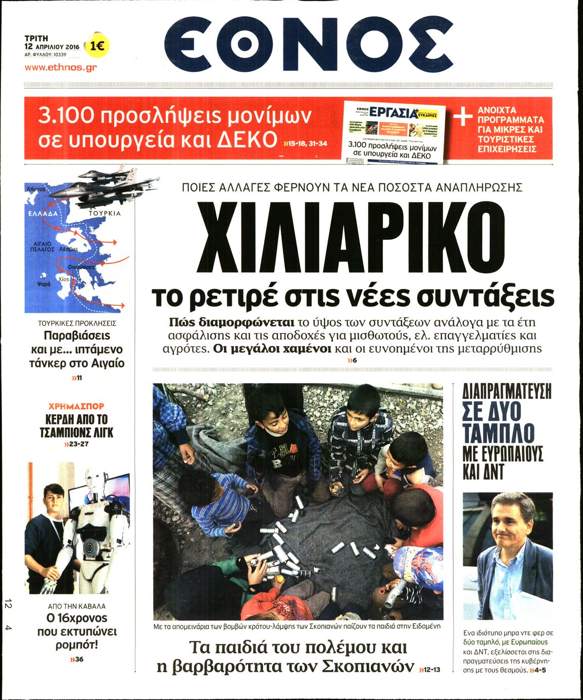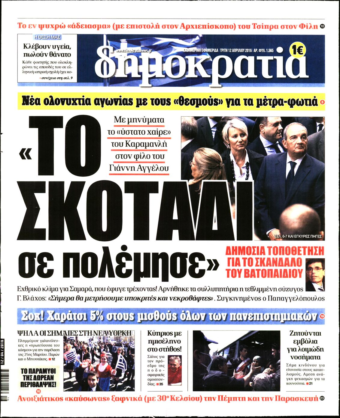 Oι πολιτικές εφημερίδες 12/4/2016 Enikos Newsroom 05:59, Τρίτη 12 Απριλίου 2016 Media Διαβάστε τα σημερινά πρωτοσέλιδα των πολιτικών εφημερίδων: ΠΟΛΙΤΙΚΕΣ ΕΦΗΜΕΡΙΔΕΣ ΠΡΩΤΟΣΕΛΙΔΑ Μοιράσου το: σχολίασε κι εσύ (0 σχόλια) Ακολουθήστε το enikos.gr στο Google News και μάθετε πρώτοι όλες τις ειδήσεις Δείτε όλες τις τελευταίες ειδήσεις από την Ελλάδα και τον Κόσμο στο enikos.gr Ειδήσεις Ροή Ειδήσεων 56 λεπτά πριν Μεσόγειος: Η διαδρομή του ρωσικού τάνκερ «Qendil» και η στοχευμένη επίθεση της Ουκρανίας με drone – Ο Πούτιν προειδοποίησε για αντίποινα 50 λεπτά πριν Αττική: Θρίλερ με νεκρό βρέφος 5 μηνών – Κοιμόταν στο ίδιο κρεβάτι με τους γονείς του 2 ώρες πριν Από το Ορμένιο ως τα Μάλγαρα κι από τη Σιάτιστα μέχρι τη Νίκαια: Μπλόκα σε όλη την Ελλάδα – Το Σάββατο ανοίγουν τα διόδια οι αγρότες 2 ώρες πριν «Έλληνας Εσκομπάρ»: Φωτογραφίες με τους 4 τόνους κοκαΐνης που κατασχέθηκαν από το σκάφος «Ουρανία» 3 ώρες πριν Πούτιν: Σαρκαστικά μηνύματα, παράπονα και απρόοπτα στη συνέντευξη Τύπου – Η πρόταση γάμου on air και οι ερωτήσεις για τα αγγούρια και τους… εξωγήινους 3 ώρες πριν Τα 5 ζώδια που ευνοούνται στην ερωτική ζωή τους την επόμενη εβδομάδα – «Η ενέργεια του Αιγόκερου φέρνει αγάπη και σταθερότητα» 7 ώρες πριν Ειδικός μοιράζεται 6 κόλπα για να διατηρείστε σε φόρμα με πάνω από 40 ώρες εργασίας την εβδομάδα: «Προπονηθείτε πριν από τη δουλειά, όχι μετά» 4 ώρες πριν Αυτό το έξυπνο μαθηματικό κόλπο θα μπορούσε να αλλάξει τον τρόπο με τον οποίο οι επιστήμονες μελετούν τους σεισμούς 2 ώρες πριν Κουίζ για την παλιά Αθήνα: Αναγνωρίζετε την περιοχή; Έχετε περάσει 100% από εκεί 3 λεπτά πριν Τέμπη: Διεκόπη για τις 9 Ιανουαρίου η δίκη για τα χαμένα βίντεο της εμπορικής αμαξοστοιχίας – «Απαιτούμε να μας σέβονται» 8 λεπτά πριν Hellenic Train: Αλλαγές και καταργήσεις δρομολογίων λεωφορείων λόγω των αγροτικών κινητοποιήσεων 14 λεπτά πριν Ζελένσκι: «Δεν χρειάζεται αναθεώρηση του Συντάγματος» για να εγκαταλείψει η Ουκρανία τον στόχο ένταξης στο ΝΑΤΟ 19 λεπτά πριν Παναγιώτα Βλαντή: Η τρυφερή εξομολόγηση για τον σύζυγό της – «Πραγματικά ήταν για μένα αυτό που ήθελα σε όλη μου τη ζωή» 25 λεπτά πριν Επίσημη η «βόμβα»: Ο ΠΑΟΚ ανακοίνωσε την απόκτηση του Πάτρικ Μπέβερλι ENIKOS NETWORK «Η σούπερ» γρίπη εξαπλώνεται στην Ευρώπη-Στοιχεία για την αποτελεσματικότητα του εμβολίου από το ECDC ΕΛΣΤΑΤ: Αύξηση κατά 1,7% των επαγγελματιών υγείας το 2024 Η απάντηση της κυβέρνησης στα αιτήματα των αγροτών: 16 έχουν ικανοποιηθεί, 4 βρίσκονται υπό επεξεργασία και 7 δεν είναι εφι... Μισθολογική διαφάνεια: Το 68% των εργαζομένων αγνοεί τη νέα οδηγία – Αναλυτικά τα στοιχεία έρευνας Χαρτογραφώντας το «σημείο χωρίς επιστροφή»: Για πρώτη φορά αποκαλύπτεται με λεπτομέρεια το ακανθώδες όριο της ατμόσφαιρας τ... Η Google καταργεί τη λειτουργία «dark web report» – Πώς θα μπορούν οι χρήστες να διαγράφουν τα δεδομένα τους περισσότερα 18:11 , Παρασκευή 19 Δεκεμβρίου 2025 Το σόι σου: Ο Άρης έρχεται στην Ελλάδα για τις γιορτές των Χριστουγέννων – Τι θα δούμε στο αποψινό εορταστικό επεισόδιο Ένα απολαυστικό, εορταστικό επεισόδιο της σειράς “Το σόι σου”, γεμάτο ευτράπελα αλ... 15:15 , Παρασκευή 19 Δεκεμβρίου 2025 Την Κυριακή με τη Realnews: Ό,τι και αν αγοράσεις, σκανάρεις και κερδίζεις! Την Κυριακή με τη Realnews: Ό,τι και αν αγοράσεις, σκανάρεις και κερδίζεις! Με το PADU app, το... 08:00 , Παρασκευή 19 Δεκεμβρίου 2025 Την Κυριακή με τη Realnews: Δωροεπιταγή 10€ Δωροεπιταγή αξίας 10€ για αγορές άνω των 60€ από τα πολυκαταστήμα