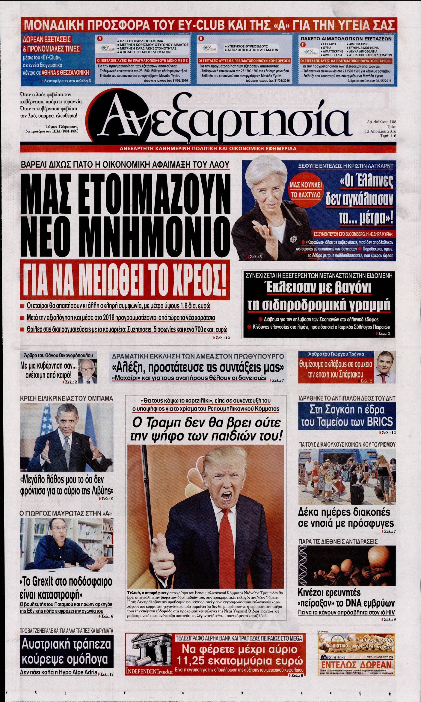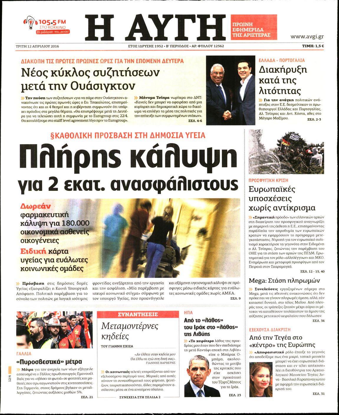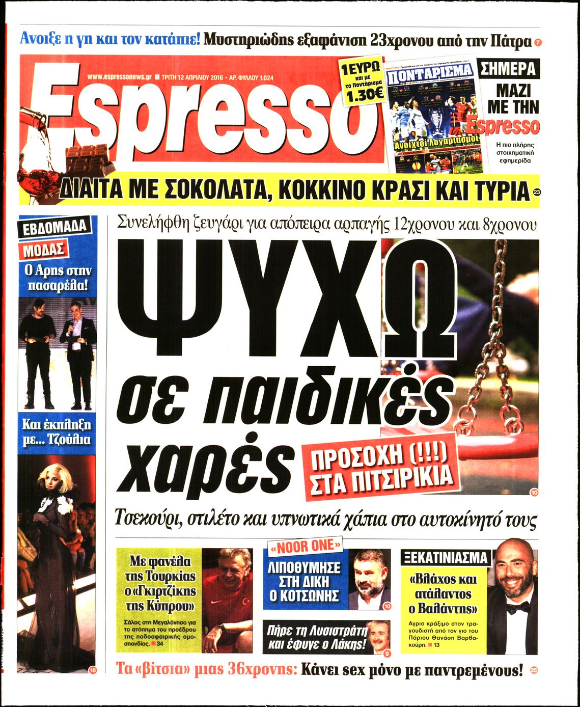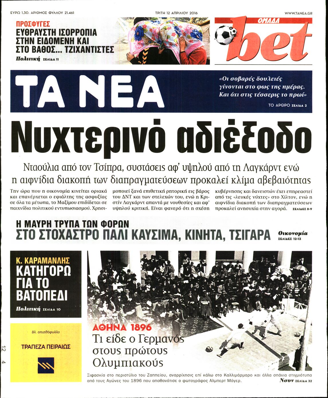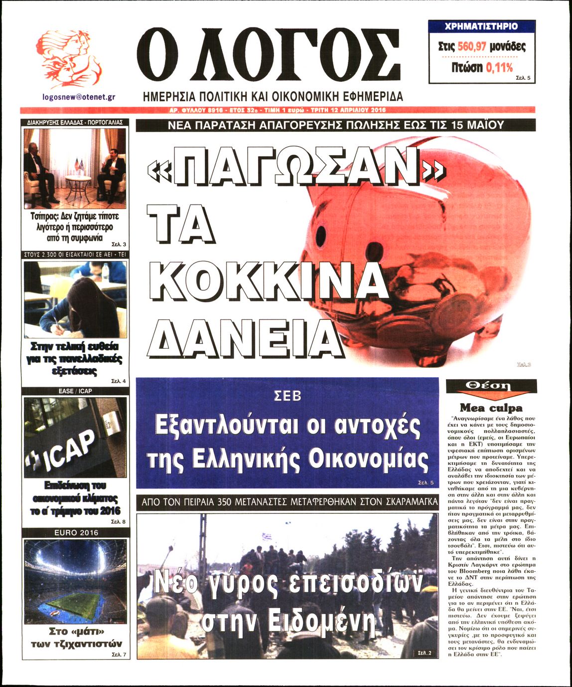 Oι πολιτικές εφημερίδες 12/4/2016 Enikos Newsroom 05:59, Τρίτη 12 Απριλίου 2016 Media Διαβάστε τα σημερινά πρωτοσέλιδα των πολιτικών εφημερίδων: ΠΟΛΙΤΙΚΕΣ ΕΦΗΜΕΡΙΔΕΣ ΠΡΩΤΟΣΕΛΙΔΑ Μοιράσου το: σχολίασε κι εσύ (0 σχόλια) Ακολουθήστε το enikos.gr στο Google News και μάθετε πρώτοι όλες τις ειδήσεις Δείτε όλες τις τελευταίες ειδήσεις από την Ελλάδα και τον Κόσμο στο enikos.gr Ειδήσεις Ροή Ειδήσεων 56 λεπτά πριν Μεσόγειος: Η διαδρομή του ρωσικού τάνκερ «Qendil» και η στοχευμένη επίθεση της Ουκρανίας με drone – Ο Πούτιν προειδοποίησε για αντίποινα 50 λεπτά πριν Αττική: Θρίλερ με νεκρό βρέφος 5 μηνών – Κοιμόταν στο ίδιο κρεβάτι με τους γονείς του 2 ώρες πριν Από το Ορμένιο ως τα Μάλγαρα κι από τη Σιάτιστα μέχρι τη Νίκαια: Μπλόκα σε όλη την Ελλάδα – Το Σάββατο ανοίγουν τα διόδια οι αγρότες 2 ώρες πριν «Έλληνας Εσκομπάρ»: Φωτογραφίες με τους 4 τόνους κοκαΐνης που κατασχέθηκαν από το σκάφος «Ουρανία» 3 ώρες πριν Πούτιν: Σαρκαστικά μηνύματα, παράπονα και απρόοπτα στη συνέντευξη Τύπου – Η πρόταση γάμου on air και οι ερωτήσεις για τα αγγούρια και τους… εξωγήινους 3 ώρες πριν Τα 5 ζώδια που ευνοούνται στην ερωτική ζωή τους την επόμενη εβδομάδα – «Η ενέργεια του Αιγόκερου φέρνει αγάπη και σταθερότητα» 7 ώρες πριν Ειδικός μοιράζεται 6 κόλπα για να διατηρείστε σε φόρμα με πάνω από 40 ώρες εργασίας την εβδομάδα: «Προπονηθείτε πριν από τη δουλειά, όχι μετά» 4 ώρες πριν Αυτό το έξυπνο μαθηματικό κόλπο θα μπορούσε να αλλάξει τον τρόπο με τον οποίο οι επιστήμονες μελετούν τους σεισμούς 2 ώρες πριν Κουίζ για την παλιά Αθήνα: Αναγνωρίζετε την περιοχή; Έχετε περάσει 100% από εκεί 3 λεπτά πριν Τέμπη: Διεκόπη για τις 9 Ιανουαρίου η δίκη για τα χαμένα βίντεο της εμπορικής αμαξοστοιχίας – «Απαιτούμε να μας σέβονται» 8 λεπτά πριν Hellenic Train: Αλλαγές και καταργήσεις δρομολογίων λεωφορείων λόγω των αγροτικών κινητοποιήσεων 14 λεπτά πριν Ζελένσκι: «Δεν χρειάζεται αναθεώρηση του Συντάγματος» για να εγκαταλείψει η Ουκρανία τον στόχο ένταξης στο ΝΑΤΟ 19 λεπτά πριν Παναγιώτα Βλαντή: Η τρυφερή εξομολόγηση για τον σύζυγό της – «Πραγματικά ήταν για μένα αυτό που ήθελα σε όλη μου τη ζωή» 25 λεπτά πριν Επίσημη η «βόμβα»: Ο ΠΑΟΚ ανακοίνωσε την απόκτηση του Πάτρικ Μπέβερλι ENIKOS NETWORK «Η σούπερ» γρίπη εξαπλώνεται στην Ευρώπη-Στοιχεία για την αποτελεσματικότητα του εμβολίου από το ECDC ΕΛΣΤΑΤ: Αύξηση κατά 1,7% των επαγγελματιών υγείας το 2024 Η απάντηση της κυβέρνησης στα αιτήματα των αγροτών: 16 έχουν ικανοποιηθεί, 4 βρίσκονται υπό επεξεργασία και 7 δεν είναι εφι... Μισθολογική διαφάνεια: Το 68% των εργαζομένων αγνοεί τη νέα οδηγία – Αναλυτικά τα στοιχεία έρευνας Χαρτογραφώντας το «σημείο χωρίς επιστροφή»: Για πρώτη φορά αποκαλύπτεται με λεπτομέρεια το ακανθώδες όριο της ατμόσφαιρας τ... Η Google καταργεί τη λειτουργία «dark web report» – Πώς θα μπορούν οι χρήστες να διαγράφουν τα δεδομένα τους περισσότερα 18:11 , Παρασκευή 19 Δεκεμβρίου 2025 Το σόι σου: Ο Άρης έρχεται στην Ελλάδα για τις γιορτές των Χριστουγέννων – Τι θα δούμε στο αποψινό εορταστικό επεισόδιο Ένα απολαυστικό, εορταστικό επεισόδιο της σειράς “Το σόι σου”, γεμάτο ευτράπελα αλ... 15:15 , Παρασκευή 19 Δεκεμβρίου 2025 Την Κυριακή με τη Realnews: Ό,τι και αν αγοράσεις, σκανάρεις και κερδίζεις! Την Κυριακή με τη Realnews: Ό,τι και αν αγοράσεις, σκανάρεις και κερδίζεις! Με το PADU app, το... 08:00 , Παρασκευή 19 Δεκεμβρίου 2025 Την Κυριακή με τη Realnews: Δωροεπιταγή 10€ Δωροεπιταγή αξίας 10€ για αγορές άνω των 60€ από τα πολυκαταστήμα