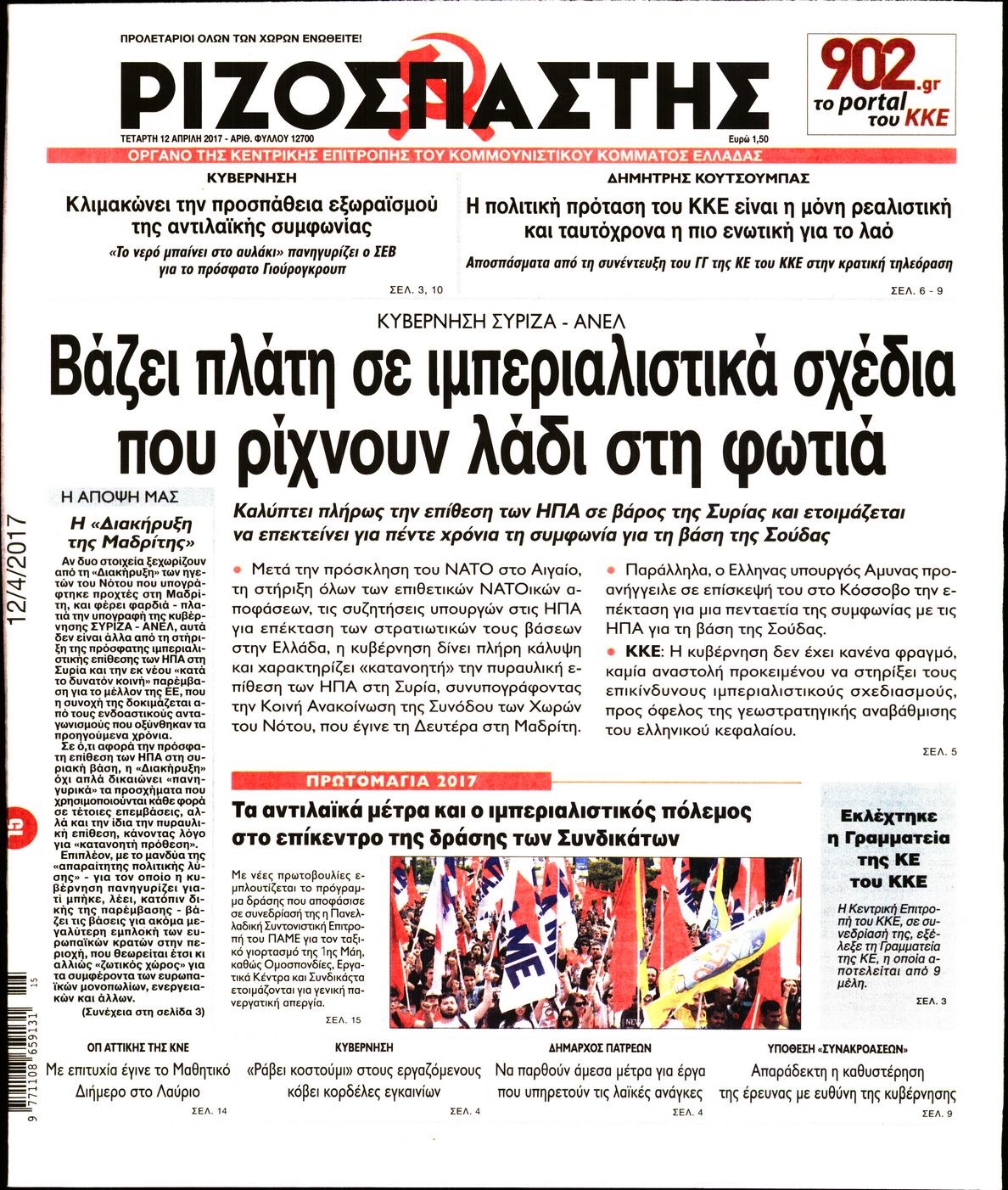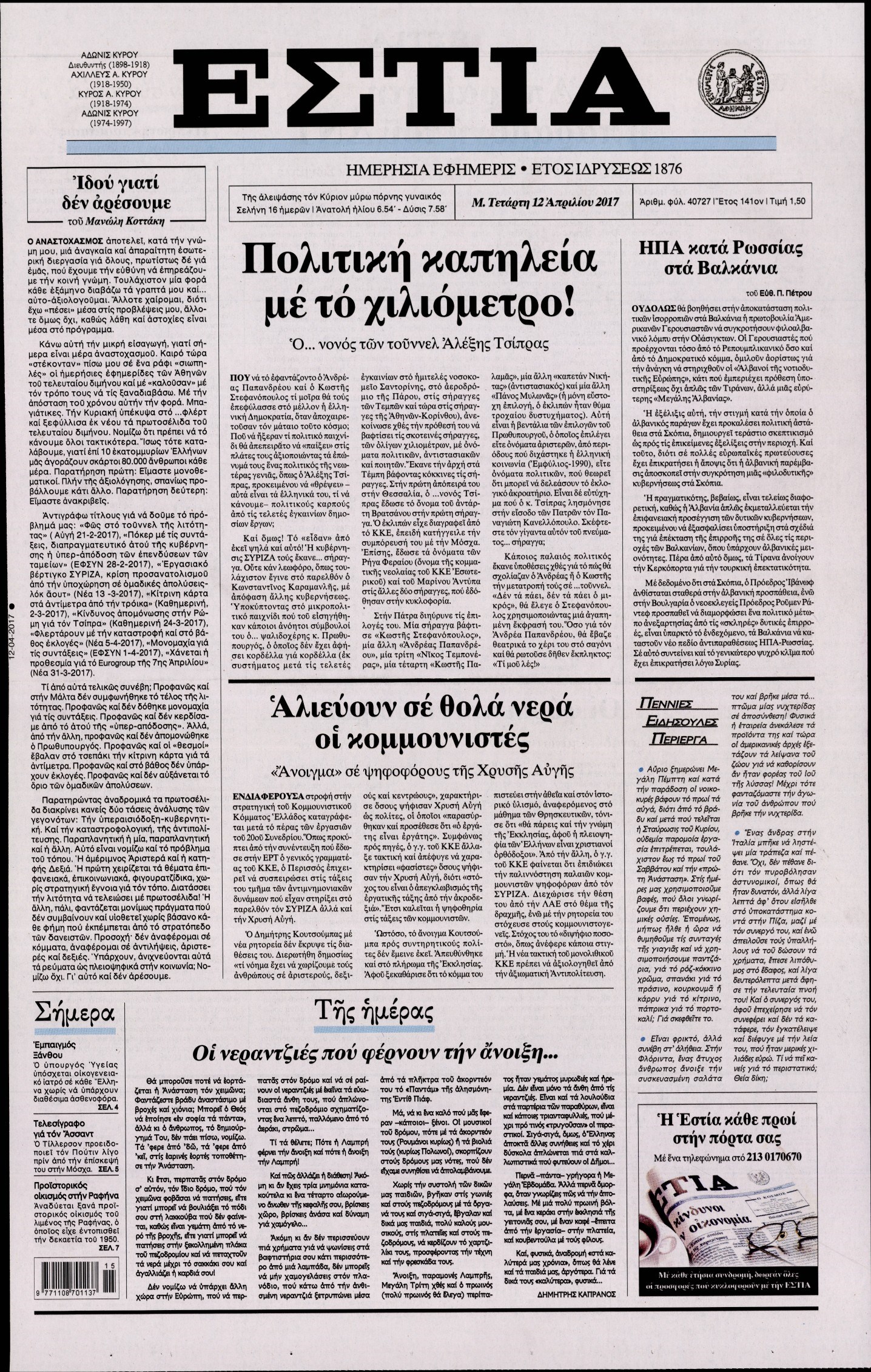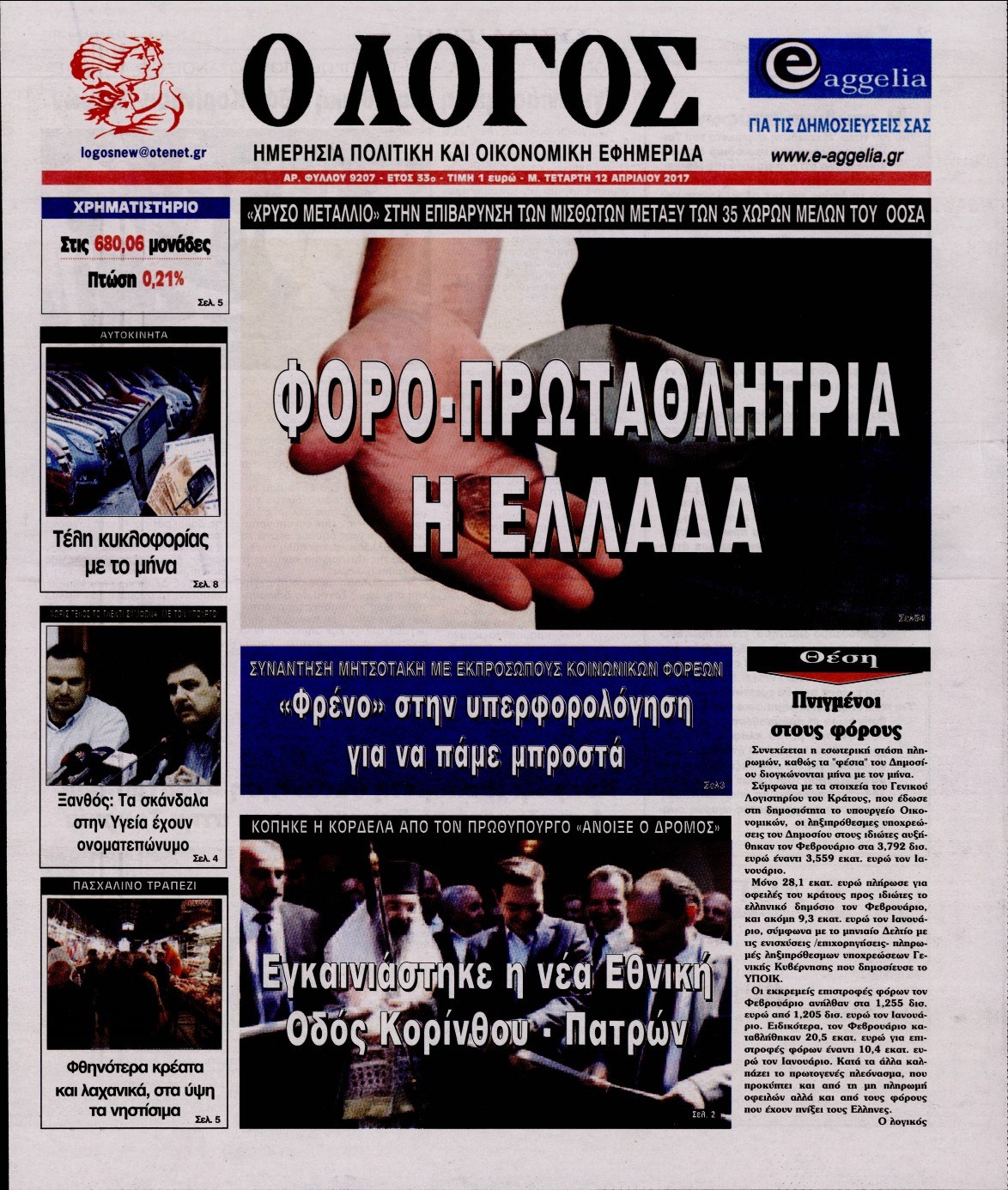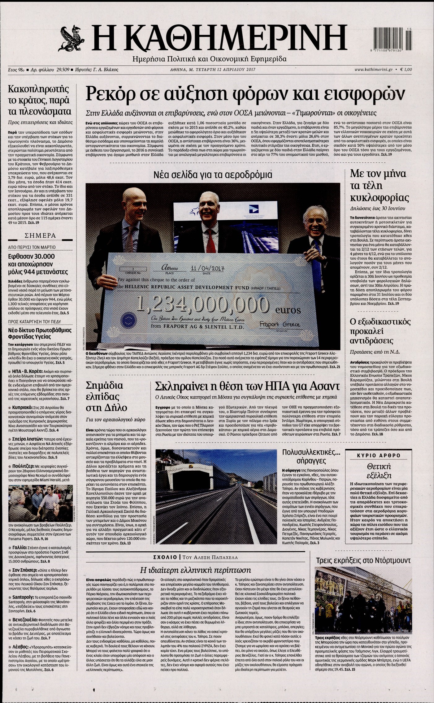 Οι πολιτικές εφημερίδες 12/4/2017