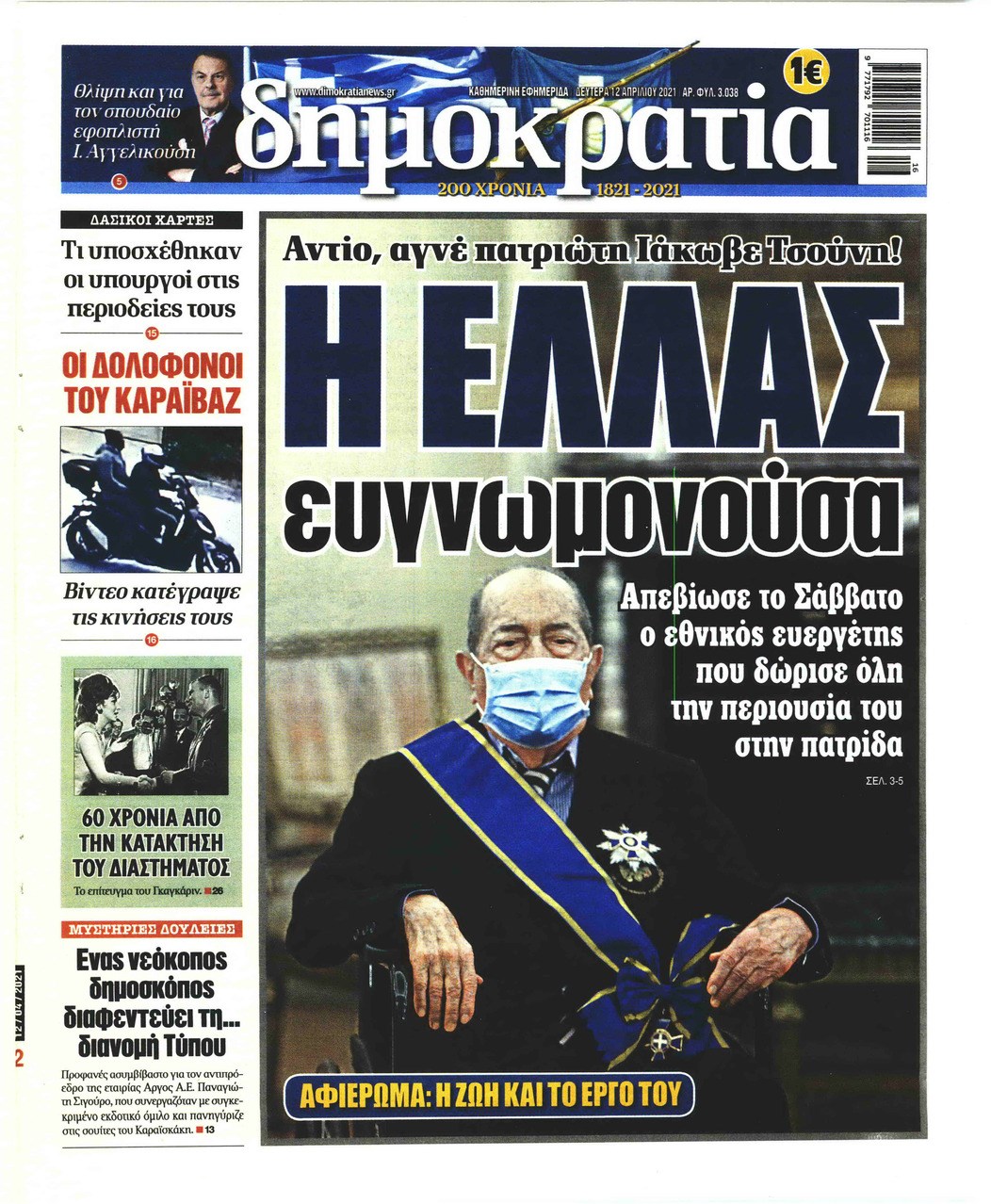 Οι πολιτικές εφημερίδες 12/4/2021 Σήφης Γαρυφαλάκης 06:33, Δευτέρα 12 Απριλίου 2021 Media Διαβάστε τα πρωτοσέλιδα των πολιτικών εφημερίδων… ΕΦΗΜΕΡΙΔΕΣ ΠΟΛΙΤΙΚΕΣ ΕΦΗΜΕΡΙΔΕΣ ΠΡΩΤΟΣΕΛΙΔΑ ΠΡΩΤΟΣΕΛΙΔΑ ΕΦΗΜΕΡΙΔΩΝ Μοιράσου το: σχολίασε κι εσύ (0 σχόλια) Ακολουθήστε το enikos.gr στο Google News και μάθετε πρώτοι όλες τις ειδήσεις Δείτε όλες τις τελευταίες ειδήσεις από την Ελλάδα και τον Κόσμο στο enikos.gr Ειδήσεις Ροή Ειδήσεων 5 ώρες πριν Εκτός ευρωομάδας ΣΥΡΙΖΑ ο Νίκος Παππάς μετά την επίθεση στον δημοσιογράφο Νίκο Γιαννόπουλο – Η μήνυση και οι νέες δηλώσεις 6 ώρες πριν «Αγριεύουν» οι αγρότες: «Δεν συντρέχει λόγος συνάντησης με τον πρωθυπουργό» – Ώρα αποφάσεων στη σύσκεψη της Πέμπτης 6 ώρες πριν Κυψέλη: Χωρίς την οικογένειά της δίπλα της απολογήθηκε η 16χρονη – «Της είχε επιτεθεί κάποιος για να την βιάσει, φοβήθηκε και κυκλοφορούσε με μαχαίρι» 5 ώρες πριν Politico: Το πρόβλημα της Ευρώπης δεν είναι το Βέλγιο αλλά ο Ντόναλντ Τραμπ 7 ώρες πριν Αλεξανδρούπολη: Πολυοργανική ανεπάρκεια λόγω υποσιτισμού η αιτία θανάτου του 3χρονου αγοριού 6 ώρες πριν Μυστήριο με τεράστιες κυκλικές πέτρες 200 κιλών – Ανακαλύφθηκαν τυχαία κατά τη διάρκεια οδικών έργων και κανείς δεν ξέρει από πού προέρχονται 7 ώρες πριν Ύπνος: Ειδικός εξηγεί τον πραγματικό λόγο που ξυπνάτε στις 4 τα ξημερώματα – Ο ρόλος των ορμονών και του κιρκάδιου ρυθμού 8 ώρες πριν Αριθμολογία: Οι άνθρωποι που έχουν γεννηθεί αυτές τις 4 ημερομηνίες, είναι τρυφεροί και αγαπούν ανιδιοτελώς 19 ώρες πριν 20 χρόνια τα Χριστούγεννα ξεκινούν στα Public με μεγάλη ποικιλία σε δώρα! 8 λεπτά πριν Κτηνοτρόφοι: Με δάκρυα στα μάτια ζουν τον εφιάλτη των άδειων στάβλων – «Καταστράφηκαν οι ζωές μας» 22 λεπτά πριν Νέο αμερικανικό πλήγμα σε σκάφος που φέρεται να μετέφερε ναρκωτικά στον Ειρηνικό – Τέσσερις νεκροί 38 λεπτά πριν Αλ Τσαντίρι Νιουζ: «Λύγισε» ο Δημήτρης Λάλος για τον Δημήτρη Ήμελλο – «Τον μνημονεύω, να ‘ναι καλά εκεί που είναι» 53 λεπτά πριν GNTM: Με δάκρυα τον αποχαιρέτησε η Ηλιάνα Παπαγεωργίου πριν από τον ημιτελικό – «Αισθάνομαι πολύ παράξενα» 1 ώρα πριν Αμερικανικά στρατεύματα στον Ισημερινό για «προσωρινή» επιχείρηση κατά των ναρκωτικών ENIKOS NETWORK Αϋπνία: Το κόλπο που θα σας βοηθήσει να κοιμηθείτε απόψε – Είναι απλό και έχει αποτέλεσμα 2,6 εκατομμύρια πολίτες έχουν ήδη εμβολιαστεί κατά της γρίπης ΕΛΣΤΑΤ: Τι δείχνουν τα νέα στοιχεία για τις ηλεκτρονικές παραγγελίες των επιχειρήσεων ΚΕΠΕ: Οι 3 διακριτές συμβολές των ΜμΕ και της μεταποίησης στην ελληνική οικονομία Χαρτογραφώντας το «σημείο χωρίς επιστροφή»: Για πρώτη φορά αποκαλύπτεται με λεπτομέρεια το ακανθώδες όριο της ατμόσφαιρας τ... Η Google καταργεί τη λειτουργία «dark web report» – Πώς θα μπορούν οι χρήστες να διαγράφουν τα δεδομένα τους περισσότερα 02:30 , Πέμπτη 18 Δεκεμβρίου 2025 Αλ Τσαντίρι Νιουζ: Η κόρη της Πάολα στο κοινό – Η ατάκα Λαζόπουλου που την έκανε να «κοκκινήσει» Γιορτινή διάθεση και ευχάριστες στιγμές γέμισε η αποψινή, τελευταία για το 2025, εκπομπή του «... 22:24 , Τετάρτη 17 Δεκεμβρίου 2025 Το Σπίτι Δίπλα Στο Ποτάμι: Σε κίνδυνο η υγεία του Απόστολου – Τι θα δούμε απόψε “Το Σπίτι Δίπλα στο Ποτάμι” ξετυλίγει το νήμα της ζωής των πέντε αδελφών με καταισ... 21:14 , Τετάρτη 17 Δεκεμβρίου 2025 Παιχνίδια Εκδίκησης: Θα καταφέρει ο Χρήστος να κλονίσει την εμπιστοσύνη της Μάγιας απέναντι στον Άγη; Τα «Παιχνίδια Εκδίκησης» έρχονται απόψε στις 22:30, στον Αντ1, με το τελευταίο επεισόδιο της χ... 20:57 , Τετάρτη 1