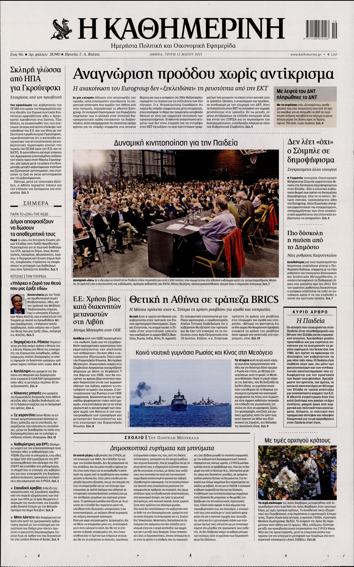 Οι πολιτικές εφημερίδες 12/5/2015 Enikos Newsroom 06:47, Τρίτη 12 Μαΐου 2015 Media Διαβάστε τα σημερινά πρωτοσέλιδα των πολιτικών εφημερίδων: ΠΟΛΙΤΙΚΕΣ ΕΦΗΜΕΡΙΔΕΣ ΠΡΩΤΟΣΕΛΙΔΑ Μοιράσου το: σχολίασε κι εσύ (0 σχόλια) Ακολουθήστε το enikos.gr στο Google News και μάθετε πρώτοι όλες τις ειδήσεις Δείτε όλες τις τελευταίες ειδήσεις από την Ελλάδα και τον Κόσμο στο enikos.gr Ειδήσεις Ροή Ειδήσεων 2 ώρες πριν «Αγριεύουν» οι αγρότες: Κλειστή η Αθηνών – Λαμίας στο Κάστρο, στις σήραγγες των Τεμπών τα τρακτέρ – 48ωροι αποκλεισμοί δρόμων και μπλόκα σε τελωνεία 5 ώρες πριν Το «τελευταίο αντίο» στον Γιώργο Παπαδάκη – Θλίψη και βουβός πόνος στο αποτεφρωτήριο της Ριτσώνας 1 ώρα πριν Χατζηδάκης στον Realfm 97,8 για αγρότες: Η χώρα δεν μπορεί να καταστεί όμηρος επ’ άπειρον αυτής της κατάστασης 2 ώρες πριν Πάτρα: Φωτογραφικά ντοκουμέντα από τη φονική συμπλοκή με θύμα τον 30χρονο – «Βγήκε μαχαίρι» 1 ώρα πριν Τραγωδία στην Αρκτική: Τουρίστρια παρασύρθηκε από παγωμένα νερά σε δραστηριότητα «ice floating» – Γιατί τη θεωρούν νεκρή 7 ώρες πριν Τα 4 ζώδια που παίρνουν το «δώρο» που δικαιούνται – «Το σύμπαν σας επιβραβεύει για τις σωστές επιλογές σας» 6 ώρες πριν Είστε πάντα συνεπείς στα ραντεβού σας; Αυτά είναι τα 9 μοναδικά χαρακτηριστικά των ανθρώπων που φτάνουν «ακριβώς στην ώρα τους» 5 ώρες πριν Μητέρα πίστευε ότι ο πόνος που ένιωθε οφειλόταν στο στρες, ώσπου διαγνώστηκε με καρκίνο του παγκρέατος – «Νόμιζα ότι δεν ήταν κάτι σοβαρό» 2 ώρες πριν Νέα θεωρία επανεξετάζει τη διαστολή του Σύμπαντος και τη γεωμετρία του χωροχρόνου – Υπάρχει τελικά η «Σκοτεινή Ενέργεια»; 31 δευτερόλεπτα πριν Ιστιοφόρο προσάραξε στην Ερέτρια εξαιτίας των θυελλωδών ανέμων – Δείτε βίντεο 5 λεπτά πριν Εύβοια: Θρήνος στο τελευταίο «αντίο» στον 15χρονο μαθητή που έπεσε από τη γέφυρα 10 λεπτά πριν Μητσοτάκης: Το 2026 μπαίνει με πολύ θετικούς οιωνούς για τον «Άγιο Σάββα» – Το ΕΣΥ αλλάζει 15 λεπτά πριν Ισπανία: Η Καθολική Εκκλησία θα αποζημιώσει τα θύματα σεξουαλικής κακοποίησης – Τι συμφωνήθηκε με την κυβέρνηση 20 λεπτά πριν Δένδιας στη Βουλή: Εθνική ευθύνη η εκλογίκευση στις Ένοπλες Δυνάμεις ENIKOS NETWORK ΕΟΦ: Οδηγίες για ατομικές παραγγελίες φαρμάκων που δεν κυκλοφορούν στην Ελλάδα Βιταμίνη D + ασβέστιο: Πώς να τα παίρνετε για να ενισχύσετε τα οστά σας – Σε ποιες τροφές υπάρχουν; Eurostat: Στο 8,2% η ανεργία στην Ελλάδα τον Νοέμβριο – Τα στοιχεία για την Ευρωζώνη Διαβατήρια: Tι αλλάζει στην έκδοσή τους και τι πρέπει να γνωρίζουν οι πολίτες Ο Google Assistant θα παραμείνει λίγο περισσότερο για ορισμένους χρήστες Android Τεστ προσωπικότητας: Το βάζο που θα επιλέξετε αποκαλύπτει πώς λύνετε προβλήματα στη ζωή σας περισσότερα 12:40 , Πέμπτη 08 Ιανουαρίου 2026 Ακούστε την εκπομπή του Νίκου Χατζηνικολάου 8/1/2026 Ακούστε την εκπομπή του Νίκου Χατζηνικολάου στον ραδιοφωνικό σταθμό RealFm 97,8, την Πέμπτη 8 ... 10:05 , Πέμπτη 08 Ιανουαρίου 2026 Ρεκόρ υποψηφιοτήτων για το «One Battle After Another» στα βραβεία του Σωματείου Ηθοποιών Με την πολυβραβευμένη ταινία «One Battle After Another» του Πολ Τόμας Άντερσον (Paul Thomas An... 08:52 , Πέμπτη 08 Ιανουαρίου 2026 Αυτή την Κυριακή με τη Realnews: Μυστηριώδης εξαφάνιση – Ένα καθηλωτικό θρίλερ γεμάτο αγωνία από τον διεθνώς αναγνωρισμένο συγγραφέα Rick Mofina Αυτή την Κυριακή με τη Realnews: Μυστηριώδης εξαφάνιση –Ένα καθηλωτικό θρίλερ γεμάτο αγω... 08:00 , Πέμπτη 08 Ιανουαρίου 2026 Την Κυριακή με τη Realnews: Ό,τι και αν αγοράσεις, σκανάρεις και κερδίζεις! Την Κυριακή με τη Realnews: Ό,τι και αν αγοράσεις, 