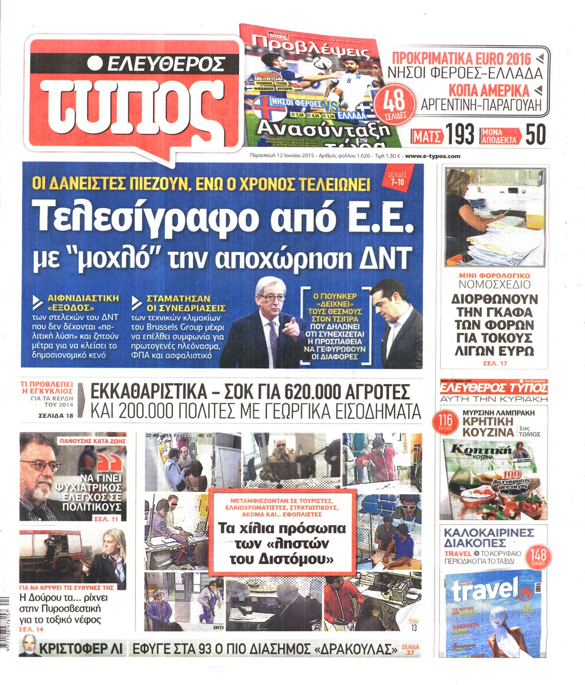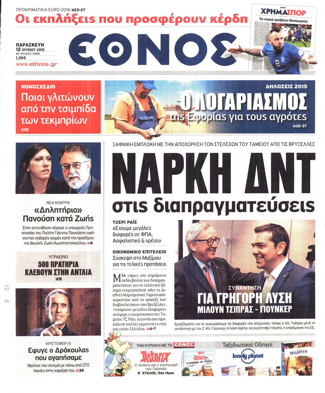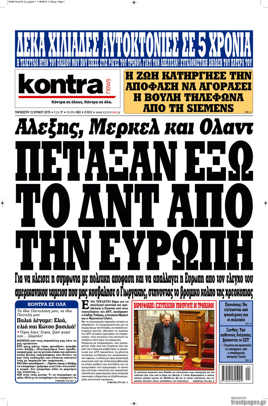Οι πολιτικές εφημερίδες 12/6/2015 Enikos Newsroom 06:48, Παρασκευή 12 Ιουνίου 2015 Media Διαβάστε τα σημερινά πρωτοσέλιδα των πολιτικών εφημερίδων: ΠΟΛΙΤΙΚΕΣ ΕΦΗΜΕΡΙΔΕΣ ΠΡΩΤΟΣΕΛΙΔΑ Μοιράσου το: σχολίασε κι εσύ (0 σχόλια) Ακολουθήστε το enikos.gr στο Google News και μάθετε πρώτοι όλες τις ειδήσεις Δείτε όλες τις τελευταίες ειδήσεις από την Ελλάδα και τον Κόσμο στο enikos.gr Ειδήσεις Ροή Ειδήσεων 4 ώρες πριν Χριστούγεννα στα μπλόκα: Επιμένουν στις κινητοποιήσεις τους οι αγρότες – Ανοίγουν τα διόδια το Σαββατοκύριακο 5 ώρες πριν Ουκρανία: Η άνευ προηγουμένου επίθεση σε ρωσικό τάνκερ στη Μεσόγειο και το μήνυμα προς στον Πούτιν – Το «μακρύ χέρι» του Κιέβου 4 ώρες πριν Πούτιν: Τα μηνύματα σε Ευρώπη και ΝΑΤΟ από το μαραθώνιο «σόου» του – Η απαίτηση για «σεβασμό» και η ειρήνη «με τους όρους» της Μόσχας 5 ώρες πριν Τραμπ: Δεν αποκλείει την πιθανότητα ενός πολέμου στη Βενεζουέλα – «Ο Μαδούρο ξέρει καλύτερα από τον καθένα τι ακριβώς θέλω» 5 ώρες πριν Συνεχίζει να προκαλεί ο Μίτσκοσκι: «Για μένα το όνομα Μακεδονία είναι ιερό» 4 ώρες πριν Ανακαλύφθηκαν αρχαία χρυσά νομίσματα 2.200 ετών που απεικονίζουν τον θεό Απόλλωνα – Η άγνωστη σύνδεση με τον Φίλιππο Β΄ της Μακεδονίας 5 ώρες πριν Ύπνος: Μια κρυφή κατάσταση του εγκεφάλου πριν από τον ύπνο μπορεί να είναι το “κλειδί” για υψηλή ευφυΐα και δημιουργικότητα 6 ώρες πριν Αριθμολογία: Οι άνθρωποι που έχουν γεννηθεί αυτές τις 4 ημερομηνίες, συχνά παρεξηγούνται – «Η καλοσύνη τους κρύβει τεράστια δύναμη» 7 ώρες πριν Ξεχάστε το καθάρισμα το Σαββατοκύριακο: Ο «κανόνας των 20 λεπτών» που θα σας λύσει τα χέρια 23 λεπτά πριν Θεσσαλονίκη: Εξαφανίστηκε 13χρονος από χώρο φιλοξενίας ασυνόδευτων ανηλίκων στο Ωραιόκαστρο 34 λεπτά πριν Ντόναλντ Τραμπ: «Πολύ βαριά αντίποινα» στη Συρία – «Πλήττουμε πολύ δυνατά οχυρά του Ισλαμικού Κράτους» 48 λεπτά πριν Εξάρχεια: Ένταση με μολότοφ, χημικά και κρότου λάμψης 1 ώρα πριν ΗΠΑ: Τραγωδία στην Αλαμπάμα – Σκότωσε την δημοσιογράφο σύζυγό του και αυτοκτόνησε μπροστά στον 3χρονο γιο τους 1 ώρα πριν Πρόταση γάμου στο ΣΕΦ κατά την διάρκεια του αγώνα Ολυμπιακός-Βιλερμπάν – Δείτε βίντεο ENIKOS NETWORK Το ΕΚΑΒ τιμήθηκε από την Ακαδημία Αθηνών για τα 40 χρόνια προσφοράς του Έχετε πραγματικά μεγάλη καρδιά; 10 χαρακτηριστικά όσων έχουν καλοσύνη Αναστολή μέτρων αναγκαστικής εκτέλεσης για κτηνοτρόφους που πλήττονται από την ευλογιά των αιγοπροβάτων Πλήρης επάρκεια προϊόντων στις λαϊκές της Αττικής, παρά τις αγροτικές κινητοποιήσεις – Τι απαντούν οι πωλητές Χαρτογραφώντας το «σημείο χωρίς επιστροφή»: Για πρώτη φορά αποκαλύπτεται με λεπτομέρεια το ακανθώδες όριο της ατμόσφαιρας τ... Η Google καταργεί τη λειτουργία «dark web report» – Πώς θα μπορούν οι χρήστες να διαγράφουν τα δεδομένα τους περισσότερα 22:42 , Παρασκευή 19 Δεκεμβρίου 2025 Γιώργος Γιαννόπουλος για “Το σόι σου”: “Είναι ευτυχία και ευλογία αυτή η σειρά” «Είναι ευτυχία και ευλογία η συγκυρία αυτής της σειράς», θα πει ο Γιώργος Γιαννόπουλος -ο αγαπ... 20:37 , Παρασκευή 19 Δεκεμβρίου 2025 Don’t Forget The Lyrics: Η Έλλη Κοκκίνου υποδέχεται 4 παίκτες που θα κάνουν τα πάντα για να μη χάσουν ούτε… μισή λέξη από τους στίχους Το «Don’t Forget The Lyrics» επιστρέφει απόψε, Παρασκευή 19 Δεκεμβρίου, στις 21:00 με νέο επει... 19:31 , Παρασκευή 19 Δεκεμβρίου 2025 GNTM: Απόψε ο μεγάλος τελικός για τους 4 φιναλίστ Έπειτα από μήνες γεμάτους μόδα, δημιουργία και έντονες αναμετρήσεις, το GNTM 2025 κορυφώνεται,... 18:11 , Παρασκευή 19 Δεκεμβρίου 2025 Το σ