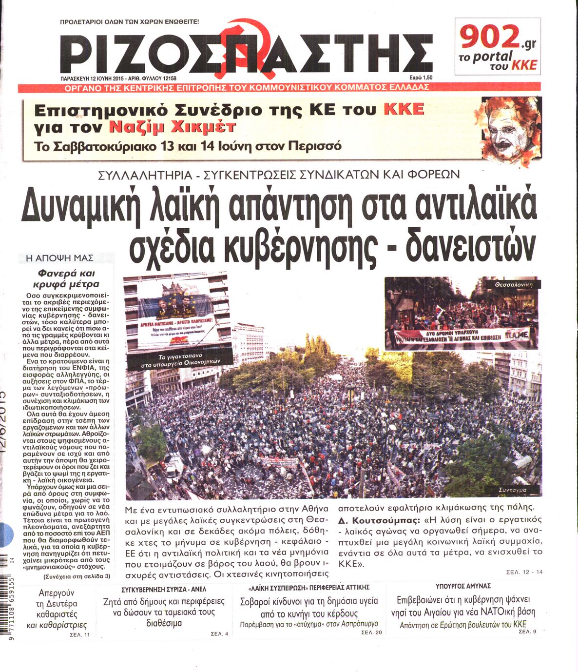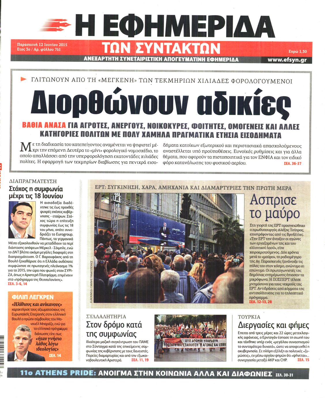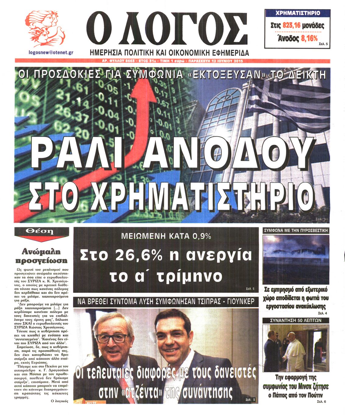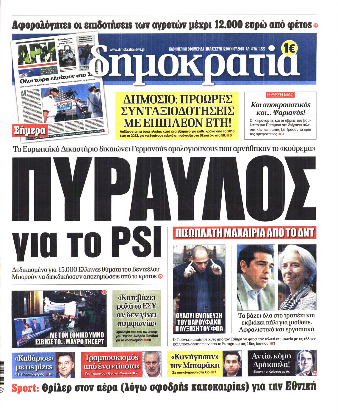 Οι πολιτικές εφημερίδες 12/6/2015 Enikos Newsroom 06:48, Παρασκευή 12 Ιουνίου 2015 Media Διαβάστε τα σημερινά πρωτοσέλιδα των πολιτικών εφημερίδων: ΠΟΛΙΤΙΚΕΣ ΕΦΗΜΕΡΙΔΕΣ ΠΡΩΤΟΣΕΛΙΔΑ Μοιράσου το: σχολίασε κι εσύ (0 σχόλια) Ακολουθήστε το enikos.gr στο Google News και μάθετε πρώτοι όλες τις ειδήσεις Δείτε όλες τις τελευταίες ειδήσεις από την Ελλάδα και τον Κόσμο στο enikos.gr Ειδήσεις Ροή Ειδήσεων 4 ώρες πριν Χριστούγεννα στα μπλόκα: Επιμένουν στις κινητοποιήσεις τους οι αγρότες – Ανοίγουν τα διόδια το Σαββατοκύριακο 5 ώρες πριν Ουκρανία: Η άνευ προηγουμένου επίθεση σε ρωσικό τάνκερ στη Μεσόγειο και το μήνυμα προς στον Πούτιν – Το «μακρύ χέρι» του Κιέβου 4 ώρες πριν Πούτιν: Τα μηνύματα σε Ευρώπη και ΝΑΤΟ από το μαραθώνιο «σόου» του – Η απαίτηση για «σεβασμό» και η ειρήνη «με τους όρους» της Μόσχας 5 ώρες πριν Τραμπ: Δεν αποκλείει την πιθανότητα ενός πολέμου στη Βενεζουέλα – «Ο Μαδούρο ξέρει καλύτερα από τον καθένα τι ακριβώς θέλω» 5 ώρες πριν Συνεχίζει να προκαλεί ο Μίτσκοσκι: «Για μένα το όνομα Μακεδονία είναι ιερό» 4 ώρες πριν Ανακαλύφθηκαν αρχαία χρυσά νομίσματα 2.200 ετών που απεικονίζουν τον θεό Απόλλωνα – Η άγνωστη σύνδεση με τον Φίλιππο Β΄ της Μακεδονίας 5 ώρες πριν Ύπνος: Μια κρυφή κατάσταση του εγκεφάλου πριν από τον ύπνο μπορεί να είναι το “κλειδί” για υψηλή ευφυΐα και δημιουργικότητα 6 ώρες πριν Αριθμολογία: Οι άνθρωποι που έχουν γεννηθεί αυτές τις 4 ημερομηνίες, συχνά παρεξηγούνται – «Η καλοσύνη τους κρύβει τεράστια δύναμη» 7 ώρες πριν Ξεχάστε το καθάρισμα το Σαββατοκύριακο: Ο «κανόνας των 20 λεπτών» που θα σας λύσει τα χέρια 23 λεπτά πριν Θεσσαλονίκη: Εξαφανίστηκε 13χρονος από χώρο φιλοξενίας ασυνόδευτων ανηλίκων στο Ωραιόκαστρο 34 λεπτά πριν Ντόναλντ Τραμπ: «Πολύ βαριά αντίποινα» στη Συρία – «Πλήττουμε πολύ δυνατά οχυρά του Ισλαμικού Κράτους» 48 λεπτά πριν Εξάρχεια: Ένταση με μολότοφ, χημικά και κρότου λάμψης 1 ώρα πριν ΗΠΑ: Τραγωδία στην Αλαμπάμα – Σκότωσε την δημοσιογράφο σύζυγό του και αυτοκτόνησε μπροστά στον 3χρονο γιο τους 1 ώρα πριν Πρόταση γάμου στο ΣΕΦ κατά την διάρκεια του αγώνα Ολυμπιακός-Βιλερμπάν – Δείτε βίντεο ENIKOS NETWORK Το ΕΚΑΒ τιμήθηκε από την Ακαδημία Αθηνών για τα 40 χρόνια προσφοράς του Έχετε πραγματικά μεγάλη καρδιά; 10 χαρακτηριστικά όσων έχουν καλοσύνη Αναστολή μέτρων αναγκαστικής εκτέλεσης για κτηνοτρόφους που πλήττονται από την ευλογιά των αιγοπροβάτων Πλήρης επάρκεια προϊόντων στις λαϊκές της Αττικής, παρά τις αγροτικές κινητοποιήσεις – Τι απαντούν οι πωλητές Χαρτογραφώντας το «σημείο χωρίς επιστροφή»: Για πρώτη φορά αποκαλύπτεται με λεπτομέρεια το ακανθώδες όριο της ατμόσφαιρας τ... Η Google καταργεί τη λειτουργία «dark web report» – Πώς θα μπορούν οι χρήστες να διαγράφουν τα δεδομένα τους περισσότερα 22:42 , Παρασκευή 19 Δεκεμβρίου 2025 Γιώργος Γιαννόπουλος για “Το σόι σου”: “Είναι ευτυχία και ευλογία αυτή η σειρά” «Είναι ευτυχία και ευλογία η συγκυρία αυτής της σειράς», θα πει ο Γιώργος Γιαννόπουλος -ο αγαπ... 20:37 , Παρασκευή 19 Δεκεμβρίου 2025 Don’t Forget The Lyrics: Η Έλλη Κοκκίνου υποδέχεται 4 παίκτες που θα κάνουν τα πάντα για να μη χάσουν ούτε… μισή λέξη από τους στίχους Το «Don’t Forget The Lyrics» επιστρέφει απόψε, Παρασκευή 19 Δεκεμβρίου, στις 21:00 με νέο επει... 19:31 , Παρασκευή 19 Δεκεμβρίου 2025 GNTM: Απόψε ο μεγάλος τελικός για τους 4 φιναλίστ Έπειτα από μήνες γεμάτους μόδα, δημιουργία και έντονες αναμετρήσεις, το GNTM 2025 κορυφώνεται,... 18:11 , Παρασκευή 19 Δεκεμβρίου 2025 Το σ