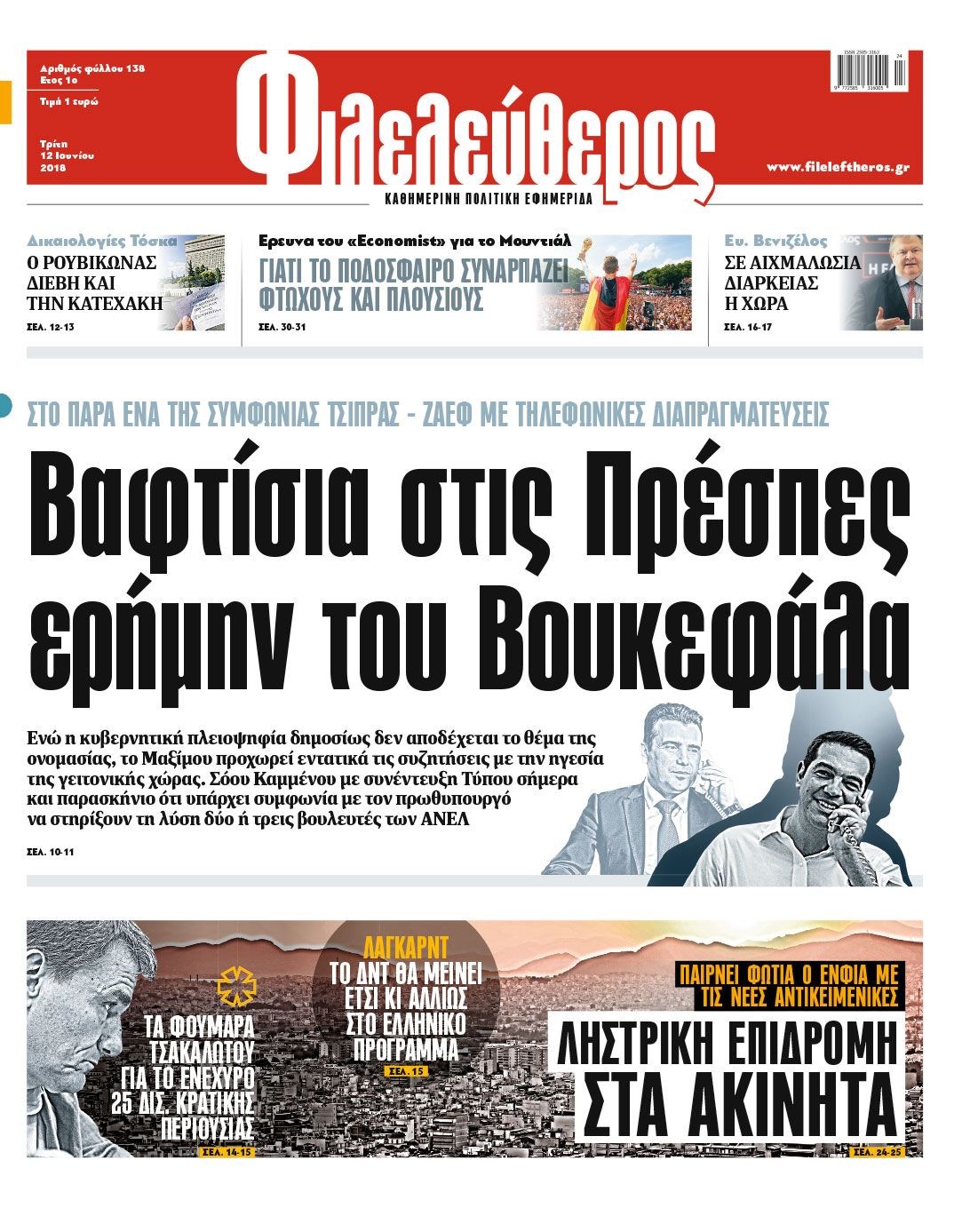 Οι πολιτικές εφημερίδες 12/6/2018 Κώστας Τεό 06:29, Τρίτη 12 Ιουνίου 2018 Media Διαβάστε τα σημερινά πρωτοσέλιδα των πολιτικών εφημερίδων: ΠΟΛΙΤΙΚΕΣ ΕΦΗΜΕΡΙΔΕΣ ΠΡΩΤΟΣΕΛΙΔΑ Μοιράσου το: σχολίασε κι εσύ (0 σχόλια) Ακολουθήστε το enikos.gr στο Google News και μάθετε πρώτοι όλες τις ειδήσεις Δείτε όλες τις τελευταίες ειδήσεις από την Ελλάδα και τον Κόσμο στο enikos.gr Ειδήσεις Ροή Ειδήσεων 2 ώρες πριν Γιορτές με μπλόκα για τους αγρότες: Ανοίγουν διόδια και μοιράζουν προϊόντα στους ταξιδιώτες 13 λεπτά πριν Τσιάρας για αγρότες: Ικανοποιείται το αίτημα για αφορολόγητο πετρέλαιο στη μάνικα, πρόθεσή μας να μειωθεί ακόμη περισσότερο η τιμή στο ρεύμα 27 λεπτά πριν Αρχεία Έπσταϊν: Οι συγκλονιστικές φωτογραφίες – Ο Μάικλ Τζάκσον, ο Μικ Τζάγκερ και ο Κέβιν Σπέισι ανάμεσα στους διάσημους που απεικονίζονται 2 ώρες πριν Νέες ταυτότητες: Μεγάλη αναμονή για ραντεβού στην Αττική – Τέλος τα ταξίδια εκτός Ελλάδος από τον Αύγουστο για όσους δεν έχουν αλλάξει 59 λεπτά πριν Ινδία: Επτά ελέφαντες σκοτώθηκαν κατά τη σύγκρουση επιβατικού τρένου με κοπάδι 3 ώρες πριν Μία νέα «χρυσή» περίοδος αρχίζει για 3 ζώδια από σήμερα – «Μία αναπάντεχη ευκαιρία οδηγεί στην επιτυχία» 5 ώρες πριν Αρχαιολόγοι ανακάλυψαν σε χωράφι απεικόνιση 600 ετών ενός Αγίου – Τα στοιχεία που δείχνουν ότι μαρτύρησε 4 ώρες πριν Αγχώνεται για το χριστουγεννιάτικο δώρο που πήρε στην πλούσια σύντροφό του – «Φοβάμαι πως θα το βρει φθηνιάρικο, φοράει βραχιόλια Cartier» 56 λεπτά πριν Διαιτολόγος αποκαλύπτει 9 πρωινές συνήθειες που «λιώνουν» το κοιλιακό λίπος – «Υποστηρίζουν την υγιεινή απώλεια βάρους» 13 λεπτά πριν Τσιάρας για αγρότες: Ικανοποιείται το αίτημα για αφορολόγητο πετρέλαιο στη μάνικα, πρόθεσή μας να μειωθεί ακόμη περισσότερο η τιμή στο ρεύμα 20 λεπτά πριν Η Ζιζέλ Μπούντχεν παντρεύτηκε τον δάσκαλο ζίου-ζίτσου, Χοακίμ Βαλέντε 27 λεπτά πριν Αρχεία Έπσταϊν: Οι συγκλονιστικές φωτογραφίες – Ο Μάικλ Τζάκσον, ο Μικ Τζάγκερ και ο Κέβιν Σπέισι ανάμεσα στους διάσημους που απεικονίζονται 36 λεπτά πριν Χρήστος Μάντακας: «Θα μπορούσα να είχα φύγει από τη ζωή, δεν μπορούσα να περπατήσω…» 43 λεπτά πριν Εντυπωσιακό βίντεο από «τσουνάμι» πάγου στη Σιβηρία – Πώς προκαλείται το σπάνιο φαινόμενο ENIKOS NETWORK Γήρανση του εγκεφάλου: Νευροεπιστήμονες ανακάλυψαν τη 10λεπτη δραστηριότητα που μπορεί να τη σταματήσει Είστε μόνιμα απρόσεκτοι; 3 σημάδια που δείχνουν ότι μπορεί να είναι σύμπτωμα πάθησης Χρήστος Δήμας: Στα 2,5 εκατ. ευρώ την ημέρα το κόστος από το άνοιγμα των διοδίων από τους αγρότες – Θα αξιώσουν αποζημίωση ... Χριστούγεννα και Πρωτοχρονιά: Πώς αμείβονται όσοι εργαστούν Χαρτογραφώντας το «σημείο χωρίς επιστροφή»: Για πρώτη φορά αποκαλύπτεται με λεπτομέρεια το ακανθώδες όριο της ατμόσφαιρας τ... Η Google καταργεί τη λειτουργία «dark web report» – Πώς θα μπορούν οι χρήστες να διαγράφουν τα δεδομένα τους περισσότερα 11:41 , Σάββατο 20 Δεκεμβρίου 2025 «Η αγάπη δεν χάνεται ποτέ»: Η μικρού μήκους ταινία κινουμένων σχεδίων που θέτει ερωτήματα για τη ζωή και τον θάνατο Ο θάνατος είναι ένα από τα πιο σκληρά θέματα που καλείται να διαχειριστεί κάποιος στη διάρκεια... 09:30 , Σάββατο 20 Δεκεμβρίου 2025 «Porto Leone: Στη γειτονιά με τα κόκκινα φανάρια» – Ο Χρόνης αποκαλύπτει στην Αλεξάνδρα το μυστικό για το παιδί της Λένας Η μεγάλη δραματική σειρά του Apha «Porto Leone: Στη γειτονιά με τα κόκκινα φανάρια» μας μεταφέ... 08:14 , Σάββατο 20 Δεκεμβρίου 2025 Τρομεροί γονείς: Η Μαρία Καβογιάνν