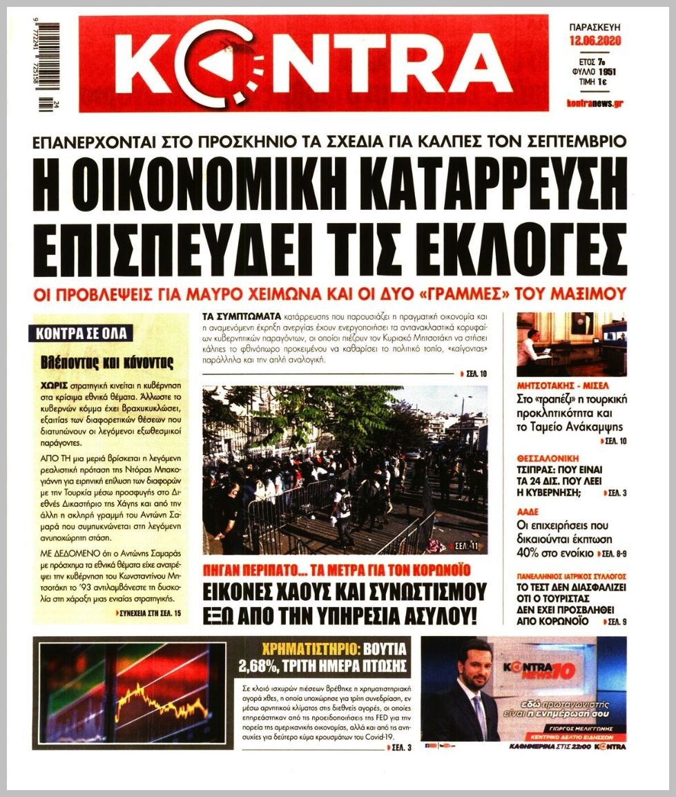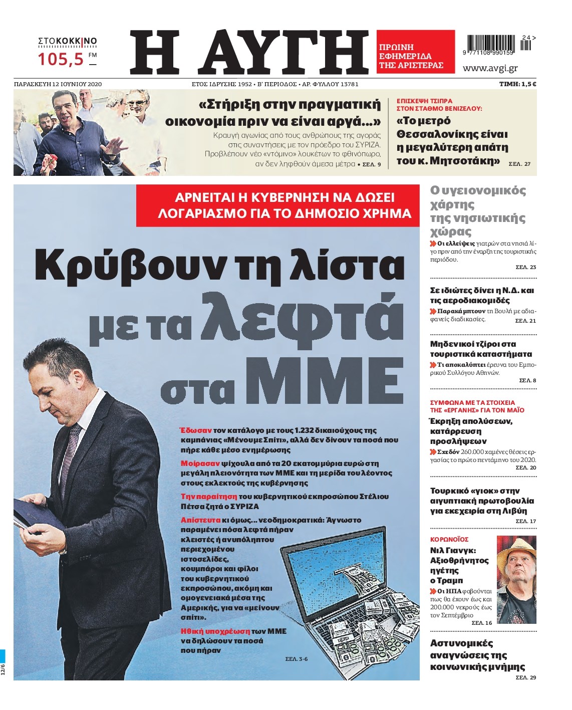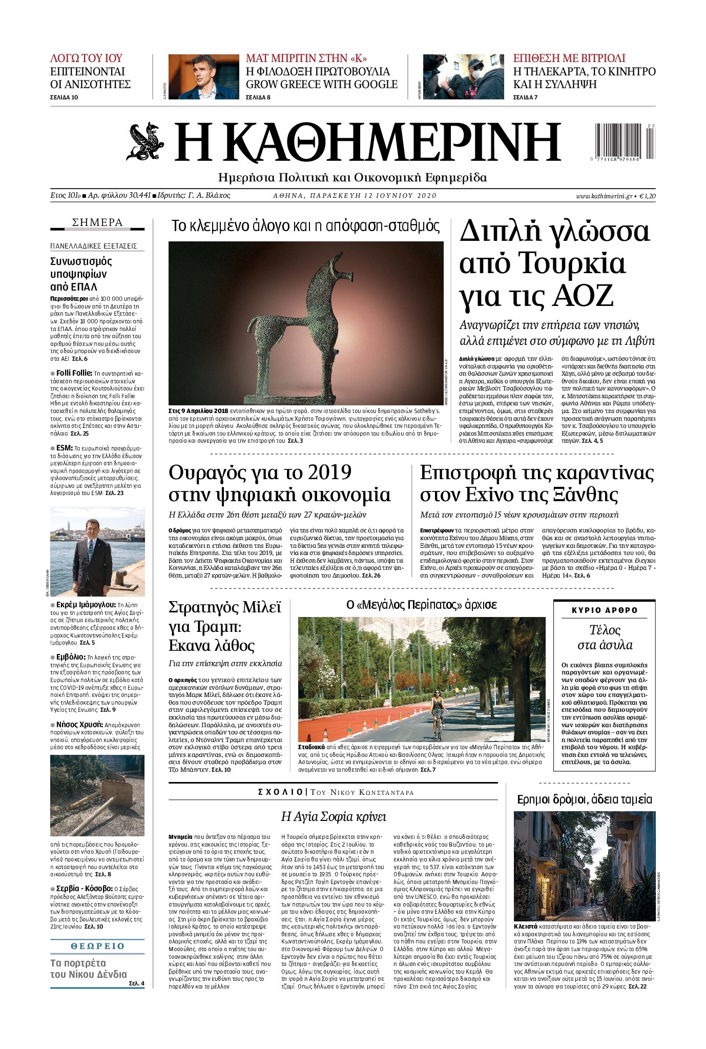 Οι πολιτικές εφημερίδες 12/6/2020 Διονύσης Νίκκας 06:08, Παρασκευή 12 Ιουνίου 2020 Media Διαβάστε τα πρωτοσέλιδα των πολιτικών εφημερίδων… ΠΟΛΙΤΙΚΕΣ ΕΦΗΜΕΡΙΔΕΣ Μοιράσου το: σχολίασε κι εσύ (0 σχόλια) Ακολουθήστε το enikos.gr στο Google News και μάθετε πρώτοι όλες τις ειδήσεις Δείτε όλες τις τελευταίες ειδήσεις από την Ελλάδα και τον Κόσμο στο enikos.gr Ειδήσεις Ροή Ειδήσεων 4 ώρες πριν Χριστούγεννα στα μπλόκα: Επιμένουν στις κινητοποιήσεις τους οι αγρότες – Ανοίγουν τα διόδια το Σαββατοκύριακο 4 ώρες πριν Ουκρανία: Η άνευ προηγουμένου επίθεση σε ρωσικό τάνκερ στη Μεσόγειο και το μήνυμα προς στον Πούτιν – Το «μακρύ χέρι» του Κιέβου 3 ώρες πριν Πούτιν: Τα μηνύματα σε Ευρώπη και ΝΑΤΟ από το μαραθώνιο «σόου» του – Η απαίτηση για «σεβασμό» και η ειρήνη «με τους όρους» της Μόσχας 4 ώρες πριν Τραμπ: Δεν αποκλείει την πιθανότητα ενός πολέμου στη Βενεζουέλα – «Ο Μαδούρο ξέρει καλύτερα από τον καθένα τι ακριβώς θέλω» 5 ώρες πριν Συνεχίζει να προκαλεί ο Μίτσκοσκι: «Για μένα το όνομα Μακεδονία είναι ιερό» 4 ώρες πριν Ανακαλύφθηκαν αρχαία χρυσά νομίσματα 2.200 ετών που απεικονίζουν τον θεό Απόλλωνα – Η άγνωστη σύνδεση με τον Φίλιππο Β΄ της Μακεδονίας 4 ώρες πριν Ύπνος: Μια κρυφή κατάσταση του εγκεφάλου πριν από τον ύπνο μπορεί να είναι το “κλειδί” για υψηλή ευφυΐα και δημιουργικότητα 5 ώρες πριν Αριθμολογία: Οι άνθρωποι που έχουν γεννηθεί αυτές τις 4 ημερομηνίες, συχνά παρεξηγούνται – «Η καλοσύνη τους κρύβει τεράστια δύναμη» 6 ώρες πριν Ξεχάστε το καθάρισμα το Σαββατοκύριακο: Ο «κανόνας των 20 λεπτών» που θα σας λύσει τα χέρια 5 λεπτά πριν Ντόναλντ Τραμπ: «Πολύ βαριά αντίποινα» στη Συρία – «Πλήττουμε πολύ δυνατά οχυρά του Ισλαμικού Κράτους» 20 λεπτά πριν Εξάρχεια: Ένταση με μολότοφ, χημικά και κρότου λάμψης 35 λεπτά πριν ΗΠΑ: Τραγωδία στην Αλαμπάμα – Σκότωσε την δημοσιογράφο σύζυγό του και αυτοκτόνησε μπροστά στον 3χρονο γιο τους 50 λεπτά πριν Πρόταση γάμου στο ΣΕΦ κατά την διάρκεια του αγώνα Ολυμπιακός-Βιλερμπάν – Δείτε βίντεο 1 ώρα πριν Euroleague: Επέστρεψε στις νίκες ο Ολυμπιακός, πήρε την ματσάρα της χρονιάς η Μπάρτσα – Τα αποτελέσματα και η βαθμολογία ENIKOS NETWORK Το ΕΚΑΒ τιμήθηκε από την Ακαδημία Αθηνών για τα 40 χρόνια προσφοράς του Έχετε πραγματικά μεγάλη καρδιά; 10 χαρακτηριστικά όσων έχουν καλοσύνη Αναστολή μέτρων αναγκαστικής εκτέλεσης για κτηνοτρόφους που πλήττονται από την ευλογιά των αιγοπροβάτων Πλήρης επάρκεια προϊόντων στις λαϊκές της Αττικής, παρά τις αγροτικές κινητοποιήσεις – Τι απαντούν οι πωλητές Χαρτογραφώντας το «σημείο χωρίς επιστροφή»: Για πρώτη φορά αποκαλύπτεται με λεπτομέρεια το ακανθώδες όριο της ατμόσφαιρας τ... Η Google καταργεί τη λειτουργία «dark web report» – Πώς θα μπορούν οι χρήστες να διαγράφουν τα δεδομένα τους περισσότερα 22:42 , Παρασκευή 19 Δεκεμβρίου 2025 Γιώργος Γιαννόπουλος για “Το σόι σου”: “Είναι ευτυχία και ευλογία αυτή η σειρά” «Είναι ευτυχία και ευλογία η συγκυρία αυτής της σειράς», θα πει ο Γιώργος Γιαννόπουλος -ο αγαπ... 20:37 , Παρασκευή 19 Δεκεμβρίου 2025 Don’t Forget The Lyrics: Η Έλλη Κοκκίνου υποδέχεται 4 παίκτες που θα κάνουν τα πάντα για να μη χάσουν ούτε… μισή λέξη από τους στίχους Το «Don’t Forget The Lyrics» επιστρέφει απόψε, Παρασκευή 19 Δεκεμβρίου, στις 21:00 με νέο επει... 19:31 , Παρασκευή 19 Δεκεμβρίου 2025 GNTM: Απόψε ο μεγάλος τελικός για τους 4 φιναλίστ Έπειτα από μήνες γεμάτους μόδα, δημιουργία και έντονες αναμετρήσεις, το GNTM 2025 κορυφώνεται,... 18:11 , Παρασκευή 19 Δεκεμβ