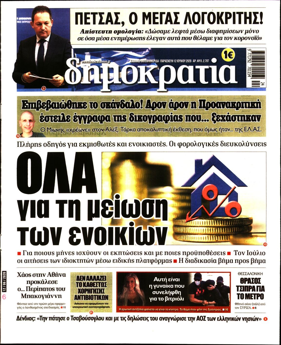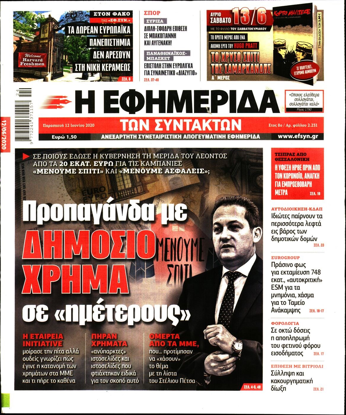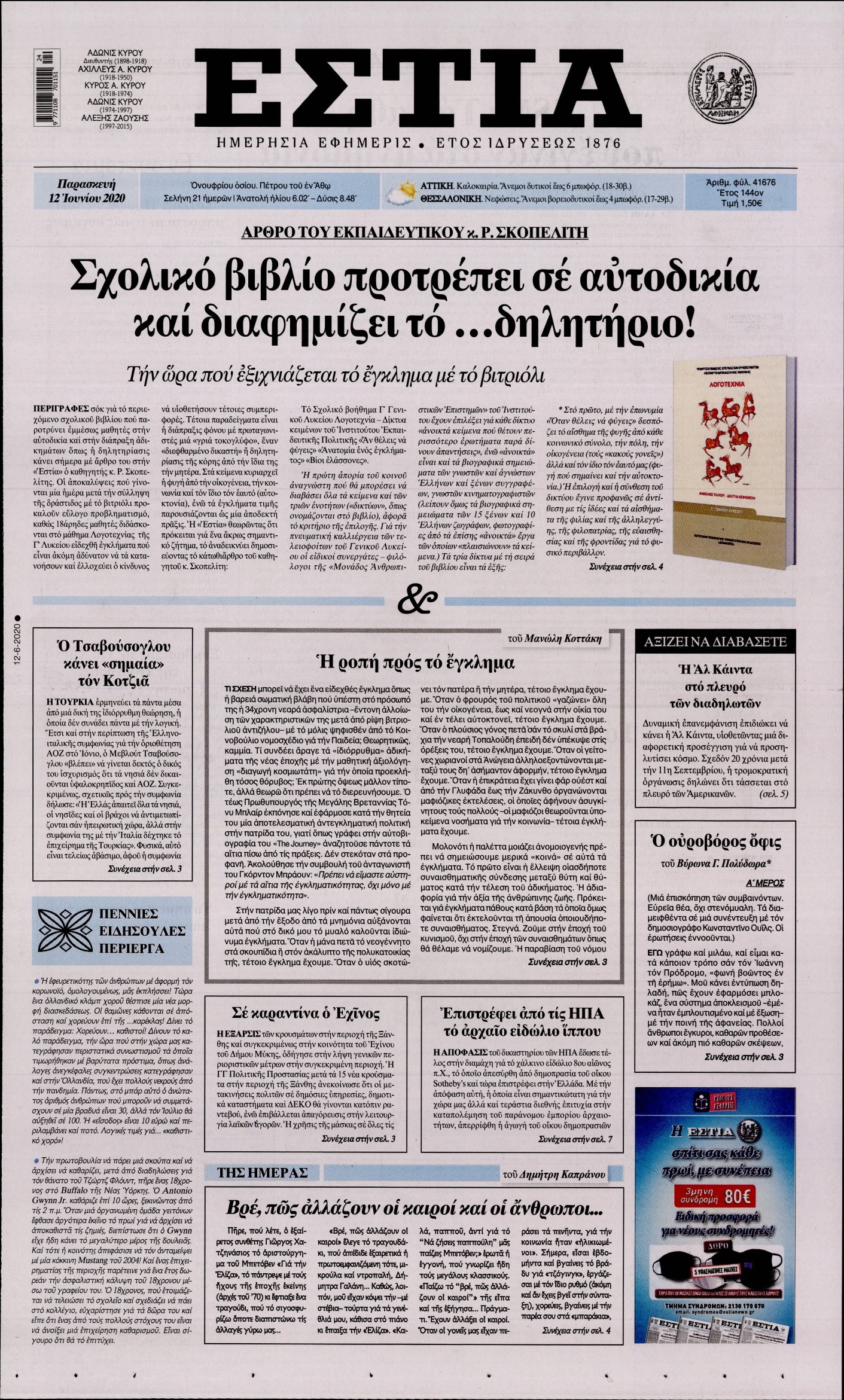 Οι πολιτικές εφημερίδες 12/6/2020 Διονύσης Νίκκας 06:08, Παρασκευή 12 Ιουνίου 2020 Media Διαβάστε τα πρωτοσέλιδα των πολιτικών εφημερίδων… ΠΟΛΙΤΙΚΕΣ ΕΦΗΜΕΡΙΔΕΣ Μοιράσου το: σχολίασε κι εσύ (0 σχόλια) Ακολουθήστε το enikos.gr στο Google News και μάθετε πρώτοι όλες τις ειδήσεις Δείτε όλες τις τελευταίες ειδήσεις από την Ελλάδα και τον Κόσμο στο enikos.gr Ειδήσεις Ροή Ειδήσεων 4 ώρες πριν Χριστούγεννα στα μπλόκα: Επιμένουν στις κινητοποιήσεις τους οι αγρότες – Ανοίγουν τα διόδια το Σαββατοκύριακο 4 ώρες πριν Ουκρανία: Η άνευ προηγουμένου επίθεση σε ρωσικό τάνκερ στη Μεσόγειο και το μήνυμα προς στον Πούτιν – Το «μακρύ χέρι» του Κιέβου 3 ώρες πριν Πούτιν: Τα μηνύματα σε Ευρώπη και ΝΑΤΟ από το μαραθώνιο «σόου» του – Η απαίτηση για «σεβασμό» και η ειρήνη «με τους όρους» της Μόσχας 4 ώρες πριν Τραμπ: Δεν αποκλείει την πιθανότητα ενός πολέμου στη Βενεζουέλα – «Ο Μαδούρο ξέρει καλύτερα από τον καθένα τι ακριβώς θέλω» 5 ώρες πριν Συνεχίζει να προκαλεί ο Μίτσκοσκι: «Για μένα το όνομα Μακεδονία είναι ιερό» 4 ώρες πριν Ανακαλύφθηκαν αρχαία χρυσά νομίσματα 2.200 ετών που απεικονίζουν τον θεό Απόλλωνα – Η άγνωστη σύνδεση με τον Φίλιππο Β΄ της Μακεδονίας 4 ώρες πριν Ύπνος: Μια κρυφή κατάσταση του εγκεφάλου πριν από τον ύπνο μπορεί να είναι το “κλειδί” για υψηλή ευφυΐα και δημιουργικότητα 5 ώρες πριν Αριθμολογία: Οι άνθρωποι που έχουν γεννηθεί αυτές τις 4 ημερομηνίες, συχνά παρεξηγούνται – «Η καλοσύνη τους κρύβει τεράστια δύναμη» 6 ώρες πριν Ξεχάστε το καθάρισμα το Σαββατοκύριακο: Ο «κανόνας των 20 λεπτών» που θα σας λύσει τα χέρια 5 λεπτά πριν Ντόναλντ Τραμπ: «Πολύ βαριά αντίποινα» στη Συρία – «Πλήττουμε πολύ δυνατά οχυρά του Ισλαμικού Κράτους» 20 λεπτά πριν Εξάρχεια: Ένταση με μολότοφ, χημικά και κρότου λάμψης 35 λεπτά πριν ΗΠΑ: Τραγωδία στην Αλαμπάμα – Σκότωσε την δημοσιογράφο σύζυγό του και αυτοκτόνησε μπροστά στον 3χρονο γιο τους 50 λεπτά πριν Πρόταση γάμου στο ΣΕΦ κατά την διάρκεια του αγώνα Ολυμπιακός-Βιλερμπάν – Δείτε βίντεο 1 ώρα πριν Euroleague: Επέστρεψε στις νίκες ο Ολυμπιακός, πήρε την ματσάρα της χρονιάς η Μπάρτσα – Τα αποτελέσματα και η βαθμολογία ENIKOS NETWORK Το ΕΚΑΒ τιμήθηκε από την Ακαδημία Αθηνών για τα 40 χρόνια προσφοράς του Έχετε πραγματικά μεγάλη καρδιά; 10 χαρακτηριστικά όσων έχουν καλοσύνη Αναστολή μέτρων αναγκαστικής εκτέλεσης για κτηνοτρόφους που πλήττονται από την ευλογιά των αιγοπροβάτων Πλήρης επάρκεια προϊόντων στις λαϊκές της Αττικής, παρά τις αγροτικές κινητοποιήσεις – Τι απαντούν οι πωλητές Χαρτογραφώντας το «σημείο χωρίς επιστροφή»: Για πρώτη φορά αποκαλύπτεται με λεπτομέρεια το ακανθώδες όριο της ατμόσφαιρας τ... Η Google καταργεί τη λειτουργία «dark web report» – Πώς θα μπορούν οι χρήστες να διαγράφουν τα δεδομένα τους περισσότερα 22:42 , Παρασκευή 19 Δεκεμβρίου 2025 Γιώργος Γιαννόπουλος για “Το σόι σου”: “Είναι ευτυχία και ευλογία αυτή η σειρά” «Είναι ευτυχία και ευλογία η συγκυρία αυτής της σειράς», θα πει ο Γιώργος Γιαννόπουλος -ο αγαπ... 20:37 , Παρασκευή 19 Δεκεμβρίου 2025 Don’t Forget The Lyrics: Η Έλλη Κοκκίνου υποδέχεται 4 παίκτες που θα κάνουν τα πάντα για να μη χάσουν ούτε… μισή λέξη από τους στίχους Το «Don’t Forget The Lyrics» επιστρέφει απόψε, Παρασκευή 19 Δεκεμβρίου, στις 21:00 με νέο επει... 19:31 , Παρασκευή 19 Δεκεμβρίου 2025 GNTM: Απόψε ο μεγάλος τελικός για τους 4 φιναλίστ Έπειτα από μήνες γεμάτους μόδα, δημιουργία και έντονες αναμετρήσεις, το GNTM 2025 κορυφώνεται,... 18:11 , Παρασκευή 19 Δεκεμβ