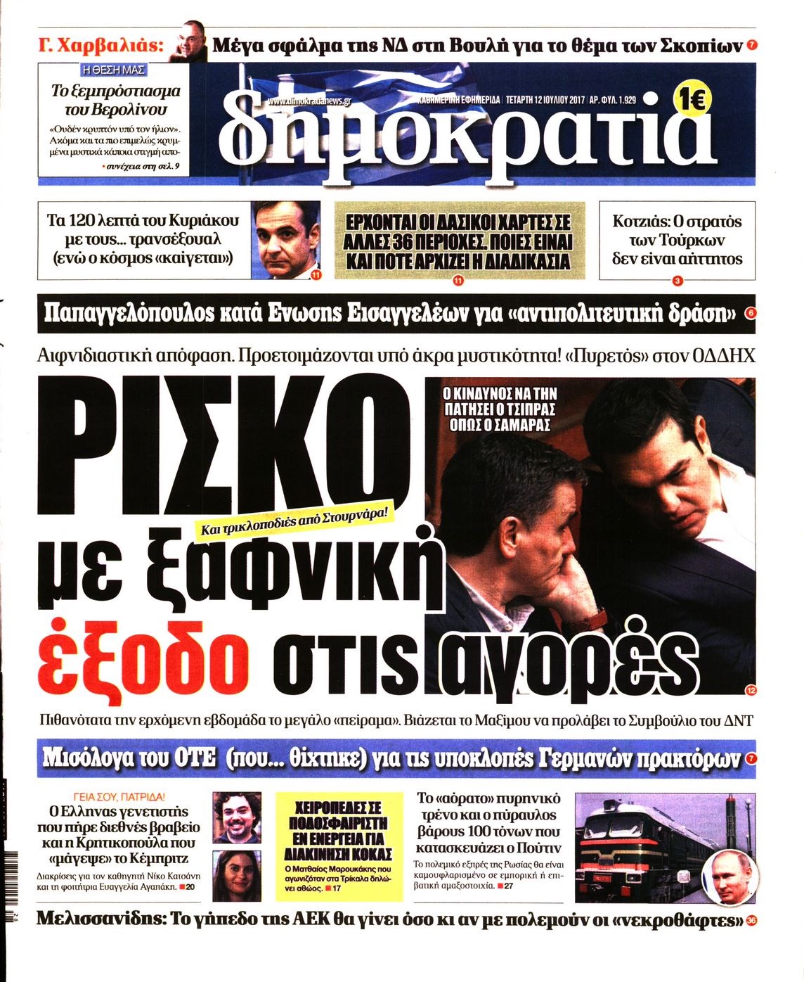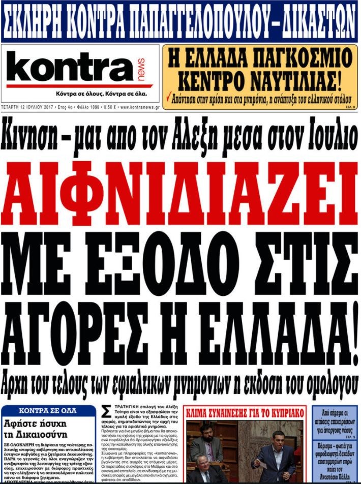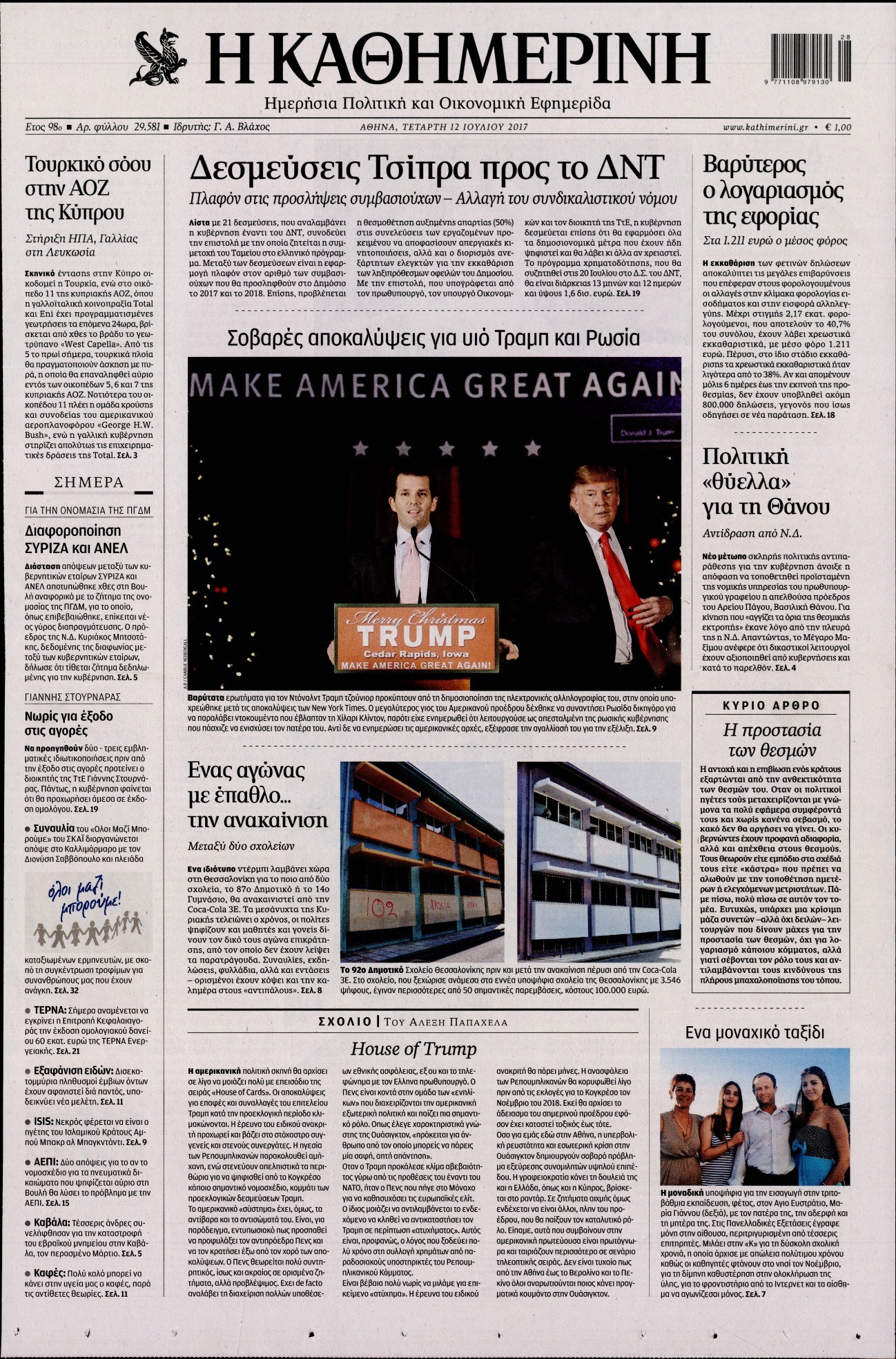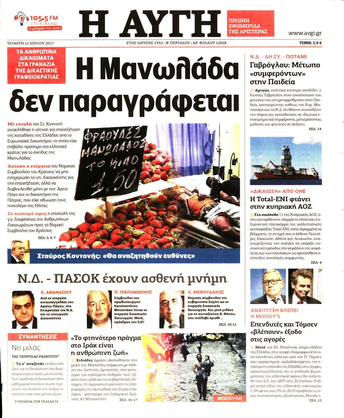 Οι πολιτικές εφημερίδες 12/7/2017 Enikos Newsroom 07:40, Τετάρτη 12 Ιουλίου 2017 Media Διαβάστε τα σημερινά πρωτοσέλιδα των πολιτικών εφημερίδων: ΠΟΛΙΤΙΚΕΣ ΕΦΗΜΕΡΙΔΕΣ ΠΡΩΤΟΣΕΛΙΔΑ Μοιράσου το: σχολίασε κι εσύ (0 σχόλια) Ακολουθήστε το enikos.gr στο Google News και μάθετε πρώτοι όλες τις ειδήσεις Δείτε όλες τις τελευταίες ειδήσεις από την Ελλάδα και τον Κόσμο στο enikos.gr Ειδήσεις Ροή Ειδήσεων 43 λεπτά πριν Υπόθεση Έπσταϊν: Το Υπουργείο Δικαιοσύνης δημοσιοποίησε μια σειρά από εξαιρετικά επεξεργασμένα αρχεία – «Λείπουν τα πιο σημαντικά έγγραφα», λένε οι Δημοκρατικοί 2 ώρες πριν Σαρωτικοί οι έλεγχοι στους δρόμους ενόψει εορτών – Μπλόκα της τροχαίας σε κεντρικές αρτηρίες της Αττικής 54 λεπτά πριν ΟΝΕΧ – MEGATUGS: Ξεκίνησε η ναυπήγηση ρυμουλκών στην Ελλάδα – Προθάλαμος πολεμικών πλοίων – Δείτε φωτογραφίες και βίντεο 46 λεπτά πριν Καιρός: Αλλαγή σκηνικού σήμερα με βροχές και πτώση της θερμοκρασίας – Οι προβλέψεις των μετεωρολόγων για τα Χριστούγεννα 10 ώρες πριν Χριστούγεννα στα μπλόκα: Επιμένουν στις κινητοποιήσεις τους οι αγρότες – Ανοίγουν τα διόδια το Σαββατοκύριακο 2 ώρες πριν Αυγά: Πόσα μπορείτε να τρώτε την ημέρα με ασφάλεια για μέγιστη πρόσληψη πρωτεΐνης 3 ώρες πριν Τα ζώδια σήμερα, Σάββατο 20 Δεκεμβρίου: Παρθένοι, το σύμπαν σας δίνει το κλειδί 2 ώρες πριν Οπτική ψευδαίσθηση: Μόνο αν είσαι ο Σέρλοκ Χολμς θα βρεις τον αριθμό «87» σε 7 δευτερόλεπτα 23 λεπτά πριν Αρχαιολόγοι ανακάλυψαν σε χωράφι απεικόνιση 600 ετών ενός Αγίου – Τα στοιχεία που δείχνουν ότι μαρτύρησε 8 λεπτά πριν MyHealth App: Τα στοιχεία για τον Προσωπικό Βοηθό Υγείας Πολίτη – Τι ερωτήματα έγιναν μέσα σε 7 ημέρες 16 λεπτά πριν Τρομεροί γονείς: Η Μαρία Καβογιάννη εισβάλλει στο σπίτι της οικογένειας Στεφανίδη 23 λεπτά πριν Αρχαιολόγοι ανακάλυψαν σε χωράφι απεικόνιση 600 ετών ενός Αγίου – Τα στοιχεία που δείχνουν ότι μαρτύρησε 31 λεπτά πριν Mega χριστουγεννιάτικη φορολοταρία: «Κλείδωσε» η ημερομηνία για την κλήρωση – Ερωτήσεις και απαντήσεις 38 λεπτά πριν ΗΠΑ: Τέσσερις μετανάστες πέθαναν σε κέντρα κράτησης – Αύξηση θανάτων σε επίπεδο ρεκόρ το 2025 ENIKOS NETWORK Το τεστ των 10 δευτερολέπτων που μπορεί να προβλέψει το προσδόκιμο ζωής σας – Τι λέει ειδικός του Cleveland Επιλέξτε καρέκλα για να μάθετε ποια είναι τα κρυφά χαρακτηριστικά σας – Τι αποκάλυψε για εσάς αυτό το τεστ προσωπικότητας; Mega χριστουγεννιάτικη φορολοταρία: «Κλείδωσε» η ημερομηνία για την κλήρωση – Ερωτήσεις και απαντήσεις Αναστολή μέτρων αναγκαστικής εκτέλεσης για κτηνοτρόφους που πλήττονται από την ευλογιά των αιγοπροβάτων Χαρτογραφώντας το «σημείο χωρίς επιστροφή»: Για πρώτη φορά αποκαλύπτεται με λεπτομέρεια το ακανθώδες όριο της ατμόσφαιρας τ... Η Google καταργεί τη λειτουργία «dark web report» – Πώς θα μπορούν οι χρήστες να διαγράφουν τα δεδομένα τους περισσότερα 08:14 , Σάββατο 20 Δεκεμβρίου 2025 Τρομεροί γονείς: Η Μαρία Καβογιάννη εισβάλλει στο σπίτι της οικογένειας Στεφανίδη Όσα θα δούμε στο νέο διπλό επεισόδιο της σειράς «Τρομεροί γονείς», σήμερα Σάββατο 20 Δεκεμβρίο... 05:48 , Σάββατο 20 Δεκεμβρίου 2025 Οι οικονομικές εφημερίδες 20/12/2025 Διαβάστε τα πρωτοσέλιδα από τις οικονομικές εφημερίδες, σήμερα 20/12/2025. 05:43 , Σάββατο 20 Δεκεμβρίου 2025 Οι αθλητικές εφημερίδες 20/12/2025 Διαβάστε τα πρωτοσέλιδα από τις αθλητικές εφημερίδες, σήμερα 20/12/2025. 05:38 , Σάββατο 20 Δεκεμβρίου 2025 Οι πολιτικές εφημερίδες 20/12/2025 Διαβάστε τα πρωτοσέλιδα από τις πολιτικές εφημερίδες, σήμερα 20/12/2025. ΤΕΛΕΥΤΑΙΕΣ ΕΙΔ