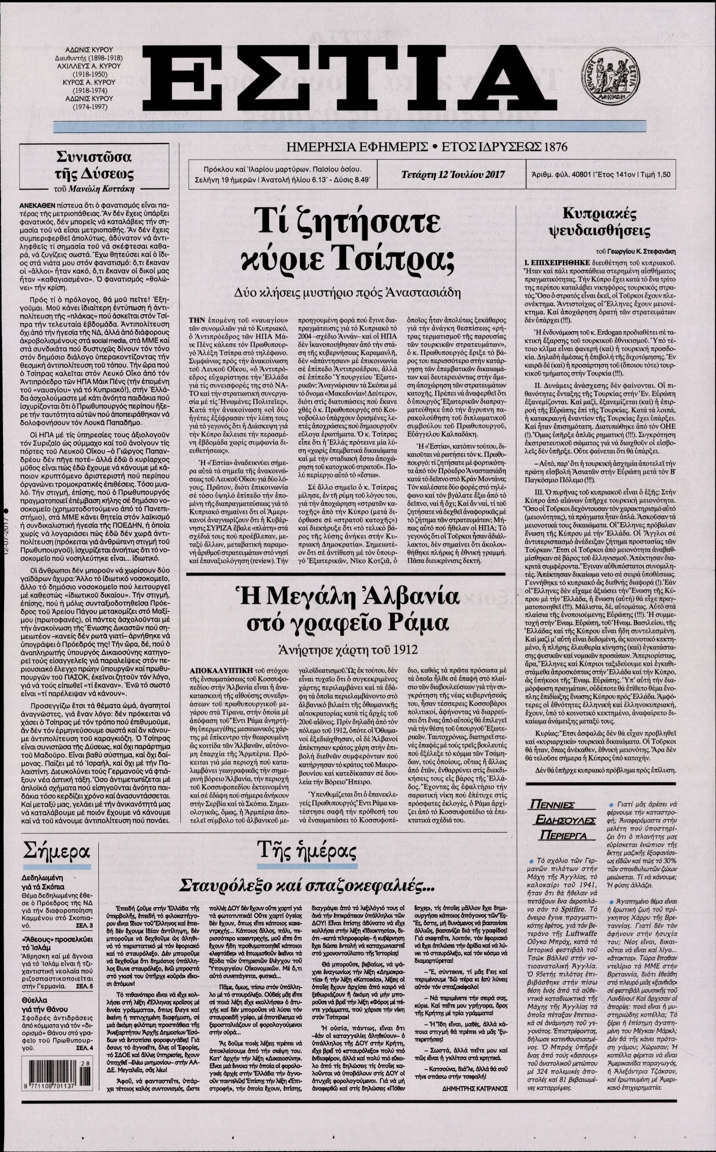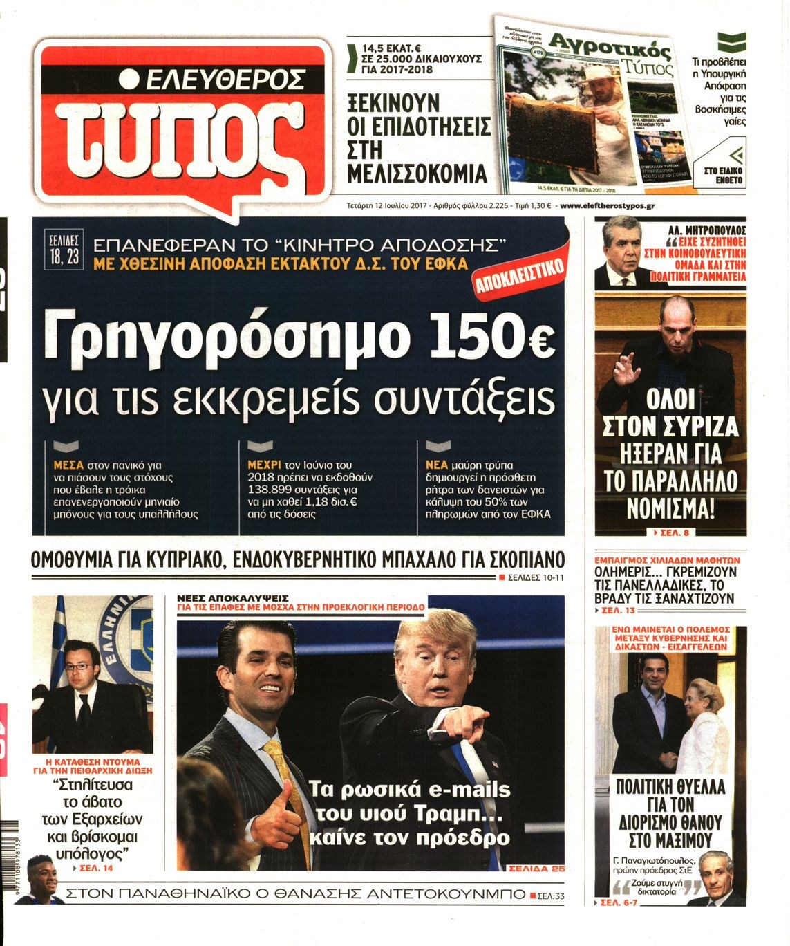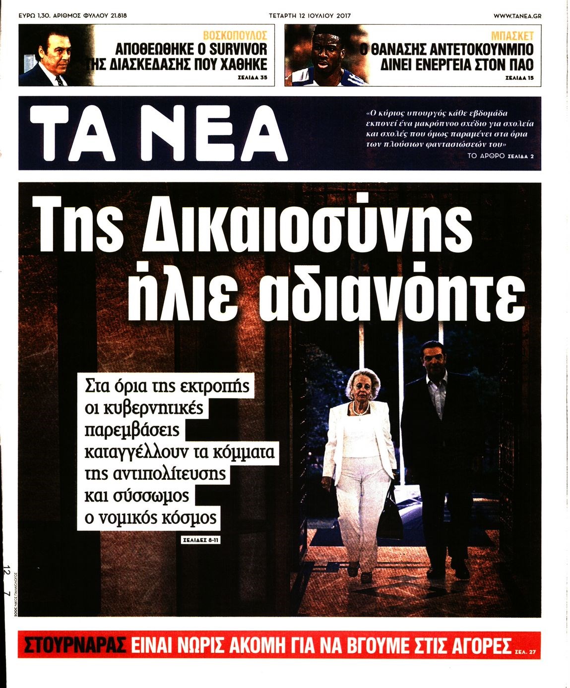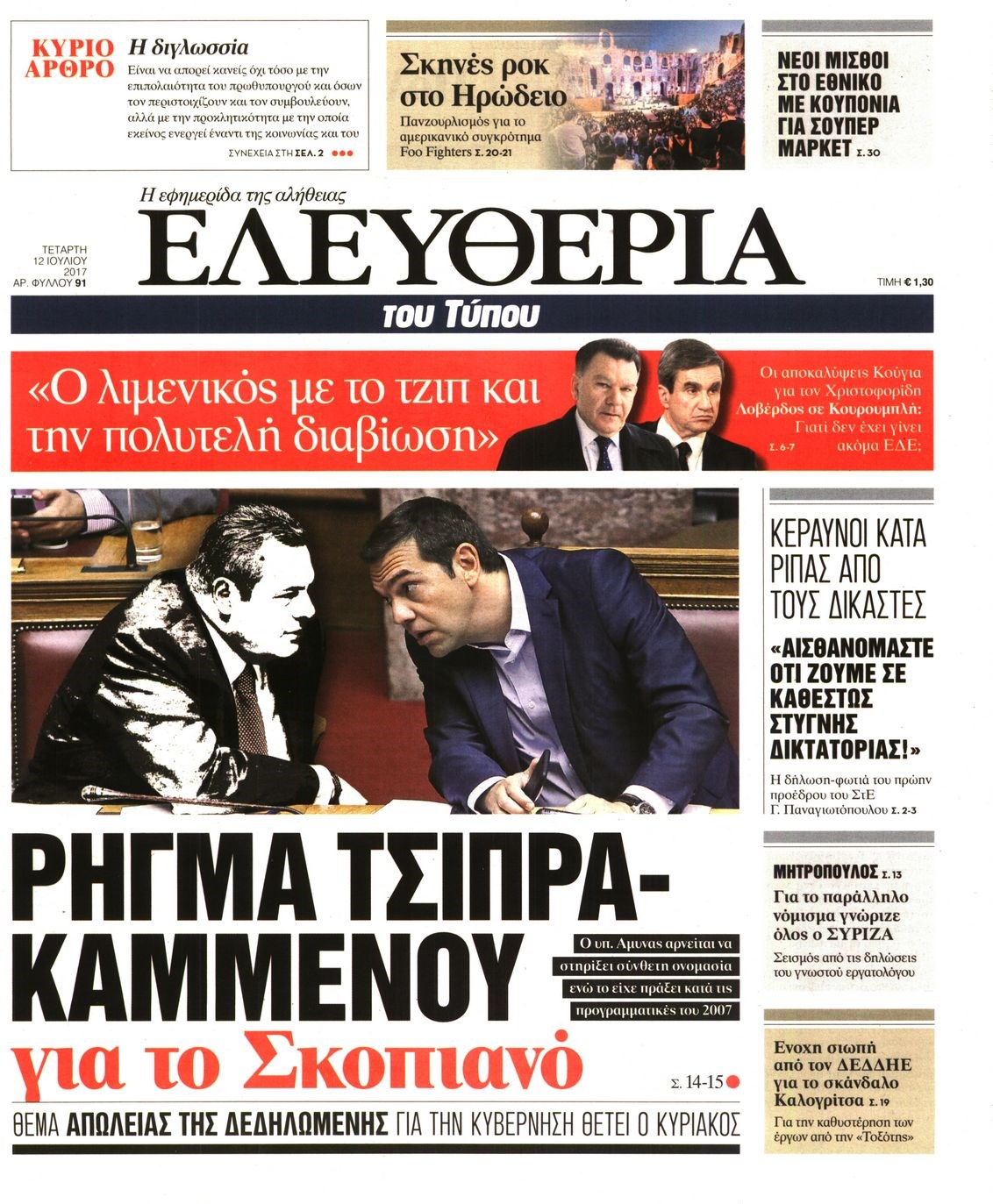 Οι πολιτικές εφημερίδες 12/7/2017 Enikos Newsroom 07:40, Τετάρτη 12 Ιουλίου 2017 Media Διαβάστε τα σημερινά πρωτοσέλιδα των πολιτικών εφημερίδων: ΠΟΛΙΤΙΚΕΣ ΕΦΗΜΕΡΙΔΕΣ ΠΡΩΤΟΣΕΛΙΔΑ Μοιράσου το: σχολίασε κι εσύ (0 σχόλια) Ακολουθήστε το enikos.gr στο Google News και μάθετε πρώτοι όλες τις ειδήσεις Δείτε όλες τις τελευταίες ειδήσεις από την Ελλάδα και τον Κόσμο στο enikos.gr Ειδήσεις Ροή Ειδήσεων 43 λεπτά πριν Υπόθεση Έπσταϊν: Το Υπουργείο Δικαιοσύνης δημοσιοποίησε μια σειρά από εξαιρετικά επεξεργασμένα αρχεία – «Λείπουν τα πιο σημαντικά έγγραφα», λένε οι Δημοκρατικοί 2 ώρες πριν Σαρωτικοί οι έλεγχοι στους δρόμους ενόψει εορτών – Μπλόκα της τροχαίας σε κεντρικές αρτηρίες της Αττικής 54 λεπτά πριν ΟΝΕΧ – MEGATUGS: Ξεκίνησε η ναυπήγηση ρυμουλκών στην Ελλάδα – Προθάλαμος πολεμικών πλοίων – Δείτε φωτογραφίες και βίντεο 46 λεπτά πριν Καιρός: Αλλαγή σκηνικού σήμερα με βροχές και πτώση της θερμοκρασίας – Οι προβλέψεις των μετεωρολόγων για τα Χριστούγεννα 10 ώρες πριν Χριστούγεννα στα μπλόκα: Επιμένουν στις κινητοποιήσεις τους οι αγρότες – Ανοίγουν τα διόδια το Σαββατοκύριακο 2 ώρες πριν Αυγά: Πόσα μπορείτε να τρώτε την ημέρα με ασφάλεια για μέγιστη πρόσληψη πρωτεΐνης 3 ώρες πριν Τα ζώδια σήμερα, Σάββατο 20 Δεκεμβρίου: Παρθένοι, το σύμπαν σας δίνει το κλειδί 2 ώρες πριν Οπτική ψευδαίσθηση: Μόνο αν είσαι ο Σέρλοκ Χολμς θα βρεις τον αριθμό «87» σε 7 δευτερόλεπτα 23 λεπτά πριν Αρχαιολόγοι ανακάλυψαν σε χωράφι απεικόνιση 600 ετών ενός Αγίου – Τα στοιχεία που δείχνουν ότι μαρτύρησε 8 λεπτά πριν MyHealth App: Τα στοιχεία για τον Προσωπικό Βοηθό Υγείας Πολίτη – Τι ερωτήματα έγιναν μέσα σε 7 ημέρες 16 λεπτά πριν Τρομεροί γονείς: Η Μαρία Καβογιάννη εισβάλλει στο σπίτι της οικογένειας Στεφανίδη 23 λεπτά πριν Αρχαιολόγοι ανακάλυψαν σε χωράφι απεικόνιση 600 ετών ενός Αγίου – Τα στοιχεία που δείχνουν ότι μαρτύρησε 31 λεπτά πριν Mega χριστουγεννιάτικη φορολοταρία: «Κλείδωσε» η ημερομηνία για την κλήρωση – Ερωτήσεις και απαντήσεις 38 λεπτά πριν ΗΠΑ: Τέσσερις μετανάστες πέθαναν σε κέντρα κράτησης – Αύξηση θανάτων σε επίπεδο ρεκόρ το 2025 ENIKOS NETWORK Το τεστ των 10 δευτερολέπτων που μπορεί να προβλέψει το προσδόκιμο ζωής σας – Τι λέει ειδικός του Cleveland Επιλέξτε καρέκλα για να μάθετε ποια είναι τα κρυφά χαρακτηριστικά σας – Τι αποκάλυψε για εσάς αυτό το τεστ προσωπικότητας; Mega χριστουγεννιάτικη φορολοταρία: «Κλείδωσε» η ημερομηνία για την κλήρωση – Ερωτήσεις και απαντήσεις Αναστολή μέτρων αναγκαστικής εκτέλεσης για κτηνοτρόφους που πλήττονται από την ευλογιά των αιγοπροβάτων Χαρτογραφώντας το «σημείο χωρίς επιστροφή»: Για πρώτη φορά αποκαλύπτεται με λεπτομέρεια το ακανθώδες όριο της ατμόσφαιρας τ... Η Google καταργεί τη λειτουργία «dark web report» – Πώς θα μπορούν οι χρήστες να διαγράφουν τα δεδομένα τους περισσότερα 08:14 , Σάββατο 20 Δεκεμβρίου 2025 Τρομεροί γονείς: Η Μαρία Καβογιάννη εισβάλλει στο σπίτι της οικογένειας Στεφανίδη Όσα θα δούμε στο νέο διπλό επεισόδιο της σειράς «Τρομεροί γονείς», σήμερα Σάββατο 20 Δεκεμβρίο... 05:48 , Σάββατο 20 Δεκεμβρίου 2025 Οι οικονομικές εφημερίδες 20/12/2025 Διαβάστε τα πρωτοσέλιδα από τις οικονομικές εφημερίδες, σήμερα 20/12/2025. 05:43 , Σάββατο 20 Δεκεμβρίου 2025 Οι αθλητικές εφημερίδες 20/12/2025 Διαβάστε τα πρωτοσέλιδα από τις αθλητικές εφημερίδες, σήμερα 20/12/2025. 05:38 , Σάββατο 20 Δεκεμβρίου 2025 Οι πολιτικές εφημερίδες 20/12/2025 Διαβάστε τα πρωτοσέλιδα από τις πολιτικές εφημερίδες, σήμερα 20/12/2025. ΤΕΛΕΥΤΑΙΕΣ ΕΙΔ