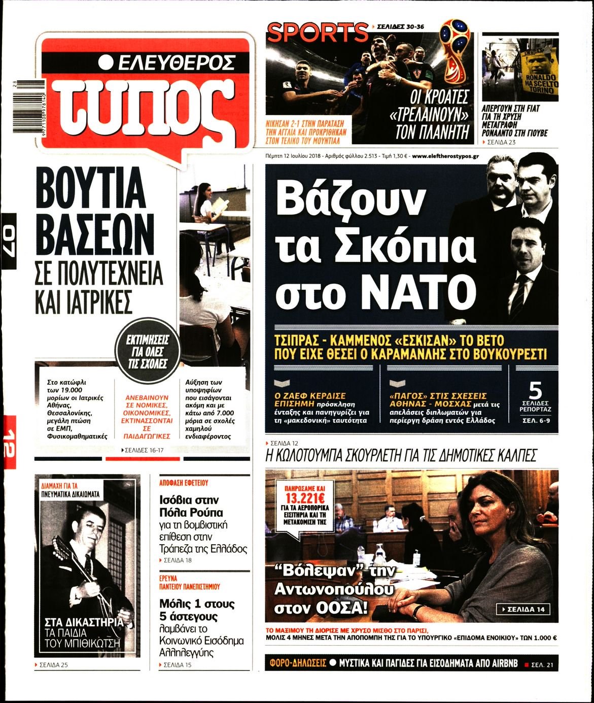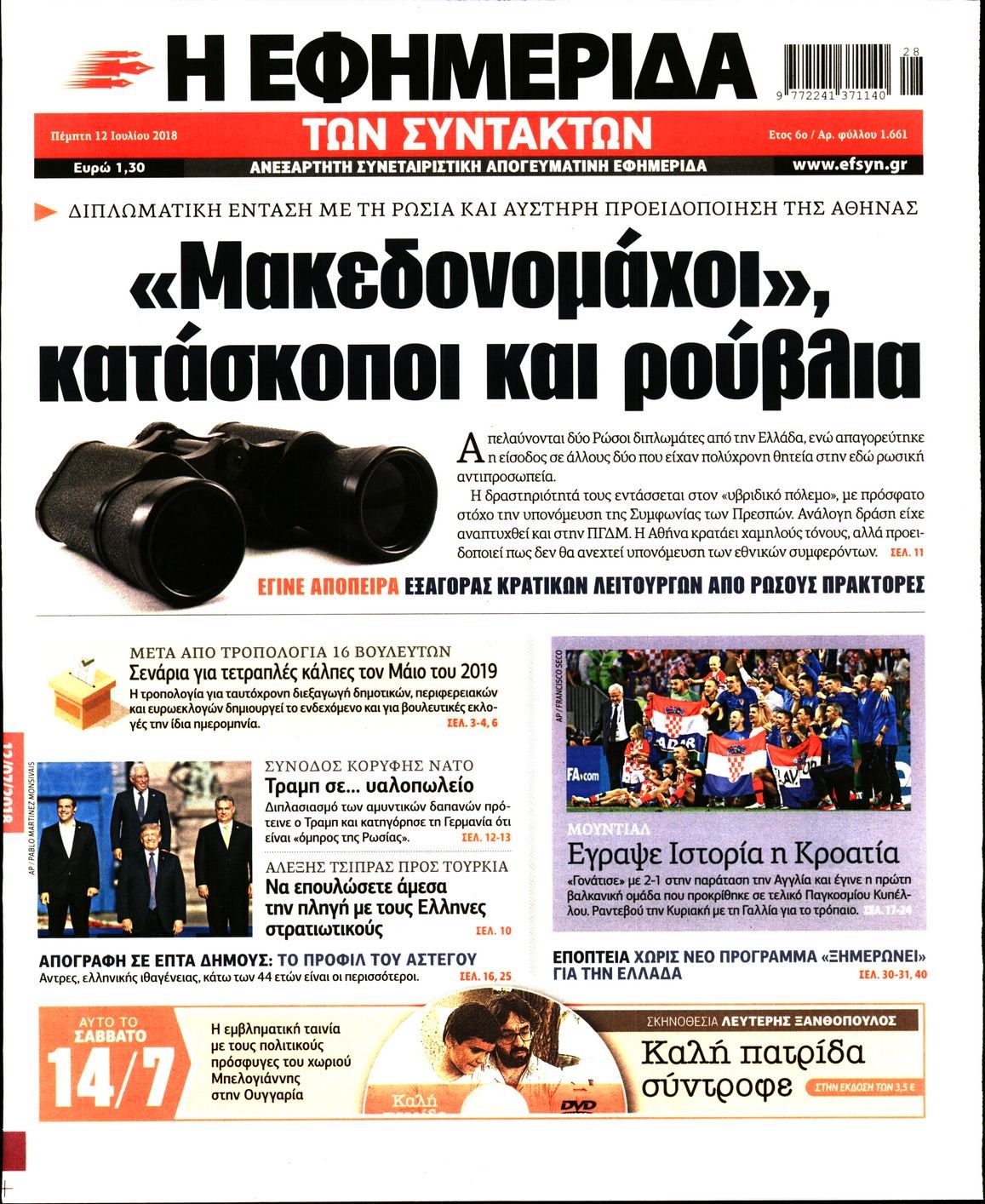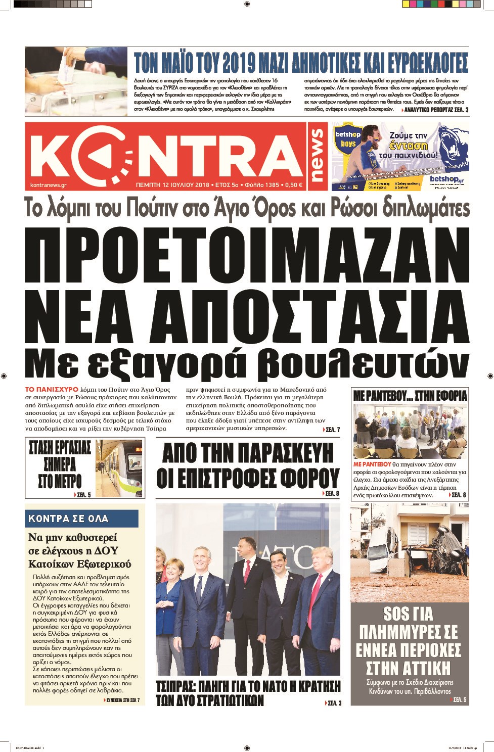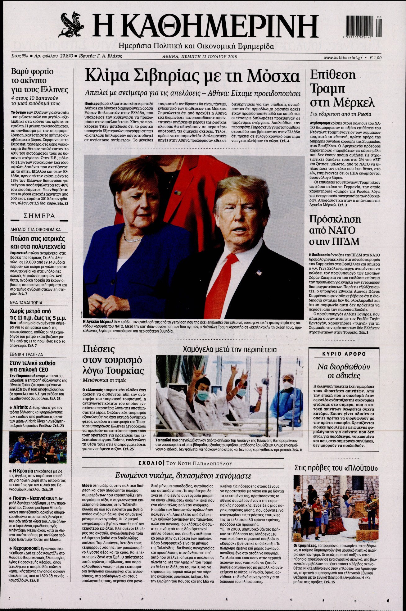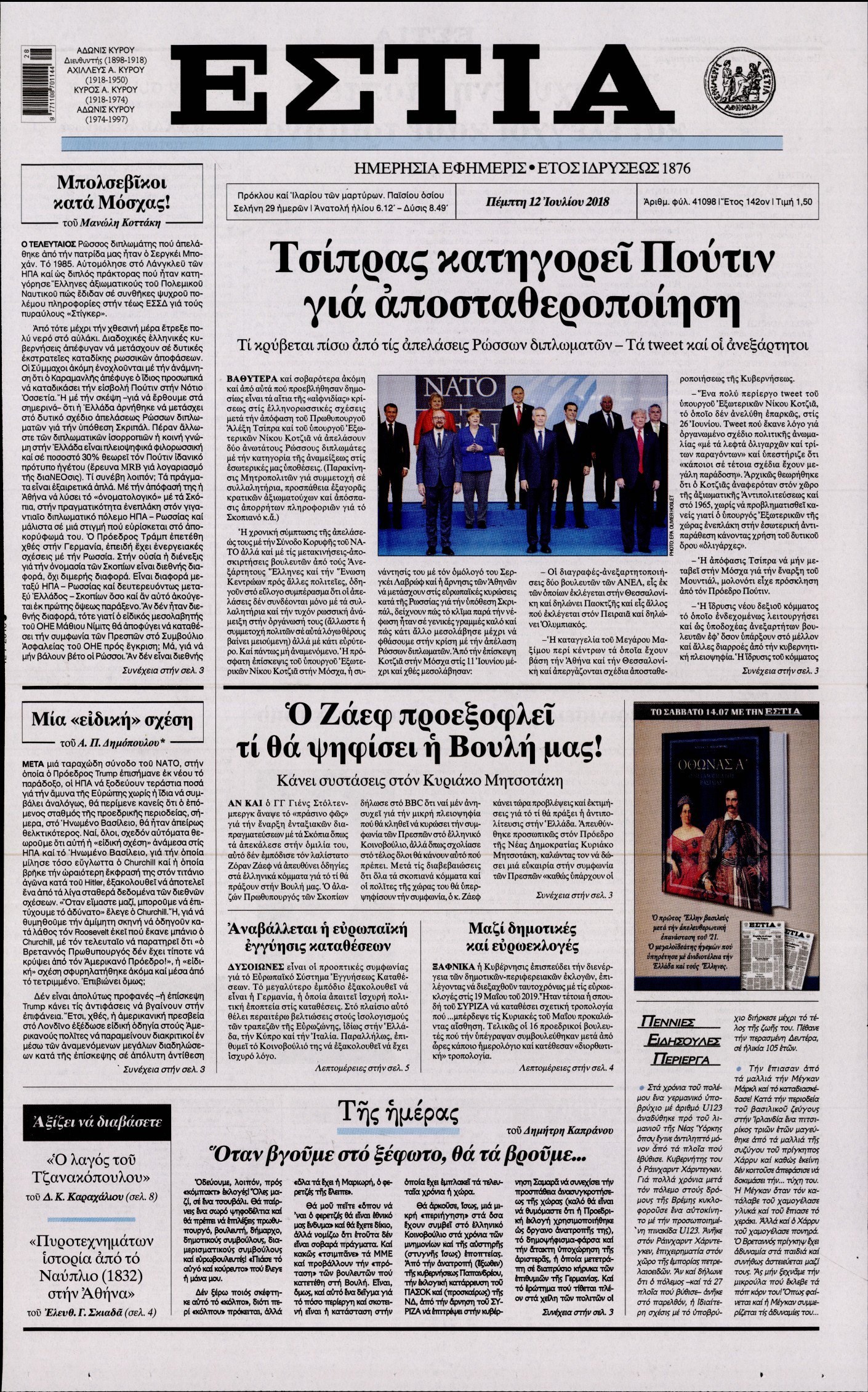 Οι πολιτικές εφημερίδες 12/7/2018 Enikos Newsroom 06:25, Πέμπτη 12 Ιουλίου 2018 Media Διαβάστε τα σημερινά πρωτοσέλιδα των πολιτικών εφημερίδων. ΠΟΛΙΤΙΚΕΣ ΕΦΗΜΕΡΙΔΕΣ ΠΡΩΤΟΣΕΛΙΔΑ Μοιράσου το: σχολίασε κι εσύ (0 σχόλια) Ακολουθήστε το enikos.gr στο Google News και μάθετε πρώτοι όλες τις ειδήσεις Δείτε όλες τις τελευταίες ειδήσεις από την Ελλάδα και τον Κόσμο στο enikos.gr Ειδήσεις Ροή Ειδήσεων 5 ώρες πριν Χριστούγεννα στα μπλόκα οι αγρότες: Άνοιξαν στα διόδια και μοίρασαν προϊόντα στους πολίτες – Νέα σύσκεψη την Κυριακή στη Νίκαια 5 ώρες πριν Κύκλωμα διακίνησης ναρκωτικών σε σχολεία: Τηλεφωνούσαν στους ανηλίκους την ώρα του μαθήματος – Οι διάλογοι-σοκ, τα «ψευδώνυμα» και τα βασανιστήρια 5 ώρες πριν Αρχεία Επστάιν: Οι 500 σελίδες που λείπουν, τα αναπάντητα ερωτήματα και οι επώνυμοι – Τι έπεται 6 ώρες πριν Ζελένσκι: Μόνο οι ΗΠΑ και ο Τραμπ μπορούν να πιέσουν τη Ρωσία να βάλει τέλος στον πόλεμο 7 ώρες πριν Φοινικούντα: Προφυλακιστέος ο 30χρονος για συνέργεια στη διπλή δολοφονία – Και άλλα πρόσωπα στο «μικροσκόπιο» 5 ώρες πριν Αποκαλύφθηκε το άγνωστο «GPS» της αρχαιότητας – Πώς οι ναοί «φώτιζαν» τον δρόμο των ναυτικών πριν από την εφεύρεση των φάρων 6 ώρες πριν Ύπνος: Η διατροφή που μπορεί να σας βοηθήσει να κοιμάστε καλύτερα και να ζήσετε περισσότερο 7 ώρες πριν Αριθμολογία: Ο αριθμός του φύλακα αγγέλου σας, με βάση τον μήνα γέννησής σας – «Έτσι σας στέλνει σημάδια το σύμπαν» 19 ώρες πριν Enerwave: Το νέο «ρεύμα» στη λιανική ενέργειας που αλλάζει την εμπειρία του καταναλωτή 2 ώρες πριν Σήμερα με τη Realnews: Δωροεπιταγή 10€ 33 λεπτά πριν Σήμερα με τη Realnews: Ό,τι και αν αγοράσεις, σκανάρεις και κερδίζεις! 21 λεπτά πριν Τρεις Αφγανοί μετανάστες πέθαναν από το κρύο προσπαθώντας να φθάσουν στο Ιράν 27 λεπτά πριν Σήμερα με τη Realnews: Instyle, μαζί Drive και Realnews Geopolitics 35 λεπτά πριν Κηφισιά: Το συγκινητικό «Last dance» του Ανδρέα Τεττέη – «Λύγισε» στην τελευταία του συνέντευξη ως παίκτης της ομάδας των βορείων προαστίων ENIKOS NETWORK Οι γυναίκες αποκαλύπτουν το πιο ελκυστικό πράγμα που μπορεί να κάνει ένας άνδρας Ομορφιά και αντιγήρανση: Ειδικοί μιλούν για συσκευές περιποίησης του δέρματος «Πολεμική» προετοιμασία από την ευρωπαϊκή βιομηχανία ενέργειας – Η Eurelectric ζητεί «ομπρέλα» προστασίας για τις υποδομές Ακύρωση ΑΦΜ για απάτες – Ποιους βάζει στο στόχαστρο η ΑΑΔΕ Χαρτογραφώντας το «σημείο χωρίς επιστροφή»: Για πρώτη φορά αποκαλύπτεται με λεπτομέρεια το ακανθώδες όριο της ατμόσφαιρας τ... Η Google καταργεί τη λειτουργία «dark web report» – Πώς θα μπορούν οι χρήστες να διαγράφουν τα δεδομένα τους περισσότερα 03:08 , Κυριακή 21 Δεκεμβρίου 2025 Σήμερα με τη Realnews: Instyle, μαζί Drive και Realnews Geopolitics Σήμερα με τη Realnews: Instyle, μαζί Drive και Realnews Geopolitics Instyle Η Άννα Ρεζάν, η Ch... 01:30 , Κυριακή 21 Δεκεμβρίου 2025 Άννα Βίσση: Τα… Social Media «προσκύνησαν» την «απόλυτη» για την συναυλία της στο Καλλιμάρμαρο που προβλήθηκε από το Mega Την ημέρα των γενεθλίων της Άννας Βίσση, το MEGA τίμησε τη διαχρονική παρουσία της «απόλυτης Ε... 00:00 , Κυριακή 21 Δεκεμβρίου 2025 The Voice: Η επιστροφή της Έλενας Παπαρίζου και η ατάκα του Γιώργου Μαζωνάκη μετά τις καταγγελίες Στη φάση των Cross Battles Live μπήκε το The Voice, με την Έλενα Παπαρίζου να επιστρέφει στο π... ΤΕΛΕΥΤΑΙΕΣ ΕΙΔΗΣΕΙΣ 21 λεπτά πριν Τρεις Αφγανοί μετανάστες πέθαναν από το κρύο... 27 λεπτά πριν Σήμερα με τη Realnews: Instyle, μαζί Drive και Realnews Geopolitics 35 λεπτά πριν Κηφισιά: Το συγκινητικό «Last dance» του Ανδρέα Τεττέη –... 50 λεπτά πριν Οι «εποικοδομητικές» σ