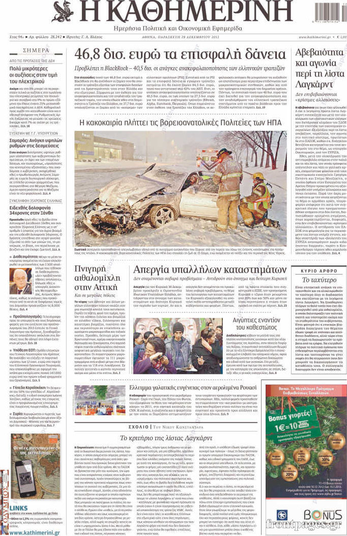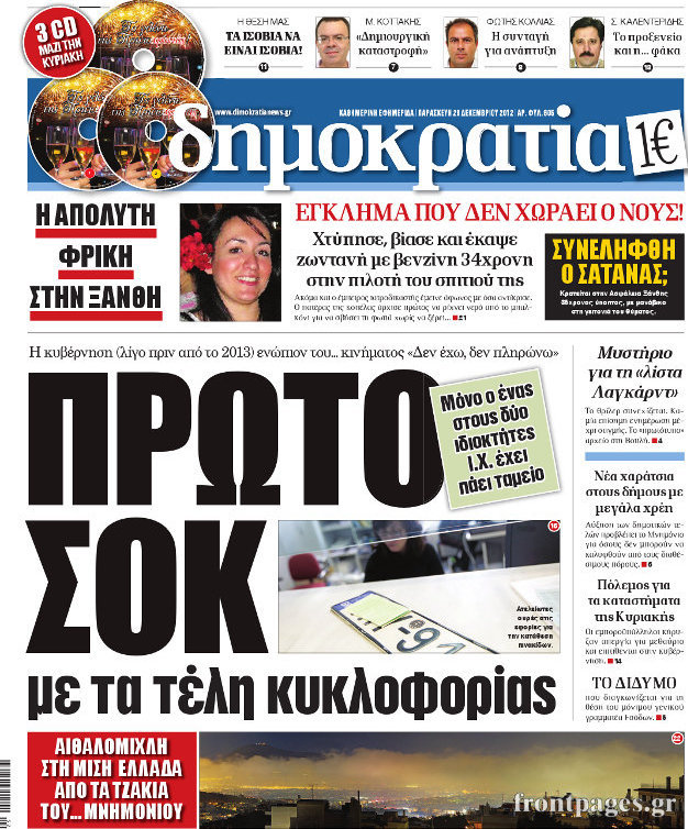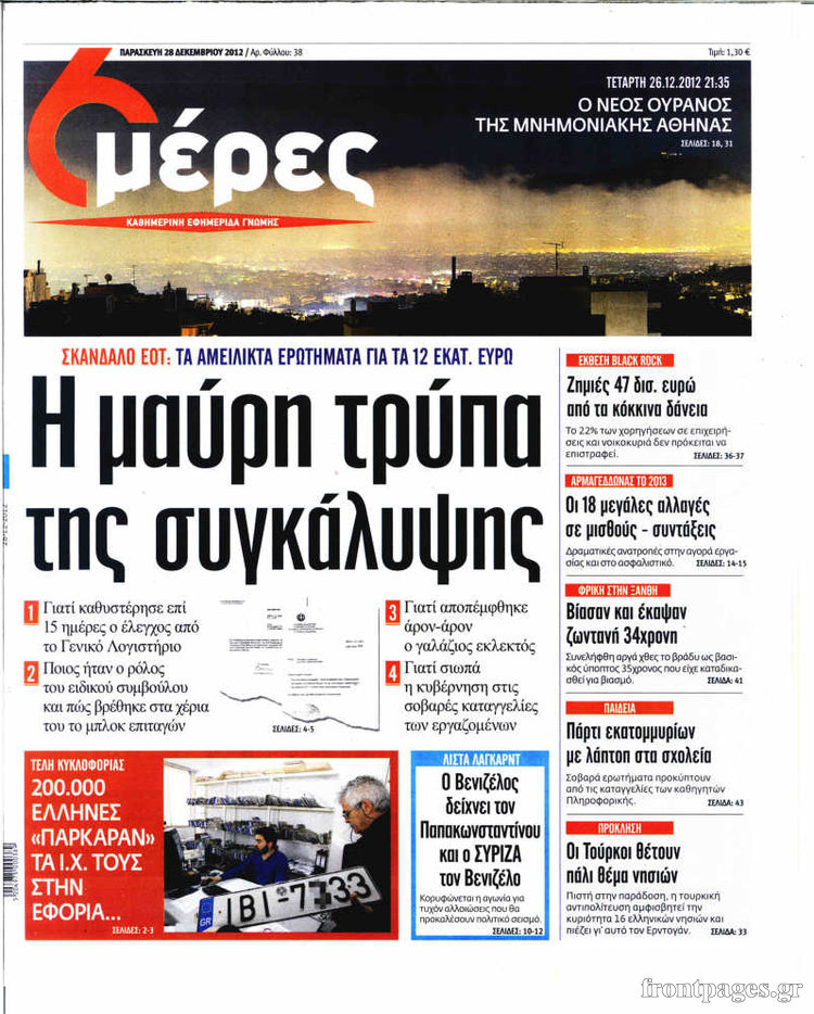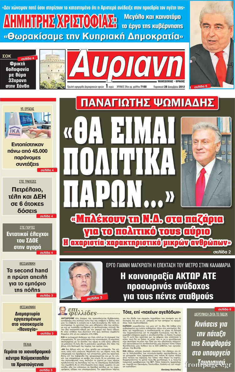 Οι πολιτικές εφημερίδες Enikos Newsroom 10:11, Παρασκευή 28 Δεκεμβρίου 2012 Media Οι πολιτικές εφημερίδες ΕΦΗΜΕΡΙΔΕΣ ΕΦΗΜΕΡΙΔΕΣ ΠΡΩΤΟΣΕΛΙΔΑ ΠΟΛΙΤΙΚΕΣ ΕΦΗΜΕΡΙΔΕΣ Μοιράσου το: σχολίασε κι εσύ (0 σχόλια) Ακολουθήστε το enikos.gr στο Google News και μάθετε πρώτοι όλες τις ειδήσεις Δείτε όλες τις τελευταίες ειδήσεις από την Ελλάδα και τον Κόσμο στο enikos.gr Ειδήσεις Ροή Ειδήσεων 2 ώρες πριν Ρομπ και Μισέλ Ράινερ: Φωτογραφίες από τη στιγμή που οι αρχές συλλαμβάνουν τον γιο τους – Ο «μεγάλος καβγάς» πριν από την τραγωδία 17 λεπτά πριν Χαλάνδρι: Συνελήφθη 16χρονος γιος βουλευτή έπειτα από καταδίωξη 1 ώρα πριν Προϋπολογισμός 2026: Σήμερα η ομιλία Μητσοτάκη στη Βουλή – Μέτρα για νέους, μεσαία τάξη και στεγαστικό 2 ώρες πριν Κυψέλη: Υπό κατάληψη το σχολείο που η 16χρονη μαχαίρωσε συμμαθήτριά της – Την είχαν διώξει από προηγούμενο 2 ώρες πριν Κρίσιμη ημέρα για τους αγρότες: Σήμερα θα δώσουν την απάντησή τους στην κυβέρνηση μετά το νέο κάλεσμα για διάλογο 4 ώρες πριν Οπτική ψευδαίσθηση: Μόνο 1 στους 10 ανθρώπους θα βρει το κόκκινο αυγό σε 7 δευτερόλεπτα 4 ώρες πριν Υψηλή χοληστερίνη: Γιατρός αποκαλύπτει δύο τρόπους για να την μειώσετε χωρίς φαρμακευτική αγωγή 2 ώρες πριν Ανακαλύφθηκε περίτεχνη μαρμάρινη μπανιέρα που επαναχρησιμοποιήθηκε ως κρήνη 53 λεπτά πριν Η πεθερά της την κατηγορεί πως δεν την ταΐζει σωστά – «Δεν παραπονιέται όμως στον γιο της» 6 λεπτά πριν Χαμός στις στάσεις λεωφορείων μετά το τεχνικό πρόβλημα στη Γραμμή 3 του Μετρό – «Δεν χωράνε όλοι οι επιβάτες» – ΦΩΤΟ αναγνώστη 9 λεπτά πριν Βουλή: Διασταυρώνουν τα ξίφη τους οι πολιτικοί αρχηγοί – Ολοκληρώνεται σήμερα η συζήτηση για τον Προϋπολογισμό 14 λεπτά πριν Φενέρμπαχτσε – Παναθηναϊκός: Με στόχο την 10η νίκη τους στην Euroleague οι Πράσινοι 17 λεπτά πριν Χαλάνδρι: Συνελήφθη 16χρονος γιος βουλευτή έπειτα από καταδίωξη 20 λεπτά πριν Θεσσαλονίκη: 44χρονος προσπάθησε να πνίξει με κορδόνι τη σύντροφό του – Ξυλοκόπησε και τον 14χρονο γιο της ENIKOS NETWORK Η Νο1 άσκηση για σμιλεμένους γλουτούς – Την κάνετε στο σπίτι και διαρκεί 1 λεπτό 54χρονη που νόμιζε ότι είχε ιγμορίτιδα έλαβε διάγνωση για σπάνιο καρκίνο – Η συγκλονιστική μαρτυρία της Φορολογικές δηλώσεις 2026: Στις 16 Μαρτίου αρχίζει η υποβολή – Νέες κατηγορίες στις προσυμπληρωμένες Χριστούγεννα: Τι περιμένουν οι έμποροι για να «ζεσταθεί» η αγορά Σύγχρονος Νοστράδαμος: Προειδοποιεί για «μεγάλο γεγονός» τους επόμενους μήνες που θα συγκλονίσει τη Βρετανία και τον κόσμο Τεστ παρατηρητικότητας: Μπορείτε να βρείτε τις 3 διαφορές στις εικόνες με έναν πιγκουίνο σε 14 δευτερόλεπτα περισσότερα 09:26 , Τρίτη 16 Δεκεμβρίου 2025 Τηλεθέαση (15/12): Τα νούμερα για την prime time – Ποιες σειρές ξεχώρισαν Ξεκάθαρη πρωτιά στην τηλεθέαση κατέκτησε η σειρά «Μια νύχτα μόνο», η οποία βρέθηκε στην κορυφή... 08:00 , Τρίτη 16 Δεκεμβρίου 2025 Την Κυριακή με τη Realnews: Δωροεπιταγή 10€ Δωροεπιταγή αξίας 10€ για αγορές άνω των 60€ από τα πολυκαταστήματα FactoryOutlet H προσφορά ι... 05:48 , Τρίτη 16 Δεκεμβρίου 2025 Οι οικονομικές εφημερίδες 16/12/2025 Διαβάστε τα πρωτοσέλιδα από τις οικονομικές εφημερίδες, σήμερα 16/12/2025. 05:43 , Τρίτη 16 Δεκεμβρίου 2025 Οι αθλητικές εφημερίδες 16/12/2025 Διαβάστε τα πρωτοσέλιδα από τις αθλητικές εφημερίδες, σήμερα 16/12/2025. ΤΕΛΕΥΤΑΙΕΣ ΕΙΔΗΣΕΙΣ 6 λεπτά πριν Χαμός στις στάσεις λεωφορείων μετά το τεχνικό... 9 λεπτά πριν Βουλή: Διασταυρώνουν τα ξίφη τους οι πολιτικοί... 14 λεπτά πριν Φενέρμπαχτσε – Παναθηναϊκός: Με στόχο την 10η νίκη... 17 λεπτά 