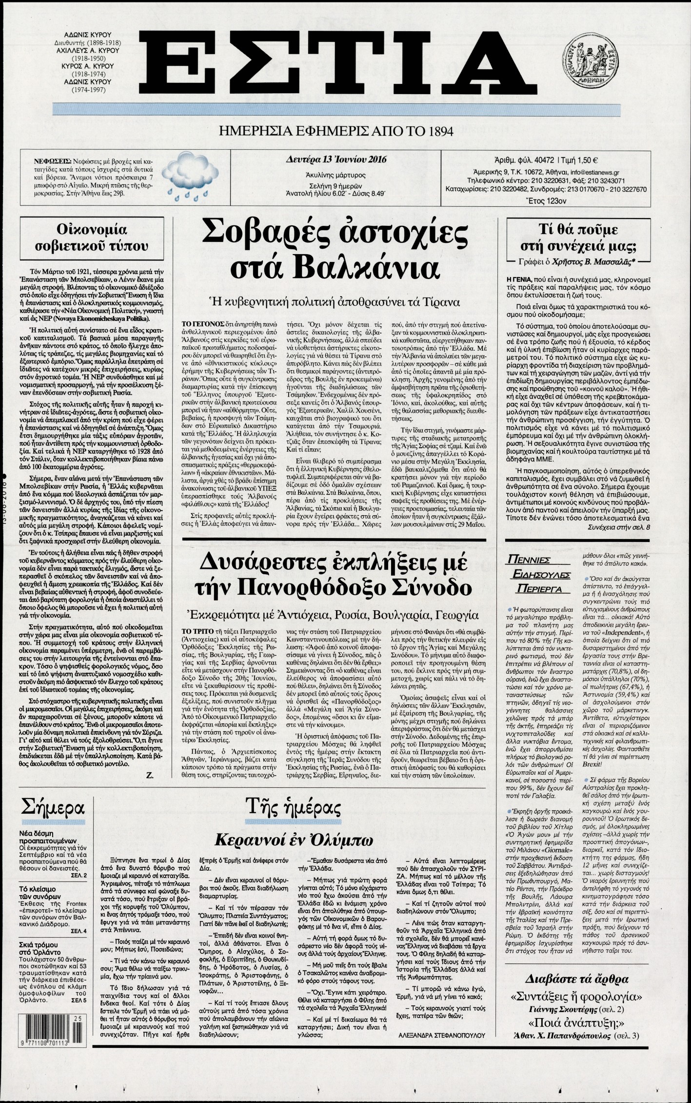 Οι πολιτικές εφημερίδες 13-6-2016 Enikos Newsroom 06:10, Δευτέρα 13 Ιουνίου 2016 Media Διαβάστε τα σημερινά πρωτοσέλιδα των πολιτικών εφημερίδων: ΠΟΛΙΤΙΚΕΣ ΕΦΗΜΕΡΙΔΕΣ ΠΡΩΤΟΣΕΛΙΔΑ Μοιράσου το: σχολίασε κι εσύ (0 σχόλια) Ακολουθήστε το enikos.gr στο Google News και μάθετε πρώτοι όλες τις ειδήσεις Δείτε όλες τις τελευταίες ειδήσεις από την Ελλάδα και τον Κόσμο στο enikos.gr Ειδήσεις Ροή Ειδήσεων 2 ώρες πριν Ευρωπαϊκή Ένωση: Συμφωνία για δάνειο 90 δισ. ευρώ στην Ουκρανία τη διετία 2026-2027 6 ώρες πριν ΟΠΕΚΕΠΕ: Προφυλακιστέος ο φερόμενος αρχηγός και ο λογιστής της εγκληματικής οργάνωσης 7 ώρες πριν Αυξάνουν την πίεση προς την κυβέρνηση οι αγρότες: Κλείνουν παρακαμπτήριους και ανοίγουν διόδια – Τι θα γίνει τις γιορτές 7 ώρες πριν Φοινικούντα: Το Σάββατο απολογείται ο 30χρονος γιος γνωστού επιχειρηματία της Πλάκας που παραδόθηκε – Όσα είπε στους αστυνομικούς και ο ρόλος του στο έγκλημα 6 ώρες πριν ΑΕΚ – Κραϊόβα 3-2: Επική ανατροπή και πρόκριση στους «16» του Conference League η Ένωση 7 ώρες πριν Αρχαιολόγοι ανακάλυψαν ρωμαϊκά τεχνουργήματα από μια πόλη που δεν υπήρξε ποτέ – Τα τρία εντυπωσιακά κτίρια και ο αμφορέας με τις… σαρδέλες 8 ώρες πριν Ύπνος: Η απλή βραδινή ρουτίνα για να προστατεύσετε τα μαλλιά σας από το κρύο κατά τη διάρκεια του χειμώνα 9 ώρες πριν Manifesting: Πώς να συναντήσετε τον σύντροφο της ζωής σας, ανάλογα με τον μήνα γέννησής σας 2 ημέρες πριν 20 χρόνια τα Χριστούγεννα ξεκινούν στα Public με μεγάλη ποικιλία σε δώρα! 6 λεπτά πριν Κρύα χέρια και πόδια: Γιατρός εξηγεί ποια είναι η αίτια και πότε πρέπει να ανησυχήσετε 13 λεπτά πριν Σαν σήμερα 19 Δεκεμβρίου: Τα σημαντικότερα γεγονότα της ημέρας 18 λεπτά πριν Οι οικονομικές εφημερίδες 19/12/2025 23 λεπτά πριν Οι αθλητικές εφημερίδες 19/12/2025 28 λεπτά πριν Οι πολιτικές εφημερίδες 19/12/2025 ENIKOS NETWORK Σε περίοδο αυξημένης δραστηριότητας η γρίπη στην Ελλάδα-Μέτρα προστασίας από τον ΕΟΔΥ Σκέφτεστε συνέχεια συζητήσεις που έχετε κάνει; Τι σημαίνει αυτό, σύμφωνα με ειδικό Στεγαστικό: Τι λέει η ΠΟΜΙΔΑ για τα νέα μέτρα που ανακοίνωσε ο Κυριάκος Μητσοτάκης Λαγκάρντ: Αισιόδοξη για την ανάπτυξη της Ευρωζώνης, αβέβαιη για τον πληθωρισμό Χαρτογραφώντας το «σημείο χωρίς επιστροφή»: Για πρώτη φορά αποκαλύπτεται με λεπτομέρεια το ακανθώδες όριο της ατμόσφαιρας τ... Η Google καταργεί τη λειτουργία «dark web report» – Πώς θα μπορούν οι χρήστες να διαγράφουν τα δεδομένα τους περισσότερα 05:48 , Παρασκευή 19 Δεκεμβρίου 2025 Οι οικονομικές εφημερίδες 19/12/2025 Διαβάστε τα πρωτοσέλιδα από τις οικονομικές εφημερίδες, σήμερα 19/12/2025. 05:43 , Παρασκευή 19 Δεκεμβρίου 2025 Οι αθλητικές εφημερίδες 19/12/2025 Διαβάστε τα πρωτοσέλιδα από τις αθλητικές εφημερίδες, σήμερα 19/12/2025. 05:38 , Παρασκευή 19 Δεκεμβρίου 2025 Οι πολιτικές εφημερίδες 19/12/2025 Διαβάστε τα πρωτοσέλιδα από τις πολιτικές εφημερίδες, σήμερα 19/12/2025. 02:50 , Παρασκευή 19 Δεκεμβρίου 2025 GNTM: «Κλείδωσαν» οι τέσσερις φιναλίστ – Μεγάλη ανατροπή στις τελευταίες αποχωρήσεις Για προτελευταία φορά εμφανίστηκαν στο πλατό του GNTM οι φιναλίστ του φετινού κύκλου, το βράδυ... ΤΕΛΕΥΤΑΙΕΣ ΕΙΔΗΣΕΙΣ 6 λεπτά πριν Κρύα χέρια και πόδια: Γιατρός εξηγεί ποια είναι η... 13 λεπτά πριν Σαν σήμερα 19 Δεκεμβρίου: Τα σημαντικότερα γεγονότα... 18 λεπτά πριν Οι οικονομικές εφημερίδες 19/12/2025 23 λεπτά πριν Οι αθλητικές εφημερίδες 19/12/2025 28 λεπτά πριν Οι πολιτικές εφημερίδες 19/12/2025 36 λεπτά πριν Τα ζώδια σήμερα, Παρασκευή 19 Δεκεμβρίου: Τοξότες, με τη... 44 λεπτά πριν Εφημερεύοντα φαρμακεία σε Αθήνα και Θεσσαλον