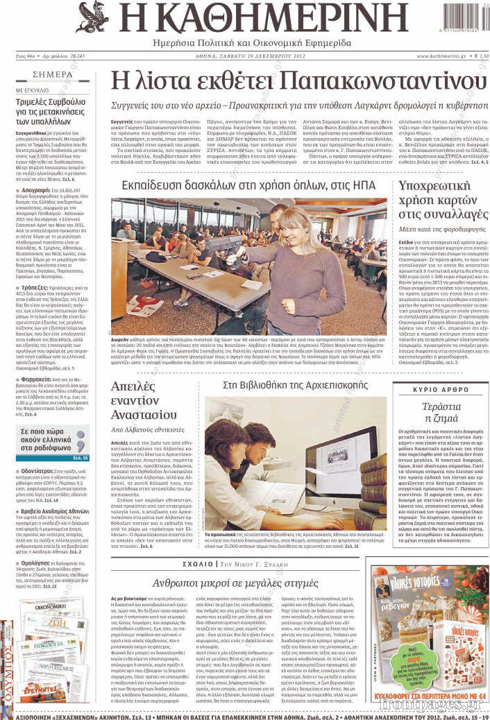 Οι πολιτικές εφημερίδες Enikos Newsroom 10:15, Σάββατο 29 Δεκεμβρίου 2012 Media Οι πολιτικές εφημερίδες Τα πρωτοσέλιδα των πολιτικών εφημερίδων. ΕΦΗΜΕΡΙΔΕΣ ΟΙ ΠΟΛΙΤΙΚΕΣ ΕΦΗΜΕΡΙΔΕΣ ΠΡΩΤΟΣΕΛΙΔΑ Μοιράσου το: σχολίασε κι εσύ (0 σχόλια) Ακολουθήστε το enikos.gr στο Google News και μάθετε πρώτοι όλες τις ειδήσεις Δείτε όλες τις τελευταίες ειδήσεις από την Ελλάδα και τον Κόσμο στο enikos.gr Ειδήσεις Ροή Ειδήσεων 3 ώρες πριν Χριστούγεννα στα μπλόκα οι αγρότες: Άνοιξαν στα διόδια και μοίρασαν προϊόντα στους πολίτες – Νέα σύσκεψη την Κυριακή στη Νίκαια 4 ώρες πριν Κύκλωμα διακίνησης ναρκωτικών σε σχολεία: Τηλεφωνούσαν στους ανηλίκους την ώρα του μαθήματος – Οι διάλογοι-σοκ, τα «ψευδώνυμα» και τα βασανιστήρια 3 ώρες πριν Αρχεία Επστάιν: Οι 500 σελίδες που λείπουν, τα αναπάντητα ερωτήματα και οι επώνυμοι – Τι έπεται 5 ώρες πριν Ζελένσκι: Μόνο οι ΗΠΑ και ο Τραμπ μπορούν να πιέσουν τη Ρωσία να βάλει τέλος στον πόλεμο 5 ώρες πριν Φοινικούντα: Προφυλακιστέος ο 30χρονος για συνέργεια στη διπλή δολοφονία – Και άλλα πρόσωπα στο «μικροσκόπιο» 3 ώρες πριν Αποκαλύφθηκε το άγνωστο «GPS» της αρχαιότητας – Πώς οι ναοί «φώτιζαν» τον δρόμο των ναυτικών πριν από την εφεύρεση των φάρων 4 ώρες πριν Ύπνος: Η διατροφή που μπορεί να σας βοηθήσει να κοιμάστε καλύτερα και να ζήσετε περισσότερο 5 ώρες πριν Αριθμολογία: Ο αριθμός του φύλακα αγγέλου σας, με βάση τον μήνα γέννησής σας – «Έτσι σας στέλνει σημάδια το σύμπαν» 17 ώρες πριν Enerwave: Το νέο «ρεύμα» στη λιανική ενέργειας που αλλάζει την εμπειρία του καταναλωτή 28 λεπτά πριν Σεισμός 3,8 Ρίχτερ ανοιχτά της Αμοργού 43 λεπτά πριν Άννα Βίσση: Τα… Social Media «προσκύνησαν» την «απόλυτη» για την συναυλία της στο Καλλιμάρμαρο που προβλήθηκε από το Mega 57 λεπτά πριν Φωτεινή Αθερίδου: «Προσπαθώ να είμαι κάθετη και αυστηρή σαν μαμά πια» 1 ώρα πριν ΗΠΑ, Αίγυπτος, Κατάρ και Τουρκία συζήτησαν τη δεύτερη φάση του ειρηνευτικού σχεδίου για τη Γάζα 1 ώρα πριν Γιάννης Αντετοκούνμπο: Έμεινε στην 6η θέση της ψηφοφορίας του ESPN για το βραβείο του MVP του NBA ENIKOS NETWORK Οι γυναίκες αποκαλύπτουν το πιο ελκυστικό πράγμα που μπορεί να κάνει ένας άνδρας Ομορφιά και αντιγήρανση: Ειδικοί μιλούν για συσκευές περιποίησης του δέρματος «Πολεμική» προετοιμασία από την ευρωπαϊκή βιομηχανία ενέργειας – Η Eurelectric ζητεί «ομπρέλα» προστασίας για τις υποδομές Ακύρωση ΑΦΜ για απάτες – Ποιους βάζει στο στόχαστρο η ΑΑΔΕ Χαρτογραφώντας το «σημείο χωρίς επιστροφή»: Για πρώτη φορά αποκαλύπτεται με λεπτομέρεια το ακανθώδες όριο της ατμόσφαιρας τ... Η Google καταργεί τη λειτουργία «dark web report» – Πώς θα μπορούν οι χρήστες να διαγράφουν τα δεδομένα τους περισσότερα 01:30 , Κυριακή 21 Δεκεμβρίου 2025 Άννα Βίσση: Τα… Social Media «προσκύνησαν» την «απόλυτη» για την συναυλία της στο Καλλιμάρμαρο που προβλήθηκε από το Mega Την ημέρα των γενεθλίων της Άννας Βίσση, το MEGA τίμησε τη διαχρονική παρουσία της «απόλυτης Ε... 00:00 , Κυριακή 21 Δεκεμβρίου 2025 The Voice: Η επιστροφή της Έλενας Παπαρίζου και η ατάκα του Γιώργου Μαζωνάκη μετά τις καταγγελίες Στη φάση των Cross Battles Live μπήκε το The Voice, με την Έλενα Παπαρίζου να επιστρέφει στο π... 20:30 , Σάββατο 20 Δεκεμβρίου 2025 Αυτή την Κυριακή με τη Realnews: Instyle, μαζί Drive και Realnews Geopolitics Αυτή την Κυριακή με τη Realnews: Instyle, μαζί Drive και Realnews Geopolitics Instyle Η Άννα Ρ... 20:28 , Σάββατο 20 Δεκεμβρίου 2025 Ο ΑΝΤ1 γεμίζει τις γιορτές με μουσική – Ποιους καλλιτέχνες θα απολαύσουμε Φέτος στον ΑΝΤ1 γιορτάζουμε τις νύχτες μας παρέα με αγαπημένους