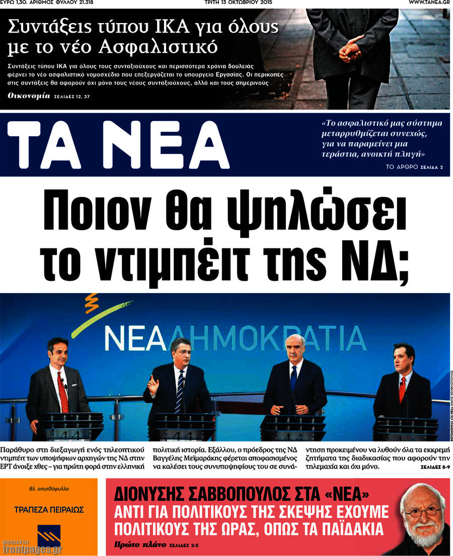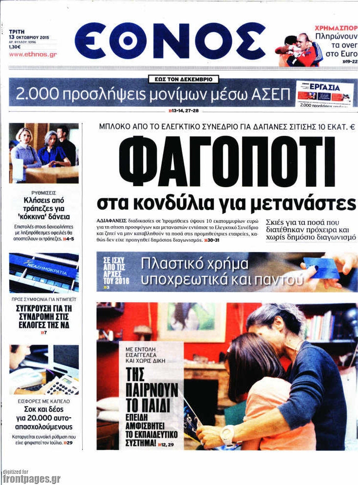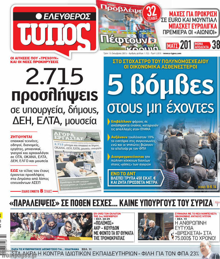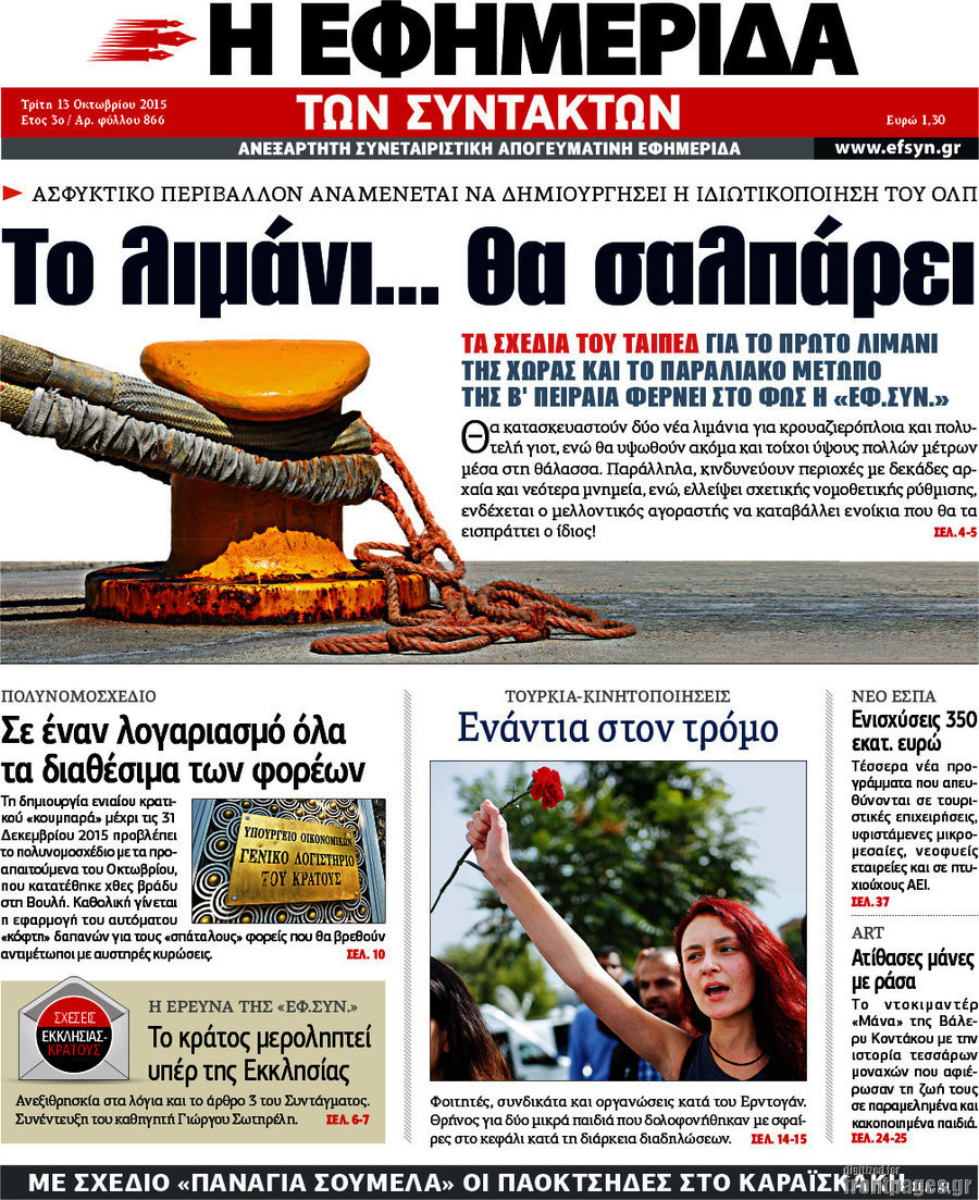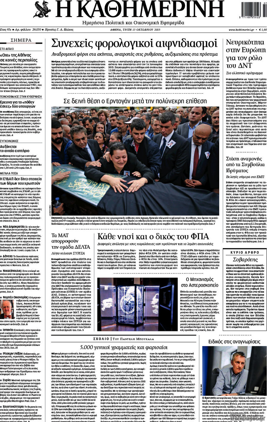 Οι πολιτικές εφημερίδες 13/10/2015 Enikos Newsroom 07:56, Τρίτη 13 Οκτωβρίου 2015 Media Διαβάστε τα σημερινά πρωτοσέλιδα των πολιτικών εφημερίδων: ΠΟΛΙΤΙΚΕΣ ΕΦΗΜΕΡΙΔΕΣ ΠΡΩΤΟΣΕΛΙΔΑ Μοιράσου το: σχολίασε κι εσύ (0 σχόλια) Ακολουθήστε το enikos.gr στο Google News και μάθετε πρώτοι όλες τις ειδήσεις Δείτε όλες τις τελευταίες ειδήσεις από την Ελλάδα και τον Κόσμο στο enikos.gr Ειδήσεις Ροή Ειδήσεων 2 ώρες πριν Η Ουκρανία χτύπησε τάνκερ του σκιώδους στόλου της Ρωσίας στη Μεσόγειο – Έπλεε νότια της Κρήτης 4 ώρες πριν Πούτιν: Η Ουκρανία δεν είναι έτοιμη για ειρηνευτικές συνομιλίες – Ο ρωσικός στρατός προελαύνει σε όλα τα μέτωπα 42 λεπτά πριν Θεσσαλονίκη: Στη φυλακή ο 44χρονος που κατηγορείται ότι προσπάθησε να πνίξει με κορδόνι την 34χρονη σύντροφό του 59 λεπτά πριν Εξώδικο επιχειρηματία στον Γιώργο Μαζωνάκη – Τι απαντά στις καταγγελίες του τραγουδιστή 2 ώρες πριν Βουλή: Υπερψηφίστηκε το νομοσχέδιο για την ένταξη του ΟΠΕΚΕΠΕ στην ΑΑΔΕ 6 ώρες πριν Αλλαγή σελίδας για 3 ζώδια – «Μία δύσκολη περίοδος φτάνει στο τέλος της» 2 ημέρες πριν 20 χρόνια τα Χριστούγεννα ξεκινούν στα Public με μεγάλη ποικιλία σε δώρα! 5 ώρες πριν Γεμάτος νεροχύτης; 5 σοβαρές ευθύνες που «φοβίζουν» όσους αφήνουν άπλυτα πιάτα 4 ώρες πριν Ειδικός μοιράζεται 6 κόλπα για να διατηρείστε σε φόρμα με πάνω από 40 ώρες εργασίας την εβδομάδα: «Προπονηθείτε πριν από τη δουλειά, όχι μετά» 5 λεπτά πριν Πούτιν: Σαρκαστικά μηνύματα, παράπονα και απρόοπτα στη συνέντευξη Τύπου – Η πρόταση γάμου on air και οι ερωτήσεις για τα αγγούρια και τους… εξωγήινους 12 λεπτά πριν Κρήτη: Ένοχος ο 54χρονος «ερευνητής» για απάτη στην υπόθεση του 33χρονου γιατρού που αγνοείται 12 λεπτά πριν Νίκος Κούρκουλος: Αυτός ο αλύγιστος και ασυμβίβαστος «Αστραπόγιαννος» 17 λεπτά πριν Παναθηναϊκός: Θα προτείνει στη Λάτσιο 4 εκατ. ευρώ και συνιδιοκτησία για τον Μανδά 23 λεπτά πριν Η απάντηση της κυβέρνησης στα αιτήματα των αγροτών: 16+4 υλοποιούνται ή βρίσκονται υπό επεξεργασία για να βρεθεί λύση – 7 δεν μπορούν να επιλυθούν ENIKOS NETWORK Τάξη στις ιατρικές διαφημίσεις για την προστασία των πολιτών βάζει ο ΙΣΑ Μακροζωία: Τι παίζει πιο σημαντικό ρόλο ακόμα και από την διατροφή και την άσκηση, σύμφωνα με μελέτη Βουλή: Υπερψηφίστηκε το νομοσχέδιο για τη μετάβαση του ΟΠΕΚΕΠΕ στην ΑΑΔΕ ΕΥΔΑΠ: Οδηγός για τις αλλαγές στα τιμολόγια του νερού – 17 ερωτήσεις και απαντήσεις Χαρτογραφώντας το «σημείο χωρίς επιστροφή»: Για πρώτη φορά αποκαλύπτεται με λεπτομέρεια το ακανθώδες όριο της ατμόσφαιρας τ... Η Google καταργεί τη λειτουργία «dark web report» – Πώς θα μπορούν οι χρήστες να διαγράφουν τα δεδομένα τους περισσότερα 15:15 , Παρασκευή 19 Δεκεμβρίου 2025 Την Κυριακή με τη Realnews: Ό,τι και αν αγοράσεις, σκανάρεις και κερδίζεις! Την Κυριακή με τη Realnews: Ό,τι και αν αγοράσεις, σκανάρεις και κερδίζεις! Με το PADU app, το... 08:00 , Παρασκευή 19 Δεκεμβρίου 2025 Την Κυριακή με τη Realnews: Δωροεπιταγή 10€ Δωροεπιταγή αξίας 10€ για αγορές άνω των 60€ από τα πολυκαταστήματα FactoryOutlet H προσφορά ι... 05:48 , Παρασκευή 19 Δεκεμβρίου 2025 Οι οικονομικές εφημερίδες 19/12/2025 Διαβάστε τα πρωτοσέλιδα από τις οικονομικές εφημερίδες, σήμερα 19/12/2025. 05:43 , Παρασκευή 19 Δεκεμβρίου 2025 Οι αθλητικές εφημερίδες 19/12/2025 Διαβάστε τα πρωτοσέλιδα από τις αθλητικές εφημερίδες, σήμερα 19/12/2025. ΤΕΛΕΥΤΑΙΕΣ ΕΙΔΗΣΕΙΣ 5 λεπτά πριν Πούτιν: Σαρκαστικά μηνύματα, παράπονα και απρόοπτα... 12 λεπτά πριν Κρήτη: Ένοχος ο 54χρονος «ερευνητής» για απάτη στην... 12 λεπτά πριν Νίκος Κούρκουλος: 