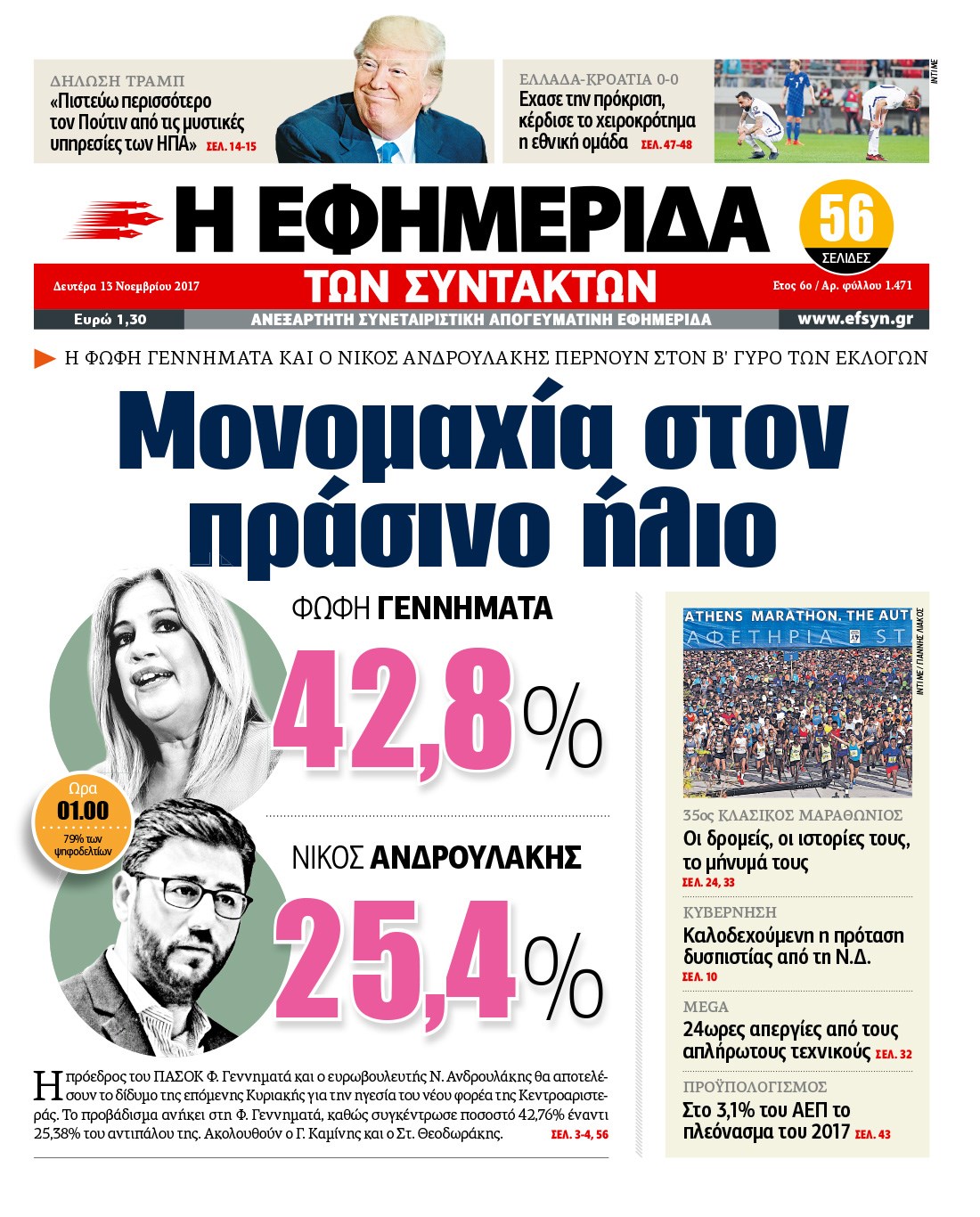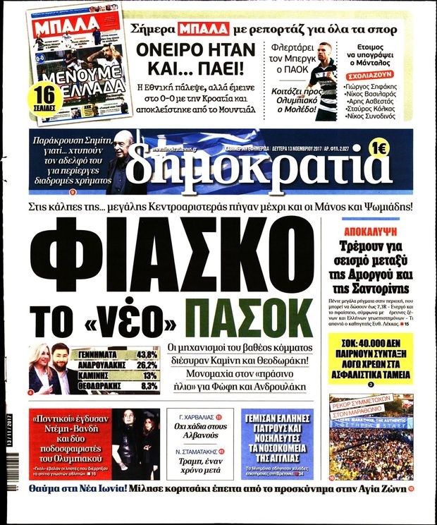 Οι πολιτικές εφημερίδες 13/11/2017 Κώστας Τεό 07:30, Δευτέρα 13 Νοεμβρίου 2017 Media Διαβάστε τα σημερινά πρωτοσέλιδα των πολιτικών εφημερίδων: ΠΟΛΙΤΙΚΕΣ ΕΦΗΜΕΡΙΔΕΣ ΠΡΩΤΟΣΕΛΙΔΑ Μοιράσου το: σχολίασε κι εσύ (0 σχόλια) Ακολουθήστε το enikos.gr στο Google News και μάθετε πρώτοι όλες τις ειδήσεις Δείτε όλες τις τελευταίες ειδήσεις από την Ελλάδα και τον Κόσμο στο enikos.gr Ειδήσεις Ροή Ειδήσεων 4 ώρες πριν Από το Ορμένιο ως τα Μάλγαρα κι από τη Σιάτιστα μέχρι τη Νίκαια: Μπλόκα σε όλη την Ελλάδα – Το Σάββατο ανοίγουν τα διόδια οι αγρότες 1 ώρα πριν Εμπλοκή και αερομαχίες με οπλισμένα τουρκικά F-16 στο Αιγαίο 3 ώρες πριν Αττική: Θρίλερ με νεκρό βρέφος 5 μηνών – Κοιμόταν στο ίδιο κρεβάτι με τους γονείς του 1 ώρα πριν Πούτιν: «Ναι, είμαι ερωτευμένος» – Βίντεο από τη σπάνια προσωπική παραδοχή του 3 ώρες πριν Μεσόγειος: Η διαδρομή του ρωσικού τάνκερ «Qendil» και η στοχευμένη επίθεση της Ουκρανίας με drone – Ο Πούτιν προειδοποίησε για αντίποινα 5 ώρες πριν Τα 5 ζώδια που ευνοούνται στην ερωτική ζωή τους την επόμενη εβδομάδα – «Η ενέργεια του Αιγόκερου φέρνει αγάπη και σταθερότητα» 6 ώρες πριν Αυτό το έξυπνο μαθηματικό κόλπο θα μπορούσε να αλλάξει τον τρόπο με τον οποίο οι επιστήμονες μελετούν τους σεισμούς 2 ώρες πριν Μήπως έχετε χάσει τον εαυτό σας στη σχέση σας; 7 «αθόρυβες» υποχωρήσεις που μάλλον κάνατε, χωρίς να το συνειδητοποιήσετε 4 ώρες πριν Κουίζ για την παλιά Αθήνα: Αναγνωρίζετε την περιοχή; Έχετε περάσει 100% από εκεί 11 λεπτά πριν Μπαράκ Ομπάμα: Τα βιβλία, οι ταινίες και τα τραγούδια που ξεχώρισε το 2025 – Πλήρης λίστα 16 λεπτά πριν Don’t Forget The Lyrics: Η Έλλη Κοκκίνου υποδέχεται 4 παίκτες που θα κάνουν τα πάντα για να μη χάσουν ούτε… μισή λέξη από τους στίχους 22 λεπτά πριν Πλεύρης στον ΑΝΤ1: Η βασική πολιτική που ψηφίστηκε από τους υπουργούς Μετανάστευσης είναι η δημιουργία κέντρων κράτησης μεταναστών στην Αφρική – ΒΙΝΤΕΟ 27 λεπτά πριν Η εξομολόγηση της Νίκης Σερέτη: «Δεν κρύβω ότι ήταν πάρα πολύ δύσκολο όλο αυτό που βίωσα» 32 λεπτά πριν Αγρότες: Κλειστό ξανά το ρεύμα εισόδου στα Μάλγαρα – Άνοιξαν τον κόμβο της Χαλκηδόνας ENIKOS NETWORK Έχετε πραγματικά μεγάλη καρδιά; 10 χαρακτηριστικά όσων έχουν καλοσύνη «Η σούπερ» γρίπη εξαπλώνεται στην Ευρώπη-Στοιχεία από το ECDC για την αποτελεσματικότητα του εμβολίου Επίδομα παιδιού: Πότε ανοίγει ξανά η πλατφόρμα για τις αιτήσεις Προκήρυξη ΑΣΕΠ για 397 μόνιμες προσλήψεις στο Δημόσιο: Βγήκαν τα προσωρινά αποτελέσματα – Πότε αρχίζει η υποβολή ενστάσεων Χαρτογραφώντας το «σημείο χωρίς επιστροφή»: Για πρώτη φορά αποκαλύπτεται με λεπτομέρεια το ακανθώδες όριο της ατμόσφαιρας τ... Η Google καταργεί τη λειτουργία «dark web report» – Πώς θα μπορούν οι χρήστες να διαγράφουν τα δεδομένα τους περισσότερα 20:37 , Παρασκευή 19 Δεκεμβρίου 2025 Don’t Forget The Lyrics: Η Έλλη Κοκκίνου υποδέχεται 4 παίκτες που θα κάνουν τα πάντα για να μη χάσουν ούτε… μισή λέξη από τους στίχους Το «Don’t Forget The Lyrics» επιστρέφει απόψε, Παρασκευή 19 Δεκεμβρίου, στις 21:00 με νέο επει... 19:31 , Παρασκευή 19 Δεκεμβρίου 2025 GNTM: Απόψε ο μεγάλος τελικός για τους 4 φιναλίστ Έπειτα από μήνες γεμάτους μόδα, δημιουργία και έντονες αναμετρήσεις, το GNTM 2025 κορυφώνεται,... 18:11 , Παρασκευή 19 Δεκεμβρίου 2025 Το σόι σου: Ο Άρης έρχεται στην Ελλάδα για τις γιορτές των Χριστουγέννων – Τι θα δούμε στο αποψινό εορταστικό επεισόδιο Ένα απολαυστικό, εορταστικό επεισόδιο της σειράς “Το σόι σου”, γεμάτο ευτράπελα αλ... 15:15 , Παρασκευή 19 Δεκεμβρίου 2025 Την Κυρ