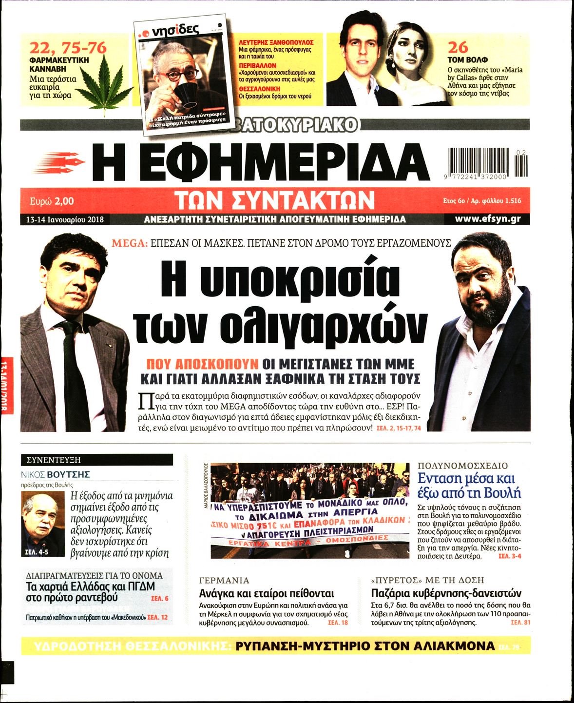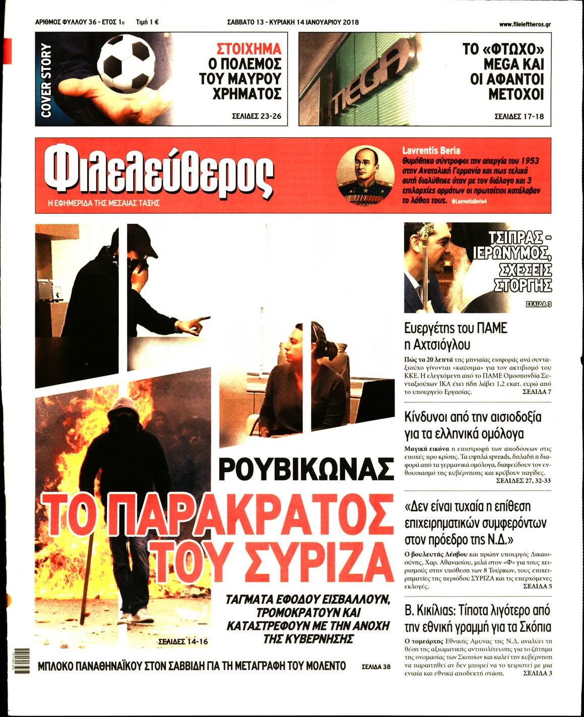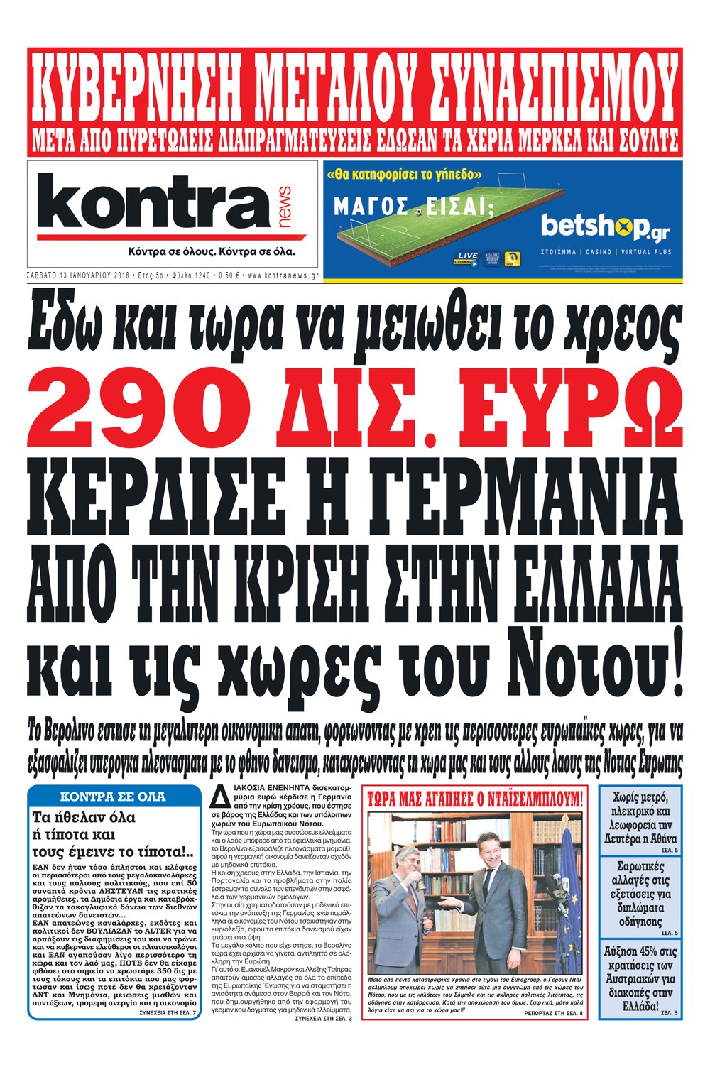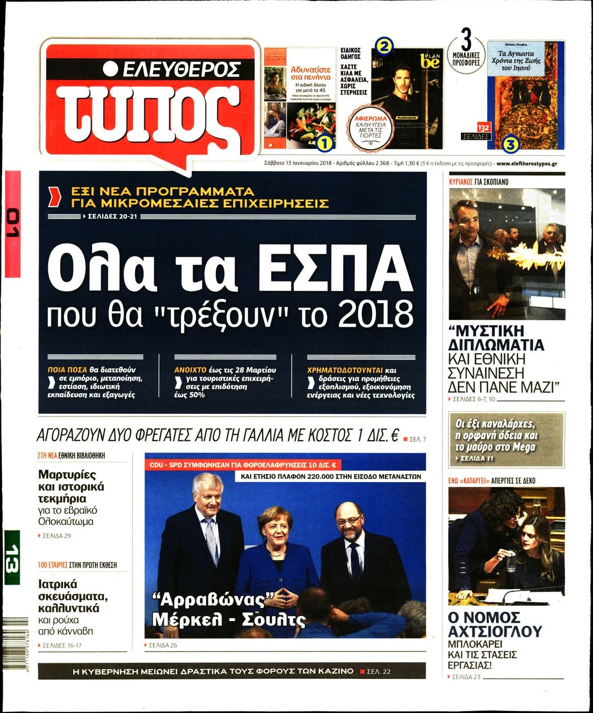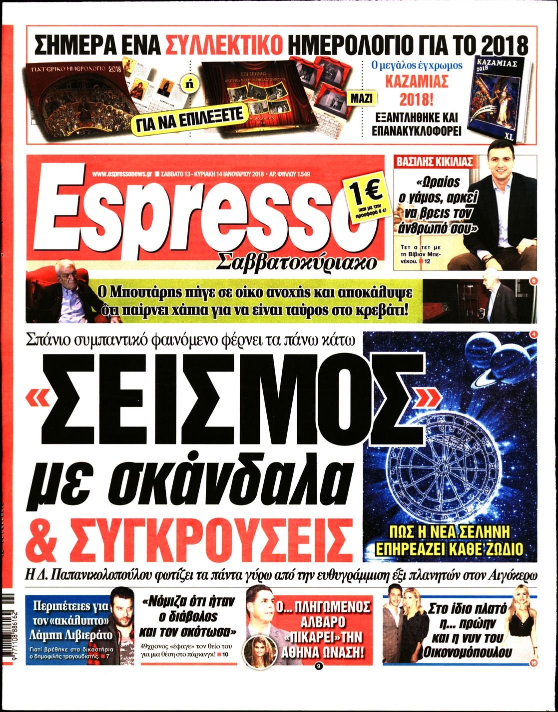 Οι πολιτικές εφημερίδες 13/1/2018 Enikos Newsroom 07:36, Σάββατο 13 Ιανουαρίου 2018 Media Διαβάστε τα σημερινά πρωτοσέλιδα των πολιτικών εφημερίδων: ΠΟΛΙΤΙΚΕΣ ΕΦΗΜΕΡΙΔΕΣ ΠΡΩΤΟΣΕΛΙΔΑ Μοιράσου το: σχολίασε κι εσύ (0 σχόλια) Ακολουθήστε το enikos.gr στο Google News και μάθετε πρώτοι όλες τις ειδήσεις Δείτε όλες τις τελευταίες ειδήσεις από την Ελλάδα και τον Κόσμο στο enikos.gr Ειδήσεις Ροή Ειδήσεων 4 ώρες πριν Υπόθεση Έπσταϊν: Το Υπουργείο Δικαιοσύνης δημοσιοποίησε μια σειρά από εξαιρετικά επεξεργασμένα αρχεία – «Λείπουν τα πιο σημαντικά έγγραφα», λένε οι Δημοκρατικοί 55 λεπτά πριν Γιορτές με μπλόκα για τους αγρότες: Ανοίγουν διόδια και μοιράζουν προϊόντα στους ταξιδιώτες 1 ώρα πριν Εξαφάνιση 33χρονου γιατρού στην Κρήτη: «Άναψα τα φώτα, τρόμαξε και άρχισε να τρέχει στα χωράφια» – Η τελευταία διαδρομή και η μαρτυρία «κλειδί» 3 ώρες πριν Ο «χάρτης» με τις αυξήσεις και τις φοροελαφρύνσεις του 2026 – Ποιοι και πόσα κερδίζουν 1 ώρα πριν Τα αρχεία του Έπσταϊν αποκαλύπτουν φωτογραφία του έκπτωτου πρίγκιπα Άντριου – Είναι ξαπλωμένος στην αγκαλιά 5 γυναικών 1 ώρα πριν Μία νέα «χρυσή» περίοδος αρχίζει για 3 ζώδια από σήμερα – «Μία αναπάντεχη ευκαιρία οδηγεί στην επιτυχία» 5 ώρες πριν Αυγά: Πόσα μπορείτε να τρώτε την ημέρα με ασφάλεια για μέγιστη πρόσληψη πρωτεΐνης 3 ώρες πριν Αρχαιολόγοι ανακάλυψαν σε χωράφι απεικόνιση 600 ετών ενός Αγίου – Τα στοιχεία που δείχνουν ότι μαρτύρησε 2 ώρες πριν Αγχώνεται για το χριστουγεννιάτικο δώρο που πήρε στην πλούσια σύντροφό του – «Φοβάμαι πως θα το βρει φθηνιάρικο, φοράει βραχιόλια Cartier» 4 λεπτά πριν Τραγωδία στην άσφαλτο στα Χανιά: Νεκρός 37χρονος οδηγός ΙΧ – Τον βρήκαν ώρες μετά το τροχαίο 12 λεπτά πριν Τα Labubu «μετακομίζουν» στο Χόλιγουντ: Η Sony Pictures ετοιμάζει live-action ταινία με τον σκηνοθέτη του «Wonka» 20 λεπτά πριν Νέες ταυτότητες: Μεγάλη αναμονή για ραντεβού στην Αττική – Τέλος τα ταξίδια εκτός Ελλάδος από τον Αύγουστο για όσους δεν έχουν αλλάξει 28 λεπτά πριν Οι 7 φράσεις που δεν λένε ποτέ οι συναισθηματικά έξυπνοι άνθρωποι κατά τη διάρκεια ενός καβγά 31 λεπτά πριν Τηλεθέαση (19/12): Ανατροπές και πρωτιές στην πρωινή ζώνη ENIKOS NETWORK Είστε μόνιμα απρόσεκτοι; 3 σημάδια που δείχνουν ότι μπορεί να είναι σύμπτωμα πάθησης Πόσα κιλά παίρνουμε πραγματικά τα Χριστούγεννα, σύμφωνα με την επιστήμη – Πώς να το αποτρέψουμε; e-ΕΦΚΑ και ΔΥΠΑ: Έρχονται νέες πληρωμές έως τις 24 Δεκεμβρίου – Ποιοι πάνε ταμείο Επίδομα παιδιού: Τι αλλάζει από το 2026 – Το όφελος από τις φορολογικές ελαφρύνσεις Χαρτογραφώντας το «σημείο χωρίς επιστροφή»: Για πρώτη φορά αποκαλύπτεται με λεπτομέρεια το ακανθώδες όριο της ατμόσφαιρας τ... Η Google καταργεί τη λειτουργία «dark web report» – Πώς θα μπορούν οι χρήστες να διαγράφουν τα δεδομένα τους περισσότερα 09:30 , Σάββατο 20 Δεκεμβρίου 2025 «Porto Leone: Στη γειτονιά με τα κόκκινα φανάρια» – Ο Χρόνης αποκαλύπτει στην Αλεξάνδρα το μυστικό για το παιδί της Λένας Η μεγάλη δραματική σειρά του Apha «Porto Leone: Στη γειτονιά με τα κόκκινα φανάρια» μας μεταφέ... 08:14 , Σάββατο 20 Δεκεμβρίου 2025 Τρομεροί γονείς: Η Μαρία Καβογιάννη εισβάλλει στο σπίτι της οικογένειας Στεφανίδη Όσα θα δούμε στο νέο διπλό επεισόδιο της σειράς «Τρομεροί γονείς», σήμερα Σάββατο 20 Δεκεμβρίο... 05:48 , Σάββατο 20 Δεκεμβρίου 2025 Οι οικονομικές εφημερίδες 20/12/2025 Διαβάστε τα πρωτοσέλιδα από τις οικονομικές εφημερίδες, σήμερα 20/12/2025. 05:43 , Σάββατο 20 Δεκεμβρίου 2025 Οι αθλητικές εφημερίδες 20/12/2025 Διαβάστε τα πρωτοσέλιδα α