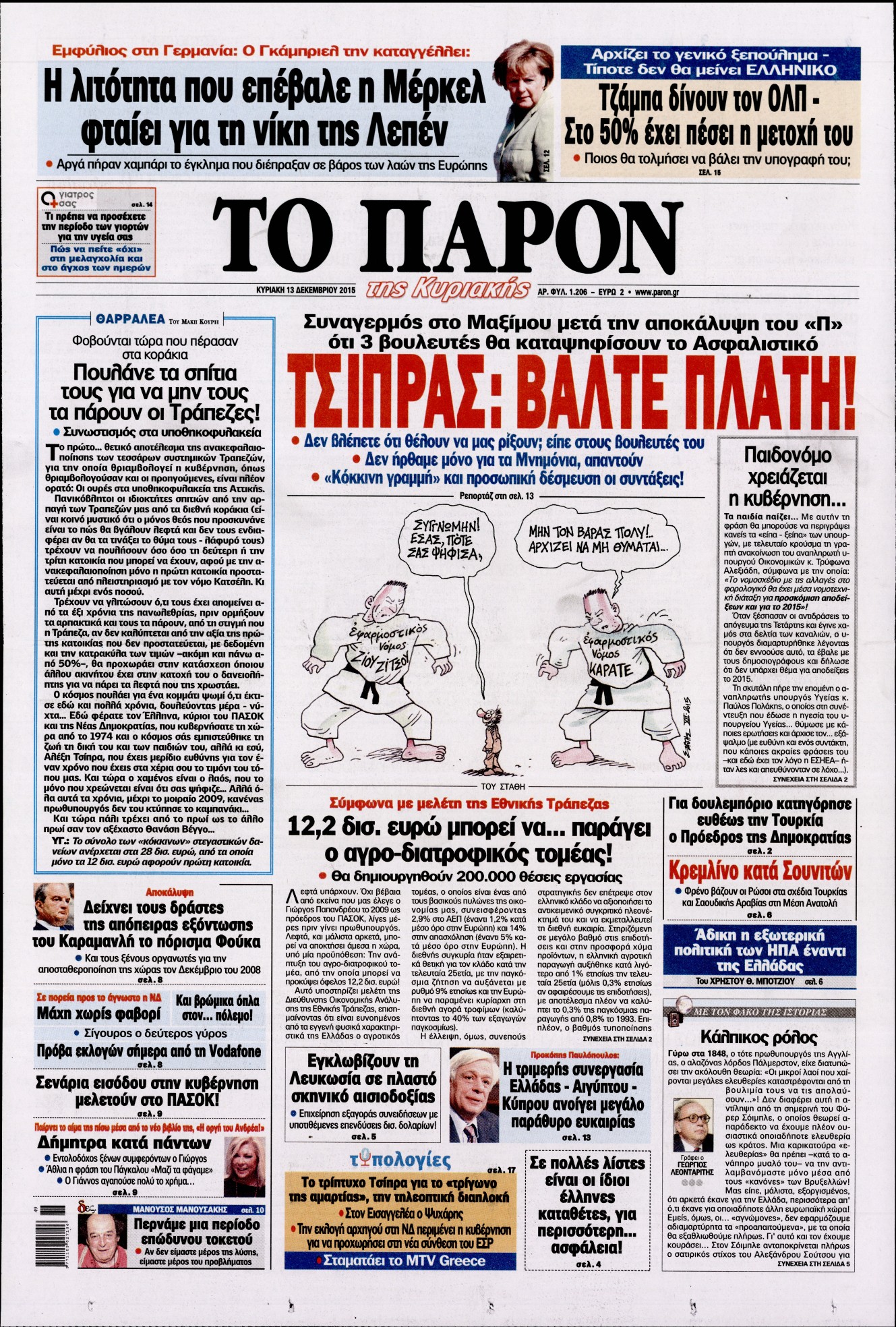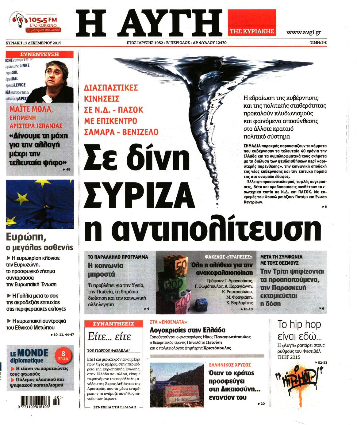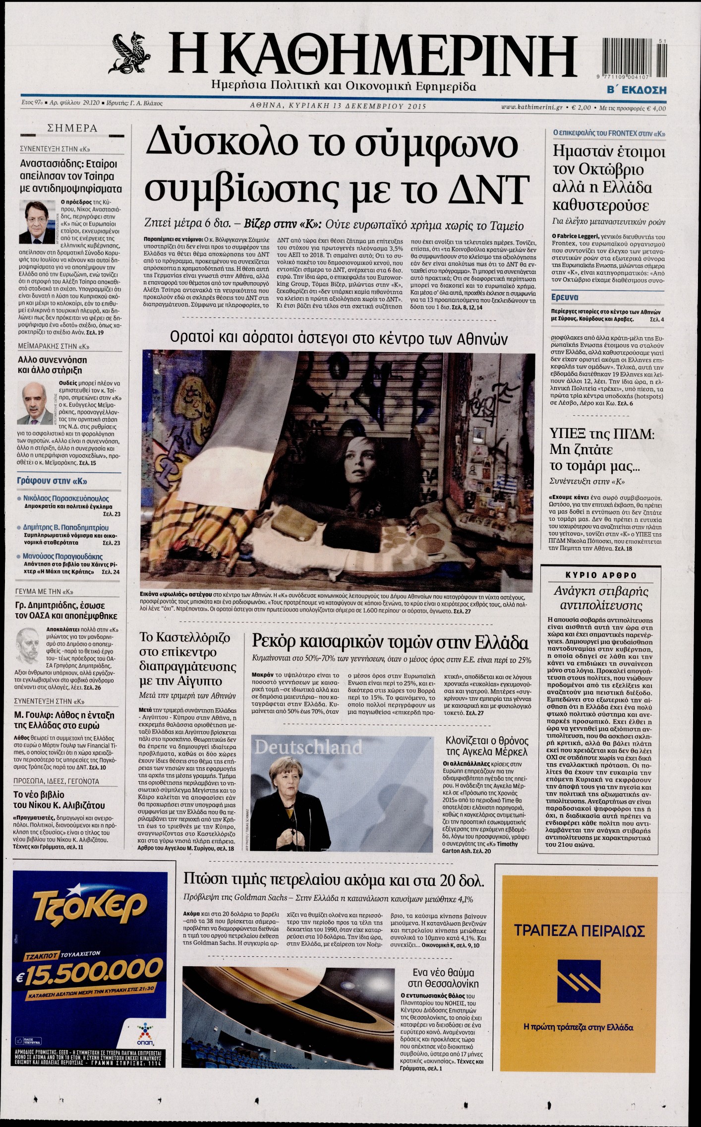 Oι πολιτικές εφημερίδες 13/12/2015 Enikos Newsroom 06:39, Κυριακή 13 Δεκεμβρίου 2015 Media Διαβάστε τα σημερινά πρωτοσέλιδα των πολιτικών εφημερίδων: ΠΟΛΙΤΙΚΕΣ ΕΦΗΜΕΡΙΔΕΣ ΠΡΩΤΟΣΕΛΙΔΑ Μοιράσου το: σχολίασε κι εσύ (0 σχόλια) Ακολουθήστε το enikos.gr στο Google News και μάθετε πρώτοι όλες τις ειδήσεις Δείτε όλες τις τελευταίες ειδήσεις από την Ελλάδα και τον Κόσμο στο enikos.gr Ειδήσεις Ροή Ειδήσεων 8 ώρες πριν Χριστούγεννα στα μπλόκα: Επιμένουν στις κινητοποιήσεις τους οι αγρότες – Ανοίγουν τα διόδια το Σαββατοκύριακο 8 ώρες πριν Ουκρανία: Η άνευ προηγουμένου επίθεση σε ρωσικό τάνκερ στη Μεσόγειο και το μήνυμα προς στον Πούτιν – Το «μακρύ χέρι» του Κιέβου 7 ώρες πριν Πούτιν: Τα μηνύματα σε Ευρώπη και ΝΑΤΟ από το μαραθώνιο «σόου» του – Η απαίτηση για «σεβασμό» και η ειρήνη «με τους όρους» της Μόσχας 7 ώρες πριν ΗΠΑ: Η κυβέρνηση του Ντόναλντ Τραμπ άρχισε να δημοσιοποιεί τα αρχεία Έπσταϊν 7 ώρες πριν Άνω Λιόσια: Πυροβολισμοί σε επιχείρηση με χαλιά – Εντοπίστηκαν 10 κάλυκες 30 λεπτά πριν Αυγά: Πόσα μπορείτε να τρώτε την ημέρα με ασφάλεια για μέγιστη πρόσληψη πρωτεΐνης 60 λεπτά πριν Τα ζώδια σήμερα, Σάββατο 20 Δεκεμβρίου: Παρθένοι, το σύμπαν σας δίνει το κλειδί 8 ώρες πριν Ανακαλύφθηκαν αρχαία χρυσά νομίσματα 2.200 ετών που απεικονίζουν τον θεό Απόλλωνα – Η άγνωστη σύνδεση με τον Φίλιππο Β΄ της Μακεδονίας 8 ώρες πριν Ύπνος: Μια κρυφή κατάσταση του εγκεφάλου πριν από τον ύπνο μπορεί να είναι το “κλειδί” για υψηλή ευφυΐα και δημιουργικότητα 7 λεπτά πριν Κολομβία: Είκοσι χρόνια κάθειρξη σε πρώην ανώτερο αξιωματικό για 72 εκτελέσεις αμάχων 14 λεπτά πριν Οπτική ψευδαίσθηση: Μόνο αν είσαι ο Σέρλοκ Χολμς θα βρεις τον αριθμό «87» σε 7 δευτερόλεπτα 21 λεπτά πριν Σαρωτικοί οι έλεγχοι στους δρόμους ενόψει εορτών – Μπλόκα της τροχαίας σε κεντρικές αρτηρίες της Αττικής 30 λεπτά πριν Αυγά: Πόσα μπορείτε να τρώτε την ημέρα με ασφάλεια για μέγιστη πρόσληψη πρωτεΐνης 36 λεπτά πριν Σαν σήμερα 20 Δεκεμβρίου: Τα σημαντικότερα γεγονότα της ημέρας ENIKOS NETWORK Το ΕΚΑΒ τιμήθηκε από την Ακαδημία Αθηνών για τα 40 χρόνια προσφοράς του Έχετε πραγματικά μεγάλη καρδιά; 10 χαρακτηριστικά όσων έχουν καλοσύνη Αναστολή μέτρων αναγκαστικής εκτέλεσης για κτηνοτρόφους που πλήττονται από την ευλογιά των αιγοπροβάτων Πλήρης επάρκεια προϊόντων στις λαϊκές της Αττικής, παρά τις αγροτικές κινητοποιήσεις – Τι απαντούν οι πωλητές Χαρτογραφώντας το «σημείο χωρίς επιστροφή»: Για πρώτη φορά αποκαλύπτεται με λεπτομέρεια το ακανθώδες όριο της ατμόσφαιρας τ... Η Google καταργεί τη λειτουργία «dark web report» – Πώς θα μπορούν οι χρήστες να διαγράφουν τα δεδομένα τους περισσότερα 05:48 , Σάββατο 20 Δεκεμβρίου 2025 Οι οικονομικές εφημερίδες 20/12/2025 Διαβάστε τα πρωτοσέλιδα από τις οικονομικές εφημερίδες, σήμερα 20/12/2025. 05:43 , Σάββατο 20 Δεκεμβρίου 2025 Οι αθλητικές εφημερίδες 20/12/2025 Διαβάστε τα πρωτοσέλιδα από τις αθλητικές εφημερίδες, σήμερα 20/12/2025. 05:38 , Σάββατο 20 Δεκεμβρίου 2025 Οι πολιτικές εφημερίδες 20/12/2025 Διαβάστε τα πρωτοσέλιδα από τις πολιτικές εφημερίδες, σήμερα 20/12/2025. 04:20 , Σάββατο 20 Δεκεμβρίου 2025 Αγγελική Νικολούλη: Τα συλλυπητήρια για την απώλεια της Ειρήνης Μαρινάκη Τα συλληπητήρια στον πρόεδρο του Mega, τον Βαγγέλη Μαρινάκη, για την απώλεια της μητέρας του Ε... ΤΕΛΕΥΤΑΙΕΣ ΕΙΔΗΣΕΙΣ 7 λεπτά πριν Κολομβία: Είκοσι χρόνια κάθειρξη σε πρώην ανώτερο... 14 λεπτά πριν Οπτική ψευδαίσθηση: Μόνο αν είσαι ο Σέρλοκ Χολμς θα... 21 λεπτά πριν Σαρωτικοί οι έλεγχοι στους δρό
