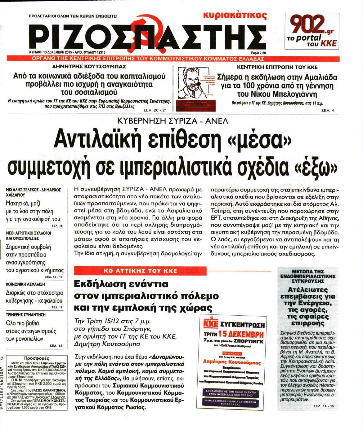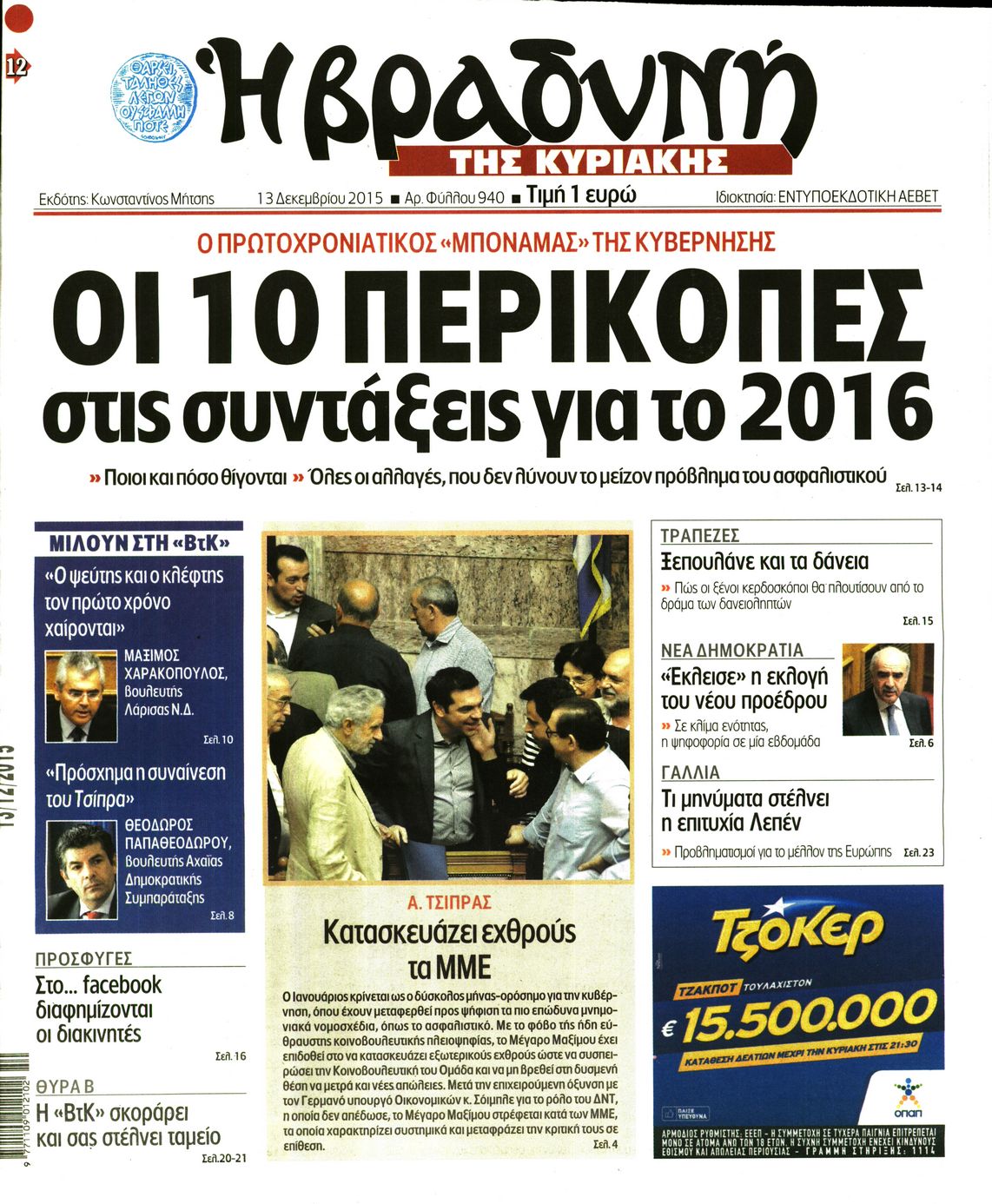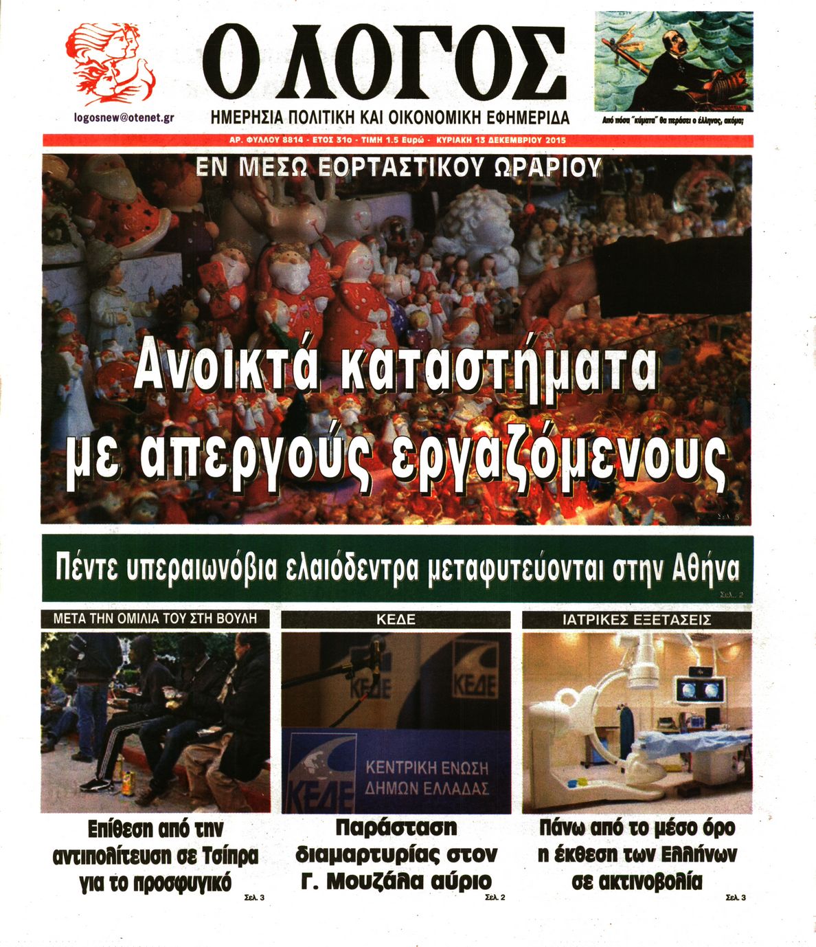 Oι πολιτικές εφημερίδες 13/12/2015 Enikos Newsroom 06:39, Κυριακή 13 Δεκεμβρίου 2015 Media Διαβάστε τα σημερινά πρωτοσέλιδα των πολιτικών εφημερίδων: ΠΟΛΙΤΙΚΕΣ ΕΦΗΜΕΡΙΔΕΣ ΠΡΩΤΟΣΕΛΙΔΑ Μοιράσου το: σχολίασε κι εσύ (0 σχόλια) Ακολουθήστε το enikos.gr στο Google News και μάθετε πρώτοι όλες τις ειδήσεις Δείτε όλες τις τελευταίες ειδήσεις από την Ελλάδα και τον Κόσμο στο enikos.gr Ειδήσεις Ροή Ειδήσεων 8 ώρες πριν Χριστούγεννα στα μπλόκα: Επιμένουν στις κινητοποιήσεις τους οι αγρότες – Ανοίγουν τα διόδια το Σαββατοκύριακο 8 ώρες πριν Ουκρανία: Η άνευ προηγουμένου επίθεση σε ρωσικό τάνκερ στη Μεσόγειο και το μήνυμα προς στον Πούτιν – Το «μακρύ χέρι» του Κιέβου 7 ώρες πριν Πούτιν: Τα μηνύματα σε Ευρώπη και ΝΑΤΟ από το μαραθώνιο «σόου» του – Η απαίτηση για «σεβασμό» και η ειρήνη «με τους όρους» της Μόσχας 7 ώρες πριν ΗΠΑ: Η κυβέρνηση του Ντόναλντ Τραμπ άρχισε να δημοσιοποιεί τα αρχεία Έπσταϊν 7 ώρες πριν Άνω Λιόσια: Πυροβολισμοί σε επιχείρηση με χαλιά – Εντοπίστηκαν 10 κάλυκες 30 λεπτά πριν Αυγά: Πόσα μπορείτε να τρώτε την ημέρα με ασφάλεια για μέγιστη πρόσληψη πρωτεΐνης 60 λεπτά πριν Τα ζώδια σήμερα, Σάββατο 20 Δεκεμβρίου: Παρθένοι, το σύμπαν σας δίνει το κλειδί 8 ώρες πριν Ανακαλύφθηκαν αρχαία χρυσά νομίσματα 2.200 ετών που απεικονίζουν τον θεό Απόλλωνα – Η άγνωστη σύνδεση με τον Φίλιππο Β΄ της Μακεδονίας 8 ώρες πριν Ύπνος: Μια κρυφή κατάσταση του εγκεφάλου πριν από τον ύπνο μπορεί να είναι το “κλειδί” για υψηλή ευφυΐα και δημιουργικότητα 7 λεπτά πριν Κολομβία: Είκοσι χρόνια κάθειρξη σε πρώην ανώτερο αξιωματικό για 72 εκτελέσεις αμάχων 14 λεπτά πριν Οπτική ψευδαίσθηση: Μόνο αν είσαι ο Σέρλοκ Χολμς θα βρεις τον αριθμό «87» σε 7 δευτερόλεπτα 21 λεπτά πριν Σαρωτικοί οι έλεγχοι στους δρόμους ενόψει εορτών – Μπλόκα της τροχαίας σε κεντρικές αρτηρίες της Αττικής 30 λεπτά πριν Αυγά: Πόσα μπορείτε να τρώτε την ημέρα με ασφάλεια για μέγιστη πρόσληψη πρωτεΐνης 36 λεπτά πριν Σαν σήμερα 20 Δεκεμβρίου: Τα σημαντικότερα γεγονότα της ημέρας ENIKOS NETWORK Το ΕΚΑΒ τιμήθηκε από την Ακαδημία Αθηνών για τα 40 χρόνια προσφοράς του Έχετε πραγματικά μεγάλη καρδιά; 10 χαρακτηριστικά όσων έχουν καλοσύνη Αναστολή μέτρων αναγκαστικής εκτέλεσης για κτηνοτρόφους που πλήττονται από την ευλογιά των αιγοπροβάτων Πλήρης επάρκεια προϊόντων στις λαϊκές της Αττικής, παρά τις αγροτικές κινητοποιήσεις – Τι απαντούν οι πωλητές Χαρτογραφώντας το «σημείο χωρίς επιστροφή»: Για πρώτη φορά αποκαλύπτεται με λεπτομέρεια το ακανθώδες όριο της ατμόσφαιρας τ... Η Google καταργεί τη λειτουργία «dark web report» – Πώς θα μπορούν οι χρήστες να διαγράφουν τα δεδομένα τους περισσότερα 05:48 , Σάββατο 20 Δεκεμβρίου 2025 Οι οικονομικές εφημερίδες 20/12/2025 Διαβάστε τα πρωτοσέλιδα από τις οικονομικές εφημερίδες, σήμερα 20/12/2025. 05:43 , Σάββατο 20 Δεκεμβρίου 2025 Οι αθλητικές εφημερίδες 20/12/2025 Διαβάστε τα πρωτοσέλιδα από τις αθλητικές εφημερίδες, σήμερα 20/12/2025. 05:38 , Σάββατο 20 Δεκεμβρίου 2025 Οι πολιτικές εφημερίδες 20/12/2025 Διαβάστε τα πρωτοσέλιδα από τις πολιτικές εφημερίδες, σήμερα 20/12/2025. 04:20 , Σάββατο 20 Δεκεμβρίου 2025 Αγγελική Νικολούλη: Τα συλλυπητήρια για την απώλεια της Ειρήνης Μαρινάκη Τα συλληπητήρια στον πρόεδρο του Mega, τον Βαγγέλη Μαρινάκη, για την απώλεια της μητέρας του Ε... ΤΕΛΕΥΤΑΙΕΣ ΕΙΔΗΣΕΙΣ 7 λεπτά πριν Κολομβία: Είκοσι χρόνια κάθειρξη σε πρώην ανώτερο... 14 λεπτά πριν Οπτική ψευδαίσθηση: Μόνο αν είσαι ο Σέρλοκ Χολμς θα... 21 λεπτά πριν Σαρωτικοί οι έλεγχοι στους δρό