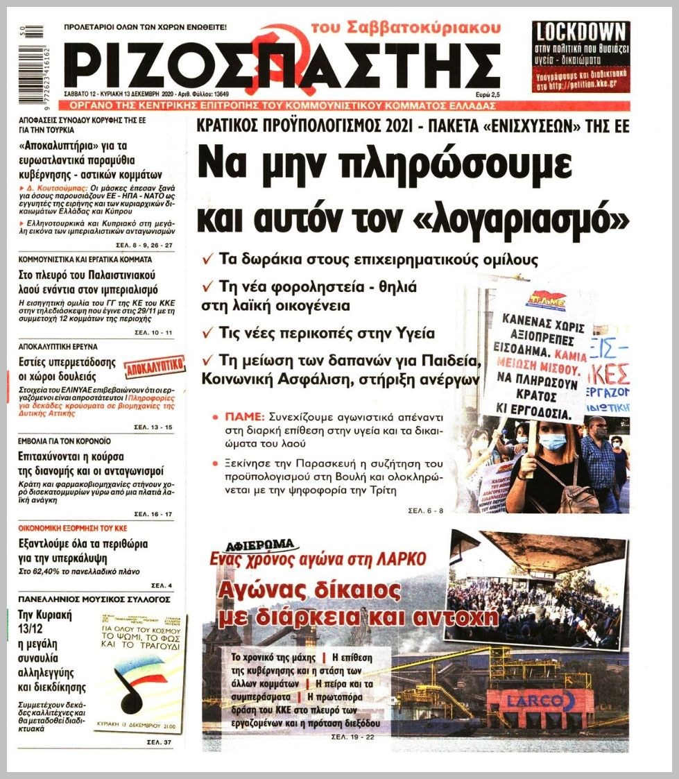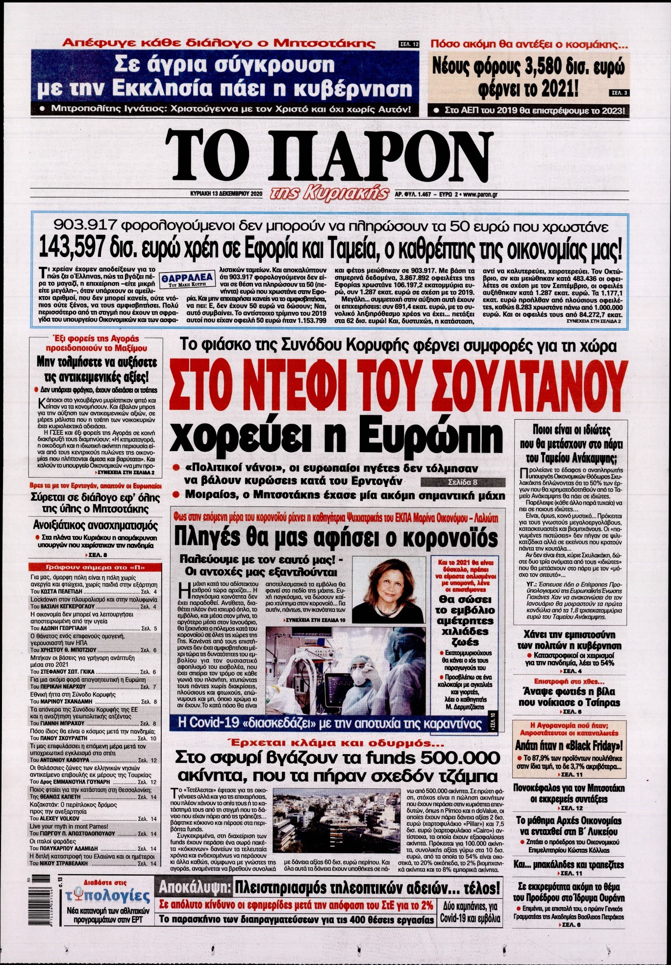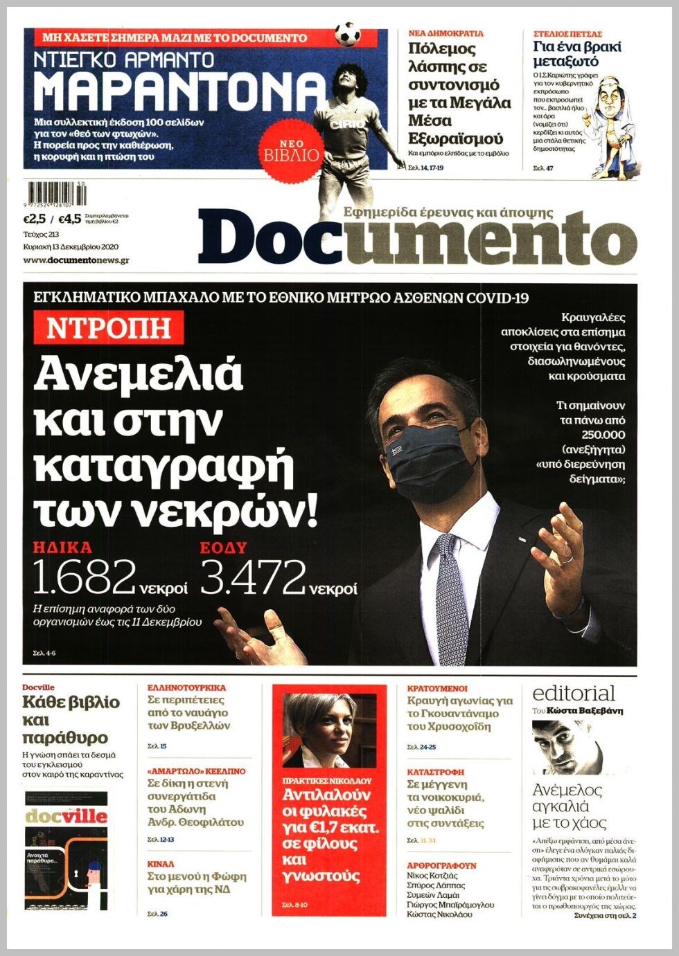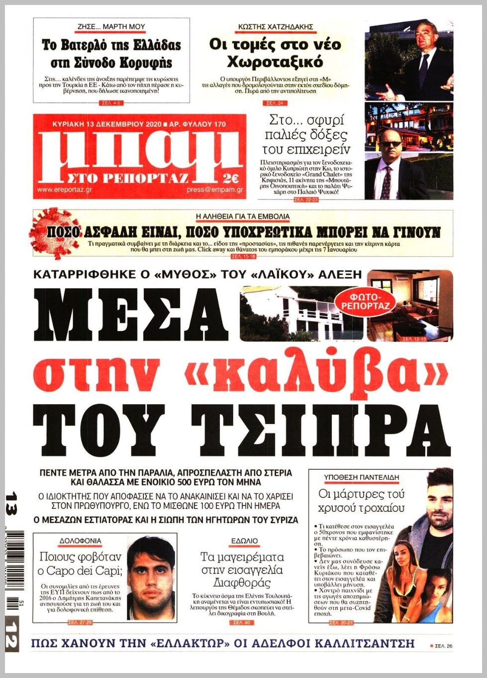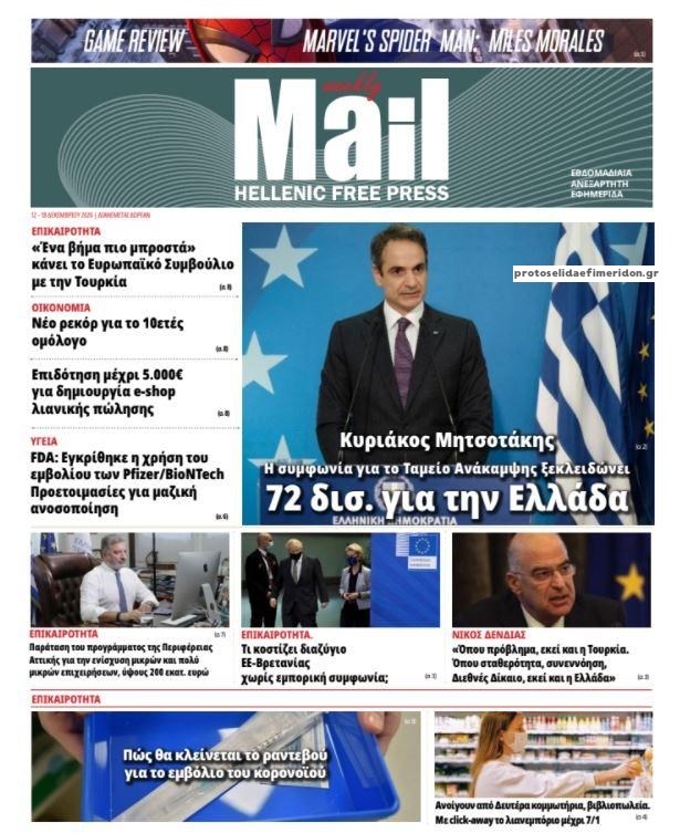Οι πολιτικές εφημερίδες 13/12/2020 Διονύσης Νίκκας 07:22, Κυριακή 13 Δεκεμβρίου 2020 Media Διαβάστε τα πρωτοσέλιδα των πολιτικών εφημερίδων… ΕΦΗΜΕΡΙΔΕΣ ΠΟΛΙΤΙΚΕΣ ΕΦΗΜΕΡΙΔΕΣ ΠΡΩΤΟΣΕΛΙΔΑ Μοιράσου το: σχολίασε κι εσύ (0 σχόλια) Ακολουθήστε το enikos.gr στο Google News και μάθετε πρώτοι όλες τις ειδήσεις Δείτε όλες τις τελευταίες ειδήσεις από την Ελλάδα και τον Κόσμο στο enikos.gr Ειδήσεις Ροή Ειδήσεων 2 ώρες πριν Χριστούγεννα στα μπλόκα: Επιμένουν στις κινητοποιήσεις τους οι αγρότες – Ανοίγουν τα διόδια το Σαββατοκύριακο 2 ώρες πριν Ουκρανία: Η άνευ προηγουμένου επίθεση σε ρωσικό τάνκερ στη Μεσόγειο και το μήνυμα προς στον Πούτιν – Το «μακρύ χέρι» του Κιέβου 1 ώρα πριν Πούτιν: Τα μηνύματα σε Ευρώπη και ΝΑΤΟ από το μαραθώνιο «σόου» του – Η απαίτηση για «σεβασμό» και η ειρήνη «με τους όρους» της Μόσχας 2 ώρες πριν Τραμπ: Δεν αποκλείει την πιθανότητα ενός πολέμου στη Βενεζουέλα – «Ο Μαδούρο ξέρει καλύτερα από τον καθένα τι ακριβώς θέλω» 3 ώρες πριν Συνεχίζει να προκαλεί ο Μίτσκοσκι: «Για μένα το όνομα Μακεδονία είναι ιερό» 1 ώρα πριν Ανακαλύφθηκαν αρχαία χρυσά νομίσματα 2.200 ετών που απεικονίζουν τον θεό Απόλλωνα – Η άγνωστη σύνδεση με τον Φίλιππο Β΄ της Μακεδονίας 2 ώρες πριν Ύπνος: Μια κρυφή κατάσταση του εγκεφάλου πριν από τον ύπνο μπορεί να είναι το “κλειδί” για υψηλή ευφυΐα και δημιουργικότητα 3 ώρες πριν Αριθμολογία: Οι άνθρωποι που έχουν γεννηθεί αυτές τις 4 ημερομηνίες, συχνά παρεξηγούνται – «Η καλοσύνη τους κρύβει τεράστια δύναμη» 4 ώρες πριν Ξεχάστε το καθάρισμα το Σαββατοκύριακο: Ο «κανόνας των 20 λεπτών» που θα σας λύσει τα χέρια 9 λεπτά πριν Πόλεμος στην Ουκρανία: Εφτά νεκροί από ρωσική πυραυλική επίθεση στο λιμάνι της Οδησσού 12 λεπτά πριν ΗΠΑ: Η κυβέρνηση του Ντόναλντ Τραμπ άρχισε να δημοσιοποιεί τα αρχεία Έπσταϊν 24 λεπτά πριν Σάμος: Άνοιξε το μπλόκο των αγροτών στον κόμβο Κοκκαρίου – Σε νέα συνεδρίαση θα καθορίσουν την στάση τους 32 λεπτά πριν Άνω Λιόσια: Πυροβολισμοί σε επιχείρηση με χαλιά – Εντοπίστηκαν 10 κάλυκες 39 λεπτά πριν Γάζα: Ισραηλινό πλήγμα σε σχολείο που είχαν καταφύγει εκτοπισμένοι – Τουλάχιστον έξι νεκροί ENIKOS NETWORK Το ΕΚΑΒ τιμήθηκε από την Ακαδημία Αθηνών για τα 40 χρόνια προσφοράς του Έχετε πραγματικά μεγάλη καρδιά; 10 χαρακτηριστικά όσων έχουν καλοσύνη Αναστολή μέτρων αναγκαστικής εκτέλεσης για κτηνοτρόφους που πλήττονται από την ευλογιά των αιγοπροβάτων Πλήρης επάρκεια προϊόντων στις λαϊκές της Αττικής, παρά τις αγροτικές κινητοποιήσεις – Τι απαντούν οι πωλητές Χαρτογραφώντας το «σημείο χωρίς επιστροφή»: Για πρώτη φορά αποκαλύπτεται με λεπτομέρεια το ακανθώδες όριο της ατμόσφαιρας τ... Η Google καταργεί τη λειτουργία «dark web report» – Πώς θα μπορούν οι χρήστες να διαγράφουν τα δεδομένα τους περισσότερα 22:42 , Παρασκευή 19 Δεκεμβρίου 2025 Γιώργος Γιαννόπουλος για “Το σόι σου”: “Είναι ευτυχία και ευλογία αυτή η σειρά” «Είναι ευτυχία και ευλογία η συγκυρία αυτής της σειράς», θα πει ο Γιώργος Γιαννόπουλος -ο αγαπ... 20:37 , Παρασκευή 19 Δεκεμβρίου 2025 Don’t Forget The Lyrics: Η Έλλη Κοκκίνου υποδέχεται 4 παίκτες που θα κάνουν τα πάντα για να μη χάσουν ούτε… μισή λέξη από τους στίχους Το «Don’t Forget The Lyrics» επιστρέφει απόψε, Παρασκευή 19 Δεκεμβρίου, στις 21:00 με νέο επει... 19:31 , Παρασκευή 19 Δεκεμβρίου 2025 GNTM: Απόψε ο μεγάλος τελικός για τους 4 φιναλίστ Έπειτα από μήνες γεμάτους μόδα, δημιουργία και έντονες αναμετρήσεις, το GNTM 2025 κορυφώνεται,... 18:11 , Παρασκευή 19 Δεκεμβρίου 2025 