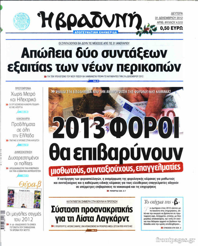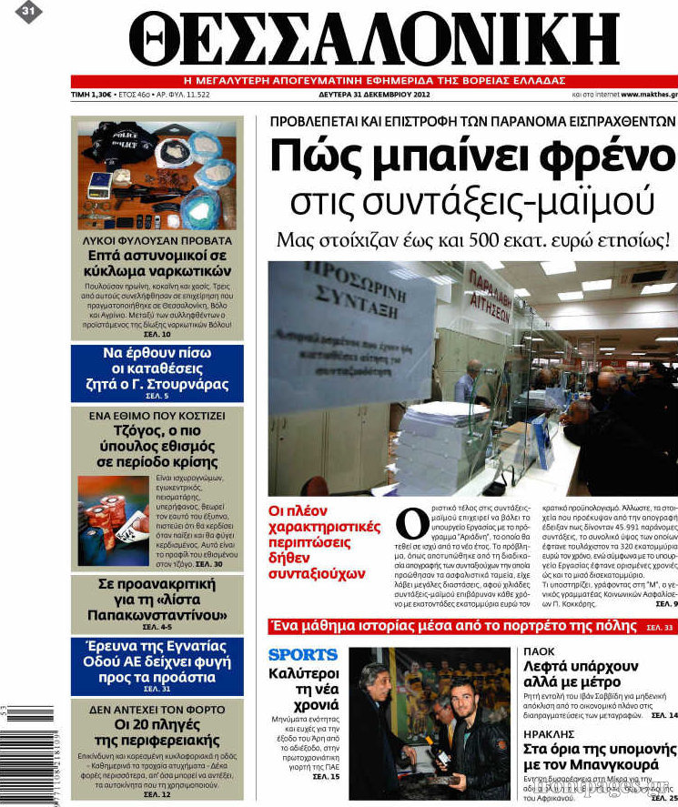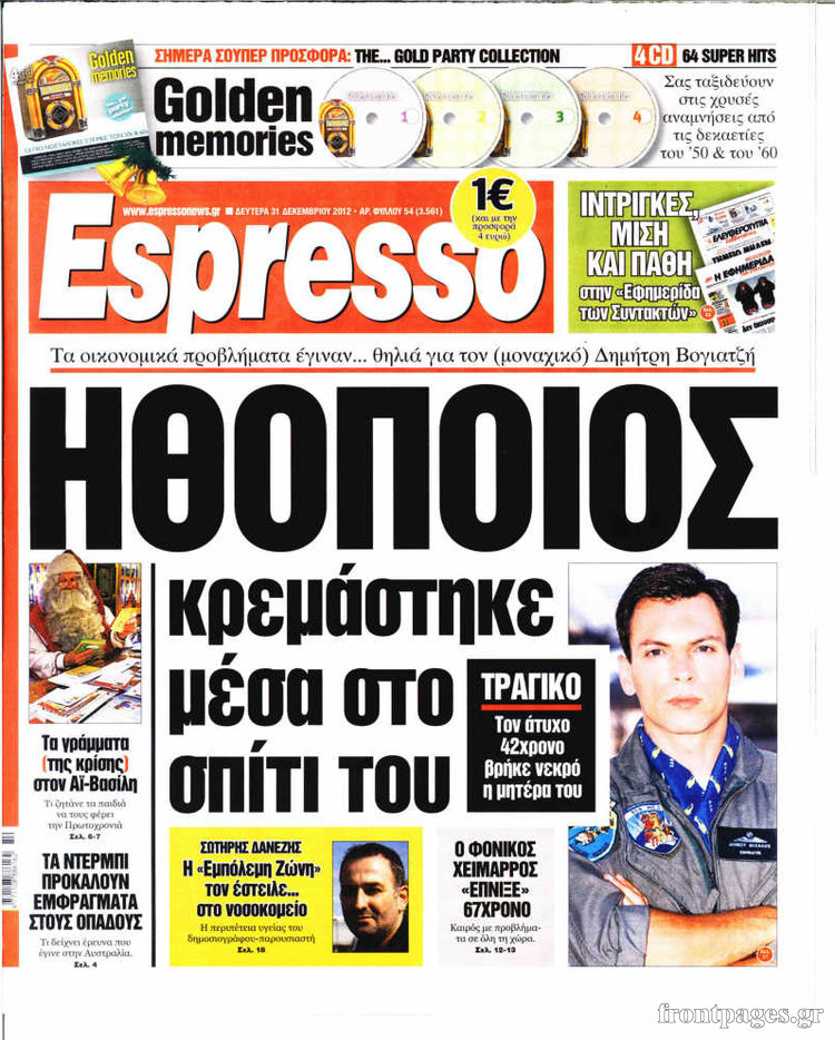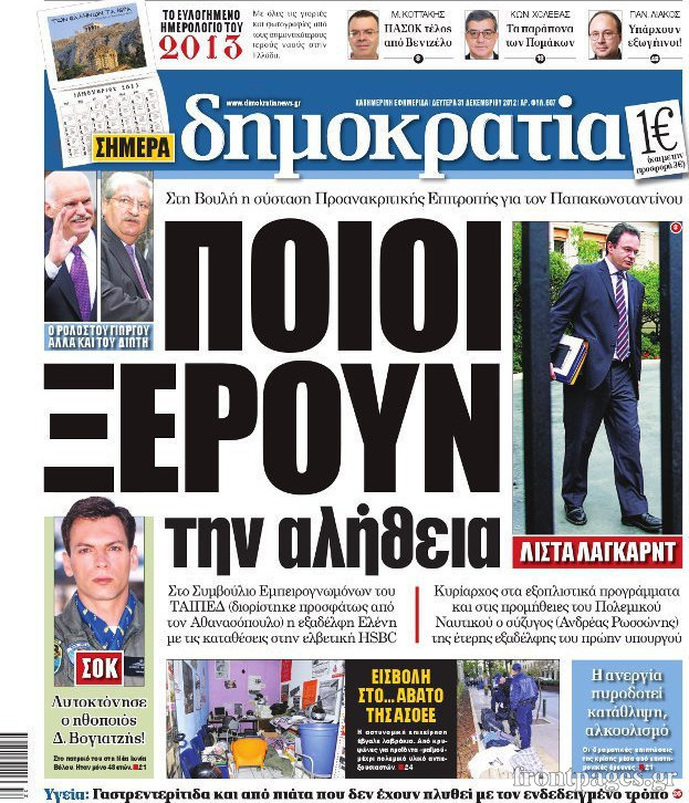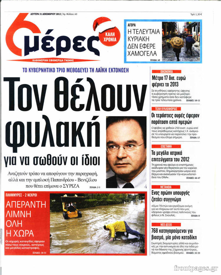 Οι πολιτικές εφημερίδες Enikos Newsroom 09:05, Δευτέρα 31 Δεκεμβρίου 2012 Media Οι πολιτικές εφημερίδες Τα πρωτοσέλιδα των πολιτικών εφημερίδων. ΠΟΛΙΤΙΚΕΣ ΕΦΗΜΕΡΙΔΕΣ ΠΡΩΤΟΣΕΛΙΔΑ Μοιράσου το: σχολίασε κι εσύ (0 σχόλια) Ακολουθήστε το enikos.gr στο Google News και μάθετε πρώτοι όλες τις ειδήσεις Δείτε όλες τις τελευταίες ειδήσεις από την Ελλάδα και τον Κόσμο στο enikos.gr Ειδήσεις Ροή Ειδήσεων 2 ώρες πριν «Βιολάντα:» Οι ανατριχιαστικοί διάλογοι λίγες ώρες πριν από την φονική έκρηξη για «μυρωδιά σαν υγραέριο» – «Μου έλεγαν ότι δεν ήταν κάτι ανησυχητικό» κατέθεσε ο υπεύθυνος βάρδιας 3 ώρες πριν Ο Κυριάκος Μητσοτάκης ανοίγει τα χαρτιά του για τη Συνταγματική Αναθεώρηση – Στο τραπέζι και η μονιμότητα των δημοσίων υπαλλήλων 1 ώρα πριν Νέα Πέραμος: Προσπάθησαν να κάψουν το πτώμα του 27χρονου – Οι έρευνες στο εργασιακό του περιβάλλον και η εκτέλεση «καρμπόν» πριν από 2 χρόνια στη Μάνδρα 2 ώρες πριν Κακοκαιρία: Νέο έκτακτο δελτίο της ΕΜΥ – Σε ποιες περιοχές θα συνεχιστούν τα έντονα φαινόμενα 1 ώρα πριν Γκίλφοϊλ: Προανήγγειλε επίσκεψη Τραμπ στην Ελλάδα – «Ελπίζω να έρθει και η Μελάνια» 3 ώρες πριν Αριθμολογία: Οι 3 «καταραμένες» διευθύνσεις σπιτιού – «Τα νούμερα αυτά συνδέονται με αναταραχές και αρνητική ενέργεια» 4 ώρες πριν Τα 11 ψέματα που λένε πάντα οι άνδρες για να σας πείσουν ότι έχετε εσείς το πρόβλημα 2 ώρες πριν Ύπνος: Γιατί πρέπει να κοιμάστε με την πόρτα του υπνοδωματίου σας κλειστή 1 ώρα πριν Στο φως η θρυλική πόλη που ίδρυσε ο Μέγας Αλέξανδρος στο Ιράκ – Το «φάντασμα» του Τίγρη αποκαλύπτεται 14 λεπτά πριν Ο πρόεδρος Τραμπ βλέπει μια συμφωνία με την Κούβα μετά τις απειλές 36 λεπτά πριν ΑΕΚ – Ολυμπιακός 1-1: Ισοπαλία στο ντέρμπι με πέναλτυ στο 90+16′ για τους Πειραιώτες – Έντονες διαμαρτυρίες των γηπεδούχων 48 λεπτά πριν Επίδομα παιδιού 2026: Πότε ανοίγει η πλατφόρμα για τις νέες αιτήσεις – Τι πρέπει να γνωρίζετε 1 ώρα πριν Στο φως η θρυλική πόλη που ίδρυσε ο Μέγας Αλέξανδρος στο Ιράκ – Το «φάντασμα» του Τίγρη αποκαλύπτεται 1 ώρα πριν Νέα Πέραμος: Προσπάθησαν να κάψουν το πτώμα του 27χρονου – Οι έρευνες στο εργασιακό του περιβάλλον και η εκτέλεση «καρμπόν» πριν από 2 χρόνια στη Μάνδρα ENIKOS NETWORK Γελάτε, κλαίτε ή ανοίγει η μύτη σας μετά τον οργασμό – Πού οφείλεται, σύμφωνα με μελέτη; Πώς να ξεφορτωθείτε τις σακούλες κάτω από τα μάτια – Tips που δουλεύουν Τη Δευτέρα οι ανακοινώσεις του Κυριάκου Μητσοτάκη για τη συνταγματική αναθεώρηση – Ποια άρθρα θα προτείνει να αλλάξουν Ο καιρός της Δευτέρας: Ισχυρές καταιγίδες και χιονοπτώσεις – Σε ποιες περιοχές χρειάζεται προσοχή Σπαζοκεφαλιά: Βρες πόσα 9 υπάρχουν στην εικόνα σε 8 δευτερόλεπτα Τεστ IQ: Μπορείς να εντοπίσεις τον αριθμό 999 ανάμεσα στα 99Q σε 15 δευτερόλεπτα; περισσότερα 17:13 , Κυριακή 01 Φεβρουαρίου 2026 Σία Κοσιώνη: Το πρώτο μήνυμα μετά την περιπέτεια με την υγεία της – «Τα καταφέραμε» Για έναν δύσκολο Ιανουάριο που της φάνηκε σαν ένας ολόκληρος χρόνος κάνει λόγο η Σία Κοσιώνη σ... 15:05 , Κυριακή 01 Φεβρουαρίου 2026 Από Ήλιο σε Ήλιο: Πότε κάνει τελικά πρεμιέρα η νέα σειρά της ΕΡΤ1; Το αρχικό πλάνο και η μετακίνηση της προβολής. Της Νάντιας Ρηγάτου Μπορεί η Μεγάλη Χίμαιρα να ... 15:04 , Κυριακή 01 Φεβρουαρίου 2026 Στο real taste & style που κυκλοφορεί με τη Realnews Στο real taste & style που κυκλοφορεί με τη Realnews. Τον Φεβρουάριο, η πατάτα βγαίνει μπρ... 13:47 , Κυριακή 01 Φεβρουαρίου 2026 Άγιος Έρωτας: Ο πατέρας Νικόλαος και η Χλόη παραδίνονται στον έρωτα – ‘Ολες οι εξελίξεις Κα