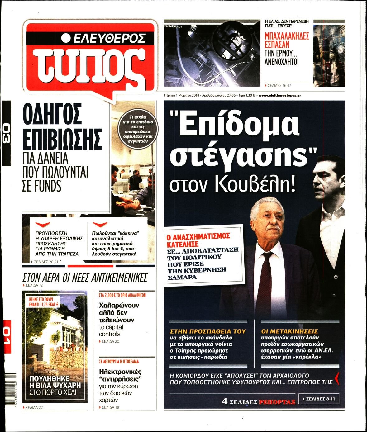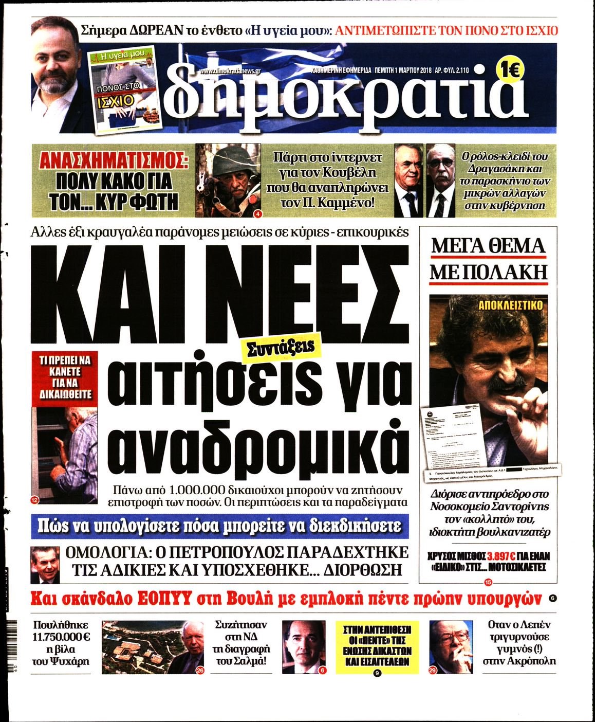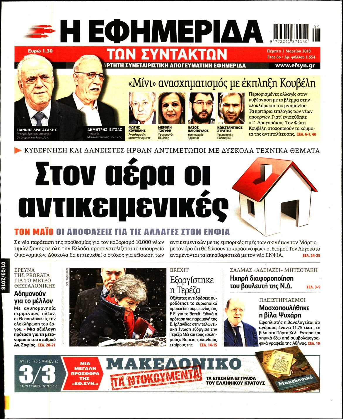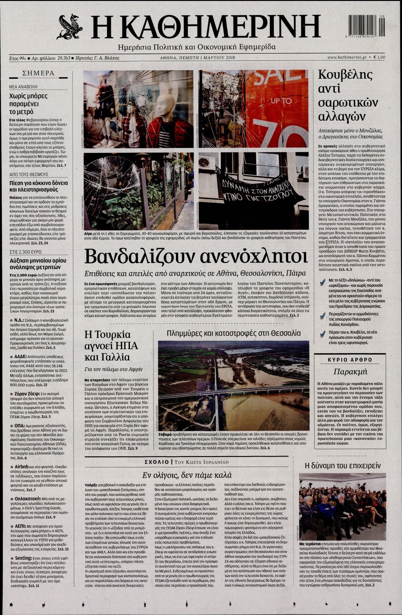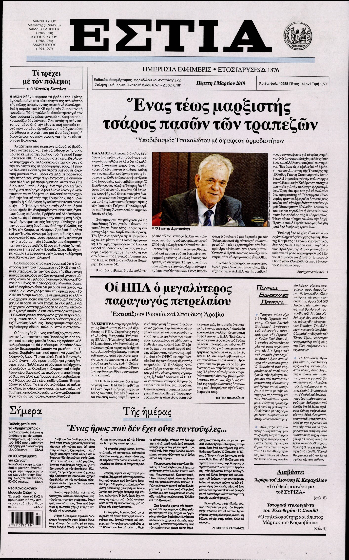 Οι πολιτικές εφημερίδες 1/3/2018 Enikos Newsroom 07:49, Πέμπτη 01 Μαρτίου 2018 Media Διαβάστε τα σημερινά πρωτοσέλιδα των πολιτικών εφημερίδων: ΠΟΛΙΤΙΚΕΣ ΕΦΗΜΕΡΙΔΕΣ ΠΡΩΤΟΣΕΛΙΔΑ Μοιράσου το: σχολίασε κι εσύ (0 σχόλια) Ακολουθήστε το enikos.gr στο Google News και μάθετε πρώτοι όλες τις ειδήσεις Δείτε όλες τις τελευταίες ειδήσεις από την Ελλάδα και τον Κόσμο στο enikos.gr Ειδήσεις Ροή Ειδήσεων 9 ώρες πριν Χριστούγεννα στα μπλόκα: Επιμένουν στις κινητοποιήσεις τους οι αγρότες – Ανοίγουν τα διόδια το Σαββατοκύριακο 1 ώρα πριν Σαρωτικοί οι έλεγχοι στους δρόμους ενόψει εορτών – Μπλόκα της τροχαίας σε κεντρικές αρτηρίες της Αττικής 8 ώρες πριν Πούτιν: Τα μηνύματα σε Ευρώπη και ΝΑΤΟ από το μαραθώνιο «σόου» του – Η απαίτηση για «σεβασμό» και η ειρήνη «με τους όρους» της Μόσχας 8 ώρες πριν ΗΠΑ: Η κυβέρνηση του Ντόναλντ Τραμπ άρχισε να δημοσιοποιεί τα αρχεία Έπσταϊν 8 ώρες πριν Άνω Λιόσια: Πυροβολισμοί σε επιχείρηση με χαλιά – Εντοπίστηκαν 10 κάλυκες 1 ώρα πριν Αυγά: Πόσα μπορείτε να τρώτε την ημέρα με ασφάλεια για μέγιστη πρόσληψη πρωτεΐνης 2 ώρες πριν Τα ζώδια σήμερα, Σάββατο 20 Δεκεμβρίου: Παρθένοι, το σύμπαν σας δίνει το κλειδί 8 ώρες πριν Ανακαλύφθηκαν αρχαία χρυσά νομίσματα 2.200 ετών που απεικονίζουν τον θεό Απόλλωνα – Η άγνωστη σύνδεση με τον Φίλιππο Β΄ της Μακεδονίας 1 ώρα πριν Οπτική ψευδαίσθηση: Μόνο αν είσαι ο Σέρλοκ Χολμς θα βρεις τον αριθμό «87» σε 7 δευτερόλεπτα 1 λεπτό πριν Φοινικούντα: Σήμερα απολογείται ο 30χρονος γιος γνωστού επιχειρηματία της Πλάκας 9 λεπτά πριν Οι αθλητικές μεταδόσεις 20/12/2025 19 λεπτά πριν Εορτολόγιο: Ποιοι γιορτάζουν σήμερα 20 Δεκεμβρίου 26 λεπτά πριν Συρία: Μπαράζ αμερικανικών επιδρομών εναντίον του ISIS – «Πλήττουμε δυνατά οχυρά του ΙΚ» λέει ο Ντόναλντ Τραμπ 34 λεπτά πριν Αναβολή συμφωνίας ΕΕ-Mercosur: Ο χρόνος «δεν είναι απεριόριστος» προειδοποιεί η Παραγουάη ENIKOS NETWORK Πρέπει να αποδέχεστε ή να απορρίπτετε όλα τα cookies; Ένας ειδικός εξηγεί Η αγαπημένη λιχουδιά των πόνι που μπορεί να ενισχύσει όραση, εγκέφαλο και ανοσοποιητικό Αναστολή μέτρων αναγκαστικής εκτέλεσης για κτηνοτρόφους που πλήττονται από την ευλογιά των αιγοπροβάτων Πλήρης επάρκεια προϊόντων στις λαϊκές της Αττικής, παρά τις αγροτικές κινητοποιήσεις – Τι απαντούν οι πωλητές Χαρτογραφώντας το «σημείο χωρίς επιστροφή»: Για πρώτη φορά αποκαλύπτεται με λεπτομέρεια το ακανθώδες όριο της ατμόσφαιρας τ... Η Google καταργεί τη λειτουργία «dark web report» – Πώς θα μπορούν οι χρήστες να διαγράφουν τα δεδομένα τους περισσότερα 05:48 , Σάββατο 20 Δεκεμβρίου 2025 Οι οικονομικές εφημερίδες 20/12/2025 Διαβάστε τα πρωτοσέλιδα από τις οικονομικές εφημερίδες, σήμερα 20/12/2025. 05:43 , Σάββατο 20 Δεκεμβρίου 2025 Οι αθλητικές εφημερίδες 20/12/2025 Διαβάστε τα πρωτοσέλιδα από τις αθλητικές εφημερίδες, σήμερα 20/12/2025. 05:38 , Σάββατο 20 Δεκεμβρίου 2025 Οι πολιτικές εφημερίδες 20/12/2025 Διαβάστε τα πρωτοσέλιδα από τις πολιτικές εφημερίδες, σήμερα 20/12/2025. 04:20 , Σάββατο 20 Δεκεμβρίου 2025 Αγγελική Νικολούλη: Τα συλλυπητήρια για την απώλεια της Ειρήνης Μαρινάκη Τα συλληπητήρια στον πρόεδρο του Mega, τον Βαγγέλη Μαρινάκη, για την απώλεια της μητέρας του Ε... ΤΕΛΕΥΤΑΙΕΣ ΕΙΔΗΣΕΙΣ 9 λεπτά πριν Οι αθλητικές μεταδόσεις 20/12/2025 19 λεπτά πριν Εορτολόγιο: Ποιοι γιορτάζουν σήμερα 20 Δεκεμβρίου 26 λεπτά πριν Συρία: Μπαράζ αμερικανικών επιδρομών εναντίον του ISIS... 34 λεπτά πριν Αναβολή συμφωνίας ΕΕ-Mercosur: Ο χρόνος «δεν είναι... 49 λεπτά πριν Κίριλ Ντμίτριεφ: Στις ΗΠΑ ο απεσταλμένος της Ρ