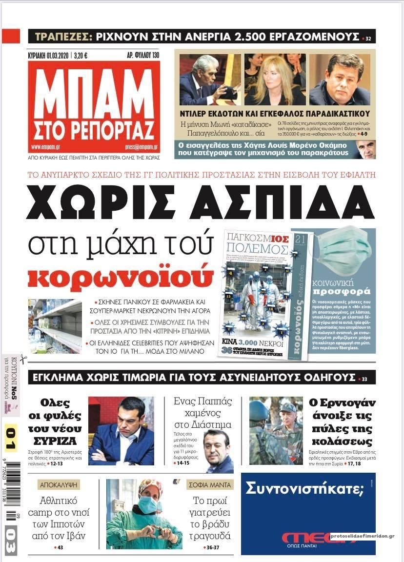 Οι πολιτικές εφημερίδες 1/3/2020 Κώστας Τεό 07:24, Κυριακή 01 Μαρτίου 2020 Media Διαβάστε τα πρωτοσέλιδα των πολιτικών εφημερίδων: ΠΟΛΙΤΙΚΕΣ ΕΦΗΜΕΡΙΔΕΣ ΠΡΩΤΟΣΕΛΙΔΑ Μοιράσου το: σχολίασε κι εσύ (0 σχόλια) Ακολουθήστε το enikos.gr στο Google News και μάθετε πρώτοι όλες τις ειδήσεις Δείτε όλες τις τελευταίες ειδήσεις από την Ελλάδα και τον Κόσμο στο enikos.gr Ειδήσεις Ροή Ειδήσεων 5 ώρες πριν Χριστούγεννα στα μπλόκα: Επιμένουν στις κινητοποιήσεις τους οι αγρότες – Ανοίγουν τα διόδια το Σαββατοκύριακο 5 ώρες πριν Ουκρανία: Η άνευ προηγουμένου επίθεση σε ρωσικό τάνκερ στη Μεσόγειο και το μήνυμα προς στον Πούτιν – Το «μακρύ χέρι» του Κιέβου 4 ώρες πριν Πούτιν: Τα μηνύματα σε Ευρώπη και ΝΑΤΟ από το μαραθώνιο «σόου» του – Η απαίτηση για «σεβασμό» και η ειρήνη «με τους όρους» της Μόσχας 5 ώρες πριν Τραμπ: Δεν αποκλείει την πιθανότητα ενός πολέμου στη Βενεζουέλα – «Ο Μαδούρο ξέρει καλύτερα από τον καθένα τι ακριβώς θέλω» 6 ώρες πριν Συνεχίζει να προκαλεί ο Μίτσκοσκι: «Για μένα το όνομα Μακεδονία είναι ιερό» 4 ώρες πριν Ανακαλύφθηκαν αρχαία χρυσά νομίσματα 2.200 ετών που απεικονίζουν τον θεό Απόλλωνα – Η άγνωστη σύνδεση με τον Φίλιππο Β΄ της Μακεδονίας 5 ώρες πριν Ύπνος: Μια κρυφή κατάσταση του εγκεφάλου πριν από τον ύπνο μπορεί να είναι το “κλειδί” για υψηλή ευφυΐα και δημιουργικότητα 6 ώρες πριν Αριθμολογία: Οι άνθρωποι που έχουν γεννηθεί αυτές τις 4 ημερομηνίες, συχνά παρεξηγούνται – «Η καλοσύνη τους κρύβει τεράστια δύναμη» 7 ώρες πριν Ξεχάστε το καθάρισμα το Σαββατοκύριακο: Ο «κανόνας των 20 λεπτών» που θα σας λύσει τα χέρια 16 λεπτά πριν Η Ελλάδα προσχωρεί στη Διεθνή Επιτροπή Αποζημιώσεων για την Ουκρανία 30 λεπτά πριν GNTM: Η Ξένια Τσίρκοβα αναδείχθηκε μεγάλη νικήτρια και πήρε τις 50.000 ευρώ – Ποιος βρέθηκε σε απόσταση αναπνοής; 45 λεπτά πριν Θεσσαλονίκη: Εξαφανίστηκε 13χρονος από χώρο φιλοξενίας ασυνόδευτων ανηλίκων στο Ωραιόκαστρο 56 λεπτά πριν Ντόναλντ Τραμπ: «Πολύ βαριά αντίποινα» στη Συρία – «Πλήττουμε πολύ δυνατά οχυρά του Ισλαμικού Κράτους» 1 ώρα πριν Εξάρχεια: Ένταση με μολότοφ, χημικά και κρότου λάμψης ENIKOS NETWORK Το ΕΚΑΒ τιμήθηκε από την Ακαδημία Αθηνών για τα 40 χρόνια προσφοράς του Έχετε πραγματικά μεγάλη καρδιά; 10 χαρακτηριστικά όσων έχουν καλοσύνη Αναστολή μέτρων αναγκαστικής εκτέλεσης για κτηνοτρόφους που πλήττονται από την ευλογιά των αιγοπροβάτων Πλήρης επάρκεια προϊόντων στις λαϊκές της Αττικής, παρά τις αγροτικές κινητοποιήσεις – Τι απαντούν οι πωλητές Χαρτογραφώντας το «σημείο χωρίς επιστροφή»: Για πρώτη φορά αποκαλύπτεται με λεπτομέρεια το ακανθώδες όριο της ατμόσφαιρας τ... Η Google καταργεί τη λειτουργία «dark web report» – Πώς θα μπορούν οι χρήστες να διαγράφουν τα δεδομένα τους περισσότερα 02:50 , Σάββατο 20 Δεκεμβρίου 2025 GNTM: Η Ξένια Τσίρκοβα αναδείχθηκε μεγάλη νικήτρια και πήρε τις 50.000 ευρώ – Ποιος βρέθηκε σε απόσταση αναπνοής; Με φαντασμαγορικό τρόπο ολοκληρώθηκε το βράδυ της Παρασκευής ο μεγάλος τελικός του GNTM, μέσα ... 22:42 , Παρασκευή 19 Δεκεμβρίου 2025 Γιώργος Γιαννόπουλος για “Το σόι σου”: “Είναι ευτυχία και ευλογία αυτή η σειρά” «Είναι ευτυχία και ευλογία η συγκυρία αυτής της σειράς», θα πει ο Γιώργος Γιαννόπουλος -ο αγαπ... 20:37 , Παρασκευή 19 Δεκεμβρίου 2025 Don’t Forget The Lyrics: Η Έλλη Κοκκίνου υποδέχεται 4 παίκτες που θα κάνουν τα πάντα για να μη χάσουν ούτε… μισή λέξη από τους στίχους Το «Don’t Forget The Lyrics» επιστρέφει απόψε, Παρασκευή 19 Δεκεμβρίου, στις 21:00 με νέο επει..