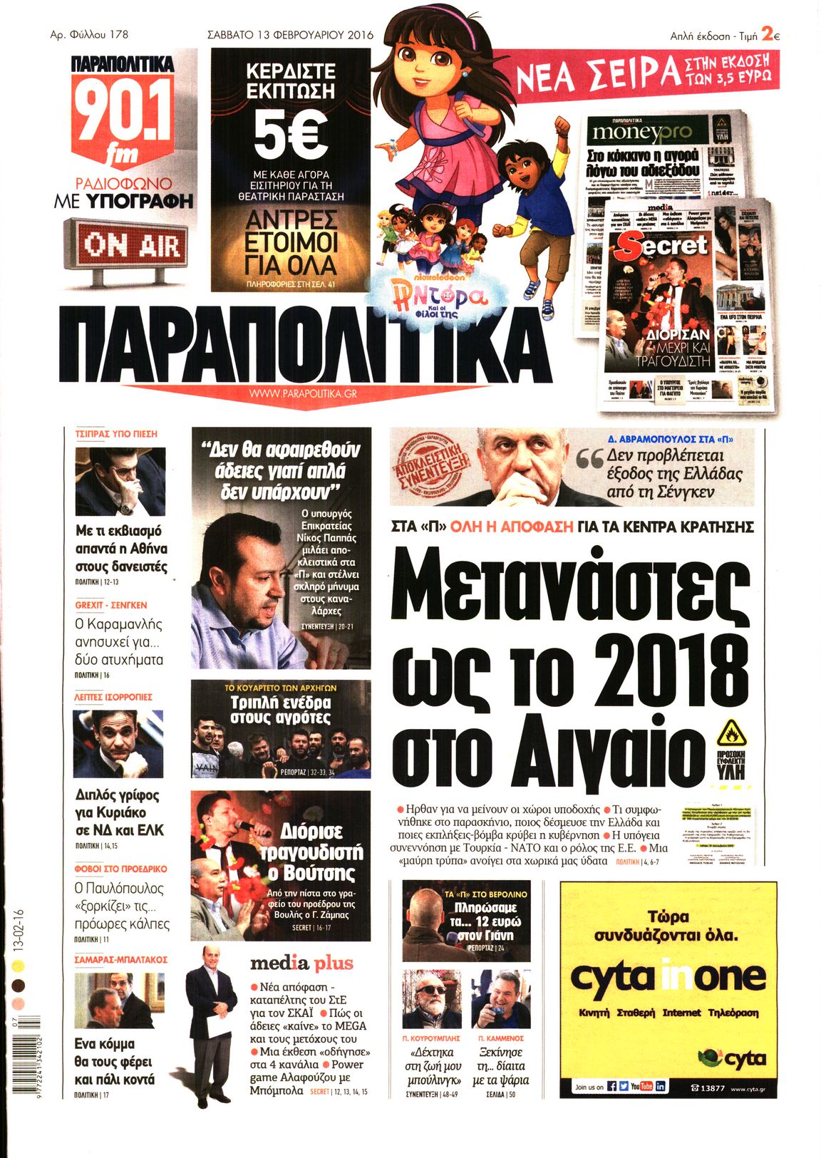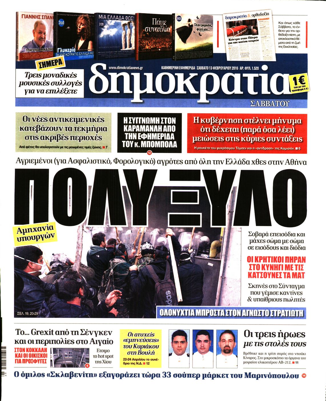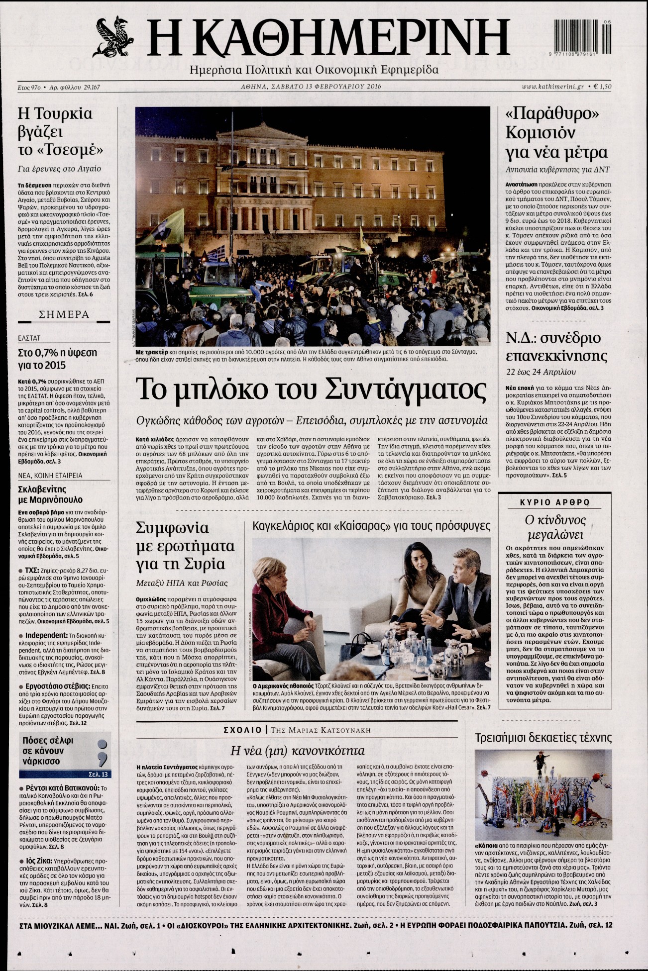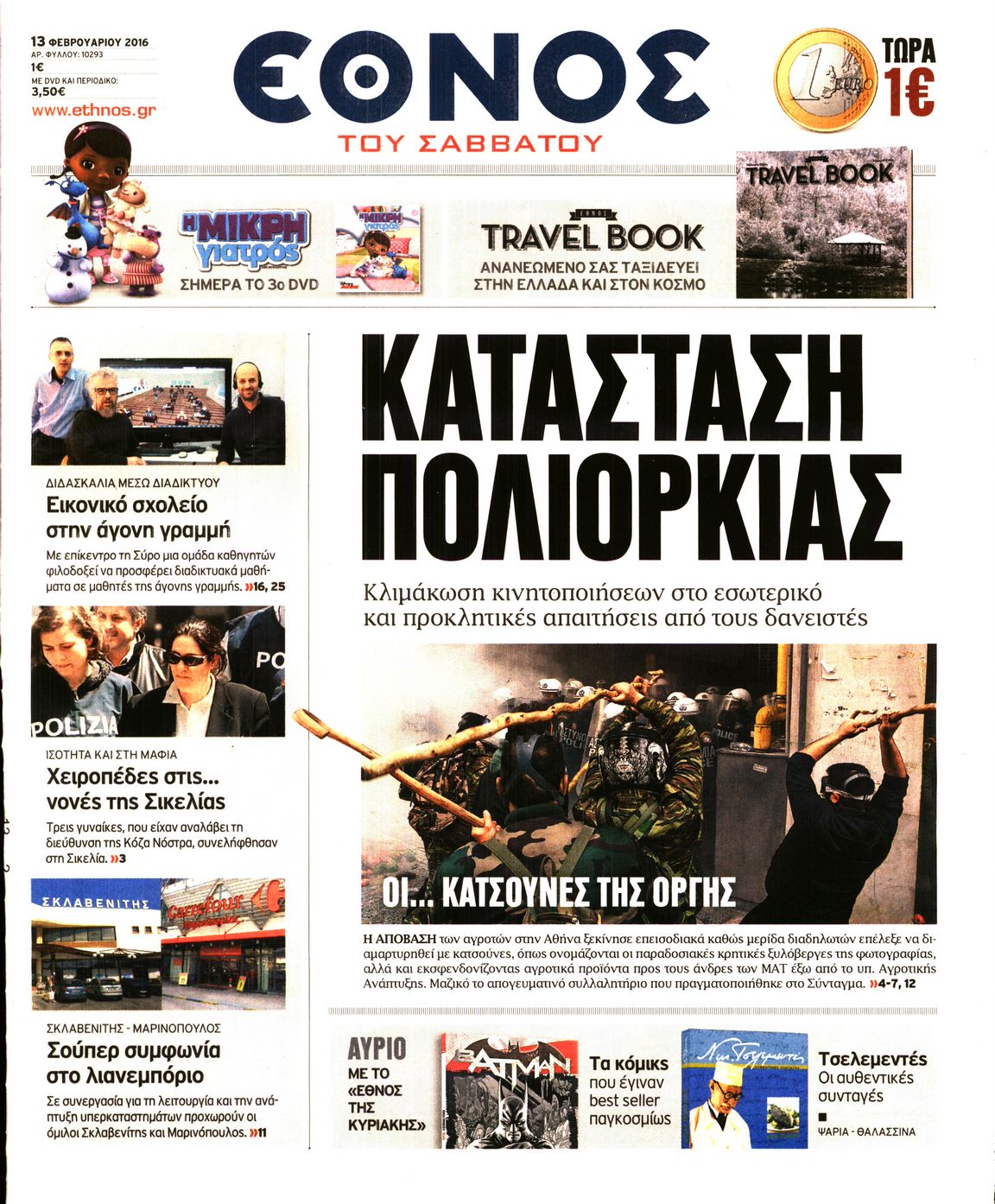 Οι πολιτικές εφημερίδες 13/2/2016 Enikos Newsroom 06:35, Σάββατο 13 Φεβρουαρίου 2016 Media Διαβάστε τα σημερινά πρωτοσέλιδα των πολιτικών εφημερίδων: ΠΟΛΙΤΙΚΕΣ ΕΦΗΜΕΡΙΔΕΣ ΠΡΩΤΟΣΕΛΙΔΑ Μοιράσου το: σχολίασε κι εσύ (0 σχόλια) Ακολουθήστε το enikos.gr στο Google News και μάθετε πρώτοι όλες τις ειδήσεις Δείτε όλες τις τελευταίες ειδήσεις από την Ελλάδα και τον Κόσμο στο enikos.gr Ειδήσεις Ροή Ειδήσεων 13 λεπτά πριν Μαρινάκης: Ο Πρωθυπουργός δεν μπορεί να λειτουργεί με όρους τελεσίγραφων – Περιμένουμε τα ονόματα των αγροτών που θα συμμετέχουν στις 2 συναντήσεις 2 ώρες πριν Κύπρος: Παραιτήθηκε ο Χαράλαμπος Χαραλάμπους από διευθυντής του γραφείου του Χριστοδουλίδη 2 ώρες πριν Σέρρες: Εισαγγελική έρευνα για τις αναφορές του «Χαμόγελου του Παιδιού» προ ετών για το περιβάλλον του 16χρονου 2 ώρες πριν Τραμπ για Γροιλανδία: «Η άμυνά τους είναι δύο έλκηθρα με σκύλους» – Επιμένει στην «απόκτηση» της χώρας από τις ΗΠΑ 2 ώρες πριν Ρούλα Πισπιρίγκου: Αναβολή για τον Σεπτέμβριο πήρε η δίκη της για τη δολοφονία της Τζωρτζίνας 4 ώρες πριν Πέταξε έξω από το σπίτι τον αρραβωνιαστικό της με την αγενέστατη κόρη του – «Σκέφτομαι να τον χωρίσω, θέλω την ηρεμία μου» 3 ώρες πριν Τα 3 ζώδια που ξαναβρίσκουν την ελπίδα που είχαν χάσει εδώ και καιρό – «Μία παλιά ιδέα αξίζει μία δεύτερη ευκαιρία» 2 ώρες πριν Η γλώσσα της «δυσαρέσκειας»: 8 φράσεις που εκπέμπουν μιζέρια και αρνητικότητα χωρίς να το συνειδητοποιείτε 1 ώρα πριν Γυναίκα έχασε 55 κιλά και βελτίωσε την ψυχολογία της τηρώντας έναν κανόνα – «Το κλειδί της επιτυχίας ήταν η ευκολία» 9 λεπτά πριν Ουκρανία: Χωρίς ηλεκτροδότηση έμειναν 35.000 νοικοκυριά στην Οδησσό 13 λεπτά πριν Μαρινάκης: Ο Πρωθυπουργός δεν μπορεί να λειτουργεί με όρους τελεσίγραφων – Περιμένουμε τα ονόματα των αγροτών που θα συμμετέχουν στις 2 συναντήσεις 14 λεπτά πριν Λαμία: Δέντρο ξεριζώθηκε και έπεσε στο κέντρο της πόλης 20 λεπτά πριν ΕΕ: Απειλεί το Ιράν με νέες κυρώσεις λόγω της βίαιης καταστολής των διαδηλώσεων – «Οι πολίτες αγωνίζονται για το μέλλον τους» 26 λεπτά πριν Γεωργιάδης: Σε μεγάλη πίεση τα νοσοκομεία, κάντε το εμβόλιο κατά της γρίπης ENIKOS NETWORK ΕΟΦ: Οδηγίες για ασφαλή χρήση φαρμάκου για την επιληψία σε νεογνά- Κίνδυνος σοβαρών παρενεργειών Νεογνικός γενωμικός έλεγχος για σπάνιες παθήσεις στο νοσοκομείο Παπαγεωργίου Συνολικά 120 νέες μόνιμες προσλήψεις σε φορέα του Δημοσίου: Ποιοι και μέχρι πότε μπορούν να υποβάλλουν αίτηση Ορόσημο το 2026 για την εμπέδωση της Ελλάδας ως ενεργειακή πύλη της ΝΑ Ευρώπης Ο Google Assistant θα παραμείνει λίγο περισσότερο για ορισμένους χρήστες Android Τεστ προσωπικότητας: Το βάζο που θα επιλέξετε αποκαλύπτει πώς λύνετε προβλήματα στη ζωή σας περισσότερα 10:15 , Δευτέρα 12 Ιανουαρίου 2026 Μαζωνάκης: Τι θα γίνει με τη νέα μουσική εκπομπή που συζητούσε Σε νέες βάσεις μπαίνει η συνεργασία του Γιώργου Μαζωνάκη με τον ΣΚΑΪ μετά το φινάλε του «The v... 09:45 , Δευτέρα 12 Ιανουαρίου 2026 Αλλαγή φρουράς στην πρωινή ζώνη του Σαββατοκύριακου του ANT1 Η απόφαση του ΑΝΤ1 να διακόψει το «Πρωινό Σαββατοκύριακο» με την Ελένη Τσολάκη και η επιστροφή... 08:07 , Δευτέρα 12 Ιανουαρίου 2026 Χρυσές Σφαίρες 2026: Θρίαμβος για το «One Battle After Another» με 4 βραβεία και δικαίωση για τον Σαλαμέ – Η λίστα των μεγάλων νικητών Με ανατροπές και σαρκασμό η 83η τελετή για τις Χρυσές Σφαίρες ολοκληρώθηκε το βράδυ της Κυριακ... 08:00 , Δευτέρα 12 Ιανουαρίου 2026 Αυτή την Κυριακή με τη Realnews: Στοιχειωμένα μυστικά – Ένα συναρπαστικ