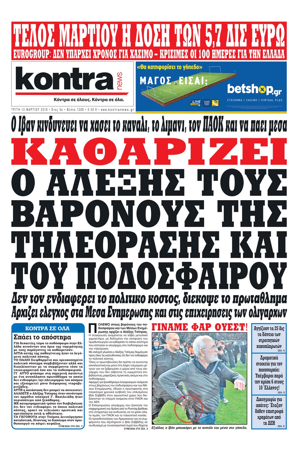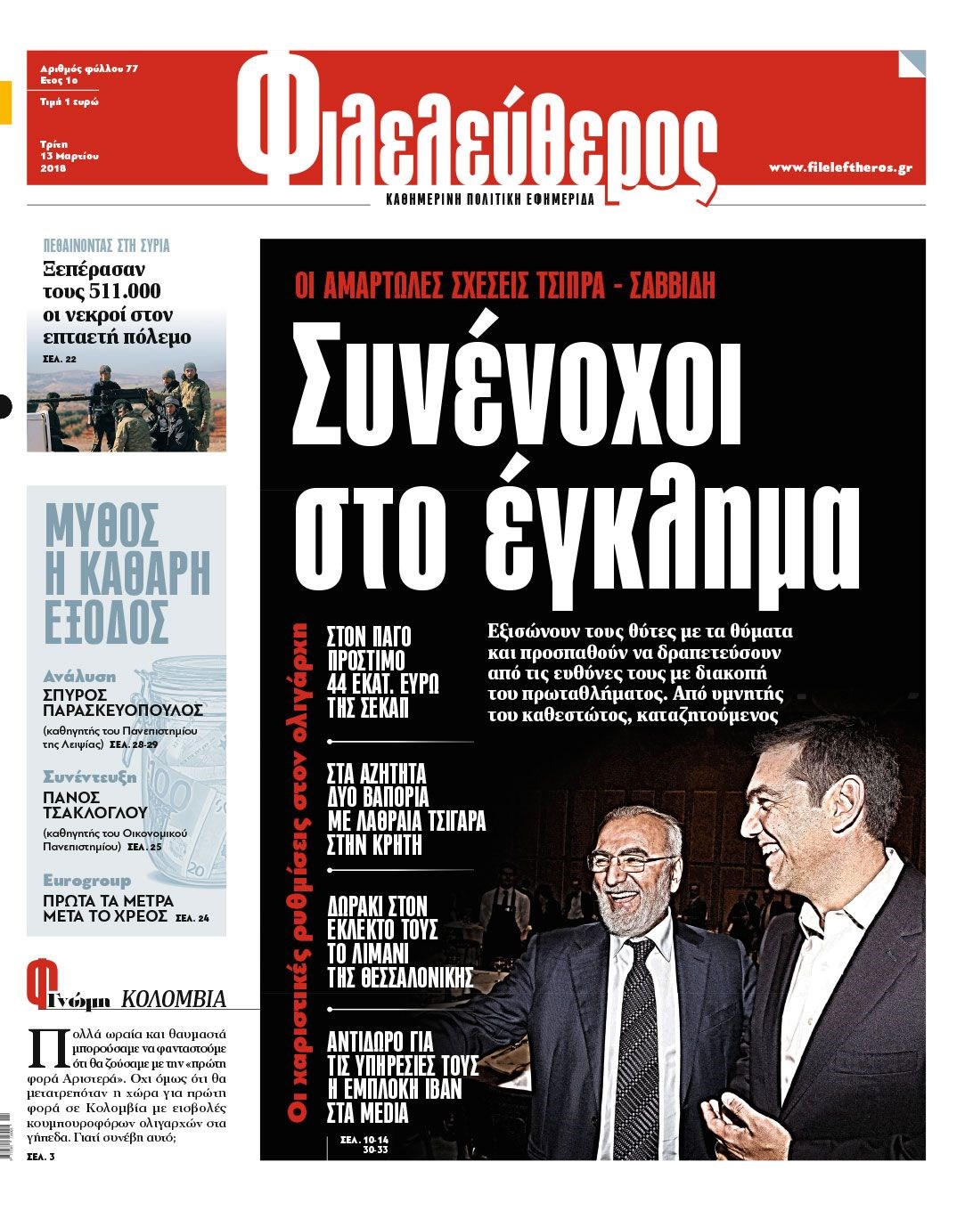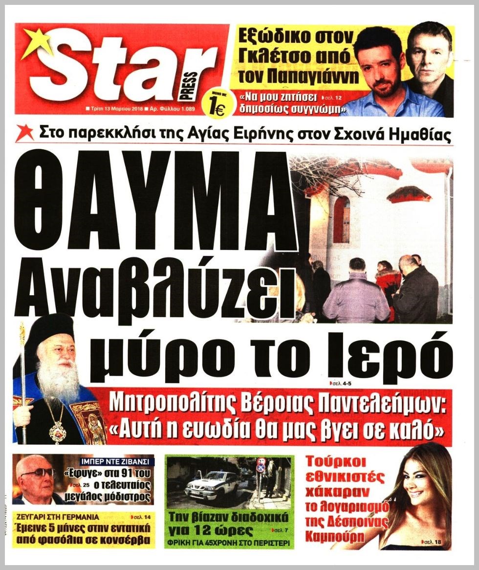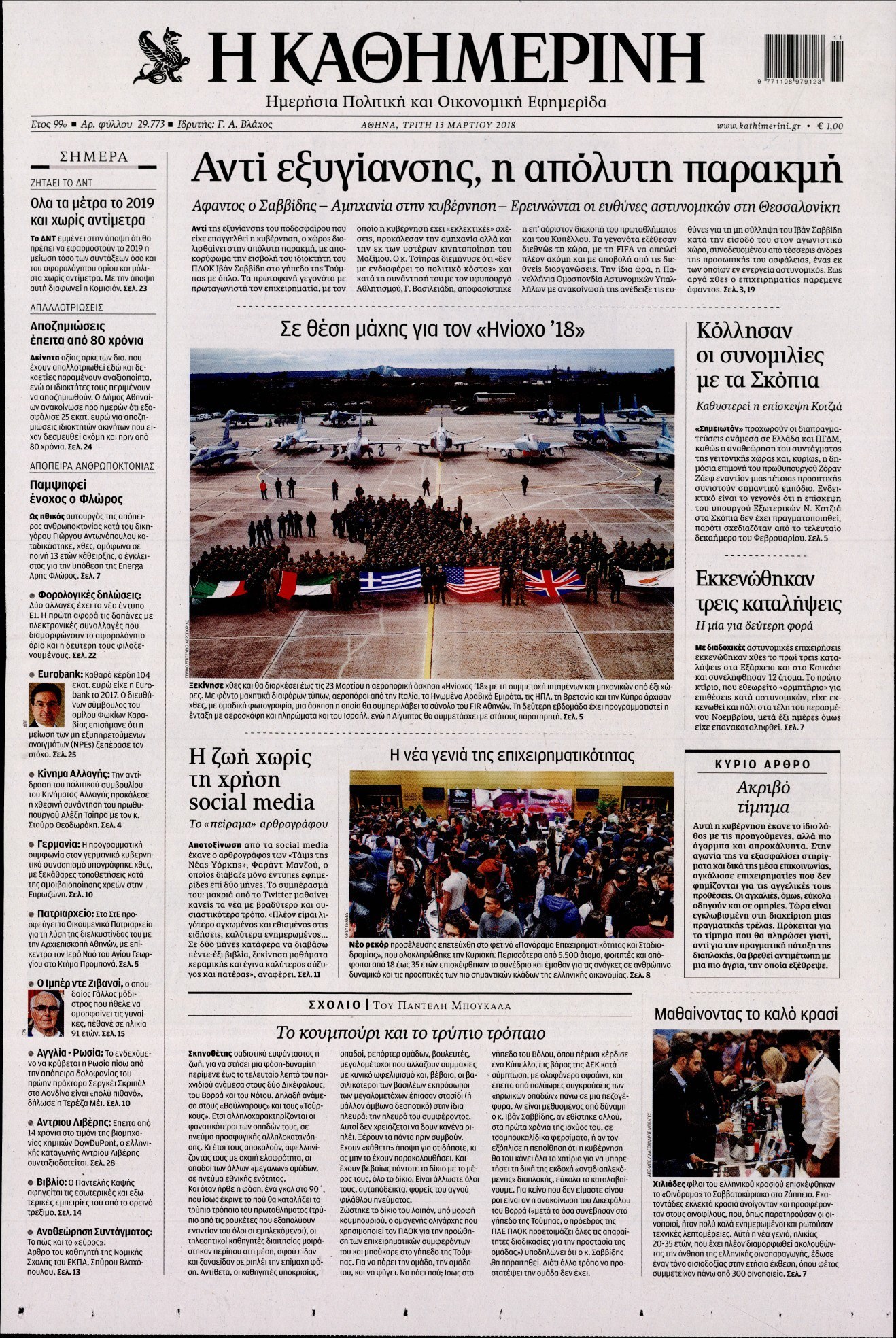 Οι πολιτικές εφημερίδες 13/3/2018 Κώστας Τεό 06:09, Τρίτη 13 Μαρτίου 2018 Media Διαβάστε τα σημερινά πρωτοσέλιδα των πολιτικών εφημερίδων: ΠΟΛΙΤΙΚΕΣ ΕΦΗΜΕΡΙΔΕΣ ΠΡΩΤΟΣΕΛΙΔΑ Μοιράσου το: σχολίασε κι εσύ (0 σχόλια) Ακολουθήστε το enikos.gr στο Google News και μάθετε πρώτοι όλες τις ειδήσεις Δείτε όλες τις τελευταίες ειδήσεις από την Ελλάδα και τον Κόσμο στο enikos.gr Ειδήσεις Ροή Ειδήσεων 4 ώρες πριν Υπόθεση Έπσταϊν: Το Υπουργείο Δικαιοσύνης δημοσιοποίησε μια σειρά από εξαιρετικά επεξεργασμένα αρχεία – «Λείπουν τα πιο σημαντικά έγγραφα», λένε οι Δημοκρατικοί 54 λεπτά πριν Γιορτές με μπλόκα για τους αγρότες: Ανοίγουν διόδια και μοιράζουν προϊόντα στους ταξιδιώτες 1 ώρα πριν Εξαφάνιση 33χρονου γιατρού στην Κρήτη: «Άναψα τα φώτα, τρόμαξε και άρχισε να τρέχει στα χωράφια» – Η τελευταία διαδρομή και η μαρτυρία «κλειδί» 3 ώρες πριν Ο «χάρτης» με τις αυξήσεις και τις φοροελαφρύνσεις του 2026 – Ποιοι και πόσα κερδίζουν 1 ώρα πριν Τα αρχεία του Έπσταϊν αποκαλύπτουν φωτογραφία του έκπτωτου πρίγκιπα Άντριου – Είναι ξαπλωμένος στην αγκαλιά 5 γυναικών 1 ώρα πριν Μία νέα «χρυσή» περίοδος αρχίζει για 3 ζώδια από σήμερα – «Μία αναπάντεχη ευκαιρία οδηγεί στην επιτυχία» 5 ώρες πριν Αυγά: Πόσα μπορείτε να τρώτε την ημέρα με ασφάλεια για μέγιστη πρόσληψη πρωτεΐνης 3 ώρες πριν Αρχαιολόγοι ανακάλυψαν σε χωράφι απεικόνιση 600 ετών ενός Αγίου – Τα στοιχεία που δείχνουν ότι μαρτύρησε 2 ώρες πριν Αγχώνεται για το χριστουγεννιάτικο δώρο που πήρε στην πλούσια σύντροφό του – «Φοβάμαι πως θα το βρει φθηνιάρικο, φοράει βραχιόλια Cartier» 3 λεπτά πριν Τραγωδία στην άσφαλτο στα Χανιά: Νεκρός 37χρονος οδηγός ΙΧ – Τον βρήκαν ώρες μετά το τροχαίο 11 λεπτά πριν Τα Labubu «μετακομίζουν» στο Χόλιγουντ: Η Sony Pictures ετοιμάζει live-action ταινία με τον σκηνοθέτη του «Wonka» 19 λεπτά πριν Νέες ταυτότητες: Μεγάλη αναμονή για ραντεβού στην Αττική – Τέλος τα ταξίδια εκτός Ελλάδος από τον Αύγουστο για όσους δεν έχουν αλλάξει 27 λεπτά πριν Οι 7 φράσεις που δεν λένε ποτέ οι συναισθηματικά έξυπνοι άνθρωποι κατά τη διάρκεια ενός καβγά 31 λεπτά πριν Τηλεθέαση (19/12): Ανατροπές και πρωτιές στην πρωινή ζώνη ENIKOS NETWORK Είστε μόνιμα απρόσεκτοι; 3 σημάδια που δείχνουν ότι μπορεί να είναι σύμπτωμα πάθησης Πόσα κιλά παίρνουμε πραγματικά τα Χριστούγεννα, σύμφωνα με την επιστήμη – Πώς να το αποτρέψουμε; e-ΕΦΚΑ και ΔΥΠΑ: Έρχονται νέες πληρωμές έως τις 24 Δεκεμβρίου – Ποιοι πάνε ταμείο Επίδομα παιδιού: Τι αλλάζει από το 2026 – Το όφελος από τις φορολογικές ελαφρύνσεις Χαρτογραφώντας το «σημείο χωρίς επιστροφή»: Για πρώτη φορά αποκαλύπτεται με λεπτομέρεια το ακανθώδες όριο της ατμόσφαιρας τ... Η Google καταργεί τη λειτουργία «dark web report» – Πώς θα μπορούν οι χρήστες να διαγράφουν τα δεδομένα τους περισσότερα 09:30 , Σάββατο 20 Δεκεμβρίου 2025 «Porto Leone: Στη γειτονιά με τα κόκκινα φανάρια» – Ο Χρόνης αποκαλύπτει στην Αλεξάνδρα το μυστικό για το παιδί της Λένας Η μεγάλη δραματική σειρά του Apha «Porto Leone: Στη γειτονιά με τα κόκκινα φανάρια» μας μεταφέ... 08:14 , Σάββατο 20 Δεκεμβρίου 2025 Τρομεροί γονείς: Η Μαρία Καβογιάννη εισβάλλει στο σπίτι της οικογένειας Στεφανίδη Όσα θα δούμε στο νέο διπλό επεισόδιο της σειράς «Τρομεροί γονείς», σήμερα Σάββατο 20 Δεκεμβρίο... 05:48 , Σάββατο 20 Δεκεμβρίου 2025 Οι οικονομικές εφημερίδες 20/12/2025 Διαβάστε τα πρωτοσέλιδα από τις οικονομικές εφημερίδες, σήμερα 20/12/2025. 05:43 , Σάββατο 20 Δεκεμβρίου 2025 Οι αθλητικές εφημερίδες 20/12/2025 Διαβάστε τα πρωτοσέλιδα από 