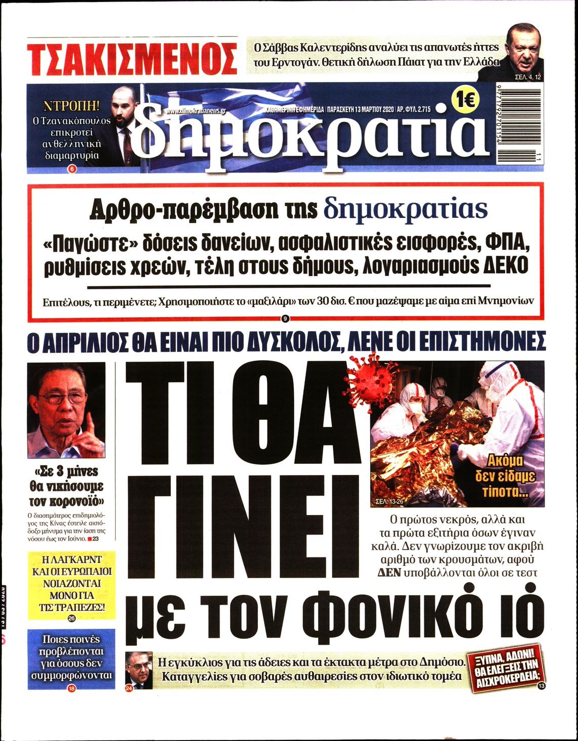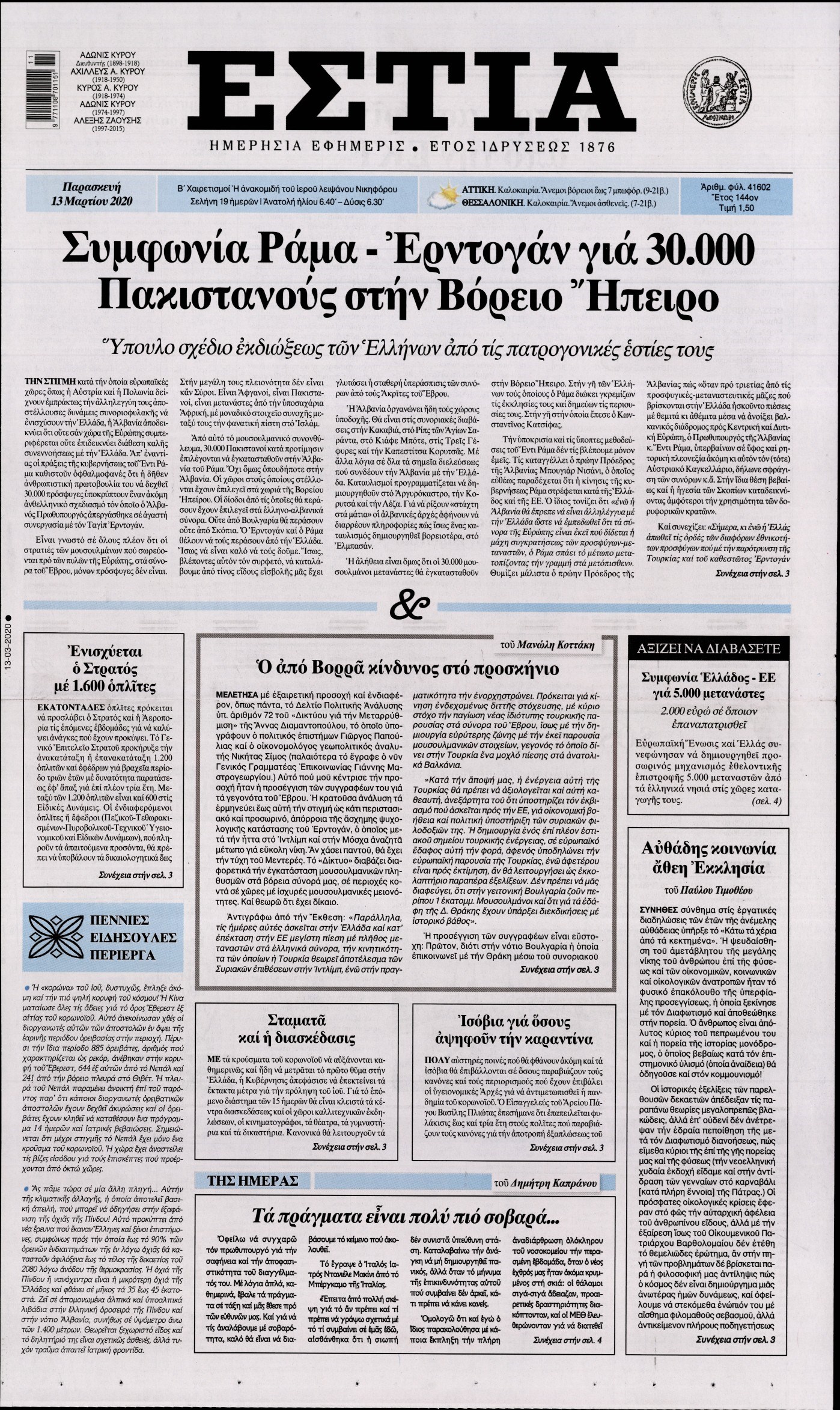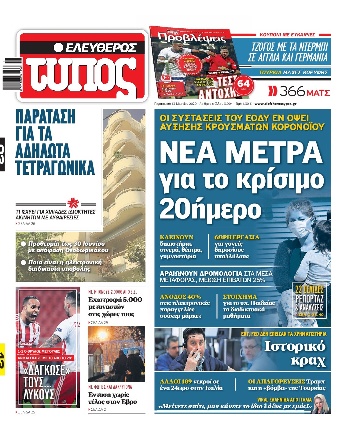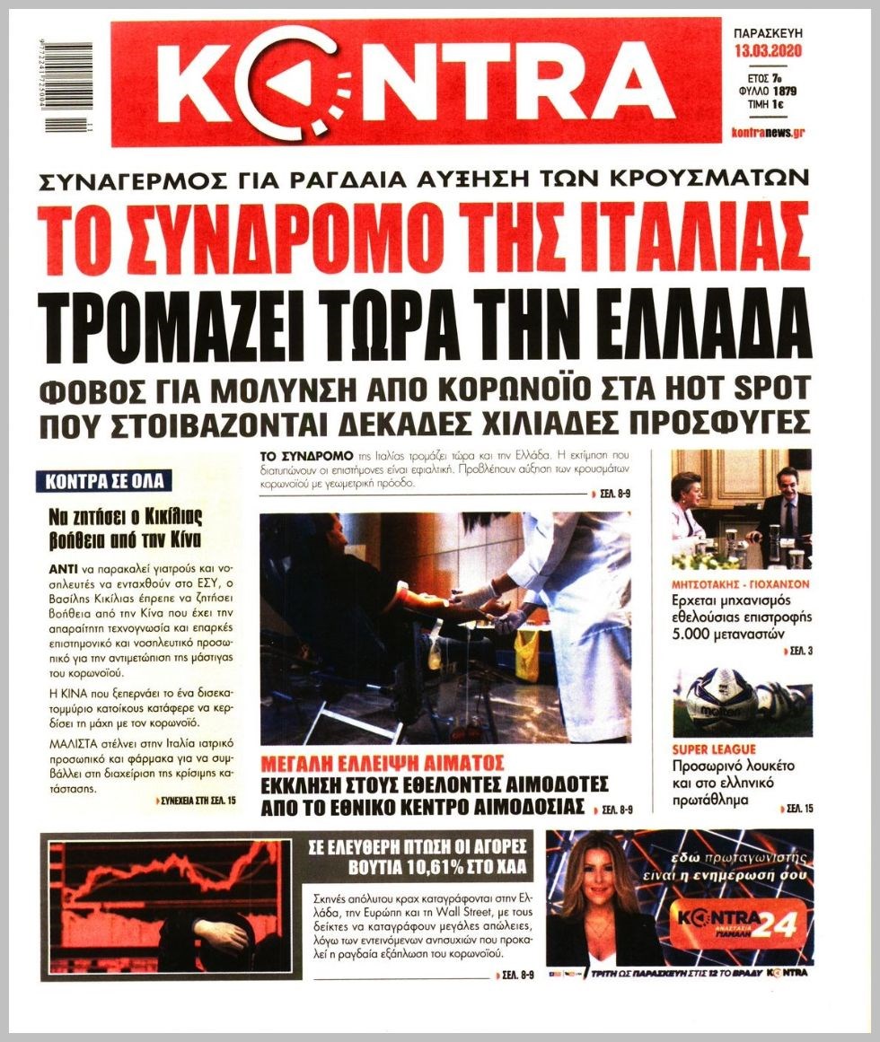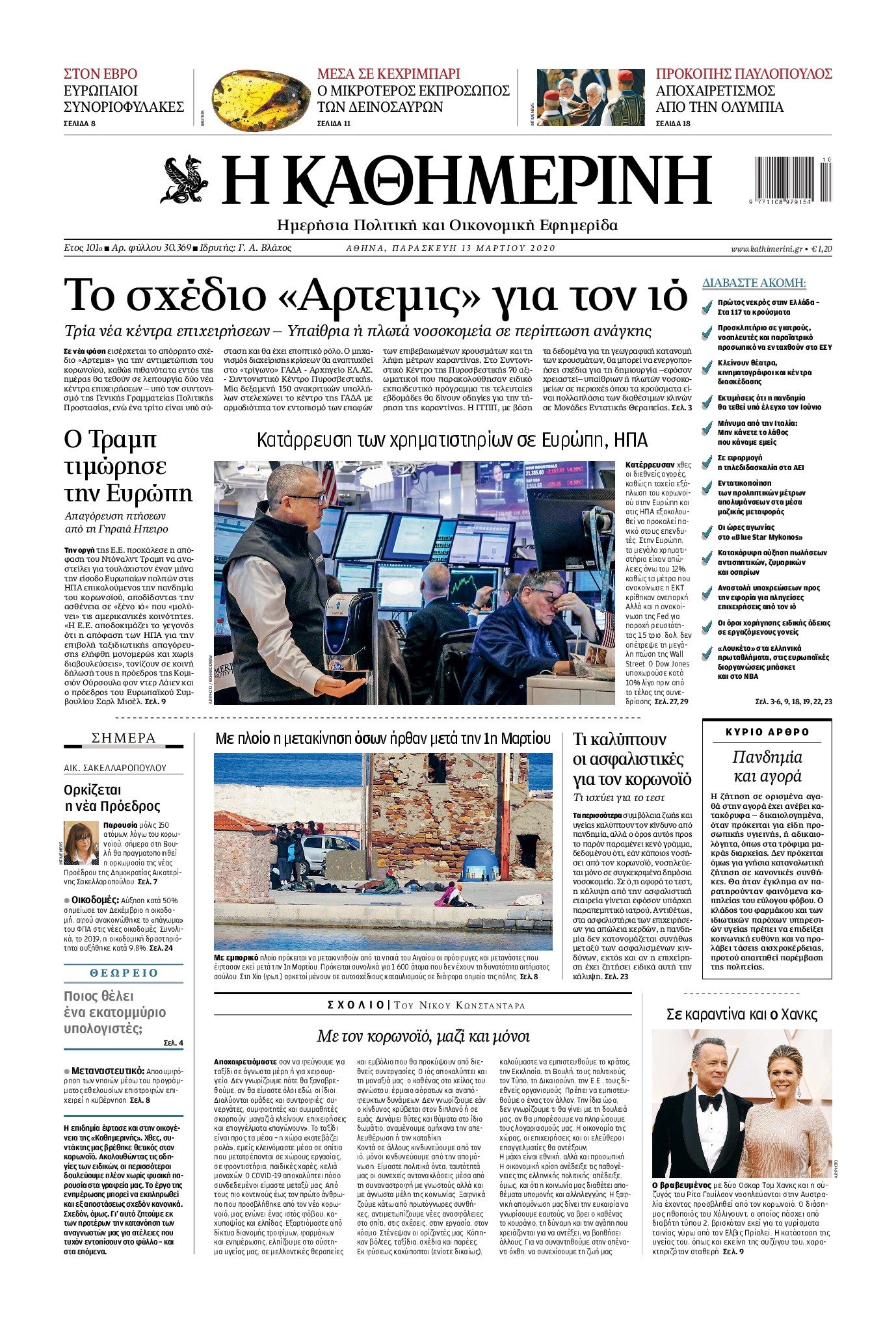 Οι πολιτικές εφημερίδες 13/3/2020 Διονύσης Νίκκας 06:15, Παρασκευή 13 Μαρτίου 2020 Media Διαβάστε τα πρωτοσέλιδα των πολιτικών εφημερίδων… ΠΟΛΙΤΙΚΕΣ ΕΦΗΜΕΡΙΔΕΣ ΠΡΩΤΟΣΕΛΙΔΑ Μοιράσου το: σχολίασε κι εσύ (0 σχόλια) Ακολουθήστε το enikos.gr στο Google News και μάθετε πρώτοι όλες τις ειδήσεις Δείτε όλες τις τελευταίες ειδήσεις από την Ελλάδα και τον Κόσμο στο enikos.gr Ειδήσεις Ροή Ειδήσεων 18 λεπτά πριν Ζελένσκι: Μόνο οι ΗΠΑ και ο Τραμπ μπορούν να πιέσουν τη Ρωσία να βάλει τέλος στον πόλεμο 37 λεπτά πριν Φοινικούντα: Προφυλακιστέος ο 30χρονος για συνέργεια στη διπλή δολοφονία – Και άλλα πρόσωπα στο «μικροσκόπιο» 2 ώρες πριν Κυριάκος Μητσοτάκης: Στην Ιερουσαλήμ την Τρίτη ο Πρωθυπουργός για την τριμερή Ελλάδας, Κύπρου, Ισραήλ – Θα συναντηθεί και με τον Αμπάς 5 ώρες πριν Πώς δρούσε το κύκλωμα που διακινούσε ναρκωτικά σε σχολεία – Υπέβαλαν σε βασανιστήρια όσους δεν τηρούσαν τους «κανόνες πειθαρχίας» 1 ώρα πριν Πάπας Λέων: Όταν έχει αϋπνίες επενδύει παραγωγικά τον χρόνο του – Ποιο παιχνίδι παίζει στο κινητό 28 λεπτά πριν Αριθμολογία: Ο αριθμός του φύλακα αγγέλου σας, με βάση τον μήνα γέννησής σας – «Έτσι σας στέλνει σημάδια το σύμπαν» 1 ώρα πριν Πώς να απαλλαγείτε από τη μυρωδιά του τηγανητού φαγητού: Το μυστικό βρίσκεται στην κουζίνα σας 2 ώρες πριν Μήπως οι γιορτές σας δεν είναι τόσο τέλειες; 7 χριστουγεννιάτικες συνήθειες που μαρτυρούν ότι μια οικογένεια είναι δυσλειτουργική 12 ώρες πριν Enerwave: Το νέο «ρεύμα» στη λιανική ενέργειας που αλλάζει την εμπειρία του καταναλωτή 11 λεπτά πριν Εριέττα Μανούρη: «Έχω νιώσει ανταγωνισμό από άντρες, μύθος αυτό που λένε για τις γυναίκες» 18 λεπτά πριν Ζελένσκι: Μόνο οι ΗΠΑ και ο Τραμπ μπορούν να πιέσουν τη Ρωσία να βάλει τέλος στον πόλεμο 28 λεπτά πριν Αριθμολογία: Ο αριθμός του φύλακα αγγέλου σας, με βάση τον μήνα γέννησής σας – «Έτσι σας στέλνει σημάδια το σύμπαν» 37 λεπτά πριν Φοινικούντα: Προφυλακιστέος ο 30χρονος για συνέργεια στη διπλή δολοφονία – Και άλλα πρόσωπα στο «μικροσκόπιο» 48 λεπτά πριν Super League: Ο Σιαμπάνης «κατέβασε ρολά» και ο Βόλος νίκησε 1-0 τον Παναιτωλικό ENIKOS NETWORK Οι γυναίκες αποκαλύπτουν το πιο ελκυστικό πράγμα που μπορεί να κάνει ένας άνδρας Ομορφιά και αντιγήρανση: Ειδικοί μιλούν για συσκευές περιποίησης του δέρματος Εφορία: 7 αλλαγές σε δηλώσεις και ελέγχους ακινήτων – Όλα όσα πρέπει να γνωρίζετε Πορτοκαλί τιμολόγια ρεύματος: Τα σημεία που πρέπει να προσέξουν οι καταναλωτές – Πότε θα εφαρμοστούν Χαρτογραφώντας το «σημείο χωρίς επιστροφή»: Για πρώτη φορά αποκαλύπτεται με λεπτομέρεια το ακανθώδες όριο της ατμόσφαιρας τ... Η Google καταργεί τη λειτουργία «dark web report» – Πώς θα μπορούν οι χρήστες να διαγράφουν τα δεδομένα τους περισσότερα 20:30 , Σάββατο 20 Δεκεμβρίου 2025 Αυτή την Κυριακή με τη Realnews: Instyle, μαζί Drive και Realnews Geopolitics Αυτή την Κυριακή με τη Realnews: Instyle, μαζί Drive και Realnews Geopolitics Instyle Η Άννα Ρ... 20:28 , Σάββατο 20 Δεκεμβρίου 2025 Ο ΑΝΤ1 γεμίζει τις γιορτές με μουσική – Ποιους καλλιτέχνες θα απολαύσουμε Φέτος στον ΑΝΤ1 γιορτάζουμε τις νύχτες μας παρέα με αγαπημένους καλλιτέχνες και μεγάλες μουσι... 18:19 , Σάββατο 20 Δεκεμβρίου 2025 HOTΕΛ ΕΛVIRA: Η Ελβίρα μαθαίνει πως ο Χάρι μένει κρυφά στο ξενοδοχείο του Παντελή Συνεχίζονται οι εκλογές για πρόεδρο, στο νέο επεισόδιο της κωμικής σειράς του MEGA, HOTΕΛ ΕΛVI... 14:04 , Σάββατο 20 Δεκεμβρίου 2025 Η Realnews αυτής της Κυριακής (21/12/2025) Με τίτλο: «Ασπίδα προστασίας για την Ελλάδα» κυκλοφορεί, αυτήν την Κυριακή, η Realnew