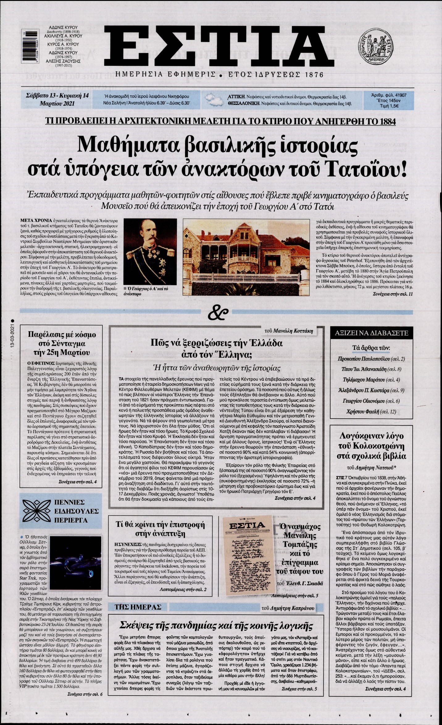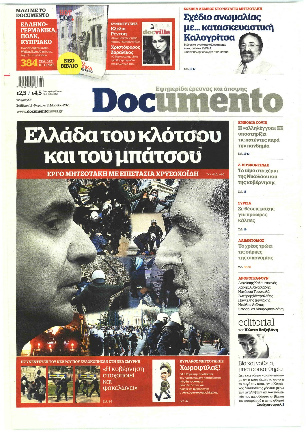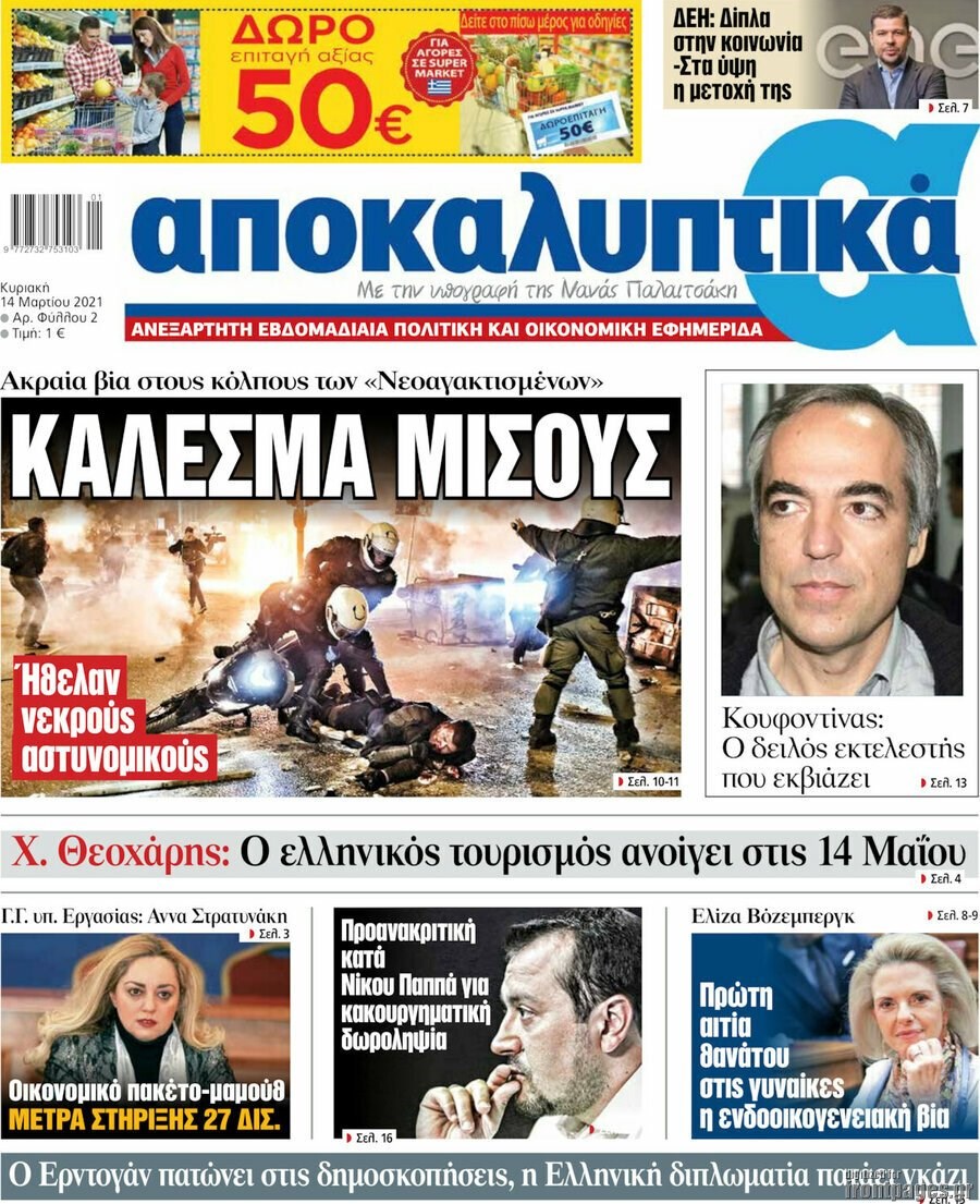 Οι πολιτικές εφημερίδες 13/3/2021 Διονύσης Νίκκας 07:10, Σάββατο 13 Μαρτίου 2021 Media Διαβάστε τα πρωτοσέλιδα των πολιτικών εφημερίδων… ΕΦΗΜΕΡΙΔΕΣ ΝΕΑ ΠΡΩΤΟΣΕΛΙΔΑ Μοιράσου το: σχολίασε κι εσύ (0 σχόλια) Ακολουθήστε το enikos.gr στο Google News και μάθετε πρώτοι όλες τις ειδήσεις Δείτε όλες τις τελευταίες ειδήσεις από την Ελλάδα και τον Κόσμο στο enikos.gr Ειδήσεις Ροή Ειδήσεων 1 ώρα πριν Μπλόκα: Οι αγρότες σηκώνουν τις μπάρες σε διόδια για τους εκδρομείς των Χριστουγέννων και μοιράζουν προϊόντα – Βίντεο 2 ώρες πριν Τσιάρας προς αγρότες: Τα μπλόκα και τα πείσματα δεν ωφελούν – Οι λύσεις περνούν μέσα από τον διάλογο 3 ώρες πριν Αρχεία Έπσταϊν: Οι συγκλονιστικές φωτογραφίες – Ο Μάικλ Τζάκσον, ο Μικ Τζάγκερ και ο Κέβιν Σπέισι ανάμεσα στους διάσημους που απεικονίζονται 29 λεπτά πριν Μαθητές διακινούσαν κοκαΐνη και χασίς σε σχολείο της Αττικής – 12 συλλήψεις 3 ώρες πριν Ινδία: Επτά ελέφαντες σκοτώθηκαν κατά τη σύγκρουση επιβατικού τρένου με κοπάδι 5 ώρες πριν Μία νέα «χρυσή» περίοδος αρχίζει για 3 ζώδια από σήμερα – «Μία αναπάντεχη ευκαιρία οδηγεί στην επιτυχία» 6 ώρες πριν Αγχώνεται για το χριστουγεννιάτικο δώρο που πήρε στην πλούσια σύντροφό του – «Φοβάμαι πως θα το βρει φθηνιάρικο, φοράει βραχιόλια Cartier» 3 ώρες πριν Διαιτολόγος αποκαλύπτει 9 πρωινές συνήθειες που «λιώνουν» το κοιλιακό λίπος – «Υποστηρίζουν την υγιεινή απώλεια βάρους» 4 ώρες πριν Οι 7 φράσεις που δεν λένε ποτέ οι συναισθηματικά έξυπνοι άνθρωποι κατά τη διάρκεια ενός καβγά 9 λεπτά πριν Θεσσαλονίκη: Ανήλικος που είχε εξαφανιστεί βρέθηκε στο σπίτι Τούρκων μετά από αστυνομική επιχείρηση 18 λεπτά πριν Ιταλία: 384 συλλήψεις και κατάσχεση 1,4 τόνων ναρκωτικών σε μεγάλη αστυνομική επιχείρηση 26 λεπτά πριν Γερμανού για Μαζωνάκη: «Η σχέση μας μετράει 30 χρόνια – Σαφώς και έχω άποψη» 29 λεπτά πριν Μαθητές διακινούσαν κοκαΐνη και χασίς σε σχολείο της Αττικής – 12 συλλήψεις 35 λεπτά πριν Βέλγιο: Άγνωστοι έριξαν κόκκινη μπογιά στο προξενείο της Πολωνίας στις Βρυξέλλες ENIKOS NETWORK Η αποχή από την αναπαραγωγή παρατείνει τη ζωή στα ζώα, σύμφωνα με μελέτη – Τι ισχύει για τους ανθρώπους; Σημαντικές επαφές στις ΗΠΑ είχε ο υπουργός Υγείας Άδωνις Γεωργιάδης Τσιάρας προς αγρότες: Έχει ικανοποιηθεί το 74% των αιτημάτων – Τα μπλόκα και τα πείσματα δεν ωφελούν MyHealth App: Τα στοιχεία για τον Προσωπικό Βοηθό Υγείας Πολίτη – Τι ερωτήματα έγιναν μέσα σε 7 ημέρες Χαρτογραφώντας το «σημείο χωρίς επιστροφή»: Για πρώτη φορά αποκαλύπτεται με λεπτομέρεια το ακανθώδες όριο της ατμόσφαιρας τ... Η Google καταργεί τη λειτουργία «dark web report» – Πώς θα μπορούν οι χρήστες να διαγράφουν τα δεδομένα τους περισσότερα 14:04 , Σάββατο 20 Δεκεμβρίου 2025 Η Realnews αυτής της Κυριακής (21/12/2025) Με τίτλο: «Ασπίδα προστασίας για την Ελλάδα» κυκλοφορεί, αυτήν την Κυριακή, η Realnews. Σημαντ... 12:53 , Σάββατο 20 Δεκεμβρίου 2025 Να μ’ αγαπάς: Το παρελθόν έρχεται στο φως – Καταιγιστικές εξελίξεις στα τελευταία επεισόδια του 2025 Ο Άγγελος αποκαλύπτεται, η Φωτεινή ανησυχεί για τον Λευτέρη και η Ζωή έρχεται αντιμέτωπη με το... 11:41 , Σάββατο 20 Δεκεμβρίου 2025 «Η αγάπη δεν χάνεται ποτέ»: Η μικρού μήκους ταινία κινουμένων σχεδίων που θέτει ερωτήματα για τη ζωή και τον θάνατο Ο θάνατος είναι ένα από τα πιο σκληρά θέματα που καλείται να διαχειριστεί κάποιος στη διάρκεια... 09:30 , Σάββατο 20 Δεκεμβρίου 2025 «Porto Leone: Στη γειτονιά με τα κόκκινα φανάρια» – Ο Χρόνης αποκαλύπτει στην Αλεξάνδρα το μυστικό για το παι