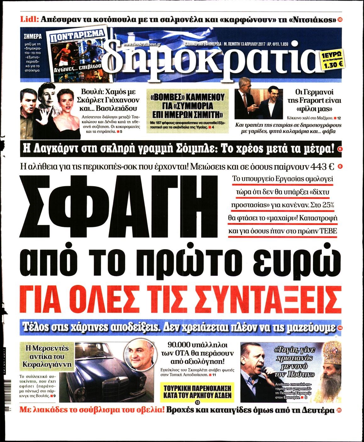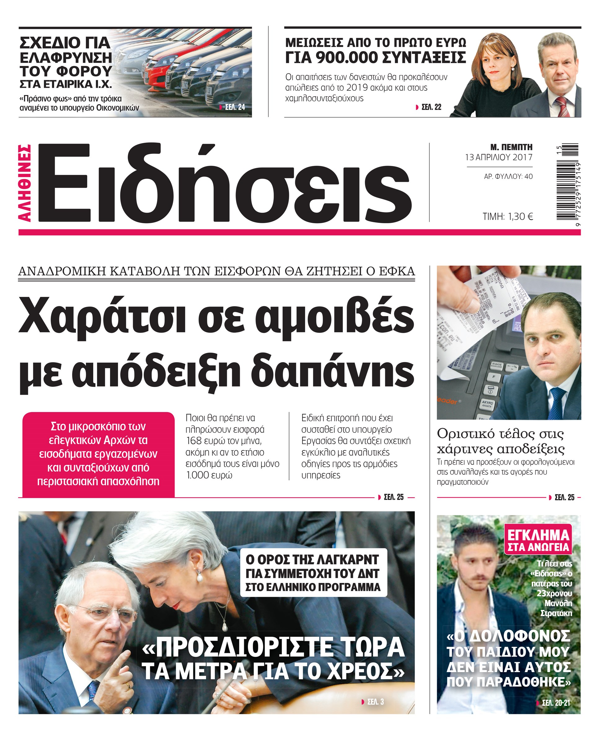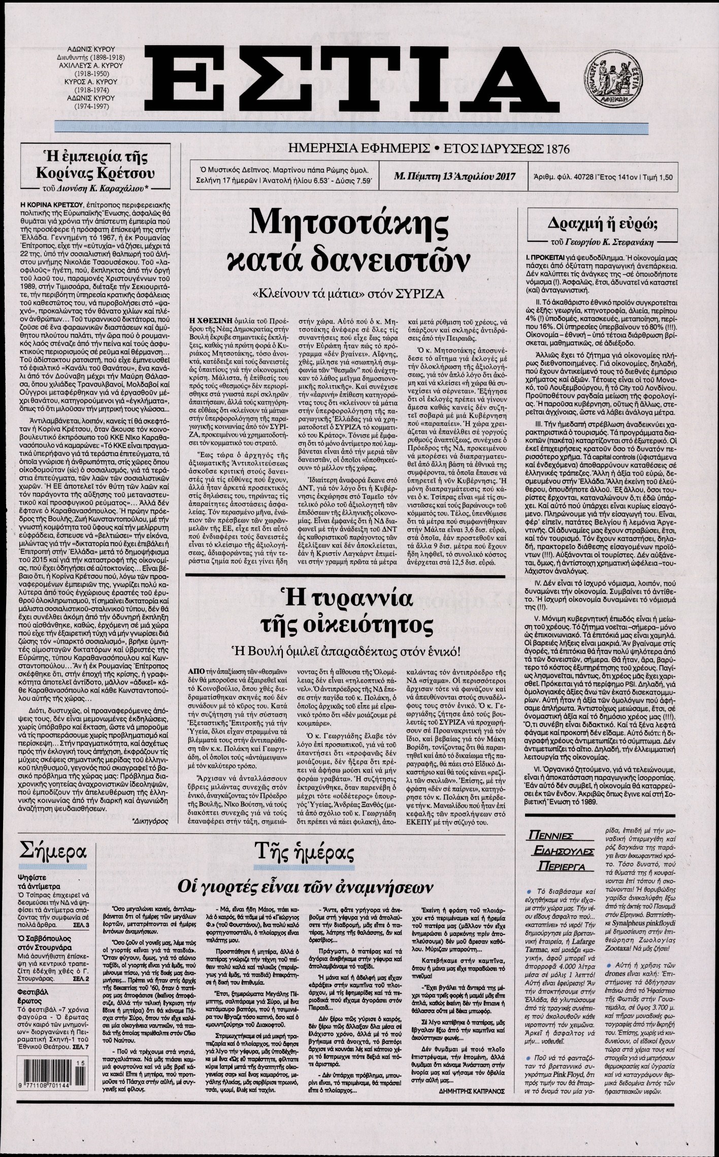 Διαβάστε τα σημερινά πρωτοσέλιδα των πολιτικών εφημερίδων: