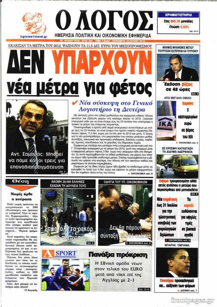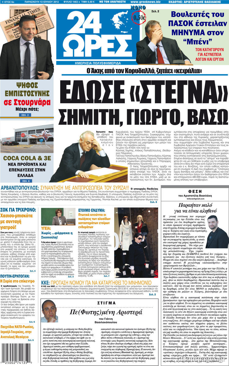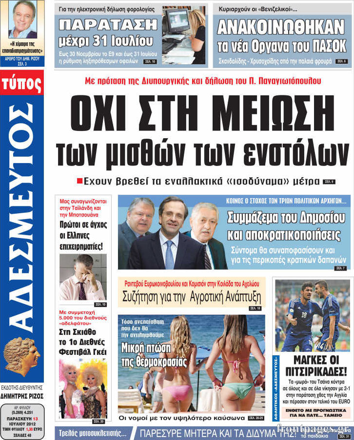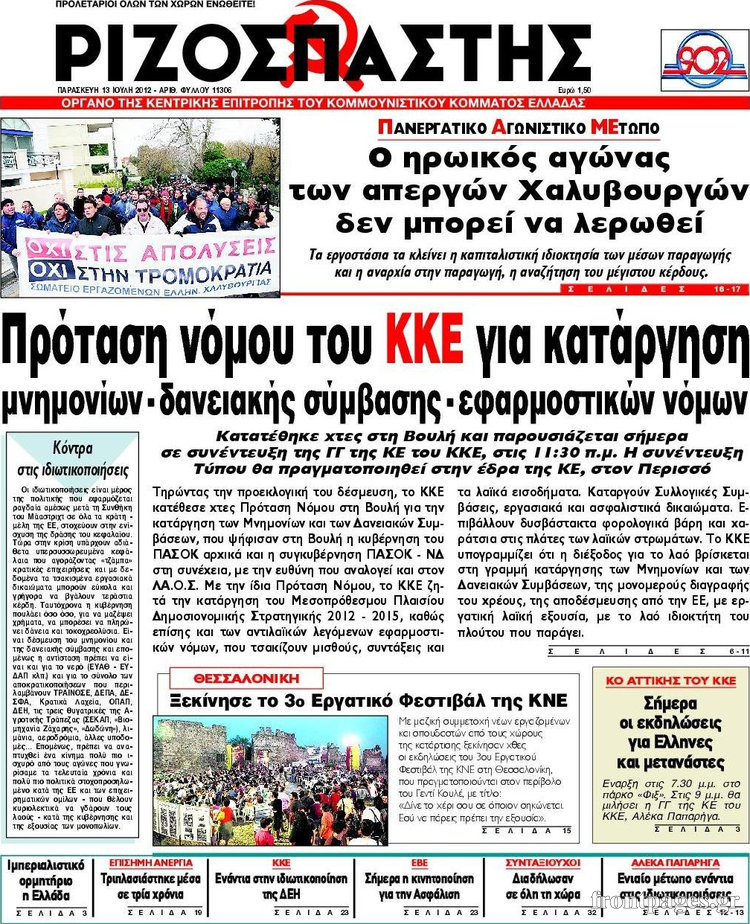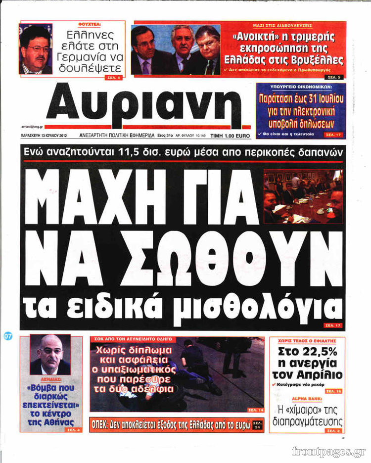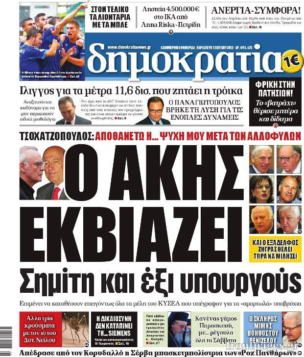 Διαβάστε τα σημερινά πρωτοσέλιδα των πολιτικών εφημερίδων.