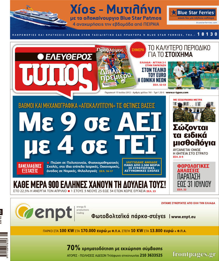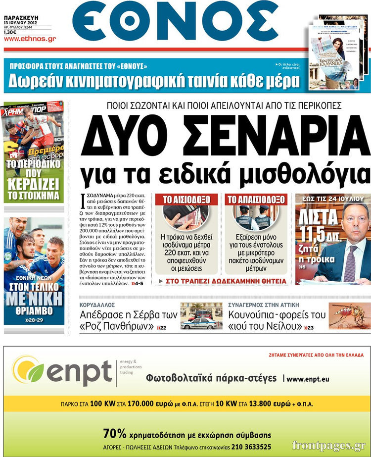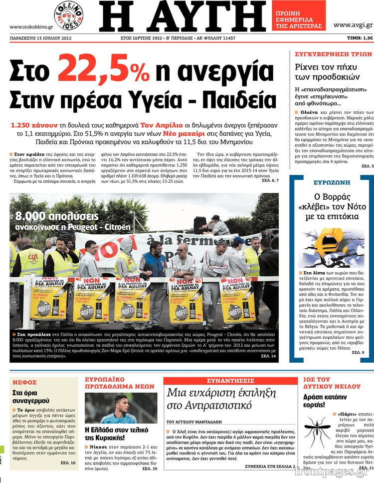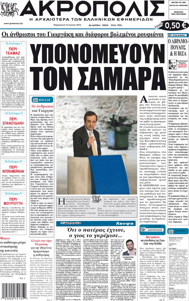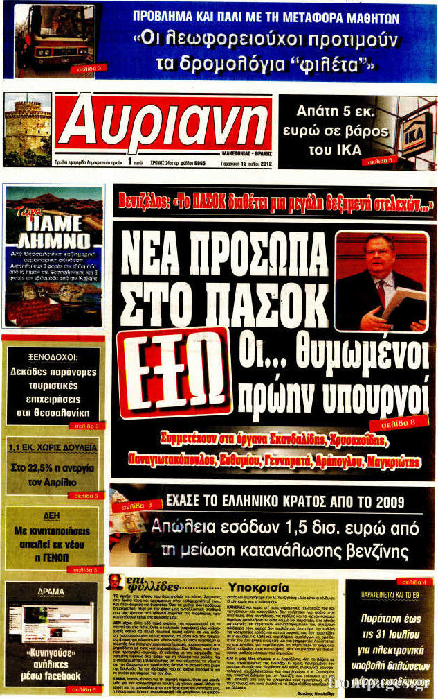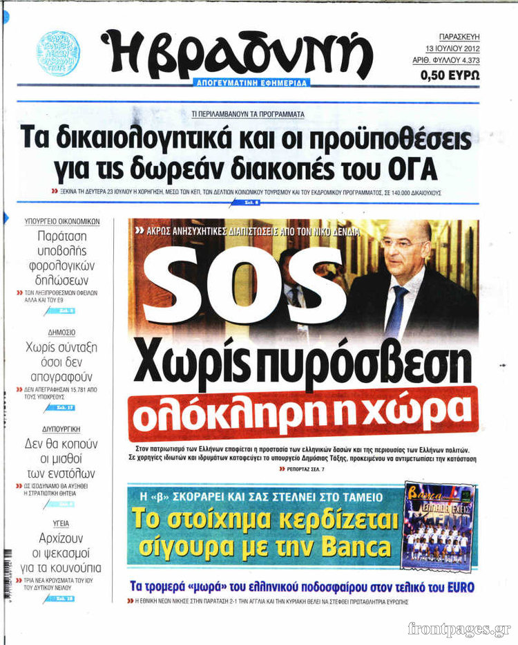 Διαβάστε τα σημερινά πρωτοσέλιδα των πολιτικών εφημερίδων.