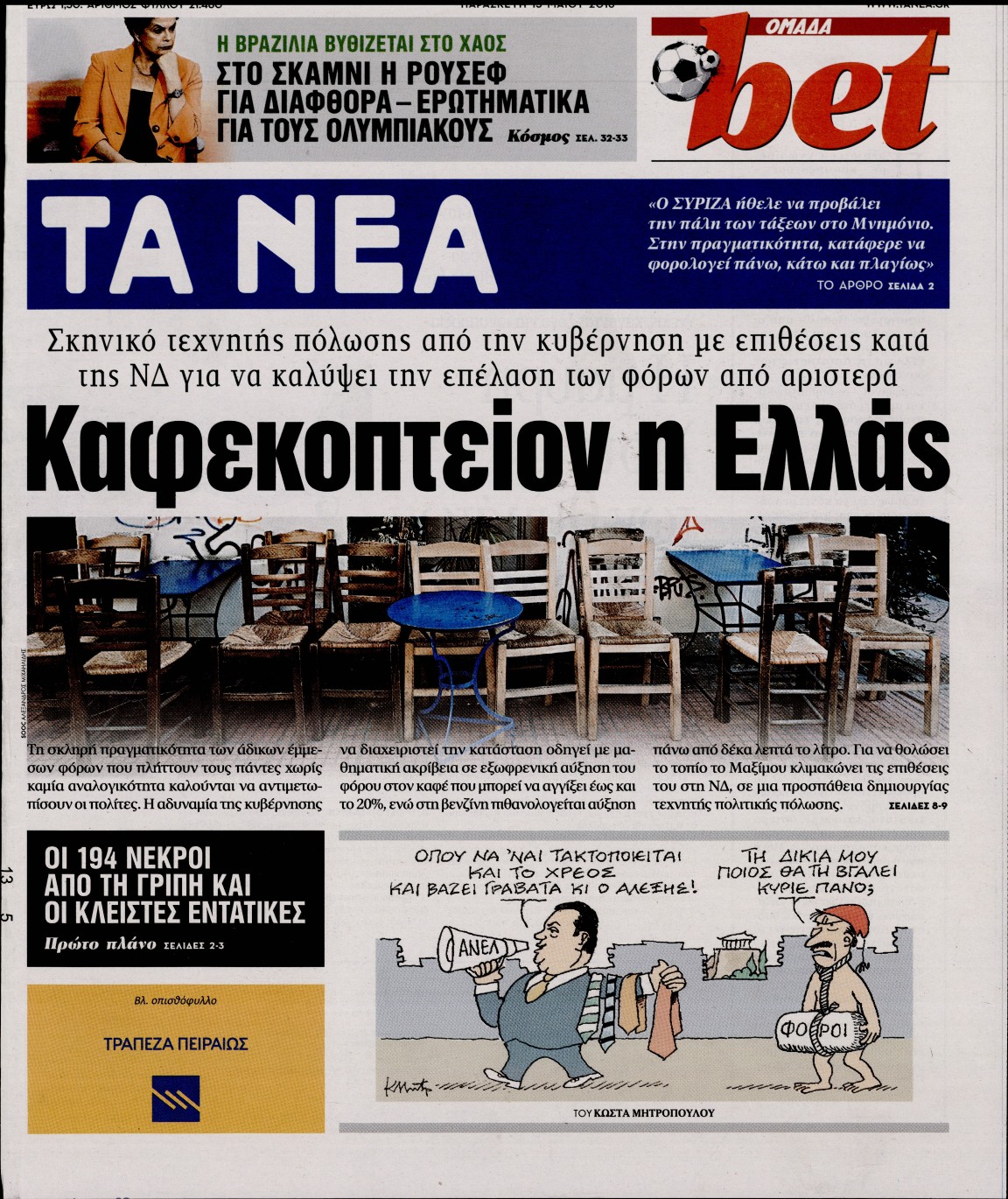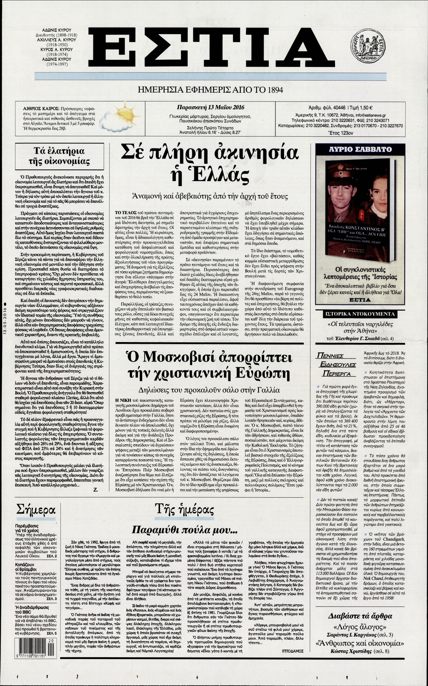 Oι πολιτικές εφημερίδες 13/5/2016 Enikos Newsroom 06:09, Παρασκευή 13 Μαΐου 2016 Media Διαβάστε τα σημερινά πρωτοσέλιδα των πολιτικών εφημερίδων: ΠΟΛΙΤΙΚΕΣ ΕΦΗΜΕΡΙΔΕΣ ΠΡΩΤΟΣΕΛΙΔΑ Μοιράσου το: σχολίασε κι εσύ (0 σχόλια) Ακολουθήστε το enikos.gr στο Google News και μάθετε πρώτοι όλες τις ειδήσεις Δείτε όλες τις τελευταίες ειδήσεις από την Ελλάδα και τον Κόσμο στο enikos.gr Ειδήσεις Ροή Ειδήσεων 2 ώρες πριν Γιορτές με μπλόκα για τους αγρότες: Ανοίγουν διόδια και μοιράζουν προϊόντα στους ταξιδιώτες 2 ώρες πριν Τα αρχεία του Έπσταϊν αποκαλύπτουν φωτογραφία του έκπτωτου πρίγκιπα Άντριου – Είναι ξαπλωμένος στην αγκαλιά 5 γυναικών 1 ώρα πριν Νέες ταυτότητες: Μεγάλη αναμονή για ραντεβού στην Αττική – Τέλος τα ταξίδια εκτός Ελλάδος από τον Αύγουστο για όσους δεν έχουν αλλάξει 2 ώρες πριν Εξαφάνιση 33χρονου γιατρού στην Κρήτη: «Άναψα τα φώτα, τρόμαξε και άρχισε να τρέχει στα χωράφια» – Η τελευταία διαδρομή και η μαρτυρία «κλειδί» 29 λεπτά πριν Ινδία: Επτά ελέφαντες σκοτώθηκαν κατά τη σύγκρουση επιβατικού τρένου με κοπάδι 2 ώρες πριν Μία νέα «χρυσή» περίοδος αρχίζει για 3 ζώδια από σήμερα – «Μία αναπάντεχη ευκαιρία οδηγεί στην επιτυχία» 4 ώρες πριν Αρχαιολόγοι ανακάλυψαν σε χωράφι απεικόνιση 600 ετών ενός Αγίου – Τα στοιχεία που δείχνουν ότι μαρτύρησε 3 ώρες πριν Αγχώνεται για το χριστουγεννιάτικο δώρο που πήρε στην πλούσια σύντροφό του – «Φοβάμαι πως θα το βρει φθηνιάρικο, φοράει βραχιόλια Cartier» 26 λεπτά πριν Διαιτολόγος αποκαλύπτει 9 πρωινές συνήθειες που «λιώνουν» το κοιλιακό λίπος – «Υποστηρίζουν την υγιεινή απώλεια βάρους» 6 λεπτά πριν Χρήστος Μάντακας: «Θα μπορούσα να είχα φύγει από τη ζωή, δεν μπορούσα να περπατήσω…» 13 λεπτά πριν Εντυπωσιακό βίντεο από «τσουνάμι» πάγου στη Σιβηρία – Πώς προκαλείται το σπάνιο φαινόμενο 21 λεπτά πριν Μυλωνάκης κατά Τζάκρη: Την καλώ να ανασκευάσει το αδιανόητο ψέμα της. Η ανοχή έχει και τα όρια της» 26 λεπτά πριν Διαιτολόγος αποκαλύπτει 9 πρωινές συνήθειες που «λιώνουν» το κοιλιακό λίπος – «Υποστηρίζουν την υγιεινή απώλεια βάρους» 29 λεπτά πριν Ινδία: Επτά ελέφαντες σκοτώθηκαν κατά τη σύγκρουση επιβατικού τρένου με κοπάδι ENIKOS NETWORK Είστε μόνιμα απρόσεκτοι; 3 σημάδια που δείχνουν ότι μπορεί να είναι σύμπτωμα πάθησης Πόσα κιλά παίρνουμε πραγματικά τα Χριστούγεννα, σύμφωνα με την επιστήμη – Πώς να το αποτρέψουμε; Χριστούγεννα και Πρωτοχρονιά: Πώς αμείβονται όσοι εργαστούν e-ΕΦΚΑ και ΔΥΠΑ: Έρχονται νέες πληρωμές έως τις 24 Δεκεμβρίου – Ποιοι πάνε ταμείο Χαρτογραφώντας το «σημείο χωρίς επιστροφή»: Για πρώτη φορά αποκαλύπτεται με λεπτομέρεια το ακανθώδες όριο της ατμόσφαιρας τ... Η Google καταργεί τη λειτουργία «dark web report» – Πώς θα μπορούν οι χρήστες να διαγράφουν τα δεδομένα τους περισσότερα 11:41 , Σάββατο 20 Δεκεμβρίου 2025 «Η αγάπη δεν χάνεται ποτέ»: Η μικρού μήκους ταινία κινουμένων σχεδίων που θέτει ερωτήματα για τη ζωή και τον θάνατο Ο θάνατος είναι ένα από τα πιο σκληρά θέματα που καλείται να διαχειριστεί κάποιος στη διάρκεια... 09:30 , Σάββατο 20 Δεκεμβρίου 2025 «Porto Leone: Στη γειτονιά με τα κόκκινα φανάρια» – Ο Χρόνης αποκαλύπτει στην Αλεξάνδρα το μυστικό για το παιδί της Λένας Η μεγάλη δραματική σειρά του Apha «Porto Leone: Στη γειτονιά με τα κόκκινα φανάρια» μας μεταφέ... 08:14 , Σάββατο 20 Δεκεμβρίου 2025 Τρομεροί γονείς: Η Μαρία Καβογιάννη εισβάλλει στο σπίτι της οικογένειας Στεφανίδη Όσα θα δούμε στο νέο διπλό επεισόδιο της σειράς «Τρομεροί γονείς», σήμερα Σάββατ