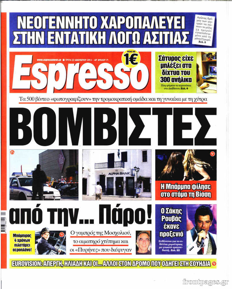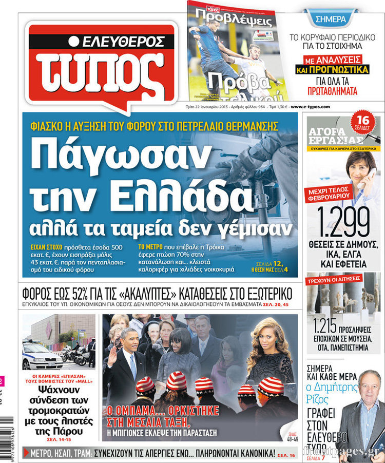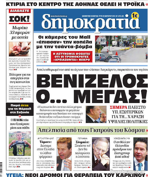 Οι πολιτικές εφημερίδες Enikos Newsroom 08:52, Τρίτη 22 Ιανουαρίου 2013 Media Οι πολιτικές εφημερίδες ΕΦΗΜΕΡΙΔΕΣ ΠΟΛΙΤΙΚΕΣ ΕΦΗΜΕΡΙΔΕΣ ΠΡΩΤΟΣΕΛΙΔΑ Μοιράσου το: σχολίασε κι εσύ (0 σχόλια) Ακολουθήστε το enikos.gr στο Google News και μάθετε πρώτοι όλες τις ειδήσεις Δείτε όλες τις τελευταίες ειδήσεις από την Ελλάδα και τον Κόσμο στο enikos.gr Ειδήσεις Ροή Ειδήσεων 7 ώρες πριν Εκτός ευρωομάδας ΣΥΡΙΖΑ ο Νίκος Παππάς μετά την επίθεση στον δημοσιογράφο Νίκο Γιαννόπουλο – Η μήνυση και οι νέες δηλώσεις 7 ώρες πριν «Αγριεύουν» οι αγρότες: «Δεν συντρέχει λόγος συνάντησης με τον πρωθυπουργό» – Ώρα αποφάσεων στη σύσκεψη της Πέμπτης 7 ώρες πριν Κυψέλη: Χωρίς την οικογένειά της δίπλα της απολογήθηκε η 16χρονη – «Της είχε επιτεθεί κάποιος για να την βιάσει, φοβήθηκε και κυκλοφορούσε με μαχαίρι» 7 ώρες πριν Politico: Το πρόβλημα της Ευρώπης δεν είναι το Βέλγιο αλλά ο Ντόναλντ Τραμπ 8 ώρες πριν Αλεξανδρούπολη: Πολυοργανική ανεπάρκεια λόγω υποσιτισμού η αιτία θανάτου του 3χρονου αγοριού 7 ώρες πριν Μυστήριο με τεράστιες κυκλικές πέτρες 200 κιλών – Ανακαλύφθηκαν τυχαία κατά τη διάρκεια οδικών έργων και κανείς δεν ξέρει από πού προέρχονται 8 ώρες πριν Ύπνος: Ειδικός εξηγεί τον πραγματικό λόγο που ξυπνάτε στις 4 τα ξημερώματα – Ο ρόλος των ορμονών και του κιρκάδιου ρυθμού 9 ώρες πριν Αριθμολογία: Οι άνθρωποι που έχουν γεννηθεί αυτές τις 4 ημερομηνίες, είναι τρυφεροί και αγαπούν ανιδιοτελώς 21 ώρες πριν 20 χρόνια τα Χριστούγεννα ξεκινούν στα Public με μεγάλη ποικιλία σε δώρα! 6 λεπτά πριν Σαν σήμερα 18 Δεκεμβρίου: Τα σημαντικότερα γεγονότα της ημέρας 11 λεπτά πριν Οι οικονομικές εφημερίδες 18/12/2025 16 λεπτά πριν Οι αθλητικές εφημερίδες 18/12/2025 21 λεπτά πριν Οι πολιτικές εφημερίδες 18/12/2025 29 λεπτά πριν Τα ζώδια σήμερα, Πέμπτη 18 Δεκεμβρίου: Λέοντες, η καρδιά σας θέλει να εκφραστεί ENIKOS NETWORK Αϋπνία: Το κόλπο που θα σας βοηθήσει να κοιμηθείτε απόψε – Είναι απλό και έχει αποτέλεσμα 2,6 εκατομμύρια πολίτες έχουν ήδη εμβολιαστεί κατά της γρίπης ΕΛΣΤΑΤ: Τι δείχνουν τα νέα στοιχεία για τις ηλεκτρονικές παραγγελίες των επιχειρήσεων ΚΕΠΕ: Οι 3 διακριτές συμβολές των ΜμΕ και της μεταποίησης στην ελληνική οικονομία Χαρτογραφώντας το «σημείο χωρίς επιστροφή»: Για πρώτη φορά αποκαλύπτεται με λεπτομέρεια το ακανθώδες όριο της ατμόσφαιρας τ... Η Google καταργεί τη λειτουργία «dark web report» – Πώς θα μπορούν οι χρήστες να διαγράφουν τα δεδομένα τους περισσότερα 05:48 , Πέμπτη 18 Δεκεμβρίου 2025 Οι οικονομικές εφημερίδες 18/12/2025 Διαβάστε τα πρωτοσέλιδα από τις οικονομικές εφημερίδες, σήμερα 18/12/2025. 05:43 , Πέμπτη 18 Δεκεμβρίου 2025 Οι αθλητικές εφημερίδες 18/12/2025 Διαβάστε τα πρωτοσέλιδα από τις αθλητικές εφημερίδες, σήμερα 18/12/2025. 05:38 , Πέμπτη 18 Δεκεμβρίου 2025 Οι πολιτικές εφημερίδες 18/12/2025 Διαβάστε τα πρωτοσέλιδα από τις πολιτικές εφημερίδες, σήμερα 18/12/2025. 05:22 , Πέμπτη 18 Δεκεμβρίου 2025 Το Ποντίκι σήμερα Πέμπτη 18/12/2025 Διαβάστε το πρωτοσέλιδο της εφημερίδας «Το Ποντίκι» σήμερα 18/12/2025. ΤΕΛΕΥΤΑΙΕΣ ΕΙΔΗΣΕΙΣ 6 λεπτά πριν Σαν σήμερα 18 Δεκεμβρίου: Τα σημαντικότερα γεγονότα... 11 λεπτά πριν Οι οικονομικές εφημερίδες 18/12/2025 16 λεπτά πριν Οι αθλητικές εφημερίδες 18/12/2025 21 λεπτά πριν Οι πολιτικές εφημερίδες 18/12/2025 29 λεπτά πριν Τα ζώδια σήμερα, Πέμπτη 18 Δεκεμβρίου: Λέοντες, η καρδιά... 37 λεπτά πριν Το Ποντίκι σήμερα Πέμπτη 18/12/2025 41 λεπτά πριν Εφημερεύοντα φαρμακεία σε Αθήνα και Θεσσαλονίκη (18/12) 44 λεπτά πριν Αλεξάνδρα Ούστα: «Αυτό που με τρέλανε στον σύζυγό μου... 51 λεπτά πριν Μ