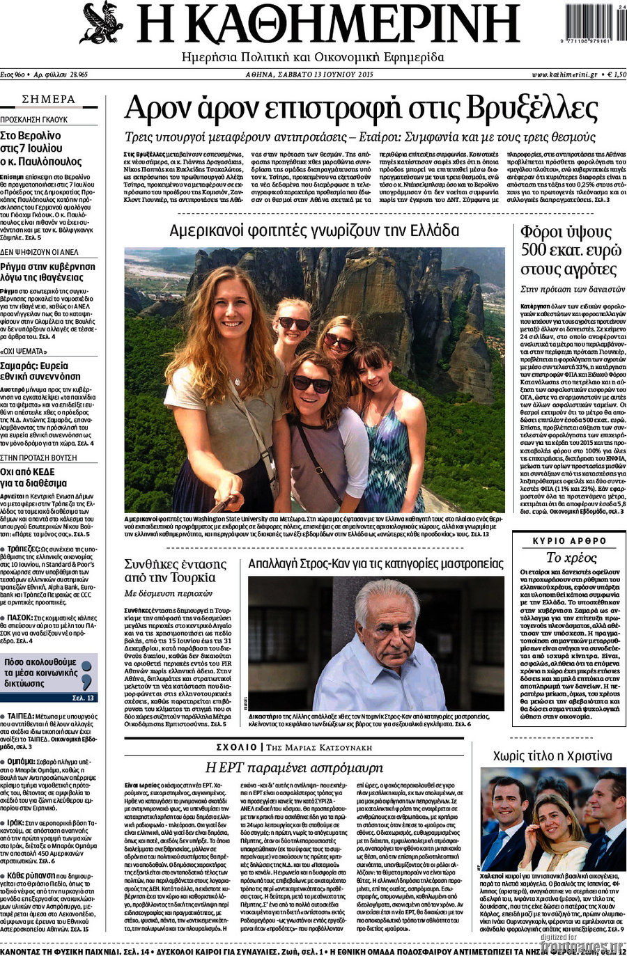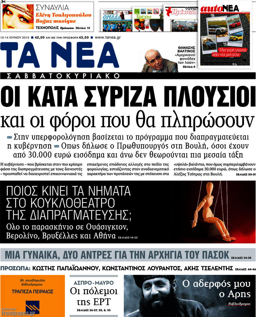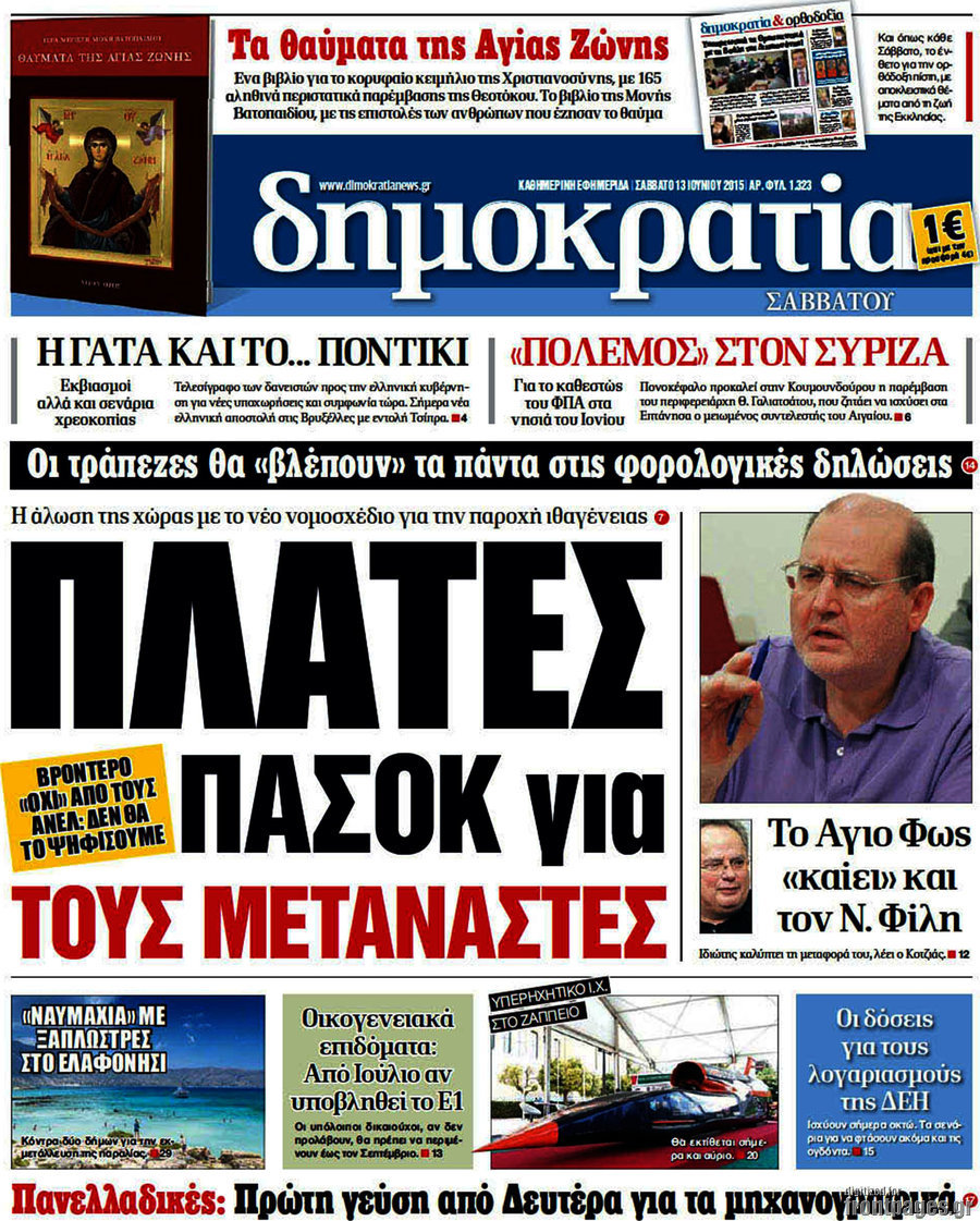 Οι πολιτικές εφημερίδες 13/6/2015 Enikos Newsroom 07:50, Σάββατο 13 Ιουνίου 2015 Media Διαβάστε τα σημερινά πρωτοσέλιδα των πολιτικών εφημερίδων: ΠΟΛΙΤΙΚΕΣ ΕΦΗΜΕΡΙΔΕΣ ΠΡΩΤΟΣΕΛΙΔΑ Μοιράσου το: σχολίασε κι εσύ (0 σχόλια) Ακολουθήστε το enikos.gr στο Google News και μάθετε πρώτοι όλες τις ειδήσεις Δείτε όλες τις τελευταίες ειδήσεις από την Ελλάδα και τον Κόσμο στο enikos.gr Ειδήσεις Ροή Ειδήσεων 1 ώρα πριν Χριστούγεννα στα μπλόκα: Επιμένουν στις κινητοποιήσεις τους οι αγρότες – Ανοίγουν τα διόδια το Σαββατοκύριακο 2 ώρες πριν Ουκρανία: Η άνευ προηγουμένου επίθεση σε ρωσικό τάνκερ στη Μεσόγειο και το μήνυμα προς στον Πούτιν – Το «μακρύ χέρι» του Κιέβου 1 ώρα πριν Πούτιν: Τα μηνύματα σε Ευρώπη και ΝΑΤΟ από το μαραθώνιο «σόου» του – Η απαίτηση για «σεβασμό» και η ειρήνη «με τους όρους» της Μόσχας 2 ώρες πριν Τραμπ: Δεν αποκλείει την πιθανότητα ενός πολέμου στη Βενεζουέλα – «Ο Μαδούρο ξέρει καλύτερα από τον καθένα τι ακριβώς θέλω» 3 ώρες πριν Συνεχίζει να προκαλεί ο Μίτσκοσκι: «Για μένα το όνομα Μακεδονία είναι ιερό» 1 ώρα πριν Ανακαλύφθηκαν αρχαία χρυσά νομίσματα 2.200 ετών που απεικονίζουν τον θεό Απόλλωνα – Η άγνωστη σύνδεση με τον Φίλιππο Β΄ της Μακεδονίας 2 ώρες πριν Ύπνος: Μια κρυφή κατάσταση του εγκεφάλου πριν από τον ύπνο μπορεί να είναι το “κλειδί” για υψηλή ευφυΐα και δημιουργικότητα 3 ώρες πριν Αριθμολογία: Οι άνθρωποι που έχουν γεννηθεί αυτές τις 4 ημερομηνίες, συχνά παρεξηγούνται – «Η καλοσύνη τους κρύβει τεράστια δύναμη» 4 ώρες πριν Ξεχάστε το καθάρισμα το Σαββατοκύριακο: Ο «κανόνας των 20 λεπτών» που θα σας λύσει τα χέρια 2 λεπτά πριν Πόλεμος στην Ουκρανία: Εφτά νεκροί από ρωσική πυραυλική επίθεση στο λιμάνι της Οδησσού 6 λεπτά πριν ΗΠΑ: Η κυβέρνηση του Ντόναλντ Τραμπ άρχισε να δημοσιοποιεί τα αρχεία Έπσταϊν 17 λεπτά πριν Σάμος: Άνοιξε το μπλόκο των αγροτών στον κόμβο Κοκκαρίου – Σε νέα συνεδρίαση θα καθορίσουν την στάση τους 26 λεπτά πριν Άνω Λιόσια: Πυροβολισμοί σε επιχείρηση με χαλιά – Εντοπίστηκαν 10 κάλυκες 33 λεπτά πριν Γάζα: Ισραηλινό πλήγμα σε σχολείο που είχαν καταφύγει εκτοπισμένοι – Τουλάχιστον έξι νεκροί ENIKOS NETWORK Το ΕΚΑΒ τιμήθηκε από την Ακαδημία Αθηνών για τα 40 χρόνια προσφοράς του Έχετε πραγματικά μεγάλη καρδιά; 10 χαρακτηριστικά όσων έχουν καλοσύνη Αναστολή μέτρων αναγκαστικής εκτέλεσης για κτηνοτρόφους που πλήττονται από την ευλογιά των αιγοπροβάτων Πλήρης επάρκεια προϊόντων στις λαϊκές της Αττικής, παρά τις αγροτικές κινητοποιήσεις – Τι απαντούν οι πωλητές Χαρτογραφώντας το «σημείο χωρίς επιστροφή»: Για πρώτη φορά αποκαλύπτεται με λεπτομέρεια το ακανθώδες όριο της ατμόσφαιρας τ... Η Google καταργεί τη λειτουργία «dark web report» – Πώς θα μπορούν οι χρήστες να διαγράφουν τα δεδομένα τους περισσότερα 22:42 , Παρασκευή 19 Δεκεμβρίου 2025 Γιώργος Γιαννόπουλος για “Το σόι σου”: “Είναι ευτυχία και ευλογία αυτή η σειρά” «Είναι ευτυχία και ευλογία η συγκυρία αυτής της σειράς», θα πει ο Γιώργος Γιαννόπουλος -ο αγαπ... 20:37 , Παρασκευή 19 Δεκεμβρίου 2025 Don’t Forget The Lyrics: Η Έλλη Κοκκίνου υποδέχεται 4 παίκτες που θα κάνουν τα πάντα για να μη χάσουν ούτε… μισή λέξη από τους στίχους Το «Don’t Forget The Lyrics» επιστρέφει απόψε, Παρασκευή 19 Δεκεμβρίου, στις 21:00 με νέο επει... 19:31 , Παρασκευή 19 Δεκεμβρίου 2025 GNTM: Απόψε ο μεγάλος τελικός για τους 4 φιναλίστ Έπειτα από μήνες γεμάτους μόδα, δημιουργία και έντονες αναμετρήσεις, το GNTM 2025 κορυφώνεται,... 18:11 , Παρασκευή 19 Δεκεμβρίου 2025 Το σόι σου: Ο Άρης