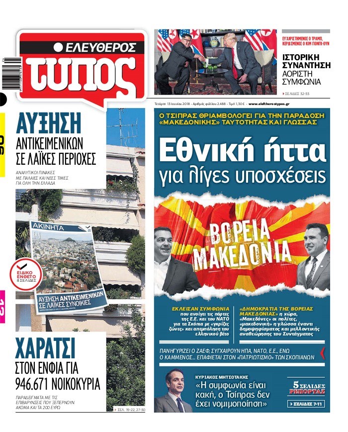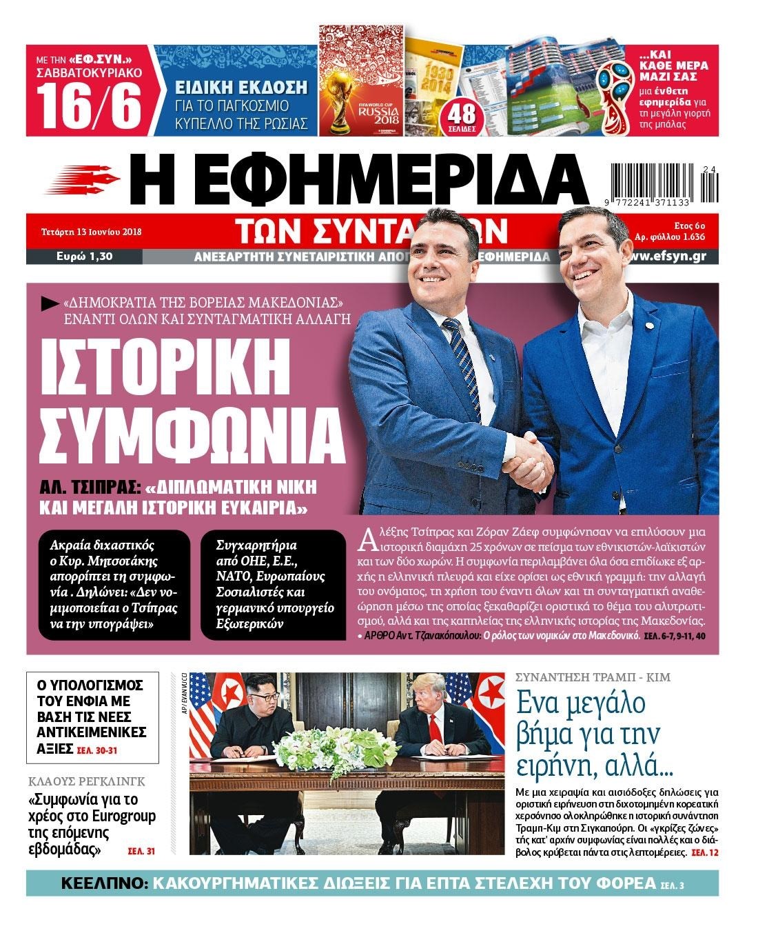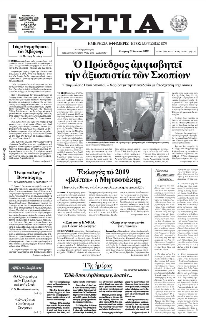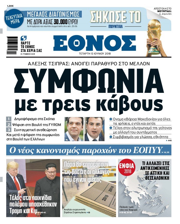 Οι πολιτικές εφημερίδες 13/6/2018 Enikos Newsroom 06:06, Τετάρτη 13 Ιουνίου 2018 Media Διαβάστε τα σημερινά πρωτοσέλιδα των πολιτικών εφημερίδων. ΕΦΗΜΕΡΙΔΕΣ ΠΟΛΙΤΙΚΕΣ ΕΦΗΜΕΡΙΔΕΣ ΠΡΩΤΟΣΕΛΙΔΑ Μοιράσου το: σχολίασε κι εσύ (0 σχόλια) Ακολουθήστε το enikos.gr στο Google News και μάθετε πρώτοι όλες τις ειδήσεις Δείτε όλες τις τελευταίες ειδήσεις από την Ελλάδα και τον Κόσμο στο enikos.gr Ειδήσεις Ροή Ειδήσεων 1 ώρα πριν Μητσοτάκης σε αγρότες: Είμαστε ανοιχτοί στον διάλογο, αλλά όχι στο παράλογο – Η διεκδίκηση αιτημάτων οφείλει να γίνεται με σεβασμό στο κοινωνικό σύνολο 2 ώρες πριν Γρίπη: «Καμπανάκι» από τους επιστήμονες για έξαρση κρουσμάτων στις γιορτές – Ποιοι κινδυνεύουν και πώς προστατευόμαστε 3 ώρες πριν Γαλλία: Έτοιμοι για Χριστούγεννα στους δρόμους οι αγρότες – «Οι δεσμεύσεις της κυβέρνησης δεν είναι αρκετές» 2 ώρες πριν Η οικογενειακή διαμάχη των Μπέκαμ: Το block από τον Μπρούκλιν και η απόφαση να περάσει τα Χριστούγεννα με τους δισεκατομμυριούχους γονείς της συζύγου του 2 ώρες πριν Φοροδιαφυγή και «κενό ΦΠΑ»: Πώς τα ψηφιακά εργαλεία έφεραν δισεκατομμύρια στα ταμεία του Δημοσίου 2 ώρες πριν Τα άστρα ευνοούν σκανδαλωδώς 4 ζώδια – «Εμφανίζονται ξαφνικά ευκαιρίες γιατί αποφασίζετε να αφήσετε πίσω το παρελθόν» 3 ώρες πριν Οι γονείς της θέλουν να έχουν πρόσβαση στον τραπεζικό της λογαριασμό – «Επιμένουν πως στις οικογένειες δεν υπάρχουν μυστικά» 3 ώρες πριν Αρχαιολόγοι ανακάλυψαν κάτι που δεν περίμεναν: Τα μαθηματικά υπήρχαν πριν από τους αριθμούς – Το μυστικό που κρύβεται πίσω από περίεργα αγγεία 8.000 ετών 1 ημέρα πριν Enerwave: Το νέο «ρεύμα» στη λιανική ενέργειας που αλλάζει την εμπειρία του καταναλωτή 9 λεπτά πριν Ξενοφών Ζηκίδης: Πέθανε ο δημοσιογράφος της ΕΡΤ 16 λεπτά πριν Παραμένουν στους δρόμους οι αγρότες – Απρόσκοπτη η μετακίνηση των εκδρομέων για τις γιορτές 24 λεπτά πριν Κηφισιά: Δύο συλλήψεις για ληστεία με λεία 180.000 ευρώ – Το «πλούσιο» ποινικό παρελθόν των κατηγορουμένων 32 λεπτά πριν Mente Fuerte για Μαρία Σολωμού: «Ό,τι και αν έχει γίνει, είναι οικογένειά μου» 40 λεπτά πριν Κως: Συνελήφθη 27χρονος για διακίνηση ναρκωτικών – Έπαιρνε εντολές από κρατούμενο ENIKOS NETWORK Άσκηση: η «ασπίδα» του εγκεφάλου απέναντι στη γήρανση Έχετε καταρροή και φαγούρα στα μάτια στις γιορτές; Μπορεί να ευθύνεται το σύνδρομο χριστουγεννιάτικου δέντρου Ανοιχτά τα καταστήματα σήμερα – Μέχρι τι ώρα μπορείτε να κάνετε τις αγορές σας Πρωτοχρονιά 2026: Πόσο θα κοστίσει φέτος η βασιλόπιτα – Οι τιμές σε ζαχαροπλαστεία, φούρνους και σούπερ μάρκετ Χαρτογραφώντας το «σημείο χωρίς επιστροφή»: Για πρώτη φορά αποκαλύπτεται με λεπτομέρεια το ακανθώδες όριο της ατμόσφαιρας τ... Η Google καταργεί τη λειτουργία «dark web report» – Πώς θα μπορούν οι χρήστες να διαγράφουν τα δεδομένα τους περισσότερα 09:43 , Κυριακή 21 Δεκεμβρίου 2025 Το λάθος στην ταινία Die Hard που άφησε άναυδους τους θαυμαστές του Μπρους Γουίλις Ένας φανατικός των ταινιών άφησε άναυδους τους θαυμαστές του Die Hard, επισημαίνοντας τρία βασ... 08:13 , Κυριακή 21 Δεκεμβρίου 2025 Άγιος έρωτας: Ένας καταστροφικός σεισμός χτυπά τη Στέρνα Καταιγιστικές είναι οι εξελίξεις στα δυο τελευταία, συγκλονιστικά επεισόδια του 2025 της σειρά... 08:00 , Κυριακή 21 Δεκεμβρίου 2025 Σήμερα με τη Realnews: Ό,τι και αν αγοράσεις, σκανάρεις και κερδίζεις! Σήμερα με τη Realnews: Ό,τι και αν αγοράσεις, σκανάρεις και κερδίζεις! Με το PADU app, το κορυ... 07:00 , Κυριακή 21 Δεκεμβρίου 2025 Σήμερα με τη Realnews: Instyle, μαζί Drive και Rea
