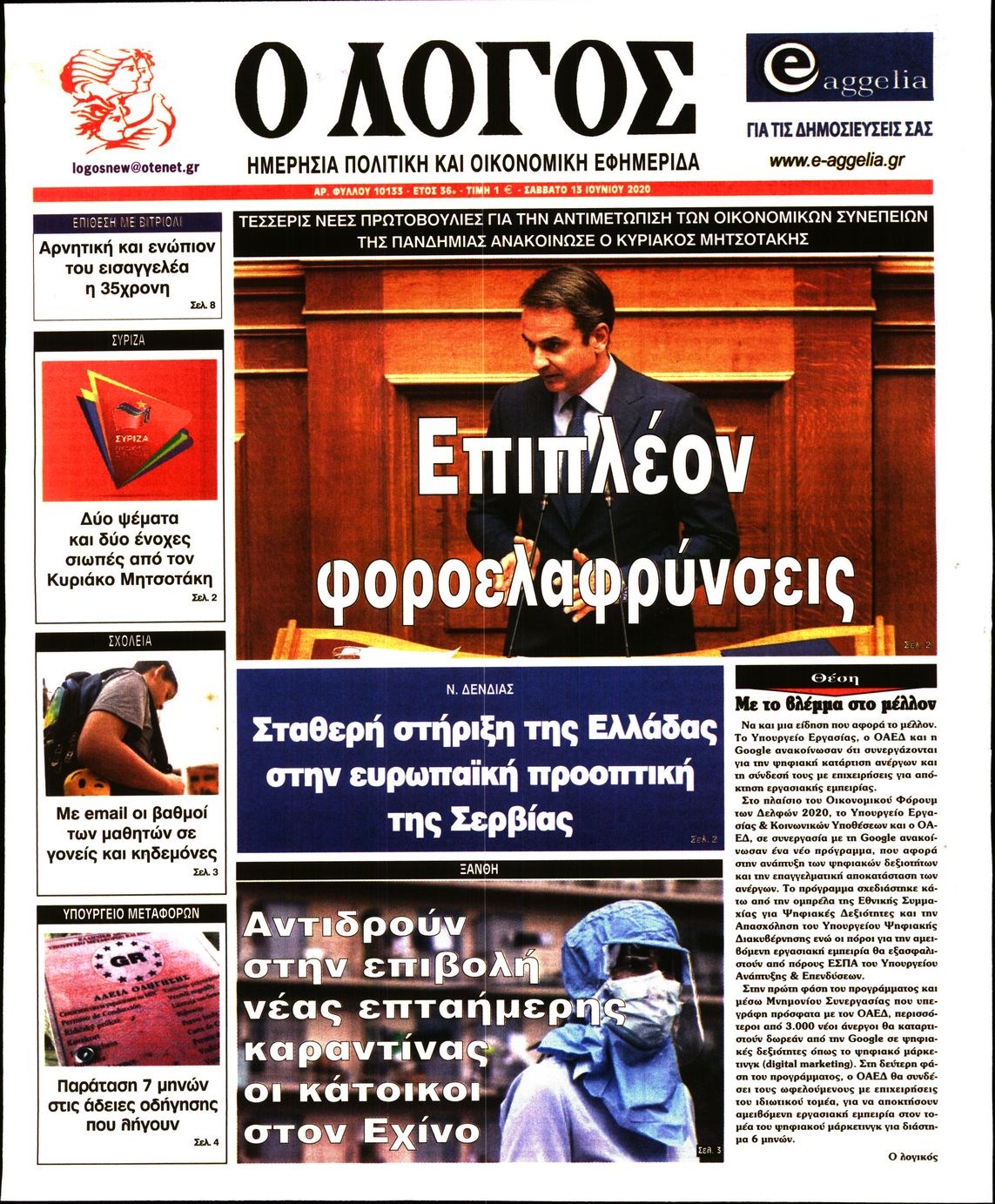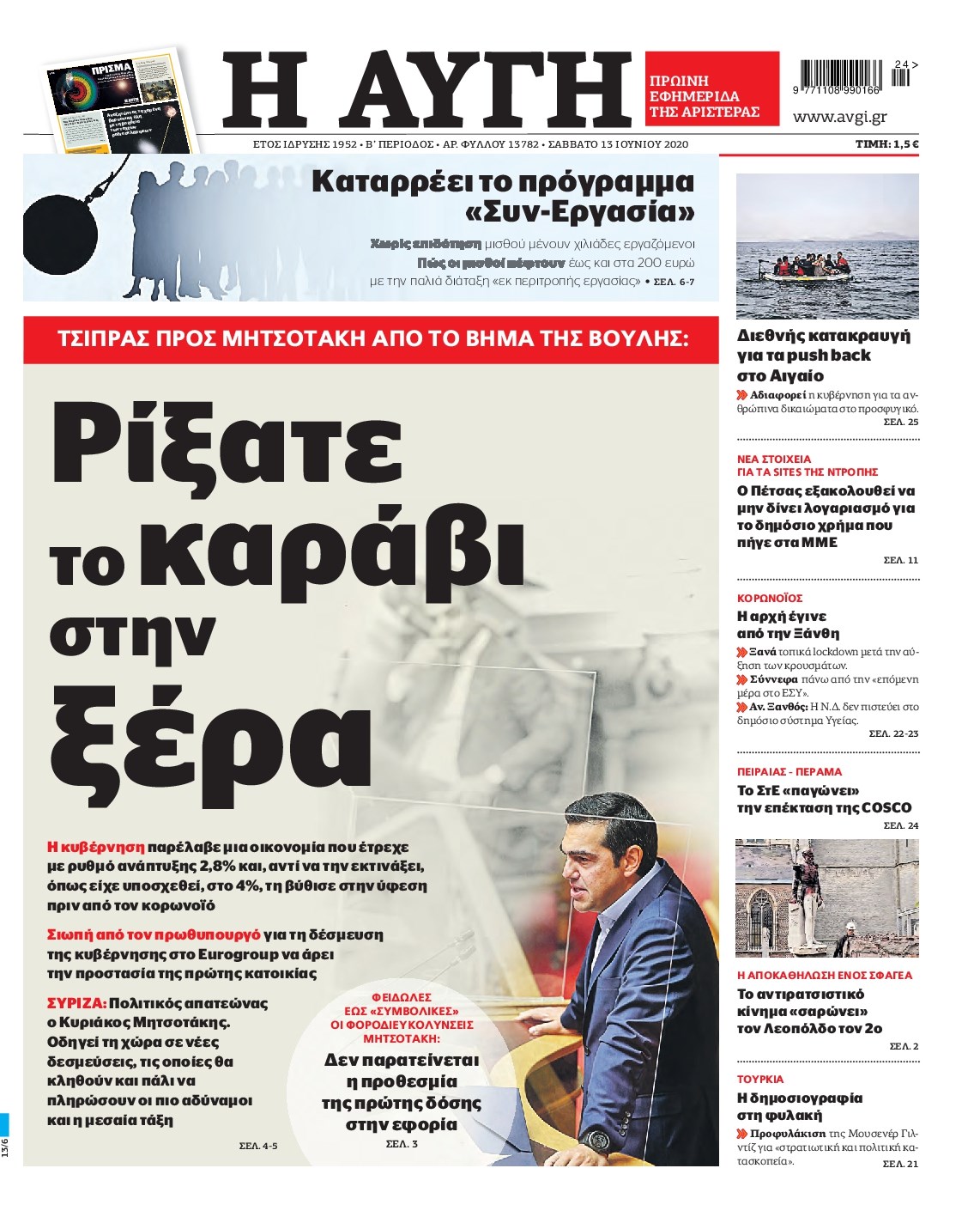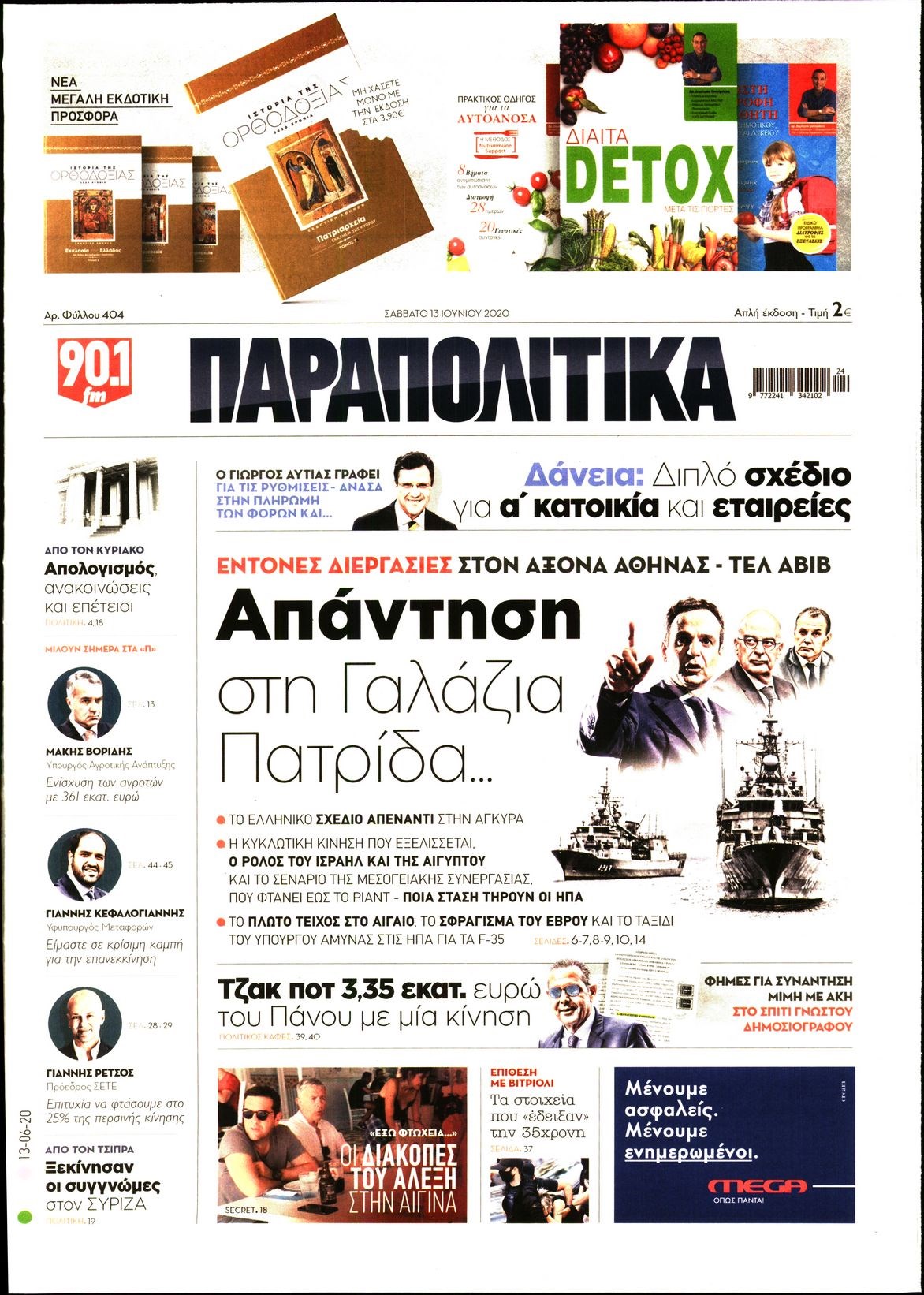 Οι πολιτικές εφημερίδες 13/6/2020 Διονύσης Νίκκας 07:41, Σάββατο 13 Ιουνίου 2020 Media Διαβάστε τα πρωτοσέλιδα των πολιτικών εφημερίδων… ΠΟΛΙΤΙΚΕΣ ΕΦΗΜΕΡΙΔΕΣ Μοιράσου το: σχολίασε κι εσύ (0 σχόλια) Ακολουθήστε το enikos.gr στο Google News και μάθετε πρώτοι όλες τις ειδήσεις Δείτε όλες τις τελευταίες ειδήσεις από την Ελλάδα και τον Κόσμο στο enikos.gr Ειδήσεις Ροή Ειδήσεων 2 ώρες πριν Χριστούγεννα στα μπλόκα: Επιμένουν στις κινητοποιήσεις τους οι αγρότες – Ανοίγουν τα διόδια το Σαββατοκύριακο 2 ώρες πριν Ουκρανία: Η άνευ προηγουμένου επίθεση σε ρωσικό τάνκερ στη Μεσόγειο και το μήνυμα προς στον Πούτιν – Το «μακρύ χέρι» του Κιέβου 2 ώρες πριν Πούτιν: Τα μηνύματα σε Ευρώπη και ΝΑΤΟ από το μαραθώνιο «σόου» του – Η απαίτηση για «σεβασμό» και η ειρήνη «με τους όρους» της Μόσχας 3 ώρες πριν Τραμπ: Δεν αποκλείει την πιθανότητα ενός πολέμου στη Βενεζουέλα – «Ο Μαδούρο ξέρει καλύτερα από τον καθένα τι ακριβώς θέλω» 3 ώρες πριν Συνεχίζει να προκαλεί ο Μίτσκοσκι: «Για μένα το όνομα Μακεδονία είναι ιερό» 2 ώρες πριν Ανακαλύφθηκαν αρχαία χρυσά νομίσματα 2.200 ετών που απεικονίζουν τον θεό Απόλλωνα – Η άγνωστη σύνδεση με τον Φίλιππο Β΄ της Μακεδονίας 3 ώρες πριν Ύπνος: Μια κρυφή κατάσταση του εγκεφάλου πριν από τον ύπνο μπορεί να είναι το “κλειδί” για υψηλή ευφυΐα και δημιουργικότητα 4 ώρες πριν Αριθμολογία: Οι άνθρωποι που έχουν γεννηθεί αυτές τις 4 ημερομηνίες, συχνά παρεξηγούνται – «Η καλοσύνη τους κρύβει τεράστια δύναμη» 5 ώρες πριν Ξεχάστε το καθάρισμα το Σαββατοκύριακο: Ο «κανόνας των 20 λεπτών» που θα σας λύσει τα χέρια 15 λεπτά πριν Φαίη Σκορδά: «Παλιότερα τα κομπλιμέντα τα προσπερνούσα, τώρα τα έχω ανάγκη» 30 λεπτά πριν Βασίλης Σπανούλης: Δεν εμφανίστηκε ούτε ένας δημοσιογράφος στην συνέντευξη Τύπου – «Καλησπέρα στον… κανέναν», δείτε βίντεο 42 λεπτά πριν Πόλεμος στην Ουκρανία: Εφτά νεκροί από ρωσική πυραυλική επίθεση στο λιμάνι της Οδησσού 45 λεπτά πριν ΗΠΑ: Η κυβέρνηση του Ντόναλντ Τραμπ άρχισε να δημοσιοποιεί τα αρχεία Έπσταϊν 57 λεπτά πριν Σάμος: Άνοιξε το μπλόκο των αγροτών στον κόμβο Κοκκαρίου – Σε νέα συνεδρίαση θα καθορίσουν την στάση τους ENIKOS NETWORK Το ΕΚΑΒ τιμήθηκε από την Ακαδημία Αθηνών για τα 40 χρόνια προσφοράς του Έχετε πραγματικά μεγάλη καρδιά; 10 χαρακτηριστικά όσων έχουν καλοσύνη Αναστολή μέτρων αναγκαστικής εκτέλεσης για κτηνοτρόφους που πλήττονται από την ευλογιά των αιγοπροβάτων Πλήρης επάρκεια προϊόντων στις λαϊκές της Αττικής, παρά τις αγροτικές κινητοποιήσεις – Τι απαντούν οι πωλητές Χαρτογραφώντας το «σημείο χωρίς επιστροφή»: Για πρώτη φορά αποκαλύπτεται με λεπτομέρεια το ακανθώδες όριο της ατμόσφαιρας τ... Η Google καταργεί τη λειτουργία «dark web report» – Πώς θα μπορούν οι χρήστες να διαγράφουν τα δεδομένα τους περισσότερα 22:42 , Παρασκευή 19 Δεκεμβρίου 2025 Γιώργος Γιαννόπουλος για “Το σόι σου”: “Είναι ευτυχία και ευλογία αυτή η σειρά” «Είναι ευτυχία και ευλογία η συγκυρία αυτής της σειράς», θα πει ο Γιώργος Γιαννόπουλος -ο αγαπ... 20:37 , Παρασκευή 19 Δεκεμβρίου 2025 Don’t Forget The Lyrics: Η Έλλη Κοκκίνου υποδέχεται 4 παίκτες που θα κάνουν τα πάντα για να μη χάσουν ούτε… μισή λέξη από τους στίχους Το «Don’t Forget The Lyrics» επιστρέφει απόψε, Παρασκευή 19 Δεκεμβρίου, στις 21:00 με νέο επει... 19:31 , Παρασκευή 19 Δεκεμβρίου 2025 GNTM: Απόψε ο μεγάλος τελικός για τους 4 φιναλίστ Έπειτα από μήνες γεμάτους μόδα, δημιουργία και έντονες αναμετρήσεις, το GNTM 2025 κορυφώνεται,... 18:11 , Παρασκευή 19 Δεκεμ