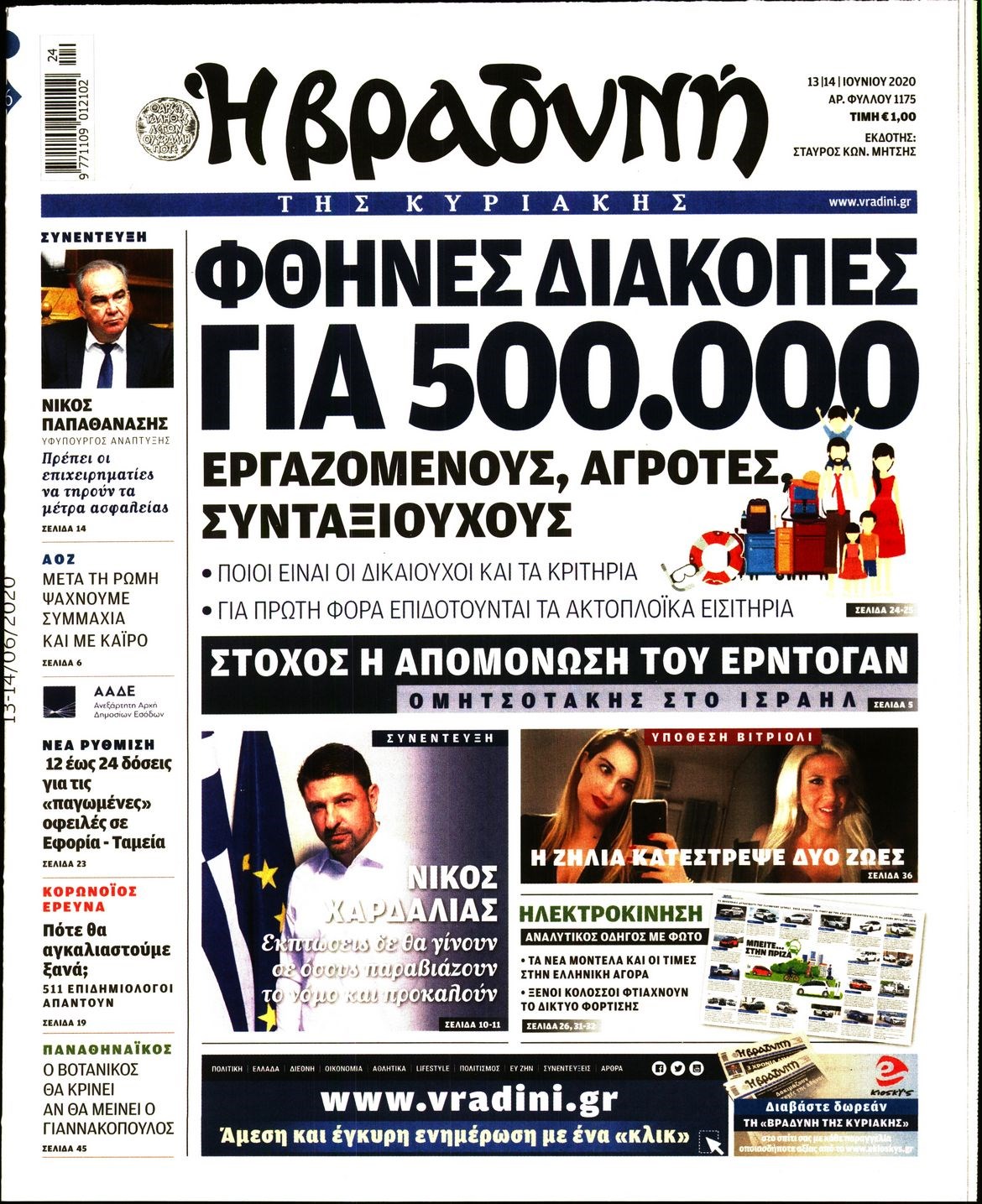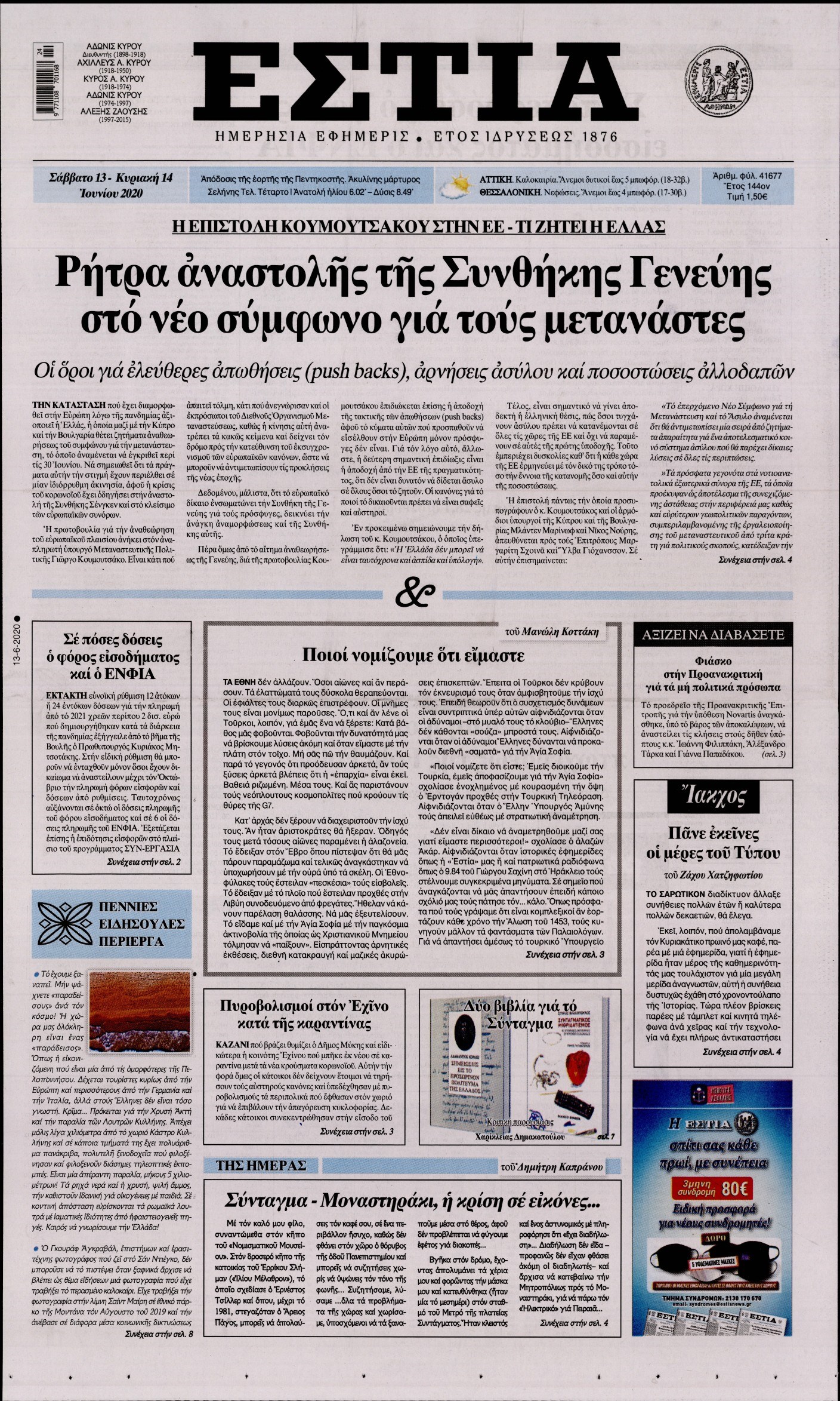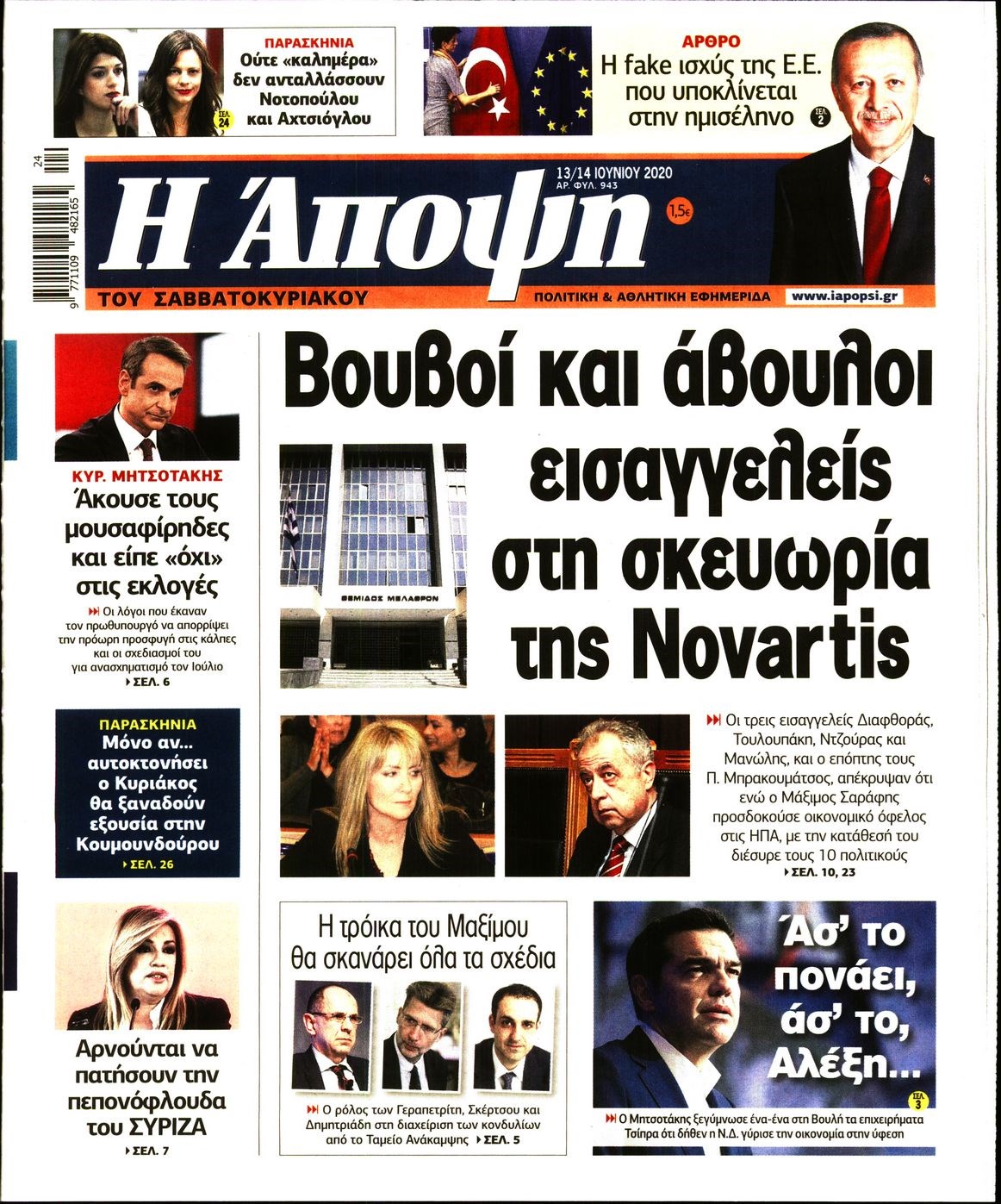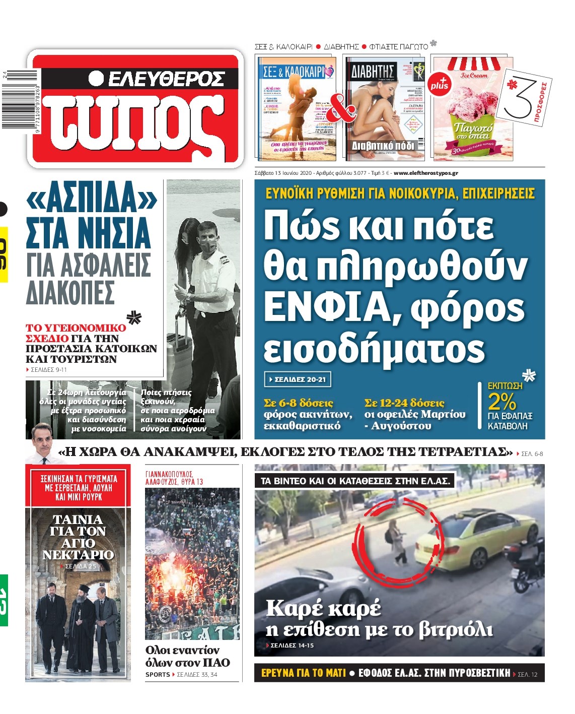 Οι πολιτικές εφημερίδες 13/6/2020 Διονύσης Νίκκας 07:41, Σάββατο 13 Ιουνίου 2020 Media Διαβάστε τα πρωτοσέλιδα των πολιτικών εφημερίδων… ΠΟΛΙΤΙΚΕΣ ΕΦΗΜΕΡΙΔΕΣ Μοιράσου το: σχολίασε κι εσύ (0 σχόλια) Ακολουθήστε το enikos.gr στο Google News και μάθετε πρώτοι όλες τις ειδήσεις Δείτε όλες τις τελευταίες ειδήσεις από την Ελλάδα και τον Κόσμο στο enikos.gr Ειδήσεις Ροή Ειδήσεων 2 ώρες πριν Χριστούγεννα στα μπλόκα: Επιμένουν στις κινητοποιήσεις τους οι αγρότες – Ανοίγουν τα διόδια το Σαββατοκύριακο 2 ώρες πριν Ουκρανία: Η άνευ προηγουμένου επίθεση σε ρωσικό τάνκερ στη Μεσόγειο και το μήνυμα προς στον Πούτιν – Το «μακρύ χέρι» του Κιέβου 2 ώρες πριν Πούτιν: Τα μηνύματα σε Ευρώπη και ΝΑΤΟ από το μαραθώνιο «σόου» του – Η απαίτηση για «σεβασμό» και η ειρήνη «με τους όρους» της Μόσχας 3 ώρες πριν Τραμπ: Δεν αποκλείει την πιθανότητα ενός πολέμου στη Βενεζουέλα – «Ο Μαδούρο ξέρει καλύτερα από τον καθένα τι ακριβώς θέλω» 3 ώρες πριν Συνεχίζει να προκαλεί ο Μίτσκοσκι: «Για μένα το όνομα Μακεδονία είναι ιερό» 2 ώρες πριν Ανακαλύφθηκαν αρχαία χρυσά νομίσματα 2.200 ετών που απεικονίζουν τον θεό Απόλλωνα – Η άγνωστη σύνδεση με τον Φίλιππο Β΄ της Μακεδονίας 3 ώρες πριν Ύπνος: Μια κρυφή κατάσταση του εγκεφάλου πριν από τον ύπνο μπορεί να είναι το “κλειδί” για υψηλή ευφυΐα και δημιουργικότητα 4 ώρες πριν Αριθμολογία: Οι άνθρωποι που έχουν γεννηθεί αυτές τις 4 ημερομηνίες, συχνά παρεξηγούνται – «Η καλοσύνη τους κρύβει τεράστια δύναμη» 5 ώρες πριν Ξεχάστε το καθάρισμα το Σαββατοκύριακο: Ο «κανόνας των 20 λεπτών» που θα σας λύσει τα χέρια 15 λεπτά πριν Φαίη Σκορδά: «Παλιότερα τα κομπλιμέντα τα προσπερνούσα, τώρα τα έχω ανάγκη» 30 λεπτά πριν Βασίλης Σπανούλης: Δεν εμφανίστηκε ούτε ένας δημοσιογράφος στην συνέντευξη Τύπου – «Καλησπέρα στον… κανέναν», δείτε βίντεο 42 λεπτά πριν Πόλεμος στην Ουκρανία: Εφτά νεκροί από ρωσική πυραυλική επίθεση στο λιμάνι της Οδησσού 45 λεπτά πριν ΗΠΑ: Η κυβέρνηση του Ντόναλντ Τραμπ άρχισε να δημοσιοποιεί τα αρχεία Έπσταϊν 57 λεπτά πριν Σάμος: Άνοιξε το μπλόκο των αγροτών στον κόμβο Κοκκαρίου – Σε νέα συνεδρίαση θα καθορίσουν την στάση τους ENIKOS NETWORK Το ΕΚΑΒ τιμήθηκε από την Ακαδημία Αθηνών για τα 40 χρόνια προσφοράς του Έχετε πραγματικά μεγάλη καρδιά; 10 χαρακτηριστικά όσων έχουν καλοσύνη Αναστολή μέτρων αναγκαστικής εκτέλεσης για κτηνοτρόφους που πλήττονται από την ευλογιά των αιγοπροβάτων Πλήρης επάρκεια προϊόντων στις λαϊκές της Αττικής, παρά τις αγροτικές κινητοποιήσεις – Τι απαντούν οι πωλητές Χαρτογραφώντας το «σημείο χωρίς επιστροφή»: Για πρώτη φορά αποκαλύπτεται με λεπτομέρεια το ακανθώδες όριο της ατμόσφαιρας τ... Η Google καταργεί τη λειτουργία «dark web report» – Πώς θα μπορούν οι χρήστες να διαγράφουν τα δεδομένα τους περισσότερα 22:42 , Παρασκευή 19 Δεκεμβρίου 2025 Γιώργος Γιαννόπουλος για “Το σόι σου”: “Είναι ευτυχία και ευλογία αυτή η σειρά” «Είναι ευτυχία και ευλογία η συγκυρία αυτής της σειράς», θα πει ο Γιώργος Γιαννόπουλος -ο αγαπ... 20:37 , Παρασκευή 19 Δεκεμβρίου 2025 Don’t Forget The Lyrics: Η Έλλη Κοκκίνου υποδέχεται 4 παίκτες που θα κάνουν τα πάντα για να μη χάσουν ούτε… μισή λέξη από τους στίχους Το «Don’t Forget The Lyrics» επιστρέφει απόψε, Παρασκευή 19 Δεκεμβρίου, στις 21:00 με νέο επει... 19:31 , Παρασκευή 19 Δεκεμβρίου 2025 GNTM: Απόψε ο μεγάλος τελικός για τους 4 φιναλίστ Έπειτα από μήνες γεμάτους μόδα, δημιουργία και έντονες αναμετρήσεις, το GNTM 2025 κορυφώνεται,... 18:11 , Παρασκευή 19 Δεκεμ