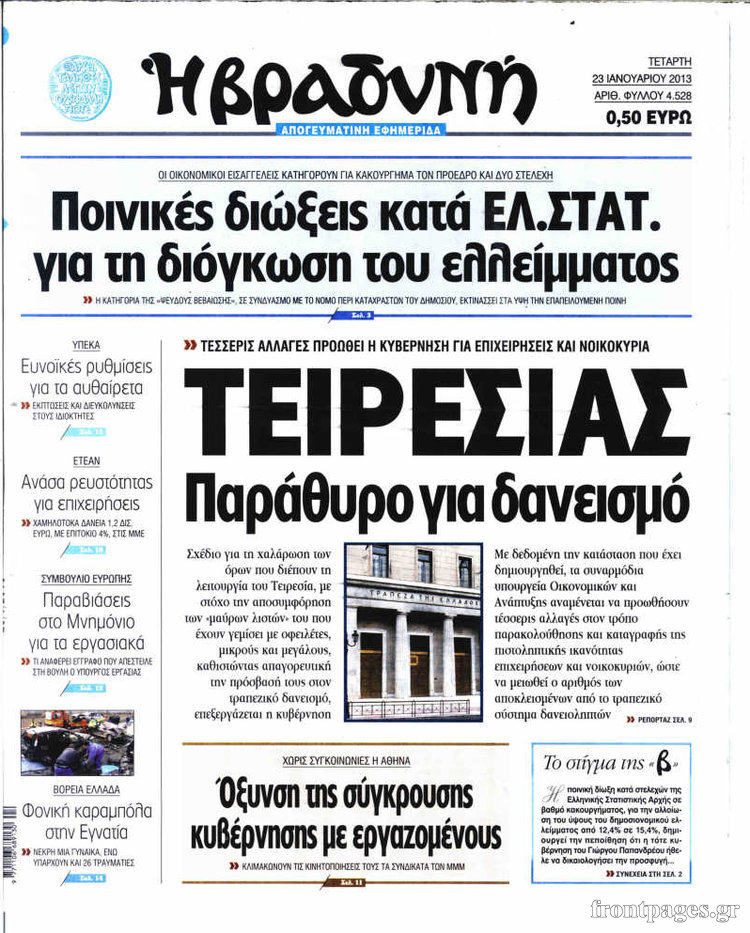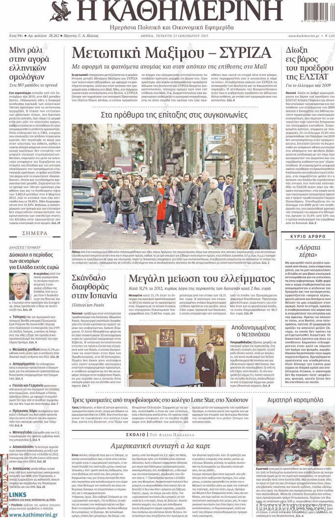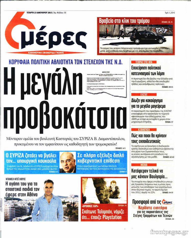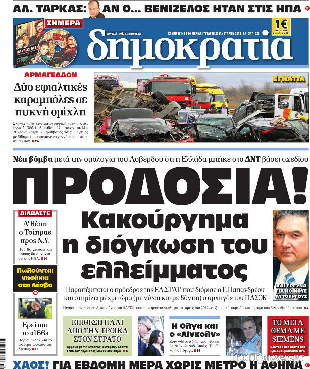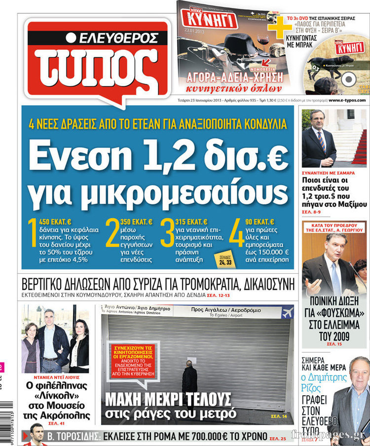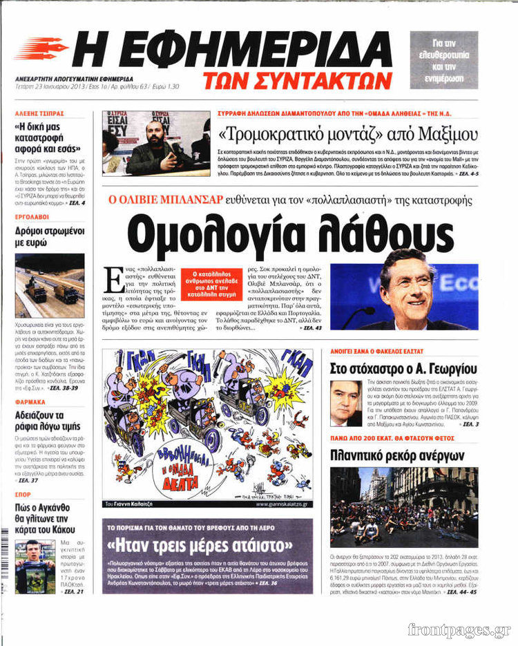 Οι πολιτικές εφημερίδες Enikos Newsroom 08:51, Τετάρτη 23 Ιανουαρίου 2013 Media Οι πολιτικές εφημερίδες ΕΦΗΜΕΡΙΔΕΣ ΕΦΗΜΕΡΙΔΕΣ ΠΡΩΤΟΣΕΛΙΔΑ ΠΟΛΙΤΙΚΕΣ ΕΦΗΜΕΡΙΔΕΣ Μοιράσου το: σχολίασε κι εσύ (0 σχόλια) Ακολουθήστε το enikos.gr στο Google News και μάθετε πρώτοι όλες τις ειδήσεις Δείτε όλες τις τελευταίες ειδήσεις από την Ελλάδα και τον Κόσμο στο enikos.gr Ειδήσεις Ροή Ειδήσεων 1 ώρα πριν Σίδνεϊ: Τουλάχιστον 10 νεκροί και 16 τραυματίες σε ένοπλη επίθεση – Βίντεο από «ήρωα» περαστικό που αφόπλισε έναν δράστη 1 ώρα πριν Σκληραίνουν τη στάση τους οι αγρότες: Αποφασίζουν τις δράσεις της εβδομάδας – Αύριο το συλλαλητήριο στα δικαστήρια της Λάρισας 2 ώρες πριν Στιγμές τρόμου για επιβάτες λεωφορείου στη Θεσσαλονίκη: Ο οδηγός πέρασε με κόκκινο σε σιδηροδρομική διάβαση ενώ ερχόταν τρένο και έσπασε την μπάρα 3 ώρες πριν Κυριάκος Μητσοτάκης μετά το «όχι» των αγροτών: Διάλογος δεν γίνεται με τελεσίγραφα και οι λύσεις προκύπτουν μόνο από συζήτηση 6 ώρες πριν ΟΠΕΚΕΠΕ – Κρήτη: Στην Ευρωπαϊκή Εισαγγελία οι 15 από τους 16 συλληφθέντες για τις παράνομες επιδοτήσεις 1 ώρα πριν Προπονήτρια ευεξίας που έχασε 24 κιλά αποκαλύπτει: «Αυτά είναι τα 6 ανησυχητικά σημάδια της υψηλής κορτιζόλης» 3 ώρες πριν Η ζωή γίνεται πολύ καλύτερη για 3 ζώδια – «Ίσως έχει έρθει η ώρα να κάνετε μια πραγματική και μόνιμη αλλαγή» 2 ώρες πριν Τα 8 πράγματα που τα ευτυχισμένα ζευγάρια δεν κάνουν ποτέ μπροστά στα παιδιά τους 4 ώρες πριν Ξέσπασε σε κλάματα με το χριστουγεννιάτικο δώρο του άνδρα της – «Μου είπε ότι είμαι το πιο αχάριστο άτομο που έχει γνωρίσει» 5 λεπτά πριν Ηλεία: Σοκ στην Οινόη με τον θάνατο 33χρονου – Εντοπίστηκε νεκρός στην αυλή του σπιτιού του 13 λεπτά πριν Ισραήλ: Κατηγορεί την κυβέρνηση της Αυστραλίας ότι δεν προστάτευσε την εβραϊκή κοινότητα – «Τους είχαμε προειδοποιήσει για πιθανές επιθέσεις» 24 λεπτά πριν Γιάννης Μπρατάκος: «Ο διάλογος δεν είναι επιλογή, είναι ευθύνη» 32 λεπτά πριν Θρίλερ στην Ηλεία: Κυνηγός εντόπισε ανθρώπινη σορό – Εξετάζεται αν πρόκειται για 63χρονο αγνοούμενο 40 λεπτά πριν Ρωσία: Κατέλαβε το χωριό Βαρβαρίβκα στην Ανατολική Ουκρανία, σύμφωνα με το υπουργείο Άμυνας ENIKOS NETWORK Σπλαχνικό λίπος: 3 υδατάνθρακες που μπορεί να σας βοηθήσουν να το χάσετε, σύμφωνα με ειδικό «Πίσω από τις ειδήσεις υπάρχουν άνθρωποι»- Η υπόθεση του δότη σπέρματος και το όριο της ενημέρωσης Ψηφιακό δελτίο αποστολής ελαιοκάρπου – Η νέα ημερομηνία έναρξης Επενδυτική έκρηξη στον κλάδο των Σούπερ Μάρκετ – Τι σχεδιάζουν οι «μεγάλοι» της αγοράς Σύγχρονος Νοστράδαμος: Προειδοποιεί για «μεγάλο γεγονός» τους επόμενους μήνες που θα συγκλονίσει τη Βρετανία και τον κόσμο Τεστ παρατηρητικότητας: Μπορείτε να βρείτε τις 3 διαφορές στις εικόνες με έναν πιγκουίνο σε 14 δευτερόλεπτα περισσότερα 12:46 , Κυριακή 14 Δεκεμβρίου 2025 Η Realnews στο www.pressreader.com Διαβάστε την ψηφιακή έκδοση της εφημερίδας στην οθόνη του κινητού, του tablet και του υπολογισ... 10:07 , Κυριακή 14 Δεκεμβρίου 2025 Η γη της ελιάς: Η αρχή του τέλους του Δημοσθένη πλησιάζει Η δραματική σειρά του MEGA «Η γη της ελιάς» επιφυλάσσει ακόμα μεγαλύτερες ανατροπές. Κάθε επει... 08:15 , Κυριακή 14 Δεκεμβρίου 2025 Σήμερα με τη Realnews: Food & Travel μαζί Beaute και Μαστορέματα Σήμερα με τη Realnews: Food & Travel μαζί Beaute και Μαστορέματα Food & Travel Ετοιμάζ... 07:46 , Κυριακή 14 Δεκεμβρίου 2025 Σήμερα με τη Realnews: Σκάναρε & κέρδισε με το PaduApp Τo κορυφαίο app επιβράβευσης στην Ελλάδα που σε ανταμείβει για κάθε αγορά! Κέρδισε με 3 μόνο β..