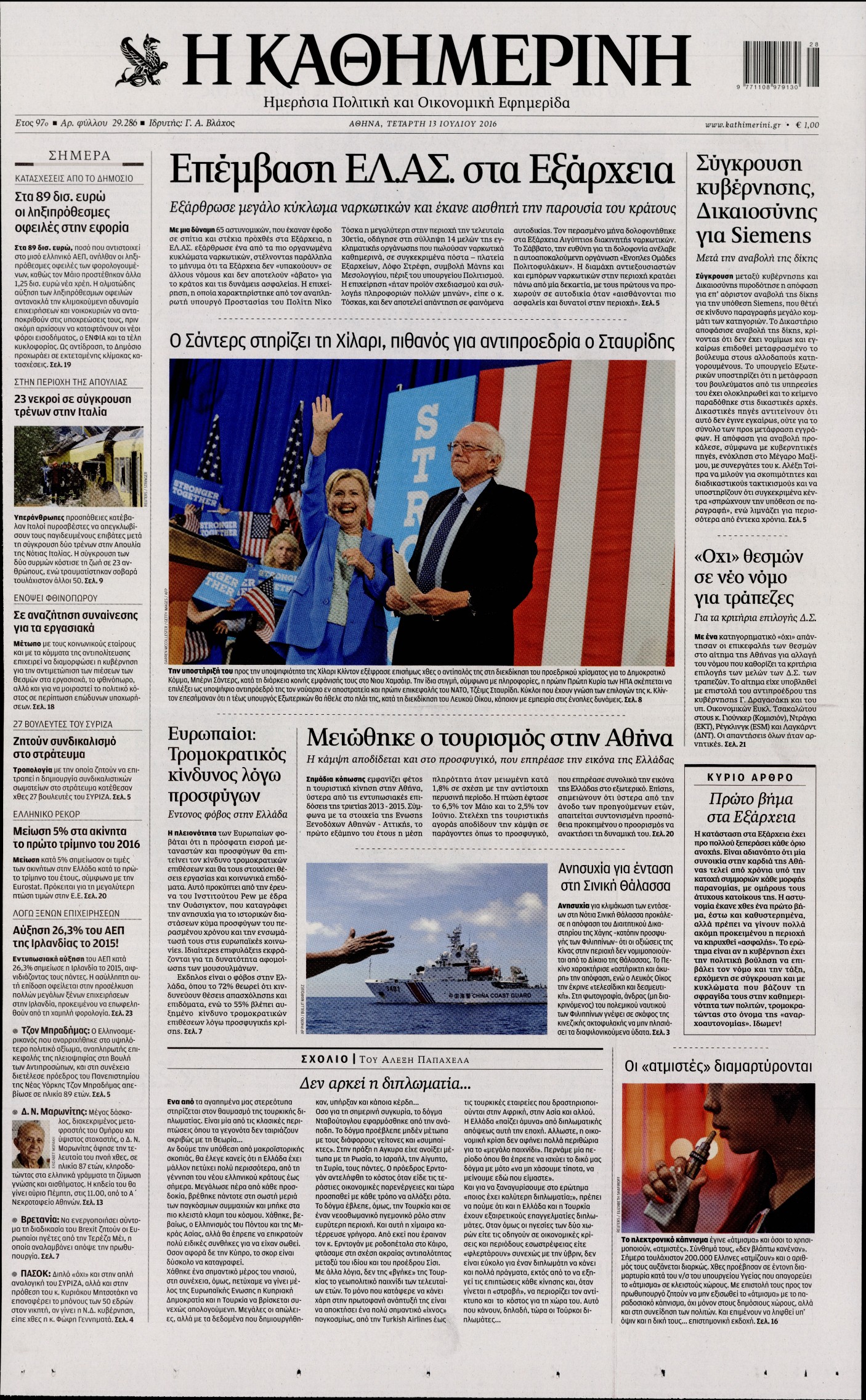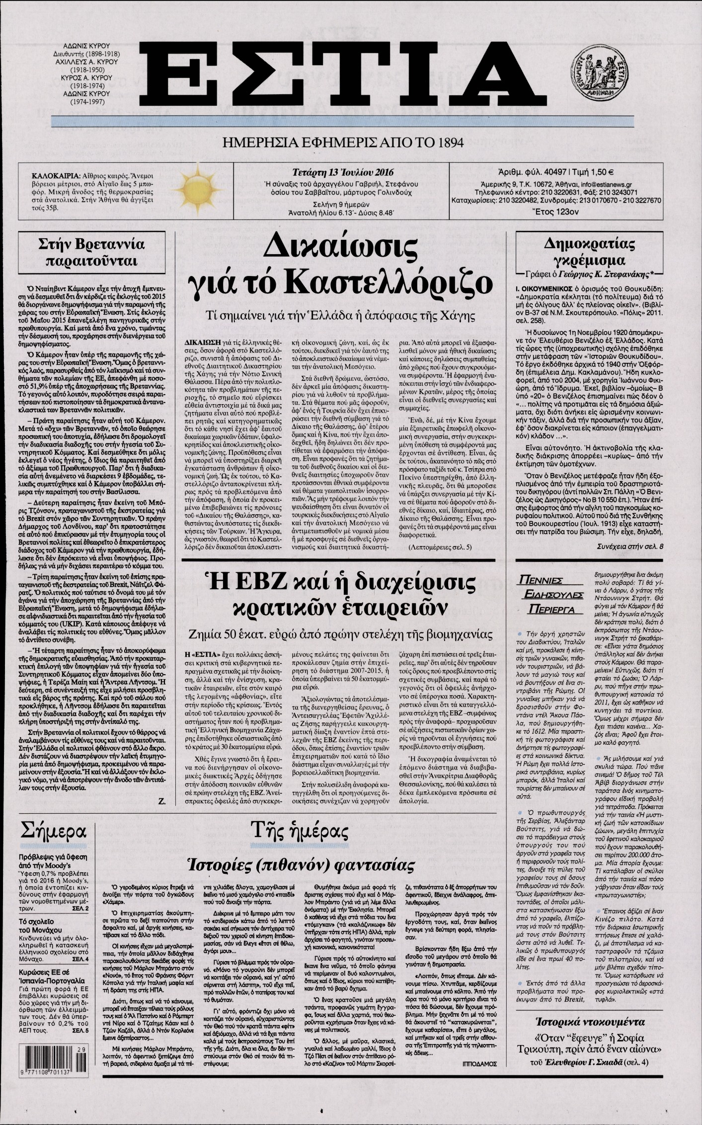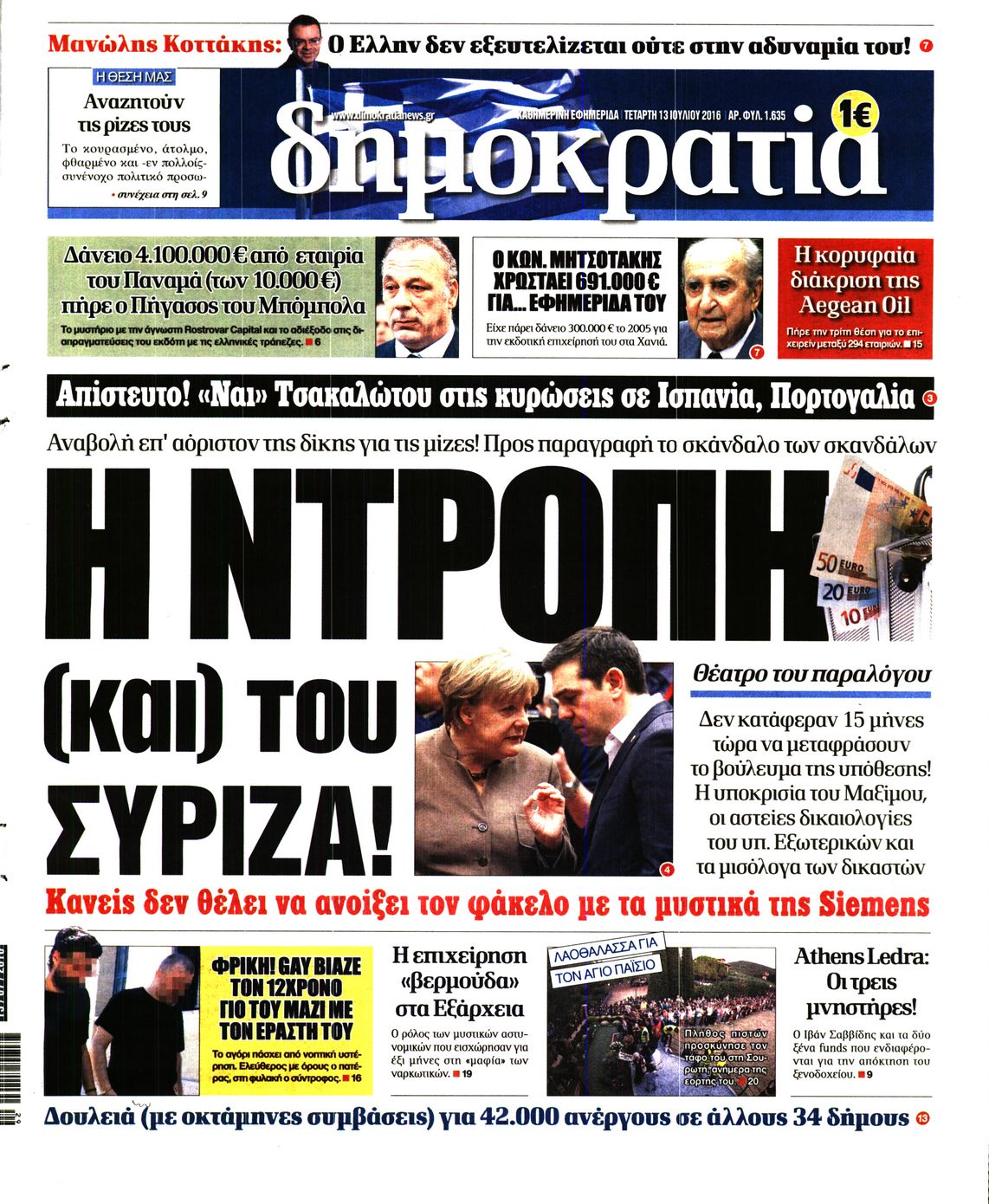Οι πολιτικές εφημερίδες 13/7/2016 Enikos Newsroom 04:42, Τετάρτη 13 Ιουλίου 2016 Media Διαβάστε τα σημερινά πρωτοσέλιδα των πολιτικών εφημερίδων: ΟΙΚΟΝΟΜΙΚΕΣ ΕΦΗΜΕΡΙΔΕΣ ΠΡΩΤΟΣΕΛΙΔΑ Μοιράσου το: σχολίασε κι εσύ (0 σχόλια) Ακολουθήστε το enikos.gr στο Google News και μάθετε πρώτοι όλες τις ειδήσεις Δείτε όλες τις τελευταίες ειδήσεις από την Ελλάδα και τον Κόσμο στο enikos.gr Ειδήσεις Ροή Ειδήσεων 44 λεπτά πριν Χίος: 15 νεκροί και πολλοί τραυματίες μετά το σοβαρό επεισόδιο Λιμενικού και σκάφους διακινητών 2 ώρες πριν Δολοφονία στη Νέα Πέραμο: Στο «μικροσκόπιο» των Αρχών η τεράστια περιουσία του 27χρονου – Η κατάθεση της συντρόφου του και όσα λένε συγγενικά του πρόσωπα 1 ώρα πριν Υπόθεση Επστάιν: Η σαπίλα που αναδύεται έχει βαθιές ρίζες – Η Αμερική πρέπει τώρα να αναρωτηθεί αν μπορεί να ξεπεράσει μια κουλτούρα ντροπής 1 ώρα πριν Πέπλο μυστηρίου γύρω από την εξαφάνιση της 16χρονης Λόρας – Ο άνδρας που βρέθηκε μαζί της στην πτήση, ο «αυταρχικός» πατέρας και η αντίδραση του αδελφού της 4 ώρες πριν Κλειστό για τρεις ημέρες το Ειδικό Σχολείο Σάμου: «Κάθε έλλειψη είναι κίνδυνος», λένε οι γονείς – Τι υποστηρίζει ο Δήμος 2 ώρες πριν «Χρυσή» αρχαιολογική ανακάλυψη σε χωριό – Βρέθηκε αριστοκρατικός οικισμός σε κτήματα θρυλικού βασιλιά 4 ώρες πριν Πώς να προσελκύσετε πλούτο, ανάλογα με τον μήνα γέννησής σας 5 ώρες πριν Οι άνδρες που δεν σταματούν ποτέ να κάνουν τις γυναίκες τους να νιώθουν ξεχωριστές, έχουν συνήθως αυτά τα 4 ιδιαίτερα χαρακτηριστικά 6 ώρες πριν Air fryer: Η απλή μέθοδος καθαρισμού για να απαλλαγείτε από τη βρωμιά σε 2 λεπτά χωρίς τρίψιμο 1 λεπτό πριν Λιβύη: Δολοφονήθηκε ο γιος του Μουαμάρ Καντάφι, Σαΐφ αλ Ισλάμ – Αραβικές πηγές αναφέρουν ότι πυροβολήθηκε στον κήπο του 9 λεπτά πριν Τηλεφωνική επικοινωνία Κιρ Στάρμερ – Ντόναλντ Τραμπ για Ουκρανία και ρωσικά πλήγματα σε ενεργειακές υποδομές 25 λεπτά πριν Εργκίν Αταμάν: Τα έβαλε με τους δημοσιογράφους έξω από τα αποδυτήρια: «Συνεχίστε να γράφετε…» 41 λεπτά πριν Η Άρσεναλ προκρίθηκε στον τελικό του League Cup με δεύτερη νίκη επί της Τσέλσι 44 λεπτά πριν Χίος: 15 νεκροί και πολλοί τραυματίες μετά το σοβαρό επεισόδιο Λιμενικού και σκάφους διακινητών ENIKOS NETWORK Κρίση άγχους: Το πρώτο πράγμα που προτείνει ένας ψυχοθεραπευτής να κάνετε για να ηρεμήσετε Άδωνις Γεωργιάδης: Σε app για το κινητό τηλέφωνο το Εθνικό Μητρώο Νεοπλασιών ΕΑΕΕ: Άνοδος στην παραγωγή ασφαλίστρων το ενδεκάμηνο του 2025 – Τι δείχνουν τα στοιχεία Κενές περισσότερες από 70.000 θέσεις εργασίας στον γεωργικό τομέα – «Περίπου το 10% του καρπού της ελιάς έχει μείνει στα δέ... Ευπάθεια στο moltbook ai αποκαλύπτει email, tokens σύνδεσης και api keys Αυτός είναι ο ρόλος της μικρής τρύπας στους νυχοκόπτες – «Είμαι ο μόνος που δεν το ήξερε;»» περισσότερα 21:33 , Τρίτη 03 Φεβρουαρίου 2026 Porto Leone: Στη γειτονιά με τα κόκκινα φανάρια – Η Ασημίνα αποκαλύπτει στην Αλεξάνδρα την εγκυμοσύνη της Λένας Η μεγάλη δραματική σειρά του Apha «Porto Leone: Στη γειτονιά με τα κόκκινα φανάρια» επιστρέφει... 19:52 , Τρίτη 03 Φεβρουαρίου 2026 Να μ’ αγαπάς: Ο Θεόφιλος ζητά από την Σοφία να φύγει από το σπίτι Στο σπίτι των Καλλιγά, τα αληθινά αποτελέσματα DNA επιβεβαιώνουν ότι η Εβίτα είναι κόρη του Θε... 10:57 , Τρίτη 03 Φεβρουαρίου 2026 Ακούστε το σχόλιο του Νίκου Χατζηνικολάου 3/2/2026 Ακούστε το σχόλιο του Νίκου Χατζηνικολάου στον ραδιοφωνικό σταθμό Realfm 97,8, την Τρίτη 3 Φεβ... 10:42 , Τρίτη 03 Φεβρουαρίου 2026 Τηλεθέαση (2/2): Ανατροπή στους πίνακες για την πρωινή ψυχαγ