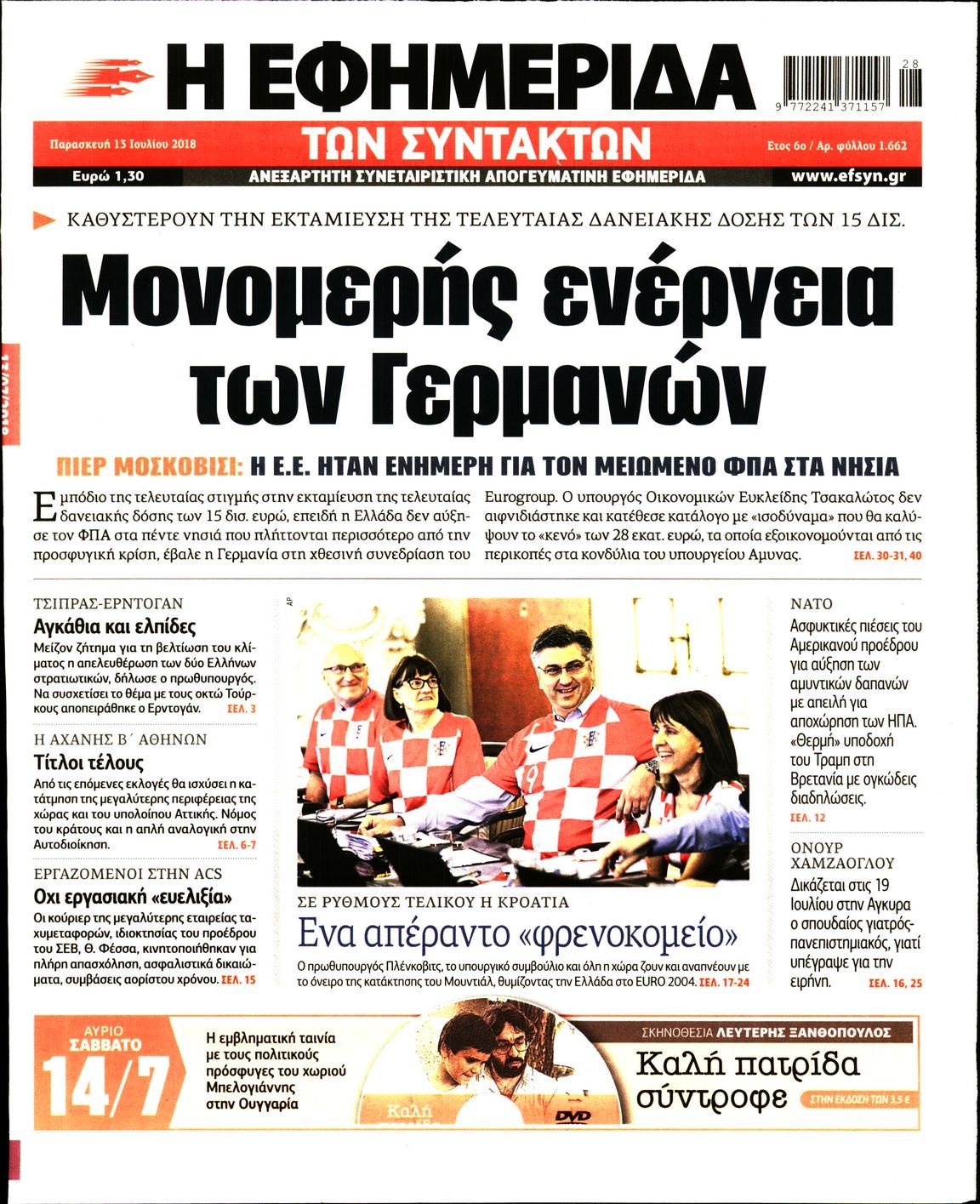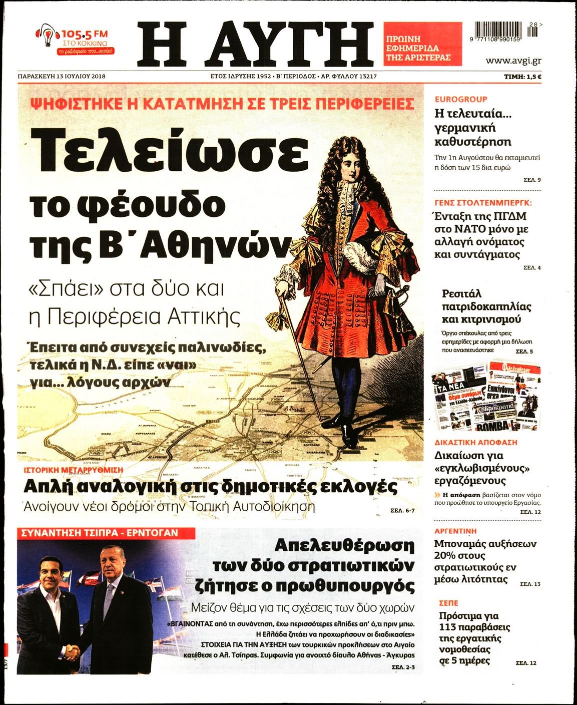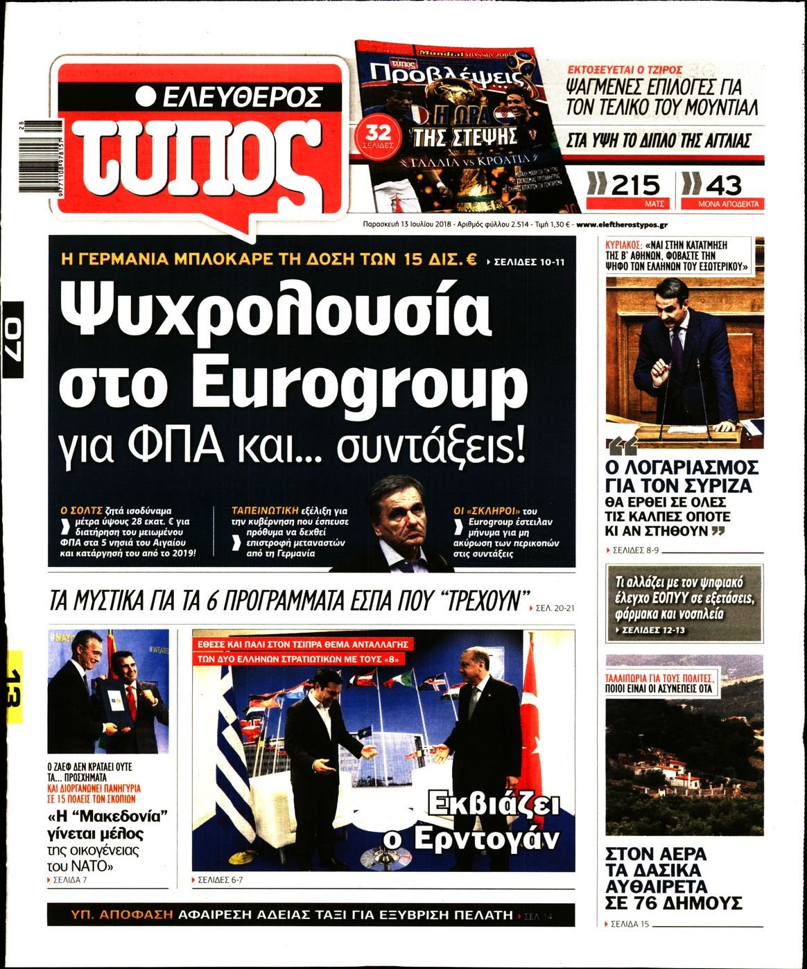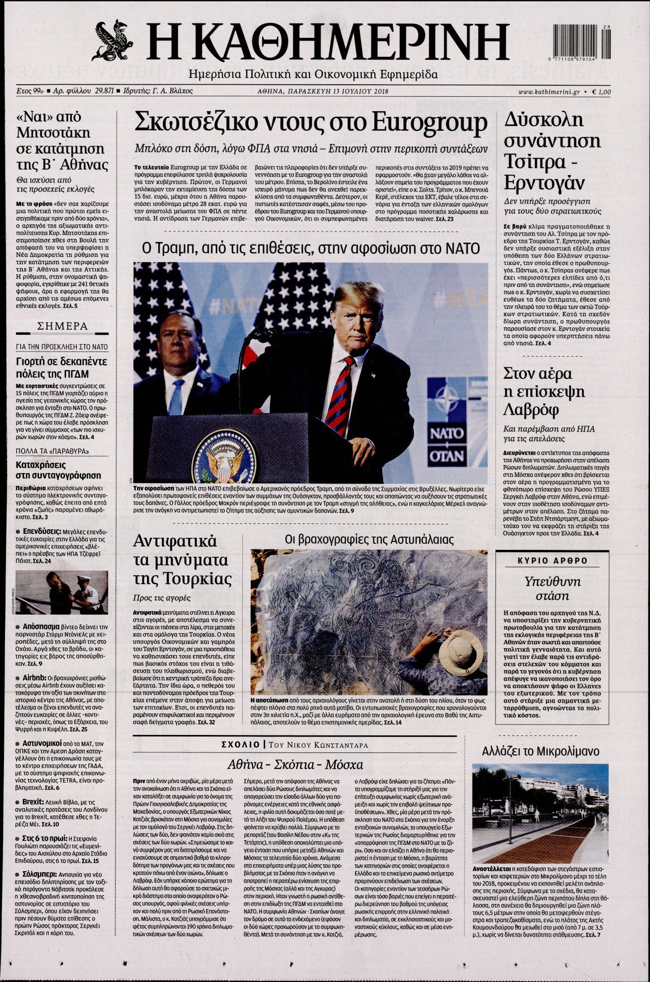 Οι πολιτικές εφημερίδες 13/7/2018 Enikos Newsroom 06:17, Παρασκευή 13 Ιουλίου 2018 Media Διαβάστε τα σημερινά πρωτοσέλιδα των πολιτικών εφημερίδων. ΠΟΛΙΤΙΚΕΣ ΕΦΗΜΕΡΙΔΕΣ ΠΡΩΤΟΣΕΛΙΔΑ Μοιράσου το: σχολίασε κι εσύ (0 σχόλια) Ακολουθήστε το enikos.gr στο Google News και μάθετε πρώτοι όλες τις ειδήσεις Δείτε όλες τις τελευταίες ειδήσεις από την Ελλάδα και τον Κόσμο στο enikos.gr Ειδήσεις Ροή Ειδήσεων 2 ώρες πριν Ζελένσκι: Μόνο οι ΗΠΑ και ο Τραμπ μπορούν να πιέσουν τη Ρωσία να βάλει τέλος στον πόλεμο 2 ώρες πριν Φοινικούντα: Προφυλακιστέος ο 30χρονος για συνέργεια στη διπλή δολοφονία – Και άλλα πρόσωπα στο «μικροσκόπιο» 3 ώρες πριν Κυριάκος Μητσοτάκης: Στην Ιερουσαλήμ την Τρίτη ο Πρωθυπουργός για την τριμερή Ελλάδας, Κύπρου, Ισραήλ – Θα συναντηθεί και με τον Αμπάς 6 ώρες πριν Πώς δρούσε το κύκλωμα που διακινούσε ναρκωτικά σε σχολεία – Υπέβαλαν σε βασανιστήρια όσους δεν τηρούσαν τους «κανόνες πειθαρχίας» 3 ώρες πριν Πάπας Λέων: Όταν έχει αϋπνίες επενδύει παραγωγικά τον χρόνο του – Ποιο παιχνίδι παίζει στο κινητό 2 ώρες πριν Αριθμολογία: Ο αριθμός του φύλακα αγγέλου σας, με βάση τον μήνα γέννησής σας – «Έτσι σας στέλνει σημάδια το σύμπαν» 3 ώρες πριν Πώς να απαλλαγείτε από τη μυρωδιά του τηγανητού φαγητού: Το μυστικό βρίσκεται στην κουζίνα σας 4 ώρες πριν Μήπως οι γιορτές σας δεν είναι τόσο τέλειες; 7 χριστουγεννιάτικες συνήθειες που μαρτυρούν ότι μια οικογένεια είναι δυσλειτουργική 14 ώρες πριν Enerwave: Το νέο «ρεύμα» στη λιανική ενέργειας που αλλάζει την εμπειρία του καταναλωτή 9 λεπτά πριν Χριστούγεννα στα μπλόκα οι αγρότες: Άνοιξαν στα διόδια και μοίρασαν προϊόντα στους πολίτες – Νέα σύσκεψη την Κυριακή στη Νίκαια 19 λεπτά πριν Ολυμπιακός – Κηφισιά 1-1: Δεύτερη σερί ισοπαλία για τους Ερυθρόλευκους – Υπό… αμφισβήτηση η κορυφή της Super League 30 λεπτά πριν Κύκλωμα διακίνησης ναρκωτικών σε σχολεία: Τηλεφωνούσαν στους ανηλίκους την ώρα του μαθήματος – Οι διάλογοι-σοκ, τα «ψευδώνυμα» και τα βασανιστήρια 39 λεπτά πριν Χαβιέρ Μιλέι: Ο πρόεδρος της Αργεντινής χαιρετίζει την «πίεση των ΗΠΑ» στη Βενεζουέλα 46 λεπτά πριν Ξένια Τσίρκοβα: Έμαθε από την τηλεόραση ότι είναι η μεγάλη νικήτρια του GNTM – Η αντίδρασή της – ΒΙΝΤΕΟ ENIKOS NETWORK Οι γυναίκες αποκαλύπτουν το πιο ελκυστικό πράγμα που μπορεί να κάνει ένας άνδρας Ομορφιά και αντιγήρανση: Ειδικοί μιλούν για συσκευές περιποίησης του δέρματος Ακύρωση ΑΦΜ για απάτες – Ποιους βάζει στο στόχαστρο η ΑΑΔΕ Ρεύμα: Πώς μπορείτε να αλλάξετε πάροχο γρήγορα και εύκολα – Τα βήματα της διαδικασίας Χαρτογραφώντας το «σημείο χωρίς επιστροφή»: Για πρώτη φορά αποκαλύπτεται με λεπτομέρεια το ακανθώδες όριο της ατμόσφαιρας τ... Η Google καταργεί τη λειτουργία «dark web report» – Πώς θα μπορούν οι χρήστες να διαγράφουν τα δεδομένα τους περισσότερα 20:30 , Σάββατο 20 Δεκεμβρίου 2025 Αυτή την Κυριακή με τη Realnews: Instyle, μαζί Drive και Realnews Geopolitics Αυτή την Κυριακή με τη Realnews: Instyle, μαζί Drive και Realnews Geopolitics Instyle Η Άννα Ρ... 20:28 , Σάββατο 20 Δεκεμβρίου 2025 Ο ΑΝΤ1 γεμίζει τις γιορτές με μουσική – Ποιους καλλιτέχνες θα απολαύσουμε Φέτος στον ΑΝΤ1 γιορτάζουμε τις νύχτες μας παρέα με αγαπημένους καλλιτέχνες και μεγάλες μουσι... 18:19 , Σάββατο 20 Δεκεμβρίου 2025 HOTΕΛ ΕΛVIRA: Η Ελβίρα μαθαίνει πως ο Χάρι μένει κρυφά στο ξενοδοχείο του Παντελή Συνεχίζονται οι εκλογές για πρόεδρο, στο νέο επεισόδιο της κωμικής σειράς του MEGA, HOTΕΛ ΕΛVI... 14:04 , Σάββατο 20 Δεκεμβρίου 2025 Η Realnews αυτής της Κυριακής (21/12/2025) Με τίτλο: «Ασπίδα προστ