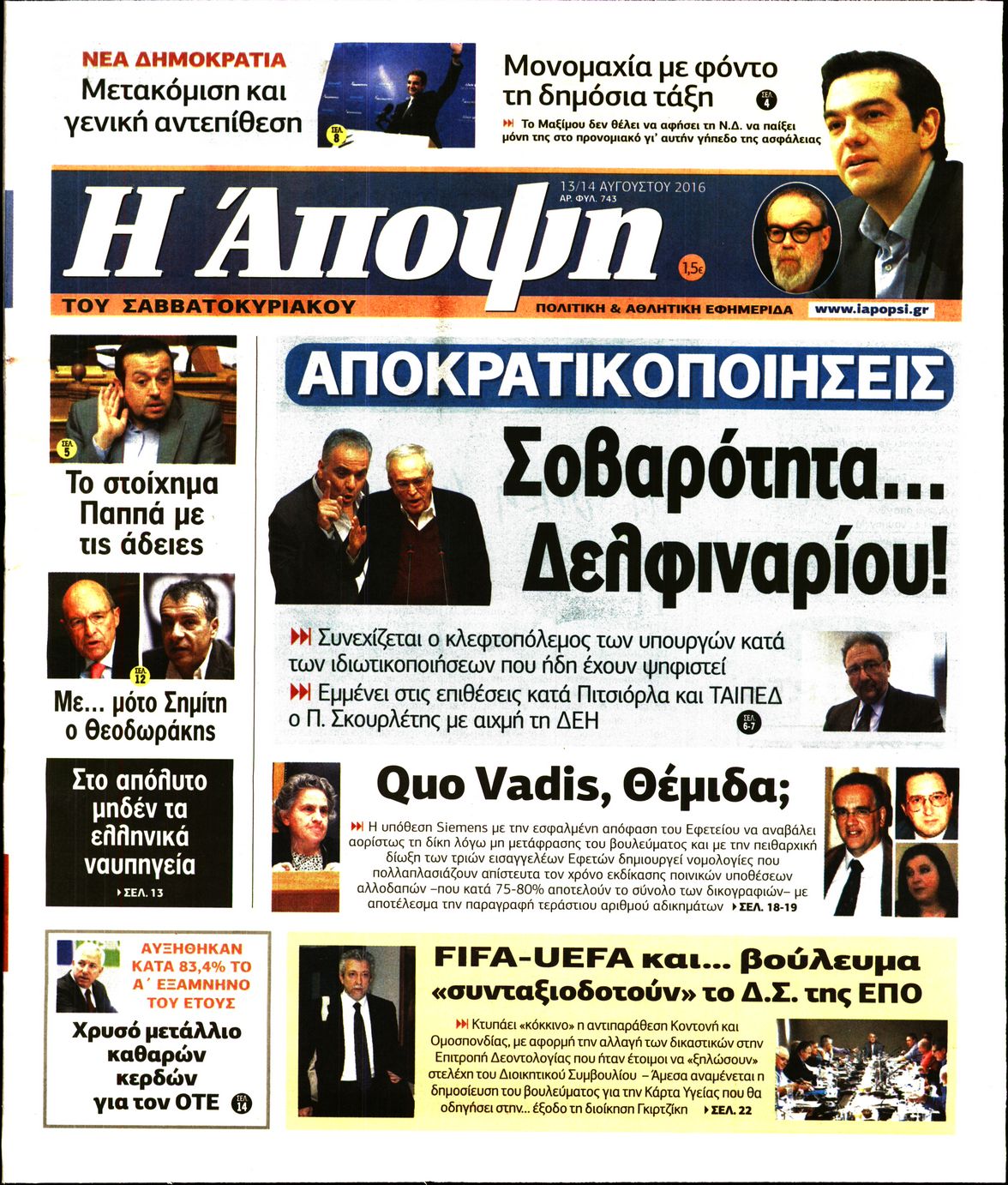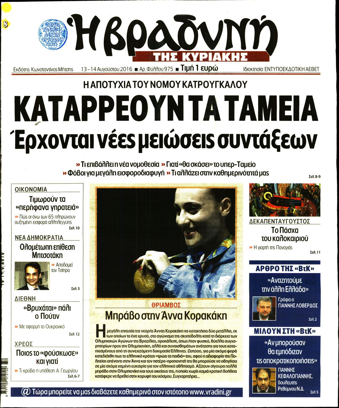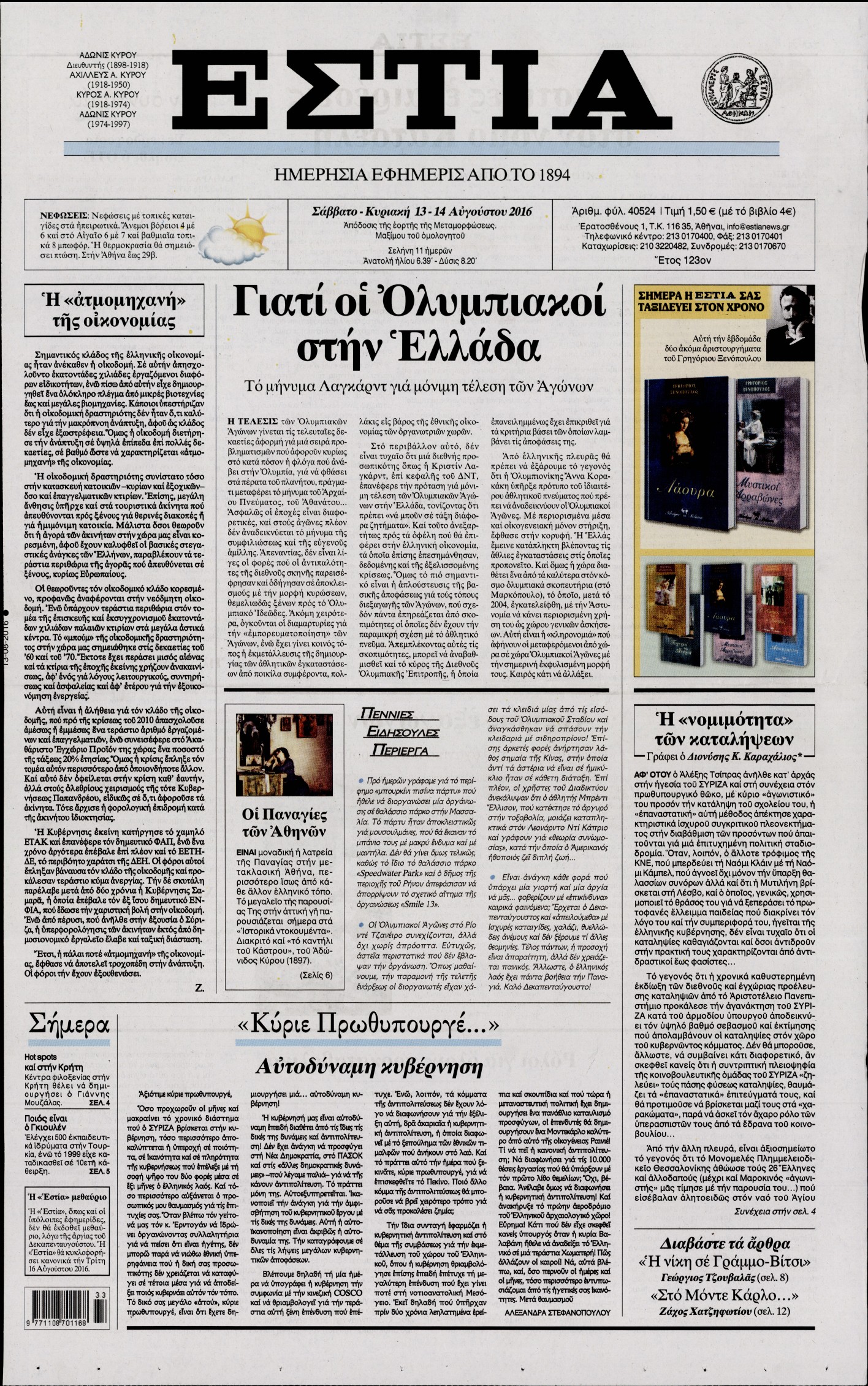 Οι πολιτικές εφημερίδες 13/8/2016 Enikos Newsroom 05:21, Σάββατο 13 Αυγούστου 2016 Media Διαβάστε τα σημερινά πρωτοσέλιδα των πολιτικών εφημερίδων: ΠΟΛΙΤΙΚΕΣ ΕΦΗΜΕΡΙΔΕΣ ΠΡΩΤΟΣΕΛΙΔΑ Μοιράσου το: σχολίασε κι εσύ (0 σχόλια) Ακολουθήστε το enikos.gr στο Google News και μάθετε πρώτοι όλες τις ειδήσεις Δείτε όλες τις τελευταίες ειδήσεις από την Ελλάδα και τον Κόσμο στο enikos.gr Ειδήσεις Ροή Ειδήσεων 2 ώρες πριν Εκτός ευρωομάδας ΣΥΡΙΖΑ ο Νίκος Παππάς μετά την επίθεση στον δημοσιογράφο Νίκο Γιαννόπουλο – Η μήνυση και οι νέες δηλώσεις 2 ώρες πριν «Αγριεύουν» οι αγρότες: «Δεν συντρέχει λόγος συνάντησης με τον πρωθυπουργό» – Ώρα αποφάσεων στη σύσκεψη της Πέμπτης 2 ώρες πριν Κυψέλη: Χωρίς την οικογένειά της δίπλα της απολογήθηκε η 16χρονη – «Της είχε επιτεθεί κάποιος για να την βιάσει, φοβήθηκε και κυκλοφορούσε με μαχαίρι» 1 ώρα πριν Politico: Το πρόβλημα της Ευρώπης δεν είναι το Βέλγιο αλλά ο Ντόναλντ Τραμπ 3 ώρες πριν Αλεξανδρούπολη: Πολυοργανική ανεπάρκεια λόγω υποσιτισμού η αιτία θανάτου του 3χρονου αγοριού 2 ώρες πριν Μυστήριο με τεράστιες κυκλικές πέτρες 200 κιλών – Ανακαλύφθηκαν τυχαία κατά τη διάρκεια οδικών έργων και κανείς δεν ξέρει από πού προέρχονται 3 ώρες πριν Ύπνος: Ειδικός εξηγεί τον πραγματικό λόγο που ξυπνάτε στις 4 τα ξημερώματα – Ο ρόλος των ορμονών και του κιρκάδιου ρυθμού 4 ώρες πριν Αριθμολογία: Οι άνθρωποι που έχουν γεννηθεί αυτές τις 4 ημερομηνίες, είναι τρυφεροί και αγαπούν ανιδιοτελώς 15 ώρες πριν 20 χρόνια τα Χριστούγεννα ξεκινούν στα Public με μεγάλη ποικιλία σε δώρα! 12 λεπτά πριν Βέλγους πολιτικούς και επικεφαλής χρηματοπιστωτικών ιδρυμάτων στοχοποιεί η Μόσχα για τα κατασχεθέντα περιουσιακά στοιχεία 27 λεπτά πριν ΗΠΑ: Αναζητείται δεύτερος ύποπτος για την επίθεση στο πανεπιστήμιο Μπράουν 42 λεπτά πριν Λεωφόρος Αλεξάνδρας: Δεν εντοπίστηκε βόμβα έξω από το κολλέγιο – Προσήχθη άνδρας για το προειδοποιητικό σημείωμα 59 λεπτά πριν Ελένη Κρίτα για το reunion του «Παρά Πέντε»: «Ήταν πραγματικά σαν να μην είχαμε χαθεί ποτέ» 1 ώρα πριν Κύπελλο Ελλάδας: Αυτά είναι τα ζευγάρια στα νοκ-άουτ, οι διασταυρώσεις στους «8» κι ο δρόμος προς τον τελικό ENIKOS NETWORK Αϋπνία: Το κόλπο που θα σας βοηθήσει να κοιμηθείτε απόψε – Είναι απλό και έχει αποτέλεσμα 2,6 εκατομμύρια πολίτες έχουν ήδη εμβολιαστεί κατά της γρίπης ΕΛΣΤΑΤ: Τι δείχνουν τα νέα στοιχεία για τις ηλεκτρονικές παραγγελίες των επιχειρήσεων ΚΕΠΕ: Οι 3 διακριτές συμβολές των ΜμΕ και της μεταποίησης στην ελληνική οικονομία Χαρτογραφώντας το «σημείο χωρίς επιστροφή»: Για πρώτη φορά αποκαλύπτεται με λεπτομέρεια το ακανθώδες όριο της ατμόσφαιρας τ... Η Google καταργεί τη λειτουργία «dark web report» – Πώς θα μπορούν οι χρήστες να διαγράφουν τα δεδομένα τους περισσότερα 22:24 , Τετάρτη 17 Δεκεμβρίου 2025 Το Σπίτι Δίπλα Στο Ποτάμι: Σε κίνδυνο η υγεία του Απόστολου – Τι θα δούμε απόψε “Το Σπίτι Δίπλα στο Ποτάμι” ξετυλίγει το νήμα της ζωής των πέντε αδελφών με καταισ... 21:14 , Τετάρτη 17 Δεκεμβρίου 2025 Παιχνίδια Εκδίκησης: Θα καταφέρει ο Χρήστος να κλονίσει την εμπιστοσύνη της Μάγιας απέναντι στον Άγη; Τα «Παιχνίδια Εκδίκησης» έρχονται απόψε στις 22:30, στον Αντ1, με το τελευταίο επεισόδιο της χ... 20:57 , Τετάρτη 17 Δεκεμβρίου 2025 Άγιος Έρωτας: Η Χλόη καταθέτει εναντίον του πατέρα της και ο Χάρης αποκαλύπτει στον Κλεάνθη ότι δεν είναι ο βιολογικός του πατέρας. Γεμάτο αποκαλύψεις είναι το νέο επεισόδιο της σειράς “Άγιος Έρωτας” απόψε στις 21:... 20:15 , Τετάρτη 17 Δεκεμβ