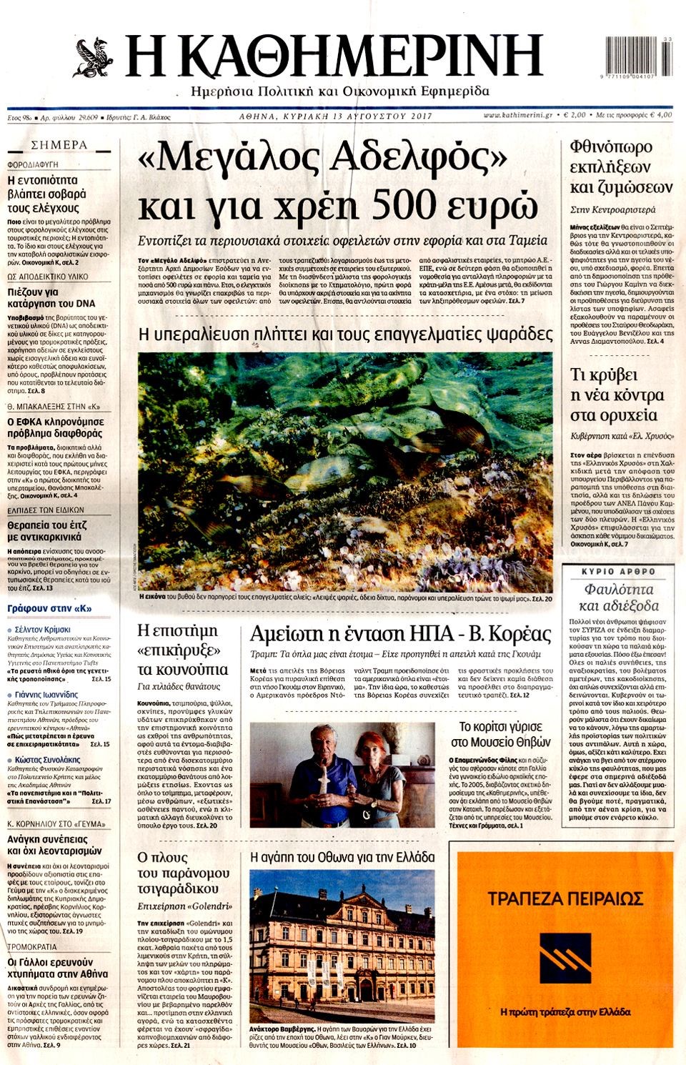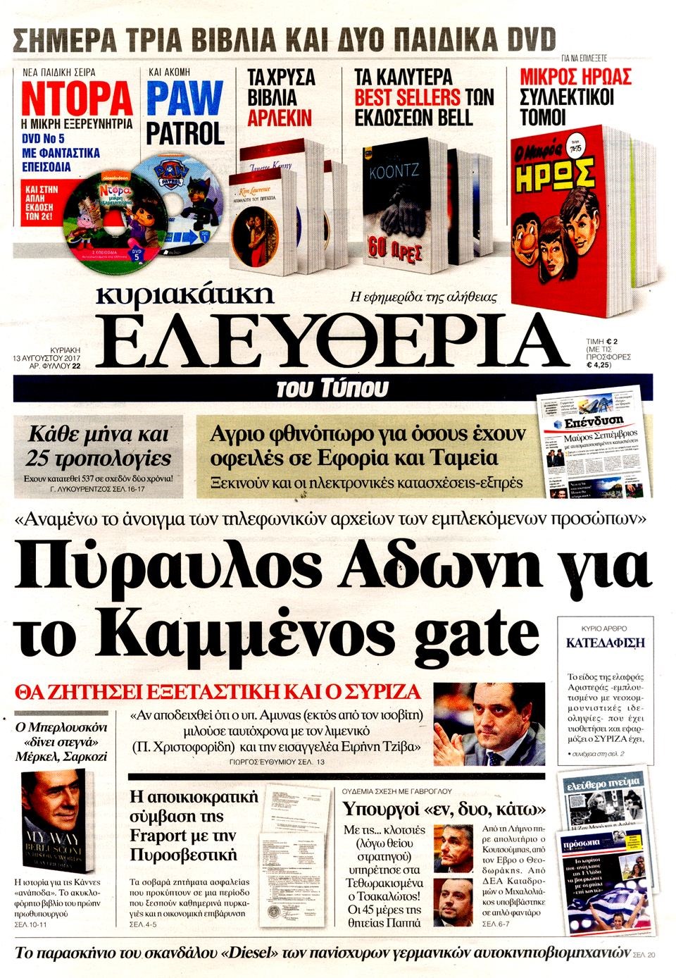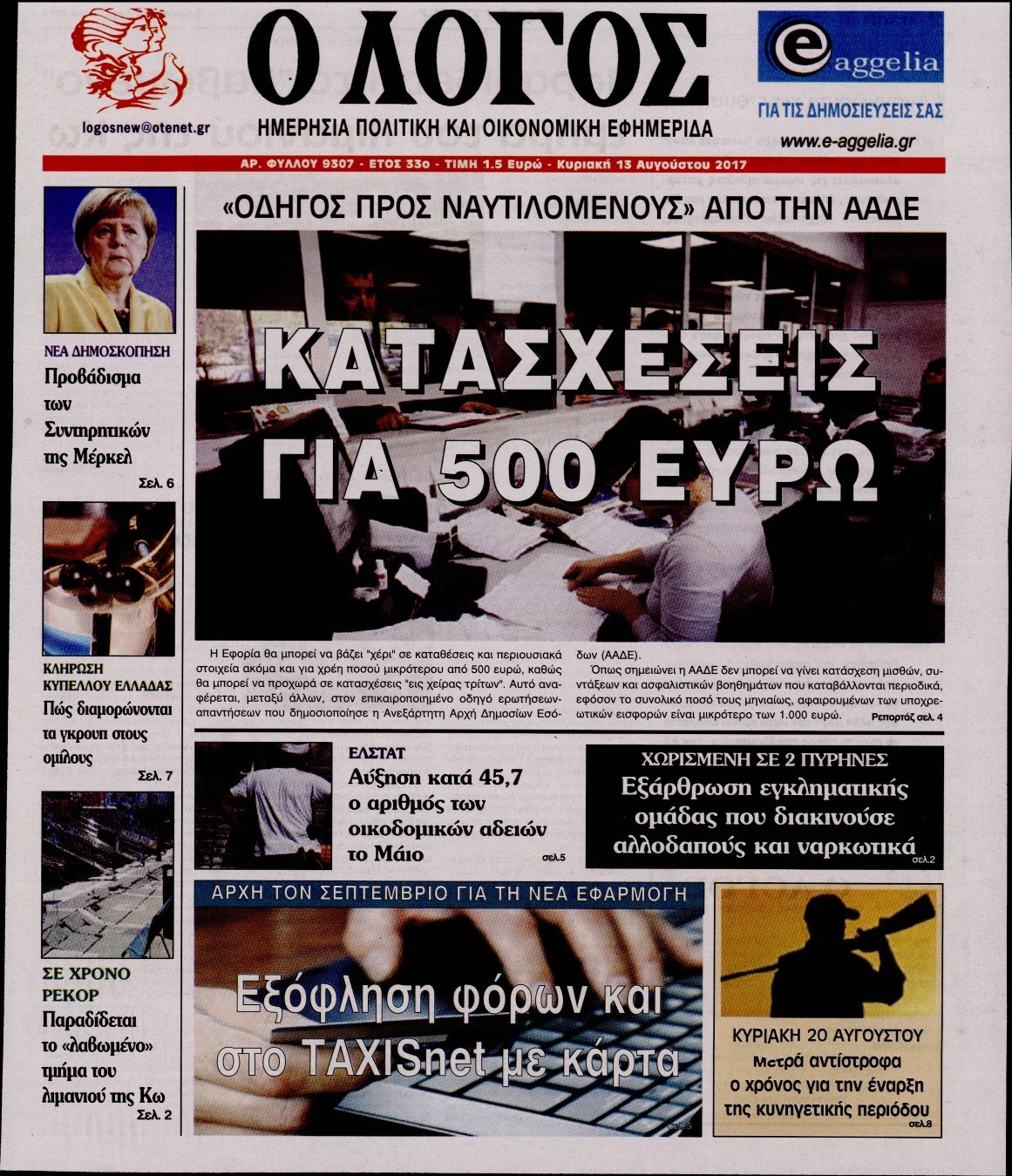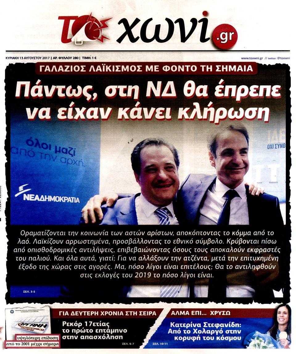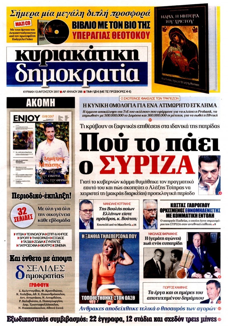 Οι πολιτικές εφημερίδες 13/8/2017 Κώστας Τεό 07:04, Κυριακή 13 Αυγούστου 2017 Media Διαβάστε τα σημερινά πρωτοσέλιδα των πολιτικών εφημερίδων: ΠΟΛΙΤΙΚΕΣ ΕΦΗΜΕΡΙΔΕΣ ΠΡΩΤΟΣΕΛΙΔΑ Μοιράσου το: σχολίασε κι εσύ (0 σχόλια) Ακολουθήστε το enikos.gr στο Google News και μάθετε πρώτοι όλες τις ειδήσεις Δείτε όλες τις τελευταίες ειδήσεις από την Ελλάδα και τον Κόσμο στο enikos.gr Ειδήσεις Ροή Ειδήσεων 21 λεπτά πριν Αγρότες: Πολύωροι αποκλεισμοί στα τελωνεία Προμαχώνα, Εξοχής, Ευζώνων και Νίκης – Κλείνουν τον κόμβο Φιλώτα οι παραγωγοί στη Δυτική Μακεδονία 2 ώρες πριν Ευρωπαϊκό Συμβούλιο: Όλες οι λεπτομέρειες για το δάνειο των 90 δισ. ευρώ στην Ουκρανία – Τα συμπεράσματα της Συνόδου Κορυφής 1 ώρα πριν Αίγιο: 22χρονη κατήγγειλε ότι έπεσε θύμα βιασμού και ληστείας από συγγενικά της πρόσωπα 2 ώρες πριν Νίκος Παππάς: Δρομολογήθηκαν οι διαδικασίες για τη διαγραφή του από τον ΣΥΡΙΖΑ μέσα στις γιορτές 1 ώρα πριν Σφοδρές βροχές και καταιγίδες πλήττουν τα Ηνωμένα Αραβικά Εμιράτα: Ακυρώσεις πτήσεων, προβλήματα στην κυκλοφορία 39 λεπτά πριν Αλλαγή σελίδας για 3 ζώδια – «Μία δύσκολη περίοδος φτάνει στο τέλος της» 3 ώρες πριν Πώς το αρχαίο DNA του κυνηγού – συλλέκτη ξεκλείδωσε τα μυστικά της μακροζωίας 2 ημέρες πριν 20 χρόνια τα Χριστούγεννα ξεκινούν στα Public με μεγάλη ποικιλία σε δώρα! 2 ώρες πριν Ο σύζυγός της συμπεριφέρεται όπως το παιδί τους – «Χρησιμοποιεί αστείες δικαιολογίες για να μην κάνει δουλειές και να ξοδεύει λεφτά» 10 λεπτά πριν Έρχονται νέες κακοκαιρίες από αύριο – «Παρέλαση» βαρομετρικών χαμηλών φέρνει βροχές τα Χριστούγεννα και χιόνια την Πρωτοχρονιά 15 λεπτά πριν Εργατικό δυστύχημα στην Ελασσόνα – Νεκρός 59χρονος που έπεσε από ύψος 20 μέτρων 19 λεπτά πριν Ed Sheeran: Η εντυπωσιακή αλλαγή στο σώμα του – «Κάτω από όλα αυτά είμαι ένας καπνιστής που τρώει πίτσα και πίνει μπύρα» 21 λεπτά πριν Αγρότες: Πολύωροι αποκλεισμοί στα τελωνεία Προμαχώνα, Εξοχής, Ευζώνων και Νίκης – Κλείνουν τον κόμβο Φιλώτα οι παραγωγοί στη Δυτική Μακεδονία 24 λεπτά πριν Κόστα σε αγρότες: «Η Ευρώπη σας ακούει» – Μικρή αναβολή στην υπογραφή της συμφωνίας με την Mercosur, λέει η Φον Ντερ Λάιεν ENIKOS NETWORK Πότε μπορεί το χλωμό δέρμα να σχετίζεται με σοβαρή νόσο Ενίσχυση του μεταβολισμού: Η Νο1 άσκηση που πρέπει να κάνουν οι γυναίκες μετά τα 35 Απειλή για τον Προϋπολογισμό τα ληξιπρόθεσμα χρέη των ιδιωτών προς την εφορία – Τι δείχνουν τα στοιχεία Συντάξεις: Οι κερδισμένοι και οι χαμένοι από τις αυξήσεις – Αναλυτικός οδηγός Χαρτογραφώντας το «σημείο χωρίς επιστροφή»: Για πρώτη φορά αποκαλύπτεται με λεπτομέρεια το ακανθώδες όριο της ατμόσφαιρας τ... Η Google καταργεί τη λειτουργία «dark web report» – Πώς θα μπορούν οι χρήστες να διαγράφουν τα δεδομένα τους περισσότερα 08:00 , Παρασκευή 19 Δεκεμβρίου 2025 Την Κυριακή με τη Realnews: Δωροεπιταγή 10€ Δωροεπιταγή αξίας 10€ για αγορές άνω των 60€ από τα πολυκαταστήματα FactoryOutlet H προσφορά ι... 05:48 , Παρασκευή 19 Δεκεμβρίου 2025 Οι οικονομικές εφημερίδες 19/12/2025 Διαβάστε τα πρωτοσέλιδα από τις οικονομικές εφημερίδες, σήμερα 19/12/2025. 05:43 , Παρασκευή 19 Δεκεμβρίου 2025 Οι αθλητικές εφημερίδες 19/12/2025 Διαβάστε τα πρωτοσέλιδα από τις αθλητικές εφημερίδες, σήμερα 19/12/2025. 05:38 , Παρασκευή 19 Δεκεμβρίου 2025 Οι πολιτικές εφημερίδες 19/12/2025 Διαβάστε τα πρωτοσέλιδα από τις πολιτικές εφημερίδες, σήμερα 19/12/2025. ΤΕΛΕΥΤΑΙΕΣ ΕΙΔΗΣΕΙΣ 10 λεπτά πριν Έρχονται νέες κακοκαιρίες από αύριο – «Παρέλαση»... 15 λεπτά πριν Εργατικό δυστύχημα στην Ελ
