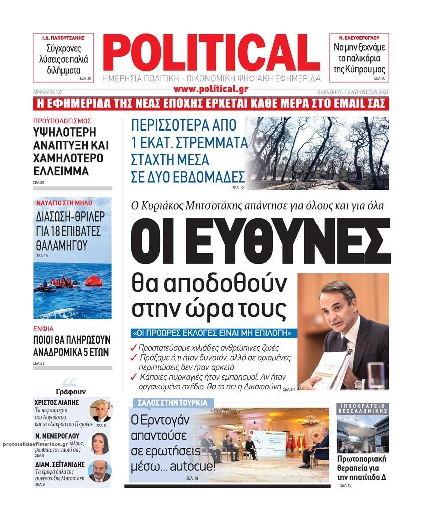 Οι πολιτικές εφημερίδες 13/8/2021 Σήφης Γαρυφαλάκης 06:32, Παρασκευή 13 Αυγούστου 2021 Media Διαβάστε τα πρωτοσέλιδα των πολιτικών εφημερίδων. ΕΦΗΜΕΡΙΔΕΣ ΠΟΛΙΤΙΚΕΣ ΕΦΗΜΕΡΙΔΕΣ ΠΡΩΤΟΣΕΛΙΔΑ ΠΡΩΤΟΣΕΛΙΔΑ ΕΦΗΜΕΡΙΔΩΝ Μοιράσου το: σχολίασε κι εσύ (0 σχόλια) Ακολουθήστε το enikos.gr στο Google News και μάθετε πρώτοι όλες τις ειδήσεις Δείτε όλες τις τελευταίες ειδήσεις από την Ελλάδα και τον Κόσμο στο enikos.gr Ειδήσεις Ροή Ειδήσεων 4 ώρες πριν Εκτός ευρωομάδας ΣΥΡΙΖΑ ο Νίκος Παππάς μετά την επίθεση στον δημοσιογράφο Νίκο Γιαννόπουλο – Η μήνυση και οι νέες δηλώσεις 5 ώρες πριν «Αγριεύουν» οι αγρότες: «Δεν συντρέχει λόγος συνάντησης με τον πρωθυπουργό» – Ώρα αποφάσεων στη σύσκεψη της Πέμπτης 5 ώρες πριν Κυψέλη: Χωρίς την οικογένειά της δίπλα της απολογήθηκε η 16χρονη – «Της είχε επιτεθεί κάποιος για να την βιάσει, φοβήθηκε και κυκλοφορούσε με μαχαίρι» 4 ώρες πριν Politico: Το πρόβλημα της Ευρώπης δεν είναι το Βέλγιο αλλά ο Ντόναλντ Τραμπ 6 ώρες πριν Αλεξανδρούπολη: Πολυοργανική ανεπάρκεια λόγω υποσιτισμού η αιτία θανάτου του 3χρονου αγοριού 5 ώρες πριν Μυστήριο με τεράστιες κυκλικές πέτρες 200 κιλών – Ανακαλύφθηκαν τυχαία κατά τη διάρκεια οδικών έργων και κανείς δεν ξέρει από πού προέρχονται 6 ώρες πριν Ύπνος: Ειδικός εξηγεί τον πραγματικό λόγο που ξυπνάτε στις 4 τα ξημερώματα – Ο ρόλος των ορμονών και του κιρκάδιου ρυθμού 7 ώρες πριν Αριθμολογία: Οι άνθρωποι που έχουν γεννηθεί αυτές τις 4 ημερομηνίες, είναι τρυφεροί και αγαπούν ανιδιοτελώς 18 ώρες πριν 20 χρόνια τα Χριστούγεννα ξεκινούν στα Public με μεγάλη ποικιλία σε δώρα! 3 λεπτά πριν Αμερικανικά στρατεύματα στον Ισημερινό για «προσωρινή» επιχείρηση κατά των ναρκωτικών 18 λεπτά πριν Βραζιλία: Το Κογκρέσο ενέκρινε σχέδιο νόμου για τη μείωση της ποινής του πρώην προέδρου Μπολσονάρου 33 λεπτά πριν Ένταση στο περιφερειακό συμβούλιο Δυτικής Μακεδονίας: Φωνές, σπρωξιές και διακοπή – Δείτε βίντεο 48 λεπτά πριν Σουδάν: Επιδρομή drone σε χωριό του Νότιου Κορντοφάν – Οκτώ νεκροί 1 ώρα πριν Αλ Τσαντίρι Νιουζ: Η κόρη της Πάολα στο κοινό – Η ατάκα Λαζόπουλου που την έκανε να «κοκκινήσει» ENIKOS NETWORK Αϋπνία: Το κόλπο που θα σας βοηθήσει να κοιμηθείτε απόψε – Είναι απλό και έχει αποτέλεσμα 2,6 εκατομμύρια πολίτες έχουν ήδη εμβολιαστεί κατά της γρίπης ΕΛΣΤΑΤ: Τι δείχνουν τα νέα στοιχεία για τις ηλεκτρονικές παραγγελίες των επιχειρήσεων ΚΕΠΕ: Οι 3 διακριτές συμβολές των ΜμΕ και της μεταποίησης στην ελληνική οικονομία Χαρτογραφώντας το «σημείο χωρίς επιστροφή»: Για πρώτη φορά αποκαλύπτεται με λεπτομέρεια το ακανθώδες όριο της ατμόσφαιρας τ... Η Google καταργεί τη λειτουργία «dark web report» – Πώς θα μπορούν οι χρήστες να διαγράφουν τα δεδομένα τους περισσότερα 02:30 , Πέμπτη 18 Δεκεμβρίου 2025 Αλ Τσαντίρι Νιουζ: Η κόρη της Πάολα στο κοινό – Η ατάκα Λαζόπουλου που την έκανε να «κοκκινήσει» Γιορτινή διάθεση και ευχάριστες στιγμές γέμισε η αποψινή, τελευταία για το 2025, εκπομπή του «... 22:24 , Τετάρτη 17 Δεκεμβρίου 2025 Το Σπίτι Δίπλα Στο Ποτάμι: Σε κίνδυνο η υγεία του Απόστολου – Τι θα δούμε απόψε “Το Σπίτι Δίπλα στο Ποτάμι” ξετυλίγει το νήμα της ζωής των πέντε αδελφών με καταισ... 21:14 , Τετάρτη 17 Δεκεμβρίου 2025 Παιχνίδια Εκδίκησης: Θα καταφέρει ο Χρήστος να κλονίσει την εμπιστοσύνη της Μάγιας απέναντι στον Άγη; Τα «Παιχνίδια Εκδίκησης» έρχονται απόψε στις 22:30, στον Αντ1, με το τελευταίο επεισόδιο της χ... 20:57 , Τετάρτη 17 Δεκεμβρίου 2025 Άγιος Έρωτας: Η Χλόη καταθέτει εναντίον του 