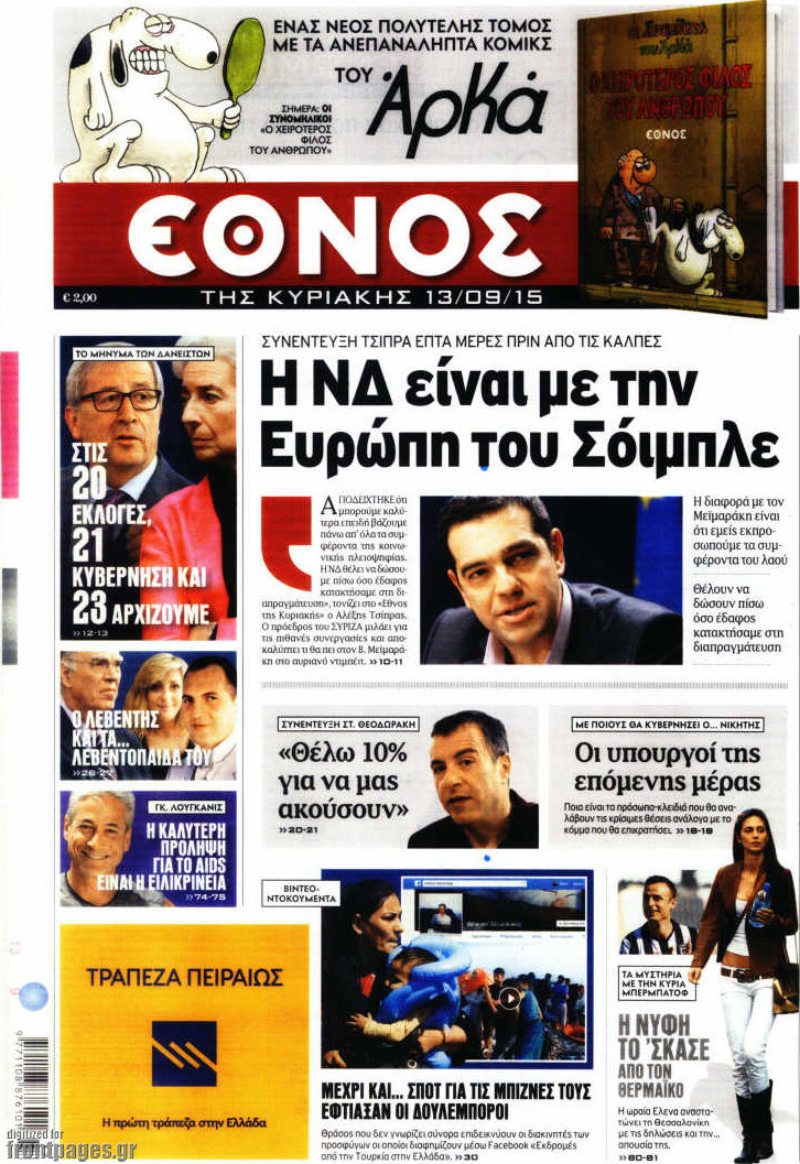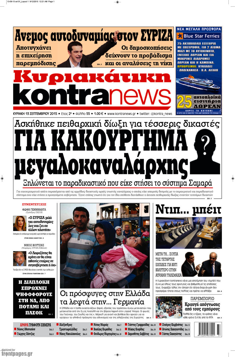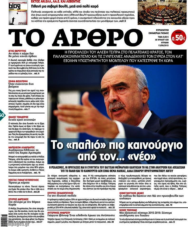 Οι πολιτικές εφημερίδες 13/9/2015 Enikos Newsroom 07:54, Κυριακή 13 Σεπτεμβρίου 2015 Media Διαβάστε τα σημερινά πρωτοσέλιδα των πολιτικών εφημερίδων. ΕΦΗΜΕΡΙΔΕΣ ΠΟΛΙΤΙΚΕΣ ΕΦΗΜΕΡΙΔΕΣ ΠΡΩΤΟΣΕΛΙΔΑ Μοιράσου το: σχολίασε κι εσύ (0 σχόλια) Ακολουθήστε το enikos.gr στο Google News και μάθετε πρώτοι όλες τις ειδήσεις Δείτε όλες τις τελευταίες ειδήσεις από την Ελλάδα και τον Κόσμο στο enikos.gr Ειδήσεις Ροή Ειδήσεων 36 λεπτά πριν Μεσόγειος: Η διαδρομή του ρωσικού τάνκερ «Qendil» και η στοχευμένη επίθεση της Ουκρανίας με drone – Ο Πούτιν προειδοποίησε για αντίποινα 30 λεπτά πριν Αττική: Θρίλερ με νεκρό βρέφος 5 μηνών – Κοιμόταν στο ίδιο κρεβάτι με τους γονείς του 1 ώρα πριν Από το Ορμένιο ως τα Μάλγαρα κι από τη Σιάτιστα μέχρι τη Νίκαια: Μπλόκα σε όλη την Ελλάδα – Το Σάββατο ανοίγουν τα διόδια οι αγρότες 1 ώρα πριν «Έλληνας Εσκομπάρ»: Φωτογραφίες με τους 4 τόνους κοκαΐνης που κατασχέθηκαν από το σκάφος «Ουρανία» 3 ώρες πριν Πούτιν: Σαρκαστικά μηνύματα, παράπονα και απρόοπτα στη συνέντευξη Τύπου – Η πρόταση γάμου on air και οι ερωτήσεις για τα αγγούρια και τους… εξωγήινους 3 ώρες πριν Τα 5 ζώδια που ευνοούνται στην ερωτική ζωή τους την επόμενη εβδομάδα – «Η ενέργεια του Αιγόκερου φέρνει αγάπη και σταθερότητα» 7 ώρες πριν Ειδικός μοιράζεται 6 κόλπα για να διατηρείστε σε φόρμα με πάνω από 40 ώρες εργασίας την εβδομάδα: «Προπονηθείτε πριν από τη δουλειά, όχι μετά» 4 ώρες πριν Αυτό το έξυπνο μαθηματικό κόλπο θα μπορούσε να αλλάξει τον τρόπο με τον οποίο οι επιστήμονες μελετούν τους σεισμούς 1 ώρα πριν Κουίζ για την παλιά Αθήνα: Αναγνωρίζετε την περιοχή; Έχετε περάσει 100% από εκεί 5 λεπτά πριν Επίσημη η «βόμβα»: Ο ΠΑΟΚ ανακοίνωσε την απόκτηση του Πάτρικ Μπέβερλι 9 λεπτά πριν Θεσσαλονίκη: Πατέρας εγκαλεί τον Ιατρικό Σύλλογο για ποινές «χάδι» σε γιατρό που κατηγορείται για τον θάνατο του παιδιού του 16 λεπτά πριν Κερατσίνι: Αστυνομικός εκτός υπηρεσίας απέτρεψε κλοπή μηχανών – Συνελήφθησαν τρεις ανήλικοι 19 λεπτά πριν Το σόι σου: Ο Άρης έρχεται στην Ελλάδα για τις γιορτές των Χριστουγέννων – Τι θα δούμε στο αποψινό εορταστικό επεισόδιο 26 λεπτά πριν ΠΑΣΟΚ σε Μαρινάκη: Δεν νομιμοποιούμε πολιτικές επιλογές που μεταφέρουν το πρόβλημα από υπηρεσία σε υπηρεσία ENIKOS NETWORK «Η σούπερ» γρίπη εξαπλώνεται στην Ευρώπη-Στοιχεία για την αποτελεσματικότητα του εμβολίου από το ECDC ΕΛΣΤΑΤ: Αύξηση κατά 1,7% των επαγγελματιών υγείας το 2024 Η απάντηση της κυβέρνησης στα αιτήματα των αγροτών: 16 έχουν ικανοποιηθεί, 4 βρίσκονται υπό επεξεργασία και 7 δεν είναι εφι... Μισθολογική διαφάνεια: Το 68% των εργαζομένων αγνοεί τη νέα οδηγία – Αναλυτικά τα στοιχεία έρευνας Χαρτογραφώντας το «σημείο χωρίς επιστροφή»: Για πρώτη φορά αποκαλύπτεται με λεπτομέρεια το ακανθώδες όριο της ατμόσφαιρας τ... Η Google καταργεί τη λειτουργία «dark web report» – Πώς θα μπορούν οι χρήστες να διαγράφουν τα δεδομένα τους περισσότερα 18:11 , Παρασκευή 19 Δεκεμβρίου 2025 Το σόι σου: Ο Άρης έρχεται στην Ελλάδα για τις γιορτές των Χριστουγέννων – Τι θα δούμε στο αποψινό εορταστικό επεισόδιο Ένα απολαυστικό, εορταστικό επεισόδιο της σειράς “Το σόι σου”, γεμάτο ευτράπελα αλ... 15:15 , Παρασκευή 19 Δεκεμβρίου 2025 Την Κυριακή με τη Realnews: Ό,τι και αν αγοράσεις, σκανάρεις και κερδίζεις! Την Κυριακή με τη Realnews: Ό,τι και αν αγοράσεις, σκανάρεις και κερδίζεις! Με το PADU app, το... 08:00 , Παρασκευή 19 Δεκεμβρίου 2025 Την Κυριακή με τη Realnews: Δωροεπιταγή 10€ Δωροεπιταγή αξίας 10€ για αγορές άνω των 60€ από τ