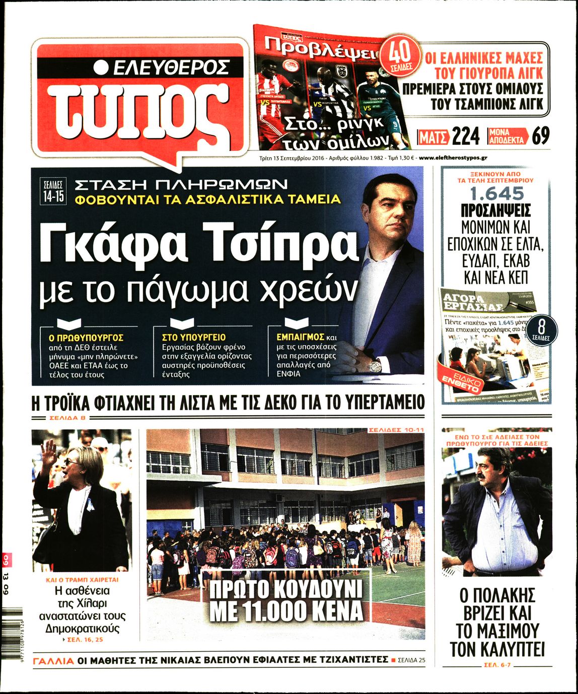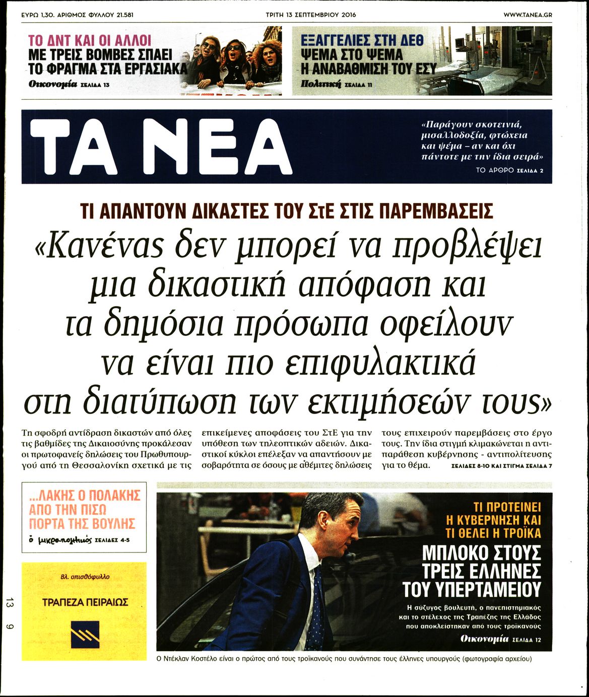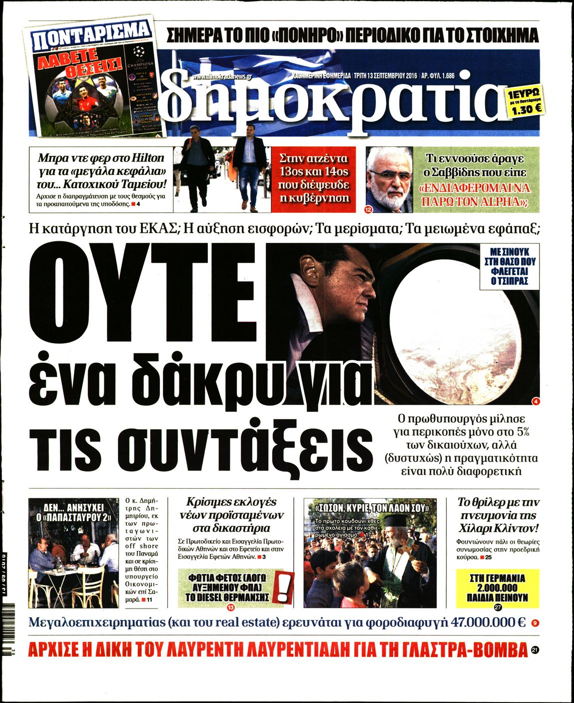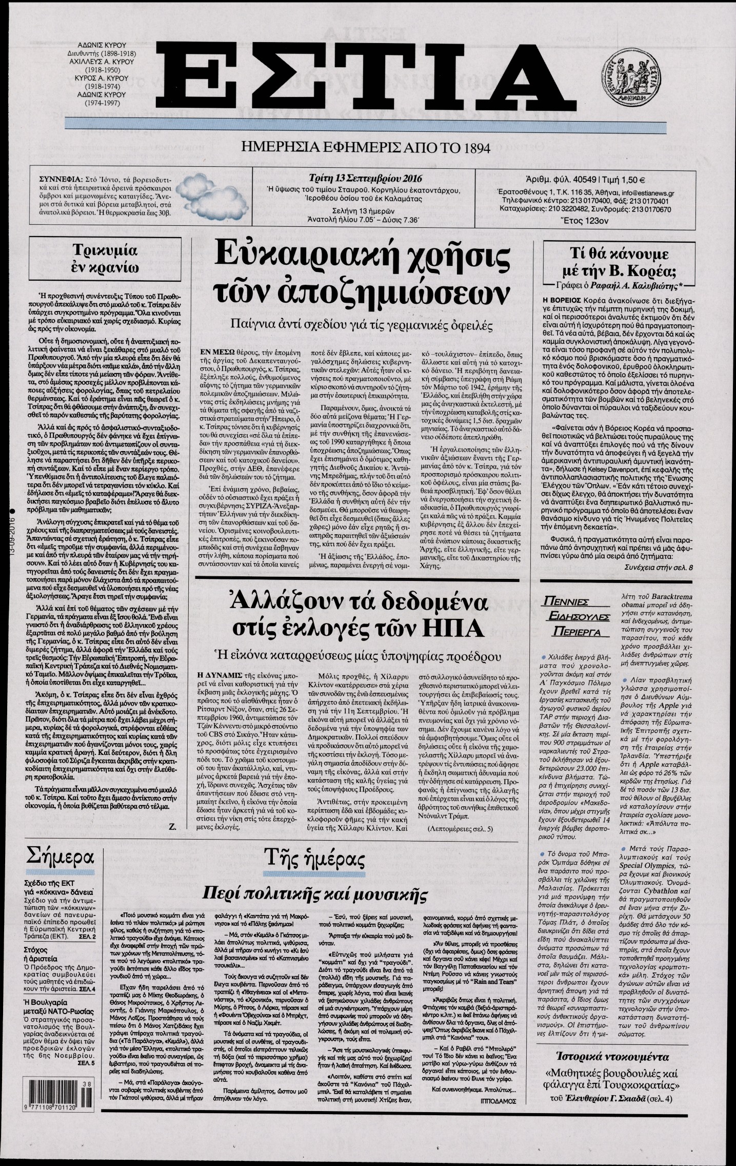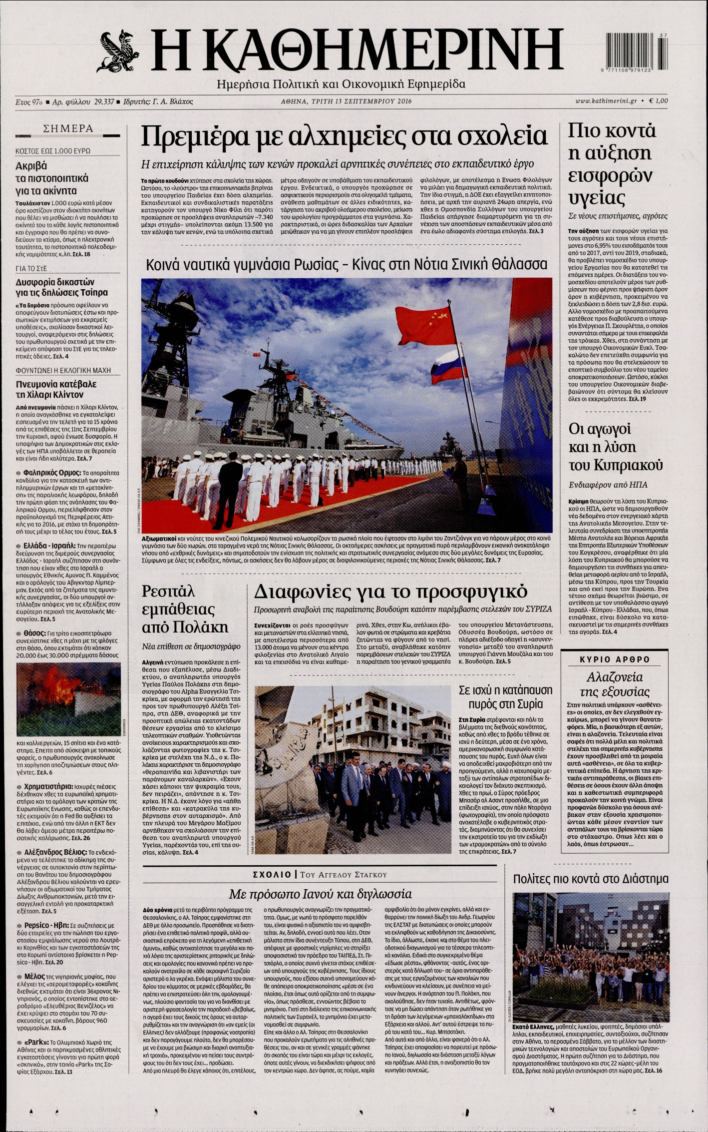 Οι πολιτικές εφημερίδες 13/9/2016 Enikos Newsroom 05:52, Τρίτη 13 Σεπτεμβρίου 2016 Media Διαβάστε τα σημερινά πρωτοσέλιδα των πολιτικών εφημερίδων: ΠΟΛΙΤΙΚΕΣ ΕΦΗΜΕΡΙΔΕΣ ΠΡΩΤΟΣΕΛΙΔΑ Μοιράσου το: σχολίασε κι εσύ (0 σχόλια) Ακολουθήστε το enikos.gr στο Google News και μάθετε πρώτοι όλες τις ειδήσεις Δείτε όλες τις τελευταίες ειδήσεις από την Ελλάδα και τον Κόσμο στο enikos.gr Ειδήσεις Ροή Ειδήσεων 2 ώρες πριν Κυριάκος Μητσοτάκης: «Κάποιοι αγρότες δεν αισθάνονται την ανάγκη να διαφωνήσουν με τις προτάσεις της κυβέρνησης, η Ευρώπη στέκεται στο πλευρό της Ουκρανίας» 7 ώρες πριν ΟΠΕΚΕΠΕ: Προφυλακιστέος ο φερόμενος αρχηγός και ο λογιστής της εγκληματικής οργάνωσης 8 ώρες πριν Αυξάνουν την πίεση προς την κυβέρνηση οι αγρότες: Κλείνουν παρακαμπτήριους και ανοίγουν διόδια – Τι θα γίνει τις γιορτές 8 ώρες πριν Φοινικούντα: Το Σάββατο απολογείται ο 30χρονος γιος γνωστού επιχειρηματία της Πλάκας που παραδόθηκε – Όσα είπε στους αστυνομικούς και ο ρόλος του στο έγκλημα 7 ώρες πριν ΑΕΚ – Κραϊόβα 3-2: Επική ανατροπή και πρόκριση στους «16» του Conference League η Ένωση 8 ώρες πριν Αρχαιολόγοι ανακάλυψαν ρωμαϊκά τεχνουργήματα από μια πόλη που δεν υπήρξε ποτέ – Τα τρία εντυπωσιακά κτίρια και ο αμφορέας με τις… σαρδέλες 9 ώρες πριν Ύπνος: Η απλή βραδινή ρουτίνα για να προστατεύσετε τα μαλλιά σας από το κρύο κατά τη διάρκεια του χειμώνα 10 ώρες πριν Manifesting: Πώς να συναντήσετε τον σύντροφο της ζωής σας, ανάλογα με τον μήνα γέννησής σας 2 ημέρες πριν 20 χρόνια τα Χριστούγεννα ξεκινούν στα Public με μεγάλη ποικιλία σε δώρα! 9 λεπτά πριν Πέντε νεκροί σε πλήγματα των ΗΠΑ κατά δύο σκαφών που φέρεται να μετέφεραν ναρκωτικά στον Ανατολικό Ειρηνικό 17 λεπτά πριν ΕΥΔΑΠ: Αλλάζουν τα τιμολόγια του νερού 25 λεπτά πριν Οπτική ψευδαίσθηση: Μόνο αν έχεις αετίσια ματιά θα βρεις τον παπαγάλο σε 12 δευτερόλεπτα 31 λεπτά πριν Αθήνα: Βρέθηκε η 16χρονη που είχε εξαφανιστεί από τις 6 Δεκεμβρίου – Η ανακοίνωση από το «Χαμόγελο του Παιδιού» 40 λεπτά πριν Κρύα χέρια και πόδια: Γιατρός εξηγεί ποια είναι η αίτια και πότε πρέπει να ανησυχήσετε ENIKOS NETWORK Σε περίοδο αυξημένης δραστηριότητας η γρίπη στην Ελλάδα-Μέτρα προστασίας από τον ΕΟΔΥ Σκέφτεστε συνέχεια συζητήσεις που έχετε κάνει; Τι σημαίνει αυτό, σύμφωνα με ειδικό Στεγαστικό: Τι λέει η ΠΟΜΙΔΑ για τα νέα μέτρα που ανακοίνωσε ο Κυριάκος Μητσοτάκης Λαγκάρντ: Αισιόδοξη για την ανάπτυξη της Ευρωζώνης, αβέβαιη για τον πληθωρισμό Χαρτογραφώντας το «σημείο χωρίς επιστροφή»: Για πρώτη φορά αποκαλύπτεται με λεπτομέρεια το ακανθώδες όριο της ατμόσφαιρας τ... Η Google καταργεί τη λειτουργία «dark web report» – Πώς θα μπορούν οι χρήστες να διαγράφουν τα δεδομένα τους περισσότερα 05:48 , Παρασκευή 19 Δεκεμβρίου 2025 Οι οικονομικές εφημερίδες 19/12/2025 Διαβάστε τα πρωτοσέλιδα από τις οικονομικές εφημερίδες, σήμερα 19/12/2025. 05:43 , Παρασκευή 19 Δεκεμβρίου 2025 Οι αθλητικές εφημερίδες 19/12/2025 Διαβάστε τα πρωτοσέλιδα από τις αθλητικές εφημερίδες, σήμερα 19/12/2025. 05:38 , Παρασκευή 19 Δεκεμβρίου 2025 Οι πολιτικές εφημερίδες 19/12/2025 Διαβάστε τα πρωτοσέλιδα από τις πολιτικές εφημερίδες, σήμερα 19/12/2025. 02:50 , Παρασκευή 19 Δεκεμβρίου 2025 GNTM: «Κλείδωσαν» οι τέσσερις φιναλίστ – Μεγάλη ανατροπή στις τελευταίες αποχωρήσεις Για προτελευταία φορά εμφανίστηκαν στο πλατό του GNTM οι φιναλίστ του φετινού κύκλου, το βράδυ... ΤΕΛΕΥΤΑΙΕΣ ΕΙΔΗΣΕΙΣ 9 λεπτά πριν Πέντε νεκροί σε πλήγματα των ΗΠΑ κατά δύο σκαφών που... 17 λεπτά πριν ΕΥΔΑΠ: Αλλάζουν τα τιμολόγια του νε