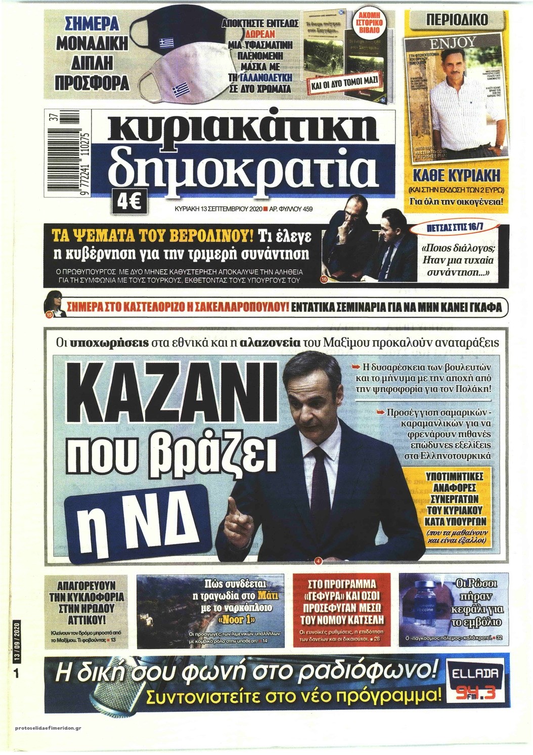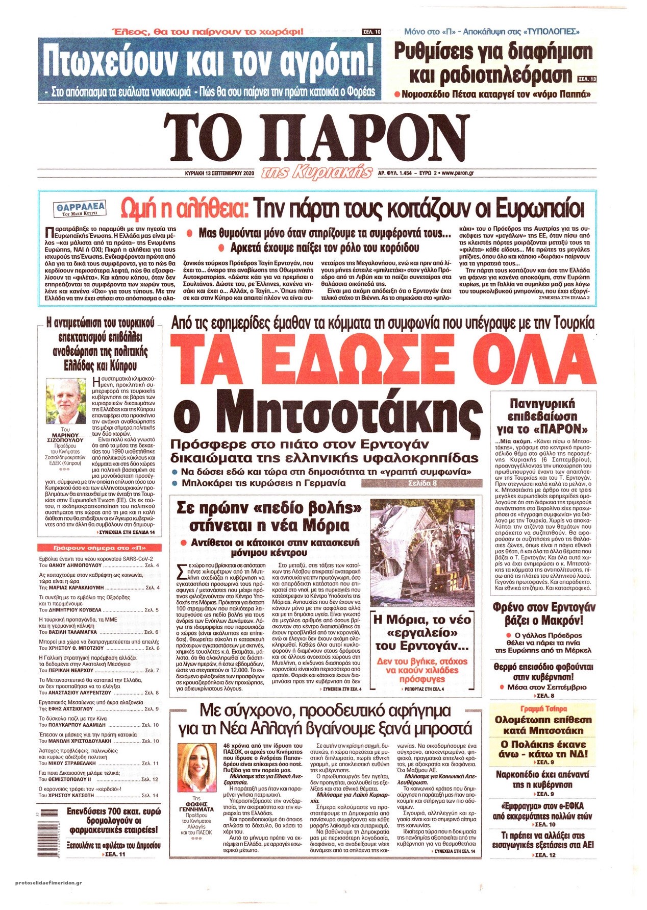 Οι πολιτικές εφημερίδες 13/9/2020 Σήφης Γαρυφαλάκης 07:22, Κυριακή 13 Σεπτεμβρίου 2020 Media Διαβάστε τα πρωτοσέλιδα των πολιτικών εφημερίδων… ΕΦΗΜΕΡΙΔΕΣ ΠΟΛΙΤΙΚΕΣ ΕΦΗΜΕΡΙΔΕΣ ΠΡΩΤΟΣΕΛΙΔΑ ΠΡΩΤΟΣΕΛΙΔΑ ΕΦΗΜΕΡΙΔΩΝ Μοιράσου το: σχολίασε κι εσύ (0 σχόλια) Ακολουθήστε το enikos.gr στο Google News και μάθετε πρώτοι όλες τις ειδήσεις Δείτε όλες τις τελευταίες ειδήσεις από την Ελλάδα και τον Κόσμο στο enikos.gr Ειδήσεις Ροή Ειδήσεων 1 ώρα πριν Δημοσκόπηση Metron Analysis: Στις 10 μονάδες η διαφορά ΝΔ-ΠΑΣΟΚ, στην 3η θέση η Πλεύση Ελευθερίας – 8 στους 10 στηρίζουν τον αγώνα των αγροτών 6 ώρες πριν Αγρότες: «Όχι στον διάλογο, μας εμπαίζει η κυβέρνηση» – Αποφάσισαν κλιμάκωση των κινητοποιήσεων, τι θα γίνει τα Χριστούγεννα 1 ώρα πριν Νίκος Παππάς στον ΑΝΤ1: «Δεν κρύβομαι – Μετά το συμβάν ακολούθησα κανονικά το πρόγραμμά μου» – ΒΙΝΤΕΟ 3 ώρες πριν Αθήνα: Εξαρθρώθηκε εγκληματική οργάνωση που διακινούσε ναρκωτικά σε μορφή σοκολάτας – Δύο τράπερ ανάμεσα στους 4 συλληφθέντες – ΒΙΝΤΕΟ 1 ώρα πριν Διαμαντής Καραναστάσης: Οδηγούσε υπό την επήρεια αλκοόλ – Του αφαιρέθηκε το δίπλωμα και του επιβλήθηκε πρόστιμο 350 ευρώ 2 ώρες πριν Manifesting: Πώς να συναντήσετε τον σύντροφο της ζωής σας, ανάλογα με τον μήνα γέννησής σας 4 ώρες πριν Γάμος: 11 ψυχρές αλλά ευγενικές φράσεις, που λέει ένας άνδρας όταν σκέφτεται τον χωρισμό 3 ώρες πριν Σφουγγάρισμα: Η συνήθεια που θα σας βοηθήσει να διατηρήσετε το σπίτι σας καθαρό και τακτοποιημένο 2 ημέρες πριν 20 χρόνια τα Χριστούγεννα ξεκινούν στα Public με μεγάλη ποικιλία σε δώρα! 42 δευτερόλεπτα πριν Αυξάνουν την πίεση προς την κυβέρνηση οι αγρότες: Κλείνουν παρακαμπτήριους και ανοίγουν διόδια – Τι θα γίνει τις γιορτές 6 λεπτά πριν Ελισάβετ Κωνσταντινίδου για τον Γεράσιμο Μιχελή και την Πόπη Χριστοδούλου: «Ξέρω ότι έχουν πάει απλώς κάπου αλλού, ότι δεν είναι ο θάνατος έτσι όπως τον έχουμε στο μυαλό μας» 10 λεπτά πριν Κρήτη: Νέες αποκαλύψεις για τον 54χρονο που κατηγορείται ότι εξαπάτησε τους γονείς του 33χρονου – Ζητούσε τρίχες αγνοουμένων 17 λεπτά πριν Τσιάρας: Δεν θα κινδυνέψουν οι πληρωμές των αγροτών – Χρειαζόμαστε μια νέα πολιτική, ένα restart 24 λεπτά πριν Δέσποινα Βανδή: Το βίντεο που δημοσίευσε με τον Γιώργο Νικολαΐδη – «Έχουμε καταστραφεί από τα μελομακάρονά σου» ENIKOS NETWORK Σε περίοδο αυξημένης δραστηριότητας η γρίπη στην Ελλάδα-Μέτρα προστασίας από τον ΕΟΔΥ Σκέφτεστε συνέχεια συζητήσεις που έχετε κάνει; Τι σημαίνει αυτό, σύμφωνα με ειδικό ΑΣΕΠ 2ΓΒ/2025: Σήμερα αρχίζει η υποβολή ενστάσεων – Πότε θα βγουν τα οριστικά αποτελέσματα ΕΛΤΑ: Αυτό είναι το νέο σχέδιο μετασχηματισμού του Οργανισμού- Τι δήλωσαν Πιερρακάκης και Παπαστεργίου Χαρτογραφώντας το «σημείο χωρίς επιστροφή»: Για πρώτη φορά αποκαλύπτεται με λεπτομέρεια το ακανθώδες όριο της ατμόσφαιρας τ... Η Google καταργεί τη λειτουργία «dark web report» – Πώς θα μπορούν οι χρήστες να διαγράφουν τα δεδομένα τους περισσότερα 17:45 , Πέμπτη 18 Δεκεμβρίου 2025 ROUK ZOUK: Εορταστικό επεισόδιο με καλεσμένους τους πρωταγωνιστές του «Γιατί ρε πατέρα» Το Σάββατο 20 Δεκεμβρίου στις 21:00, η Ζέτα Μακρυπούλια υποδέχεται εκλεκτούς ηθοποιούς που όλο... 17:20 , Πέμπτη 18 Δεκεμβρίου 2025 Άγιος έρωτας: Η Χριστίνα εξομολογείται στον πατέρα Νικόλαο, απόψε στις 21:00 στον Alpha Η Νότα αποφασίζει να εκδικηθεί τον Πέτρο και τον Στέφανο, για χάρη του Λούη, όμως τα πράγματα ... 16:50 , Πέμπτη 18 Δεκεμβρίου 2025 Να μ’ αγαπάς: Ζωή και Φωτεινή συμφιλιώνονται ως μάνα με κόρη, απόψε στις 20:00 Η 