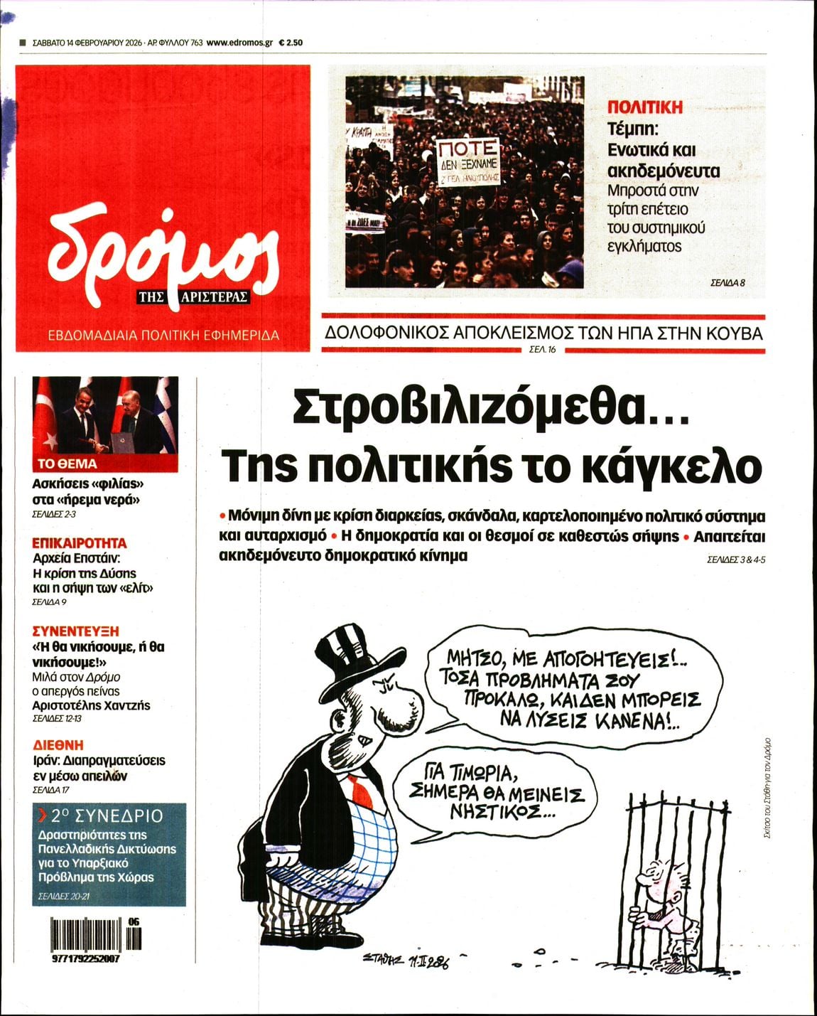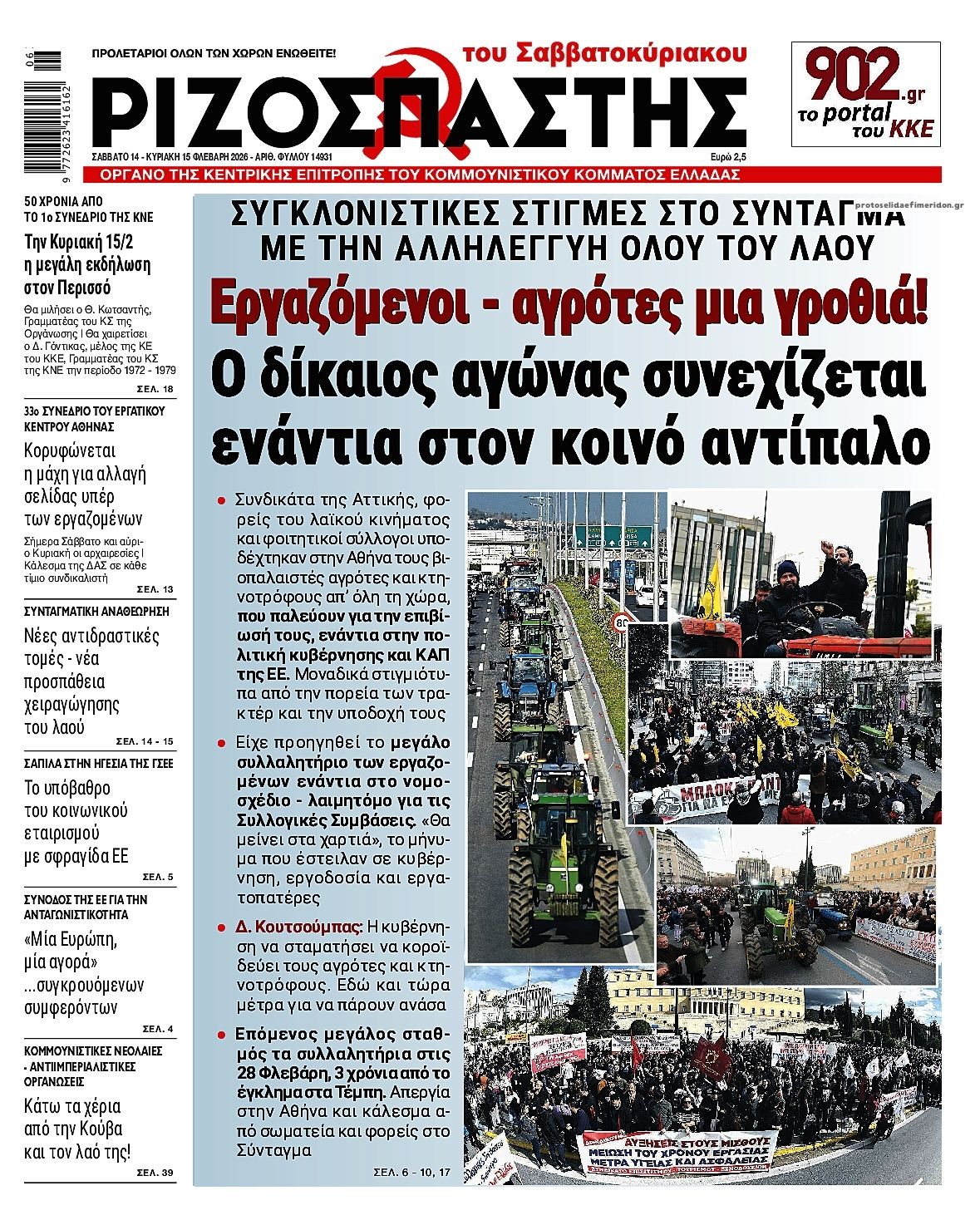 Οι πολιτικές εφημερίδες 14/2/2026 Enikos Newsroom 05:38, Σάββατο 14 Φεβρουαρίου 2026 Media Διαβάστε τα πρωτοσέλιδα από τις πολιτικές εφημερίδες, σήμερα 14/2/2026. ΕΦΗΜΕΡΙΔΕΣ ΠΟΛΙΤΙΚΕΣ ΕΦΗΜΕΡΙΔΕΣ ΠΡΩΤΟΣΕΛΙΔΑ Μοιράσου το: Διπλές διαπραγματεύσεις για Ιράν και Ουκρανία την Τρίτη 17 Φεβρουαρίου στη Γενεύη Reuters: Οι ΗΠΑ προετοιμάζονται στρατιωτικά για επιχειρήσεις εβδομάδων κατά του Ιράν σε περίπτωση που δεν επιτευχθεί συμφωνία Νέα αμερικάνικη επίθεση σε πλοίο στη Kαραϊβική – Τρεις «διακινητές ναρκωτικών» νεκροί σχολίασε κι εσύ (0 σχόλια) Ακολουθήστε το enikos.gr στο Google News και μάθετε πρώτοι όλες τις ειδήσεις Δείτε όλες τις τελευταίες ειδήσεις από την Ελλάδα και τον Κόσμο στο enikos.gr Ειδήσεις Ροή Ειδήσεων 8 ώρες πριν Αγρότες: «Είναι η πρώτη φορά που μας έχουν φτάσει στο αμήν» – Παρατεταγμένα τα τρακτέρ μπροστά από τη Βουλή – Δείτε φωτογραφίες και βίντεο 9 ώρες πριν Πώς έγινε το τροχαίο στη Λούτσα: «Τι έκανα» φώναζε ο ανήλικος οδηγός – Κατέρρευσαν η μαμά και η γιαγιά του άτυχου 15χρονου – ΒΙΝΤΕΟ ντοκουμέντο 8 ώρες πριν Έκρηξη στην Βιολάντα: Οι δύο αδήλωτες δεξαμενές προπανίου, η αναβάθμιση του κατηγορητηρίου και η μελέτη πυροπροστασίας 7 ώρες πριν Επστάιν: Πώς οι θεωρίες συνωμοσίας ευδοκιμούν λόγω του μεγάλου όγκου δεδομένων που αποκαλύφθηκαν 8 ώρες πριν Μεσσήνη: Κατέρρευσε τοίχος κατοικίας από την έντονη βροχόπτωση – Από θαύμα δεν υπήρξαν τραυματισμοί 8 ώρες πριν Ανακαλύφθηκε πέτρινη σφραγίδα 2.700 ετών από το Βασίλειο του Ιούδα – Τι αναφέρει η εβραϊκή επιγραφή που έχει πάνω της 9 ώρες πριν Αϋπνία: Βοηθάει πραγματικά το διάβασμα πριν από τον ύπνο; Γυναίκα μοιράζεται την προσωπική της εμπειρία 10 ώρες πριν Αριθμολογία: Οι άνθρωποι που έχουν γεννηθεί 3 συγκεκριμένες ημερομηνίες γίνονται πιο δυνατοί όσο μεγαλώνουν 11 ώρες πριν Το «μαγικό» υγρό μέταλλο που μπορεί να αλλάξει τους κανόνες του παιχνιδιού στην παραγωγή πράσινου υδρογόνου 8 λεπτά πριν ΗΠΑ: Δυο αστυνομικοί της ICE σε διαθεσιμότητα για ψευδορκία σχετικά με πυροβολισμό μετανάστη στη Μινεάπολη 23 λεπτά πριν ΔΕΔΔΗΕ: Διακοπές ρεύματος σήμερα (14/2) στην Αθήνα και σε άλλες 5 περιοχές της Αττικής 38 λεπτά πριν Οπτική ψευδαίσθηση: Μόνο το 1% των ανθρώπων θα βρει το φίδι σε 15 δευτερόλεπτα 53 λεπτά πριν Καρδιακή προσβολή: Οι τροφές που μειώνουν τον κίνδυνο, σύμφωνα με μελέτη 1 ώρα πριν Σαν σήμερα 14 Φεβρουαρίου: Τα σημαντικότερα γεγονότα της ημέρας ENIKOS NETWORK 4 τρόποι να γίνετε πιο τυχεροί από αύριο – Τι αποκαλύπτει νέα μελέτη Eurostat:Η Ελλάδα «γέρασε» κατά 3,8 χρόνια μέσα σε μία δεκαετία ΑΔΜΗΕ: Σήμα εκκίνησης για την αύξηση μετοχικού κεφαλαίου του κατά 1 δισ. ευρώ ΕΛΣΤΑΤ: Έπεσε ο γενικός δείκτης τιμών εισαγωγών στη βιομηχανία-Δείτε αναλυτικά τα στοιχεία Ευπάθεια στο moltbook ai αποκαλύπτει email, tokens σύνδεσης και api keys Αυτός είναι ο ρόλος της μικρής τρύπας στους νυχοκόπτες – «Είμαι ο μόνος που δεν το ήξερε;»» περισσότερα 05:48 , Σάββατο 14 Φεβρουαρίου 2026 Οι οικονομικές εφημερίδες 14/2/2026 Διαβάστε τα πρωτοσέλιδα από τις οικονομικές εφημερίδες, σήμερα 14/2/2026. 23:50 , Παρασκευή 13 Φεβρουαρίου 2026 Sing for Greece – Eurovision 2026: Αυτοί είναι οι 7 φιναλίστ που προκρίθηκαν στον εθνικό τελικό Τα δεύτερα επτά εισιτήρια για τον εθνικό τελικό του «Sing for Greece – Eurovision 2026» δόθηκα... 10:58 , Παρασκευή 13 Φεβρουαρίου 2026 Τηλεθέαση (12/2): Η σειρά «Το Σόι σου» κυριάρχησε στην prime time Πρωταγωνιστής της prime time αναδείχθηκε το «Το Σόι σου» στον ALPHA, καταγράφοντας εντυπωσιακά... 10:43 , Παρασκευή 13 Φεβρουαρίο