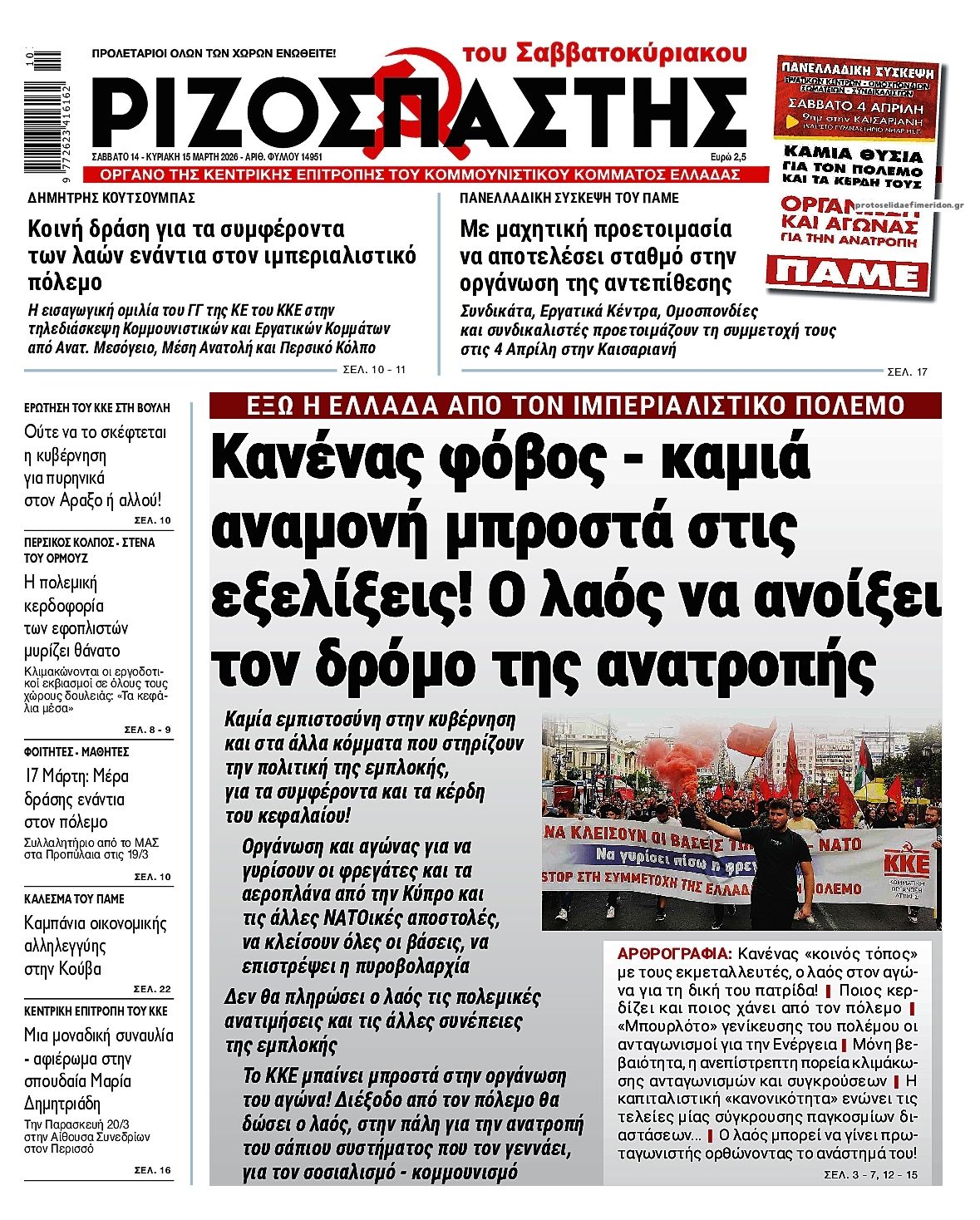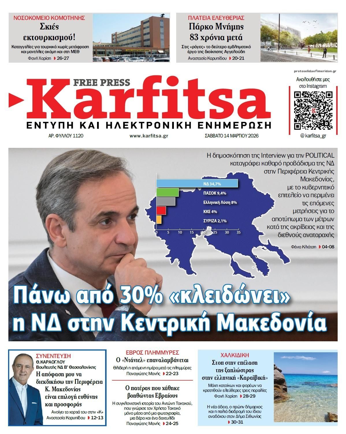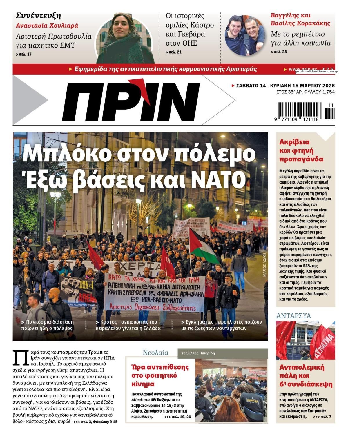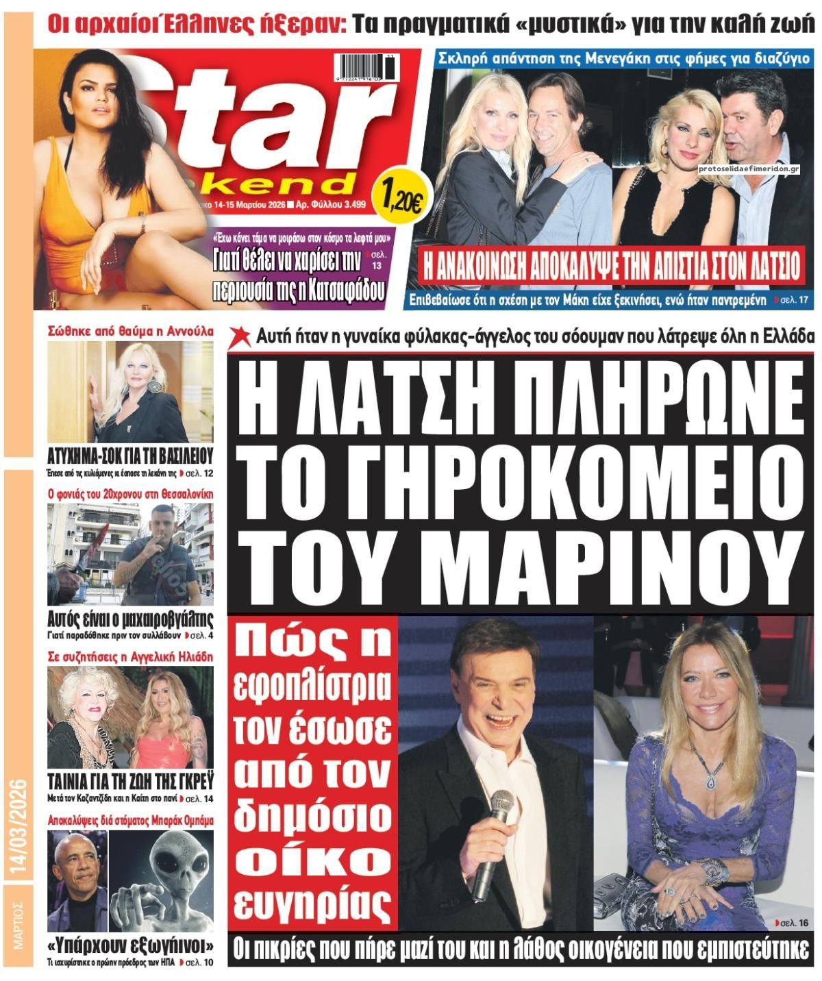 Οι πολιτικές εφημερίδες 14/3/2026 Enikos Newsroom 05:38, Σάββατο 14 Μαρτίου 2026 Media Διαβάστε τα πρωτοσέλιδα από τις πολιτικές εφημερίδες, σήμερα 14/3/2026. ΕΦΗΜΕΡΙΔΕΣ ΠΟΛΙΤΙΚΕΣ ΕΦΗΜΕΡΙΔΕΣ ΠΡΩΤΟΣΕΛΙΔΑ Μοιράσου το: Ντόναλντ Τραμπ: Οι στόχοι των ΗΠΑ και του Ισραήλ στο Ιράν «μπορεί να είναι λίγο διαφορετικοί» – Ο πόλεμος «θα διαρκέσει όσο είναι απαραίτητο» Ντοναλντ Τραμπ: Επίθεση των ΗΠΑ σε στρατιωτικούς στόχους στο νησί Χαργκ του Ιράν, ενώ εξετάζει χτύπημα και στις πετρελαϊκές υποδομές του – Δείτε βίντεο της επίθεσης Το Ιράν απειλεί με αντίποινα σε πετρελαϊκές υποδομές στην περιοχή μετά τον βομβαρδισμό των ΗΠΑ στη νήσο Χαργκ σχολίασε κι εσύ (0 σχόλια) Ακολουθήστε το enikos.gr στο Google News και μάθετε πρώτοι όλες τις ειδήσεις Δείτε όλες τις τελευταίες ειδήσεις από την Ελλάδα και τον Κόσμο στο enikos.gr Ειδήσεις Ροή Ειδήσεων 24 ώρες πριν LIVE – 14η ημέρα πολέμου ΗΠΑ – Ισραήλ με Ιράν – Οι εξελίξεις 8 ώρες πριν Δολοφονία στη Θεσσαλονίκη: Το Σάββατο στον εισαγγελέα ο 23χρονος δράστης, αναζητούνται οι 2 φίλοι του θύματος – Γρίφος τα κίνητρα της συμπλοκής 8 ώρες πριν Μέση Ανατολή: Η απουσία σχεδίου για τον πόλεμο στο Ιράν έχει προκαλέσει χάος και μπορεί να δεσμεύσει τις ΗΠΑ για δεκαετίες 8 ώρες πριν Τραμπ: Με την αναστολή των κυρώσεων στη Ρωσία πρόσθεσε και μια πολιτική νίκη στα κέρδη του Πούτιν από τον πόλεμο στο Ιράν 10 ώρες πριν Τραγωδία στον Πύργο: Θρήνος για τον 18χρονο που σκοτώθηκε πέφτοντας από μπαλκόνι – Η σπαρακτική ανάρτηση του πατέρα του 46 λεπτά πριν Οπτική ψευδαίσθηση: Μόνο το 1% των ανθρώπων θα βρει το φίδι σε 13 δευτερόλεπτα 1 ώρα πριν Υπερ-επεξεργασμένα τρόφιμα: Μελέτη συνδέει την αυξημένη κατανάλωσή τους με επιβαρυμένη υγεία των οστών 4 ώρες πριν Ζώδια 14/3: Ημερήσιες προβλέψεις – Ιχθύες, γίνεται ένα ξεκαθάρισμα στις ζωές σας για να μπουν νέοι φίλοι 9 ώρες πριν Ύπνος: Το αρχαίο βότανο που βοηθά στην αντιμετώπιση του άγχους και της αϋπνίας 10 λεπτά πριν Axios: To Ισραήλ προετοιμάζει μαζική χερσαία επιχείρηση στον Λίβανο κατά της Χεζμπολάχ 25 λεπτά πριν ΔΕΔΔΗΕ: Διακοπές ρεύματος σήμερα (14/3) στην Αθήνα και σε άλλες 6 περιοχές της Αττικής 46 λεπτά πριν Οπτική ψευδαίσθηση: Μόνο το 1% των ανθρώπων θα βρει το φίδι σε 13 δευτερόλεπτα 51 λεπτά πριν Ιράκ: Χτυπήθηκε από drone η πρεσβεία των ΗΠΑ στη Βαγδάτη, υψώνεται μαύρος καπνός 1 ώρα πριν Υπερ-επεξεργασμένα τρόφιμα: Μελέτη συνδέει την αυξημένη κατανάλωσή τους με επιβαρυμένη υγεία των οστών ENIKOS NETWORK Ο κανόνας των δύο ερωτήσεων που μπορεί να σας εξοικονομήσει άμεσα χρήματα Η τροφή – απρόσμενη ανακάλυψη των νομάδων που είναι πλούσια σε πρωτεΐνη και μπορεί να ενισχύσει το μικροβίωμα του εντέρου Οικονομικό Επιμελητήριο Ελλάδος: 5 προτάσεις και μεταβατικός χρόνος για την επίλυση των προβλημάτων σε ΕΡΓΑΝΗ ΙΙ και ΑΡΙΑΔΝ... ΥΠΕΝ: Παρατάσεις στις προθεσμίες ολοκλήρωσης ενεργειακών προγραμμάτων του Ταμείου Ανάκαμψης Ευπάθεια στο moltbook ai αποκαλύπτει email, tokens σύνδεσης και api keys Αυτός είναι ο ρόλος της μικρής τρύπας στους νυχοκόπτες – «Είμαι ο μόνος που δεν το ήξερε;»» περισσότερα 05:43 , Σάββατο 14 Μαρτίου 2026 Οι αθλητικές εφημερίδες 14/3/2026 Διαβάστε τα πρωτοσέλιδα από τις αθλητικές εφημερίδες, σήμερα 14/3/2026. 21:29 , Παρασκευή 13 Μαρτίου 2026 Το Σπίτι Δίπλα Στο Ποτάμι: H Νίτσα κάνει μία συγκλονιστική αποκάλυψη στη Μελισσάνθη, απόψε στις 22:00 Νέες εξελίξεις για τις τέσσερις αδερφές έρχονται στο νέο επεισόδιο της σειράς “Το σπίτι ... 20:27 , Παρασκευή 13 Μαρτίου 2026 Μπαμπά, σ’ αγ